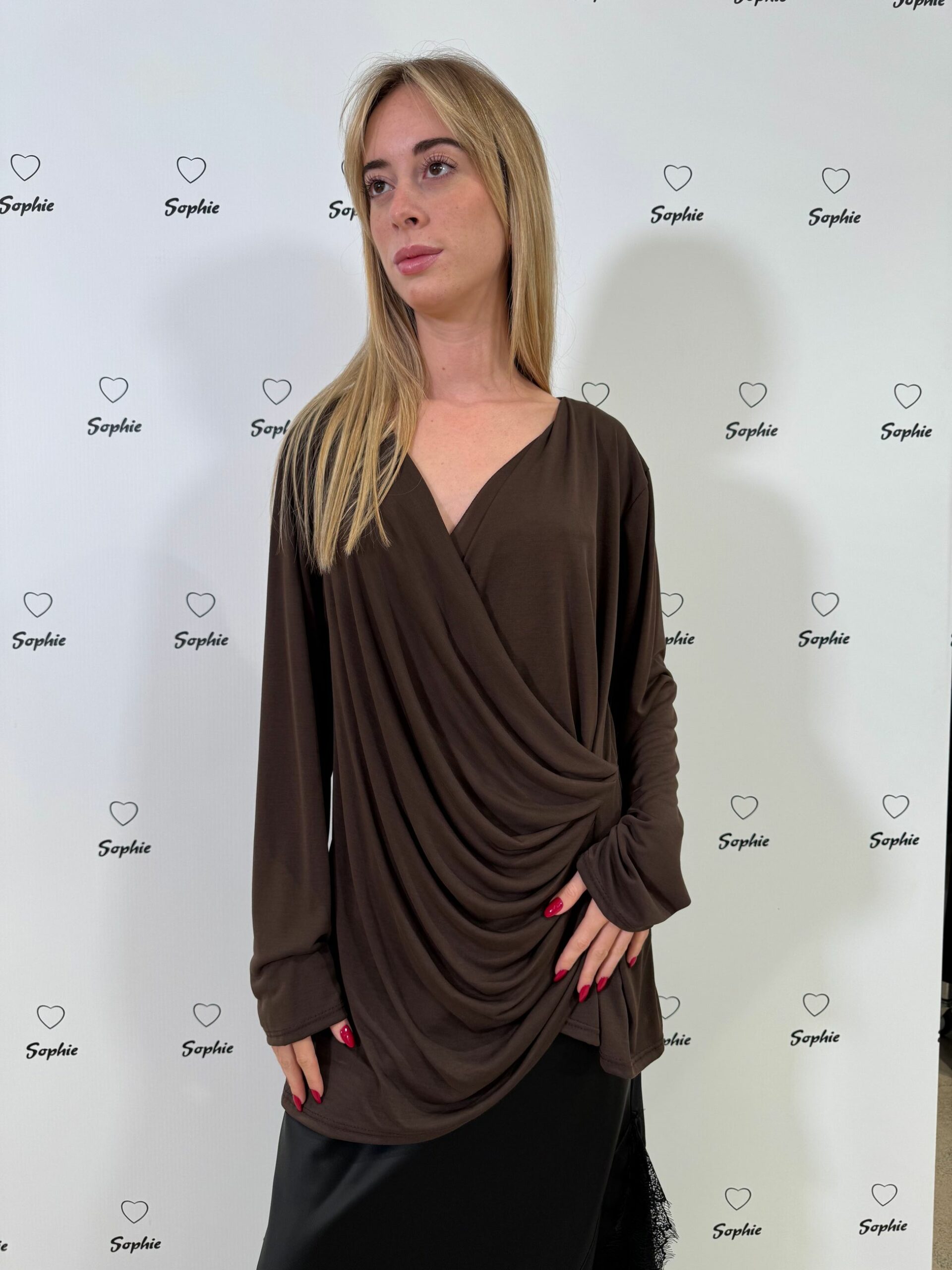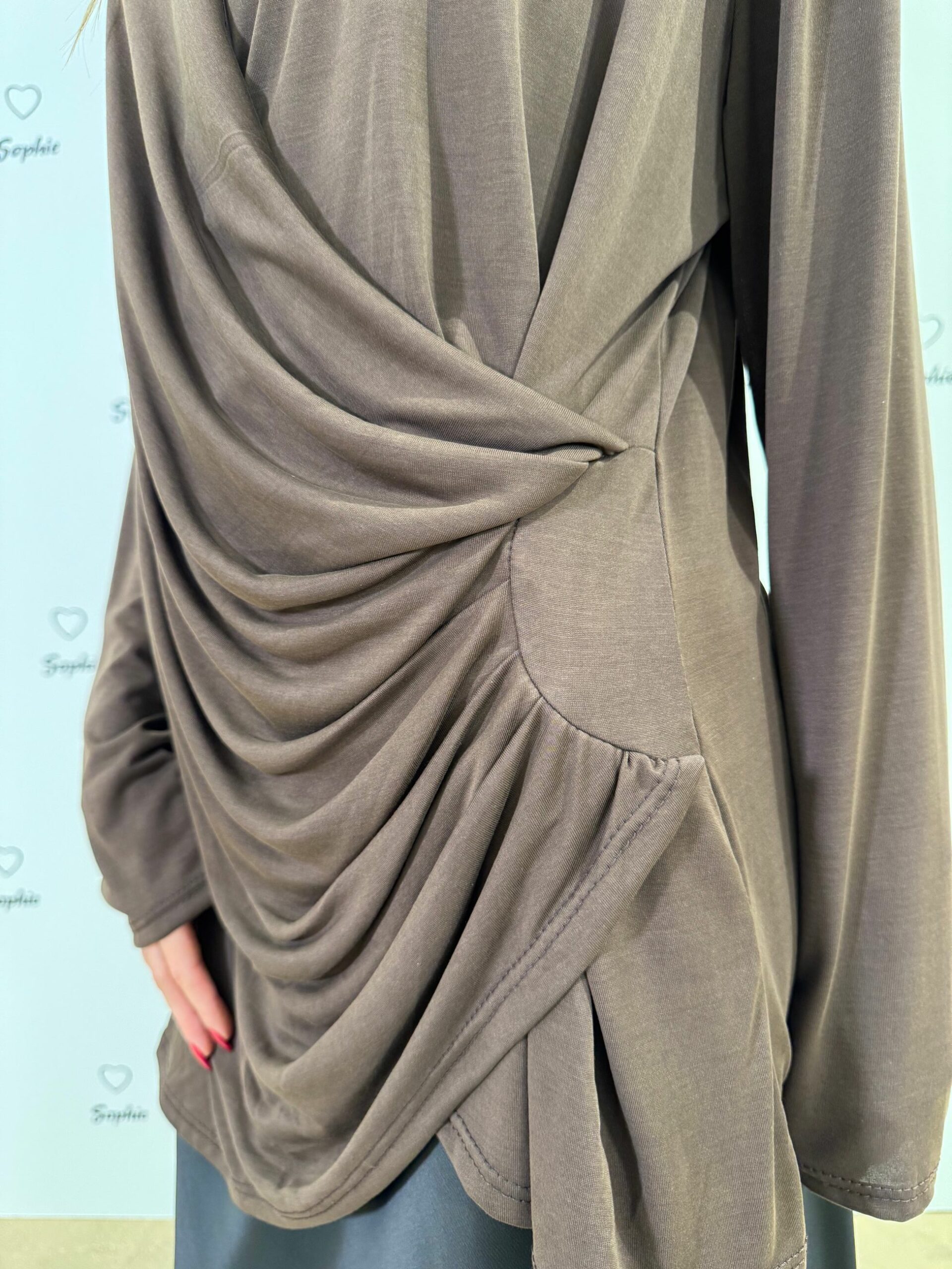 ABITO CORTO IN MODAL CON SCOLLO A V E DRAPPEGGIO SUL FIANCO SINISTRO