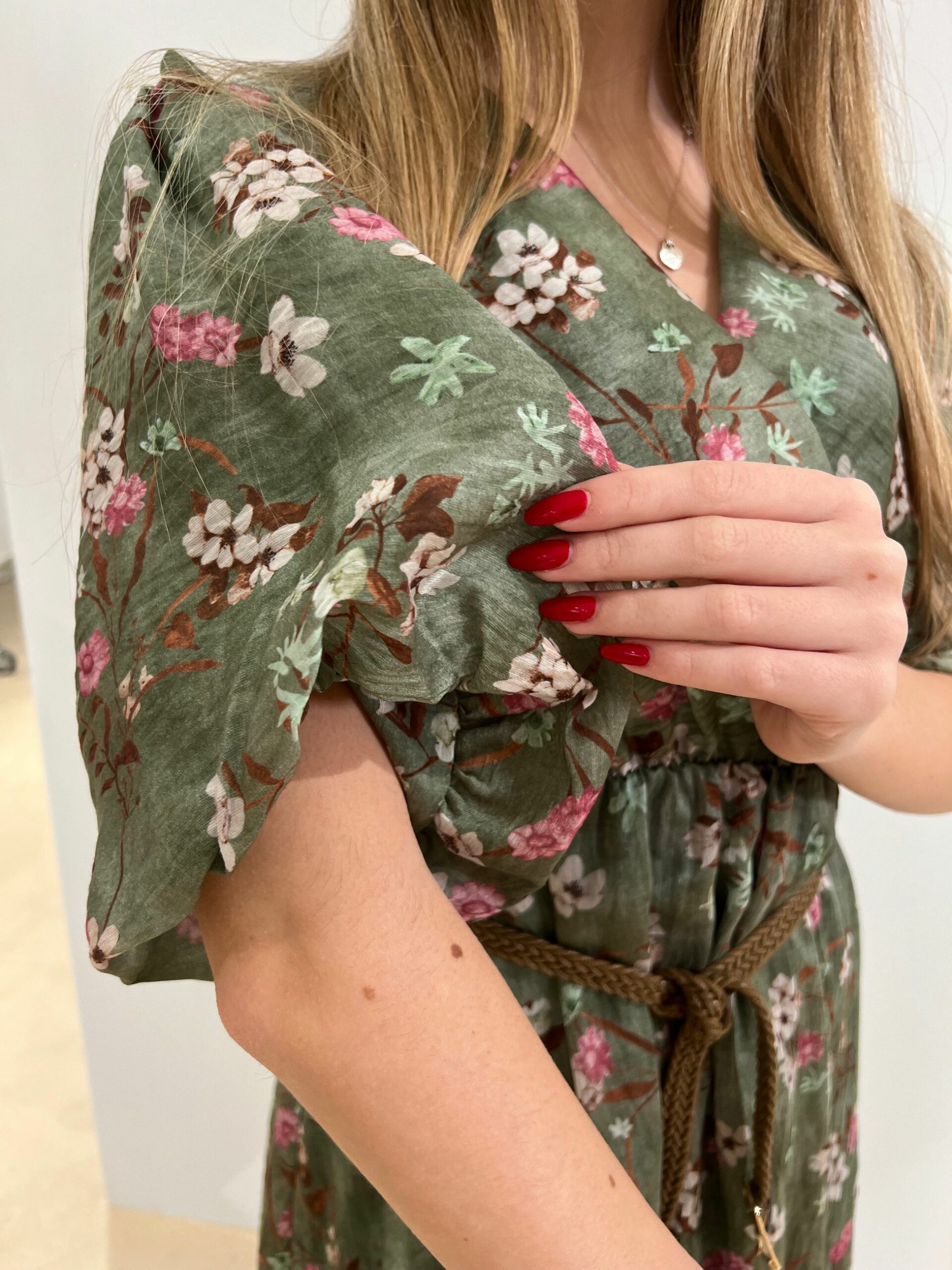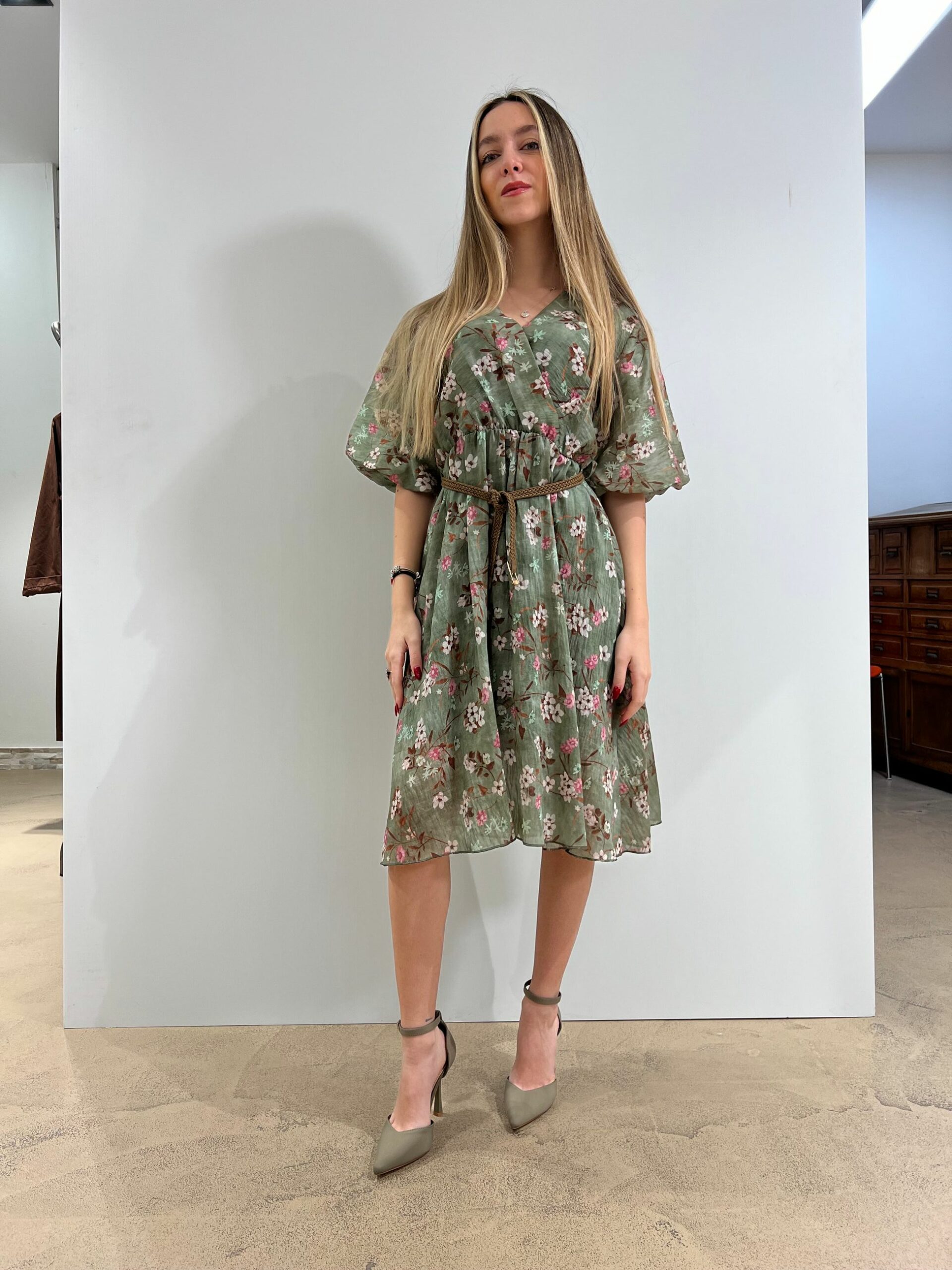 ABITO IN FANTASIA FODERATO SCOLLO A V MANICA CORTA A PALLONCINO