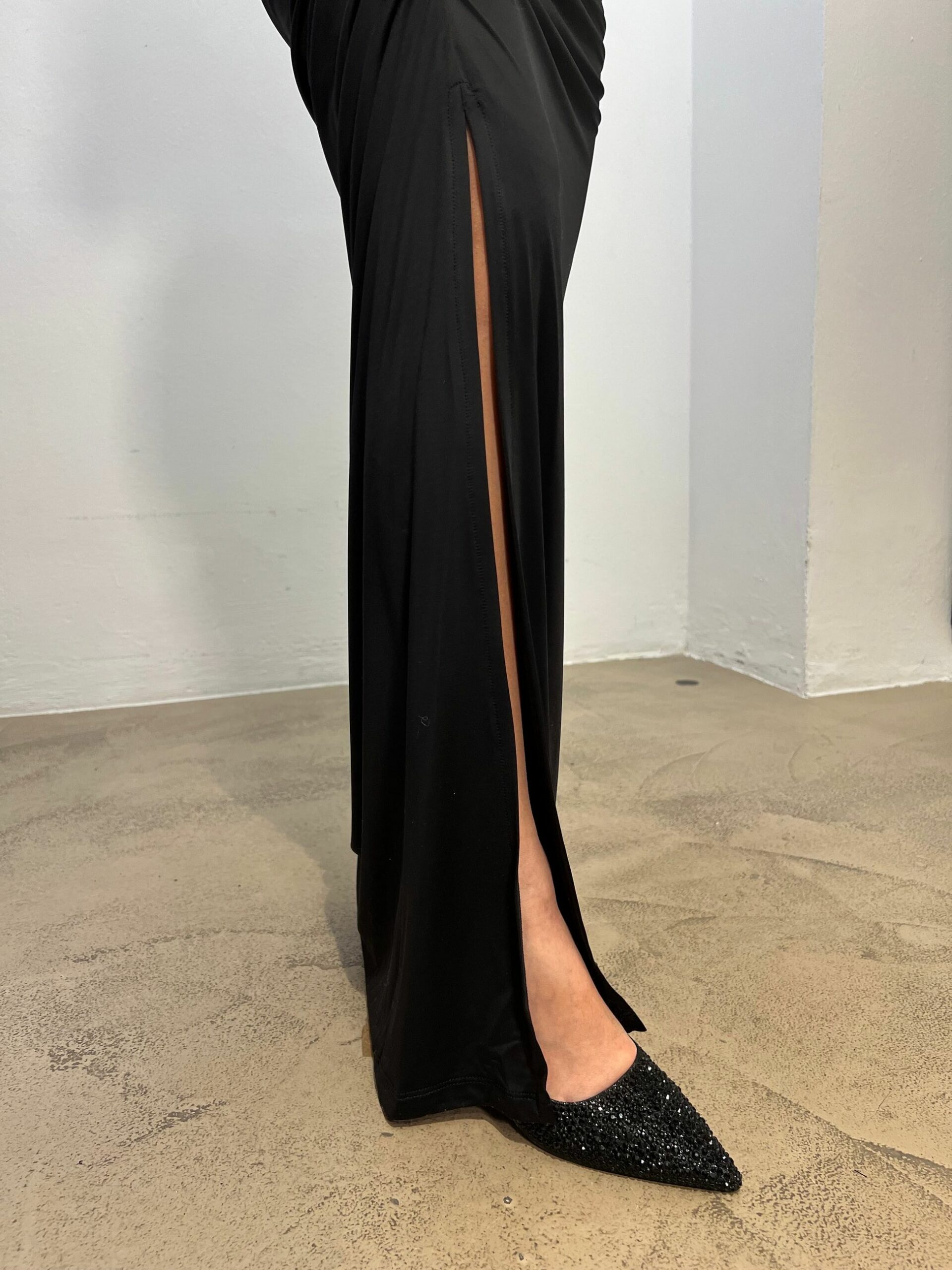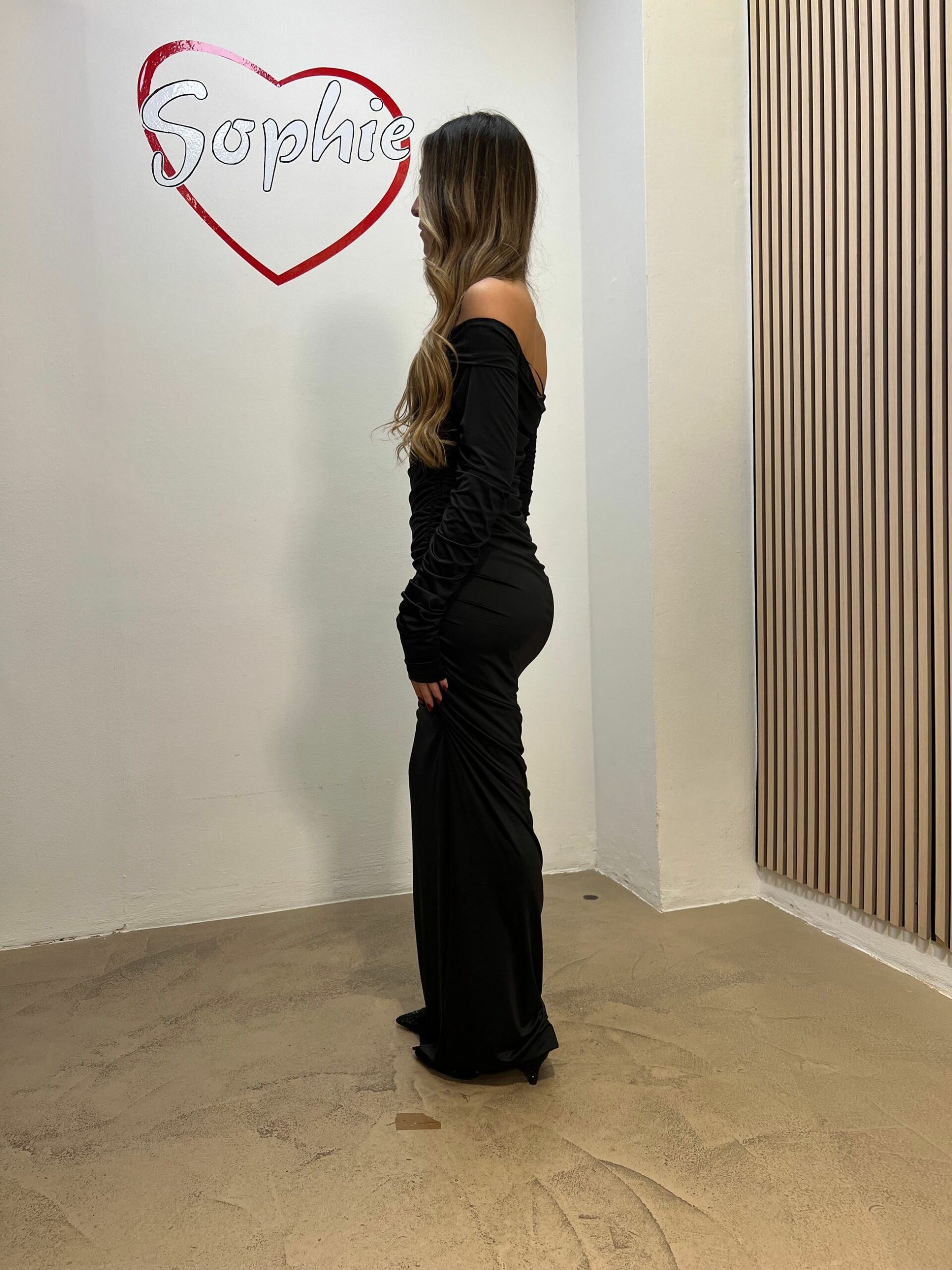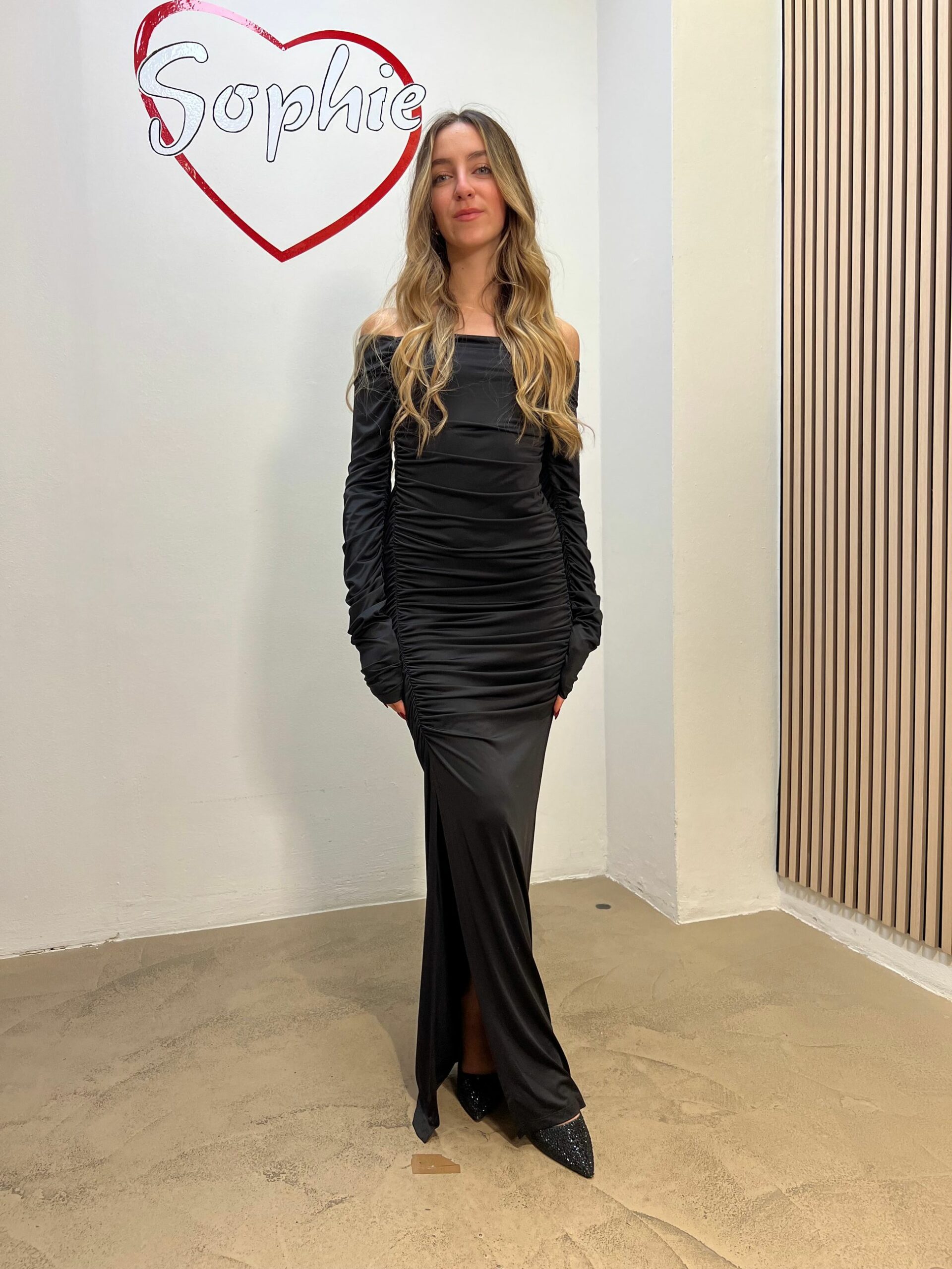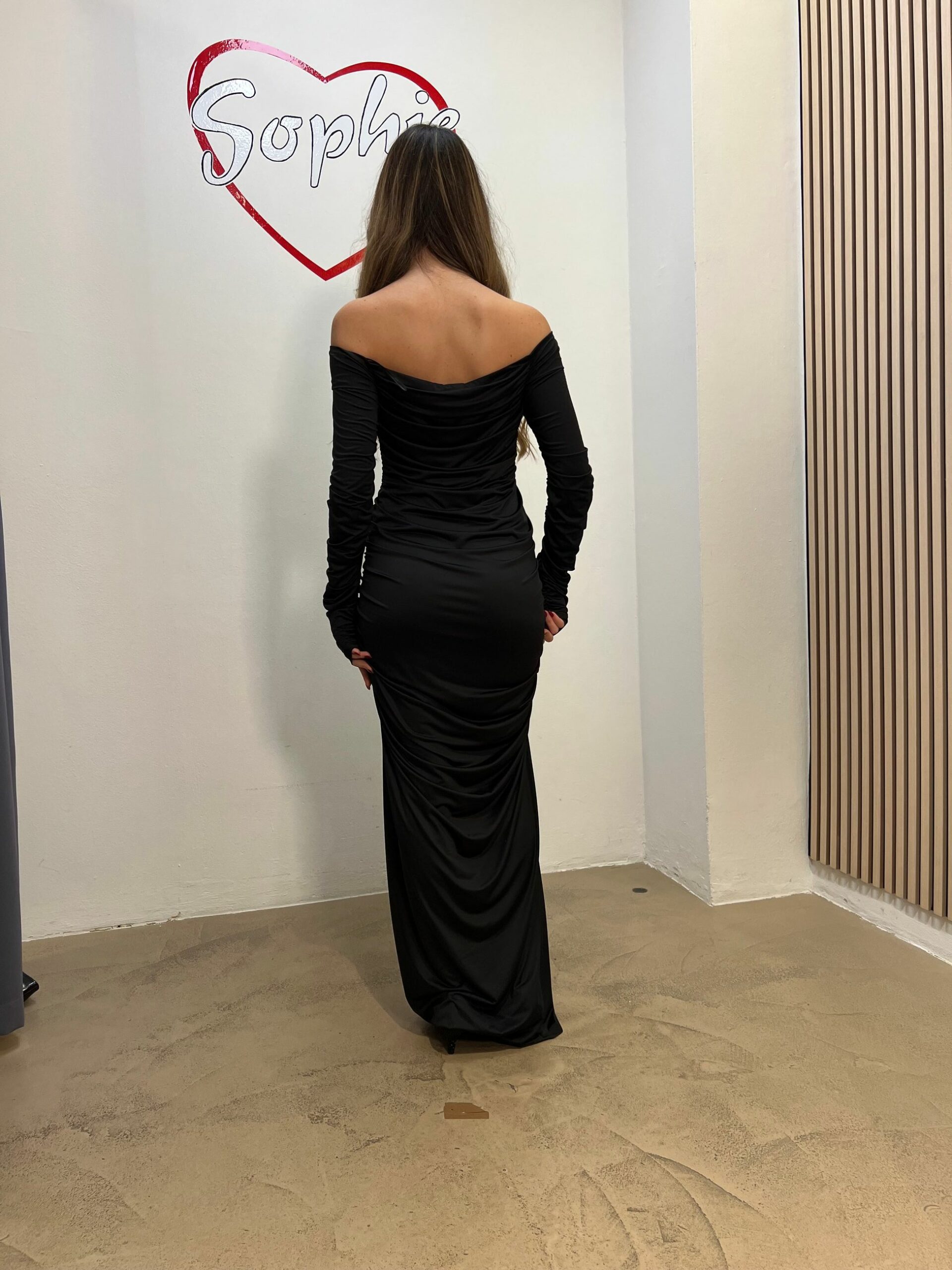 ABITO LUNGO ADERENTE DRAPPEGGIATO MANICA LUNGA