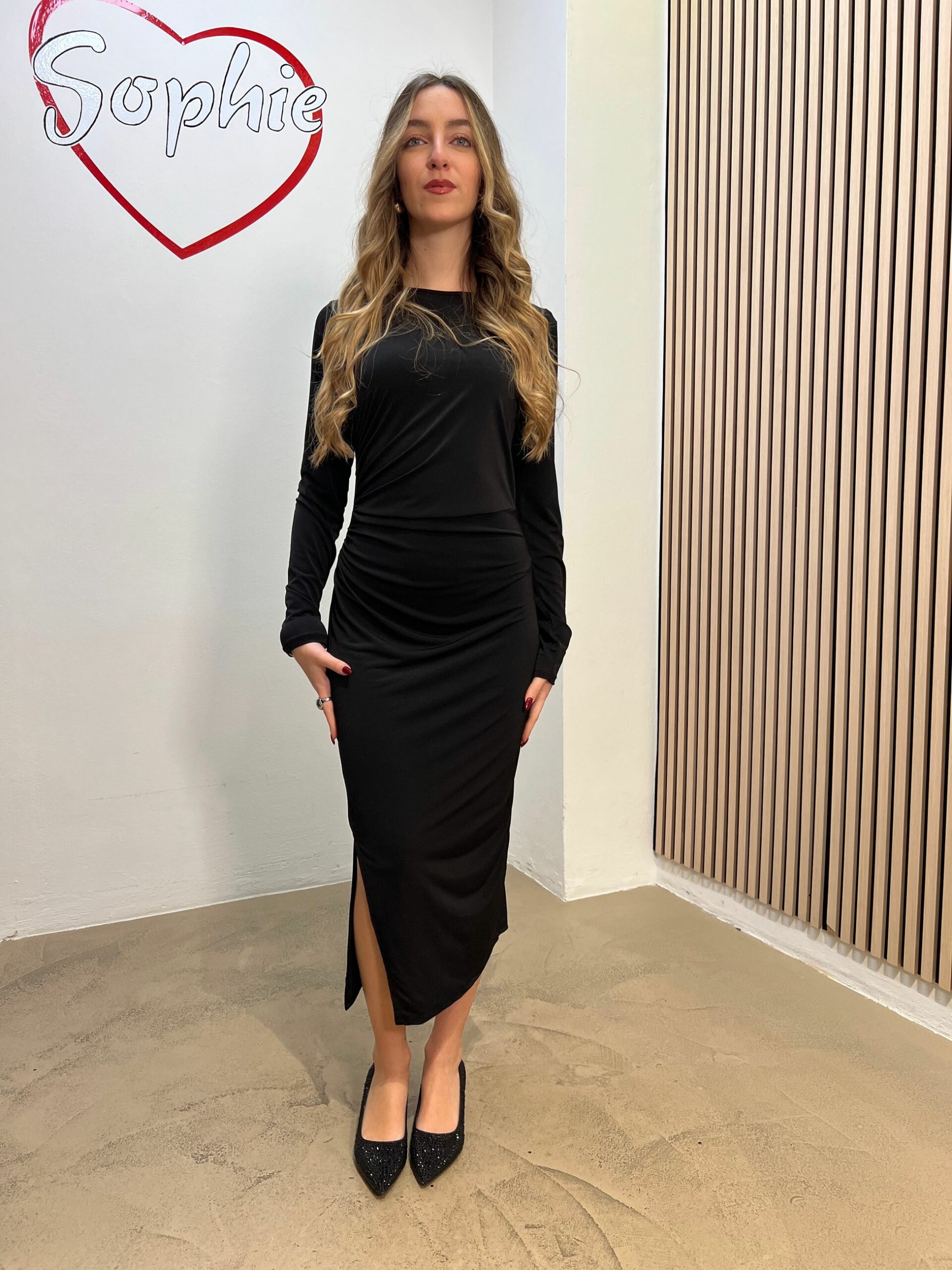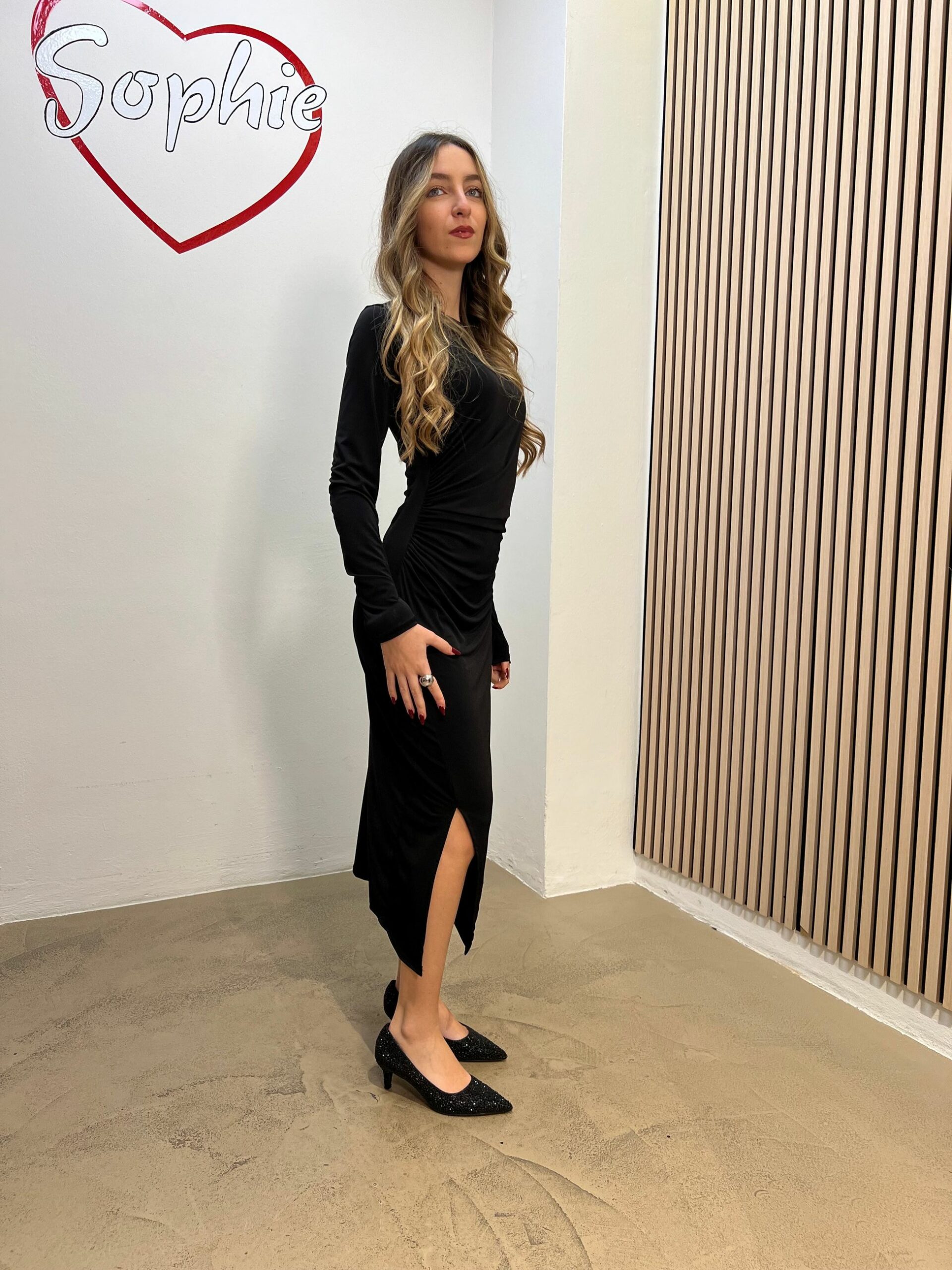 ABITO LUNGO CON DRAPPEGGIO SUL LATO DESTRO E SPACCO