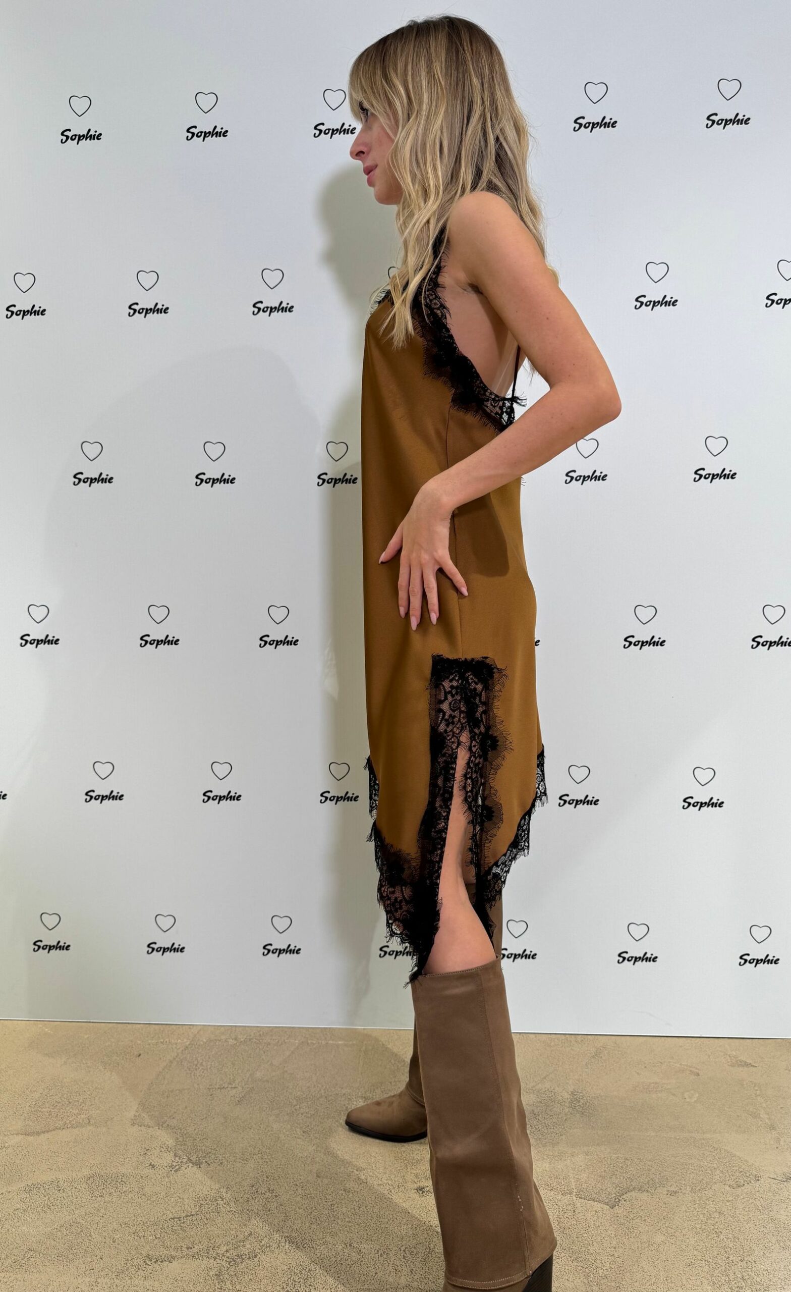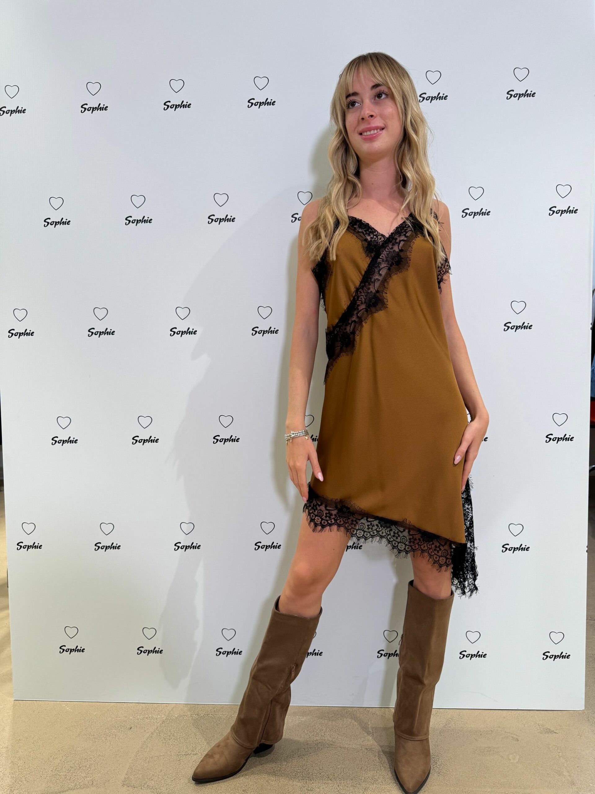 ABITO TIPO LINGERIE IN RASO E PIZZO CON FONDO ASIMMETRICO