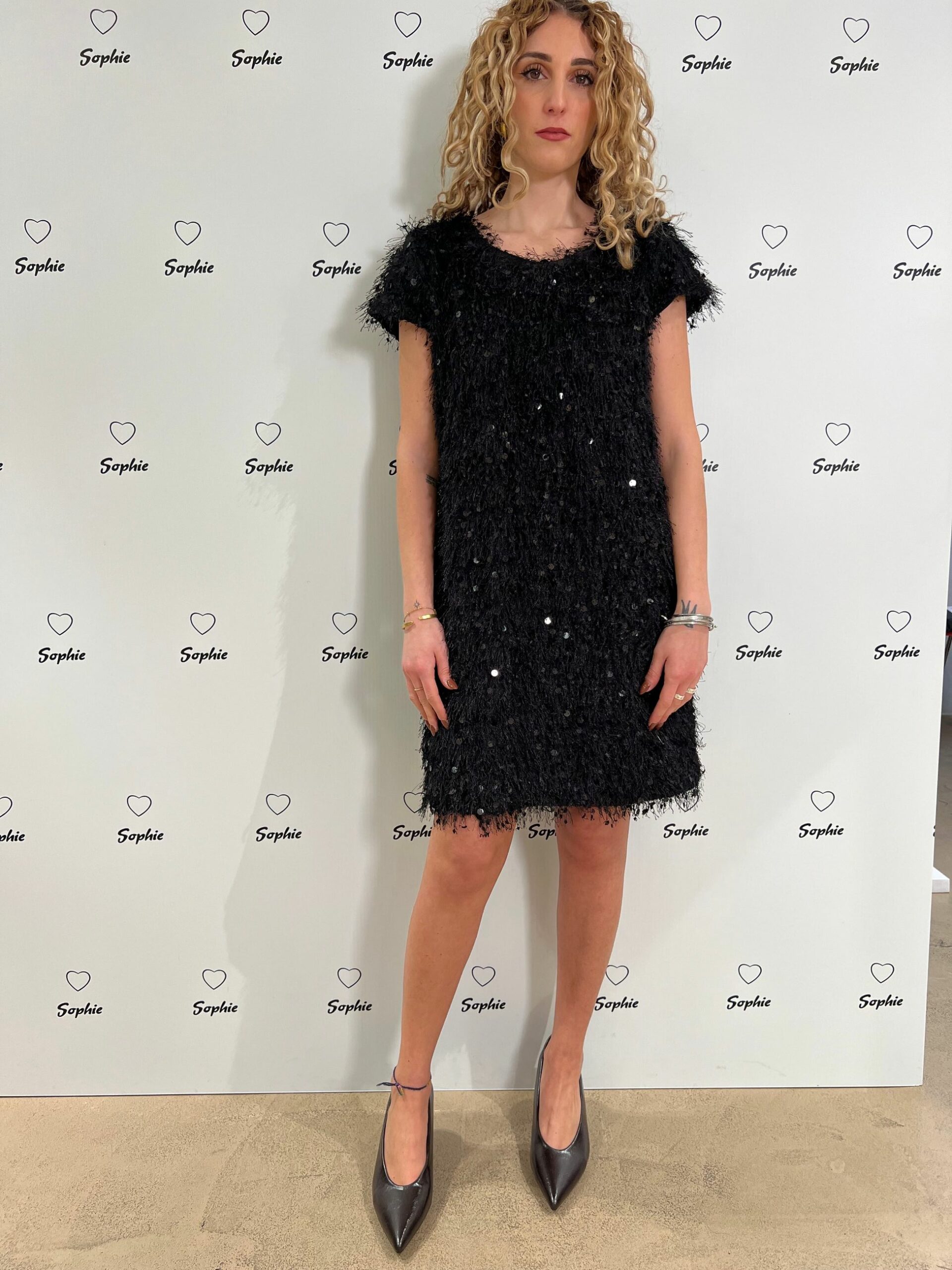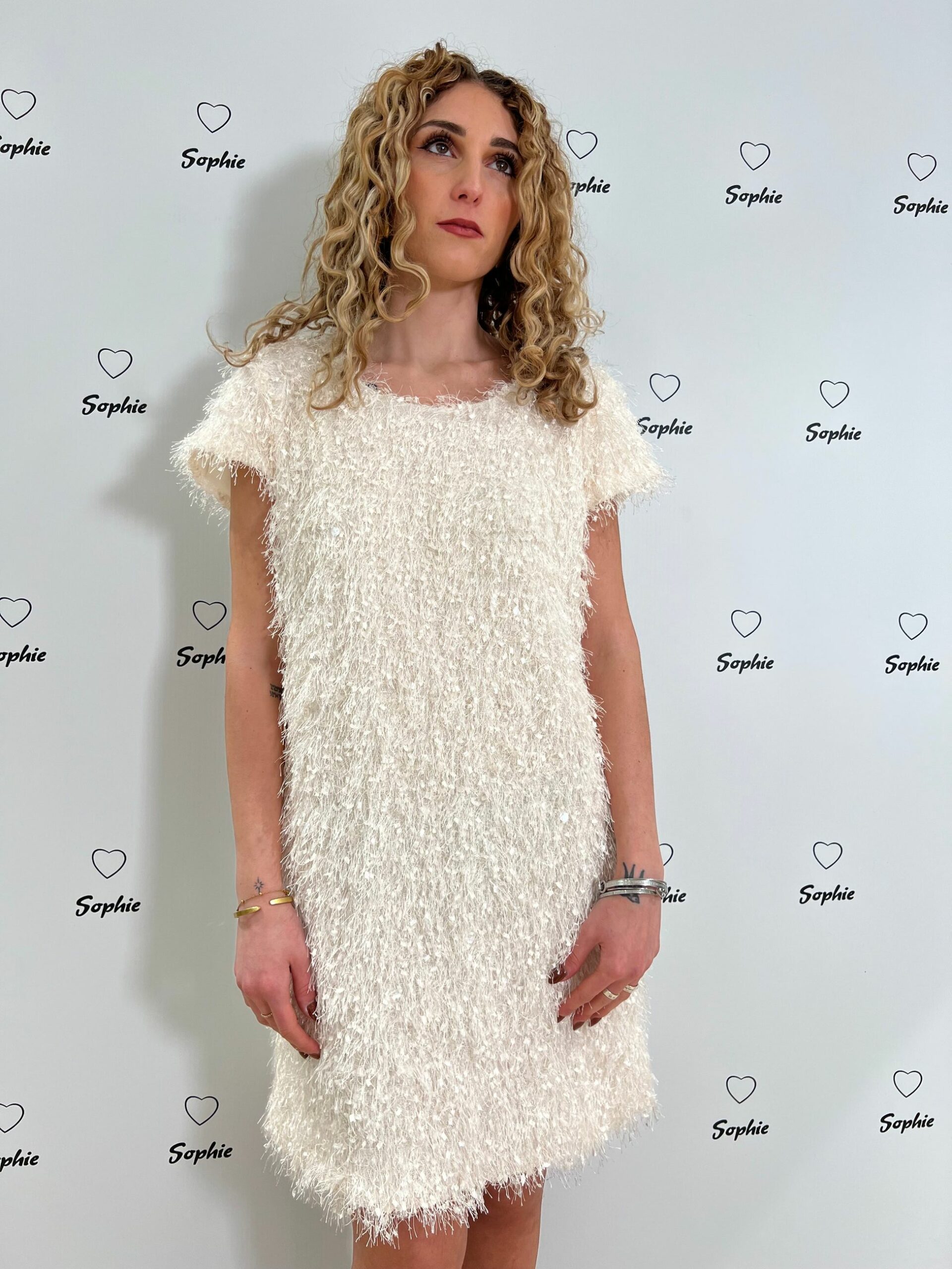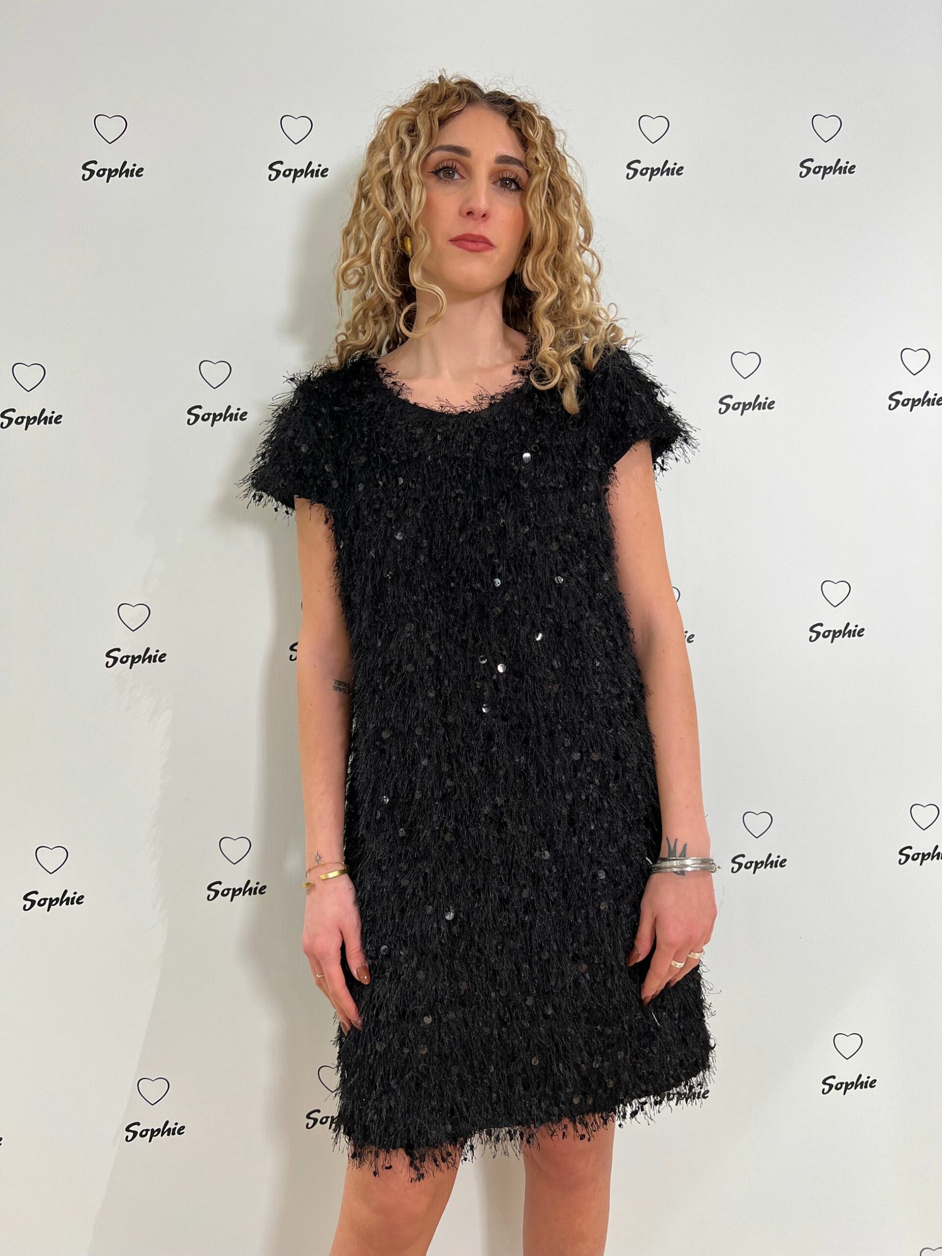 ABITO A MANICA CORTA CON PELO E PAILETTES