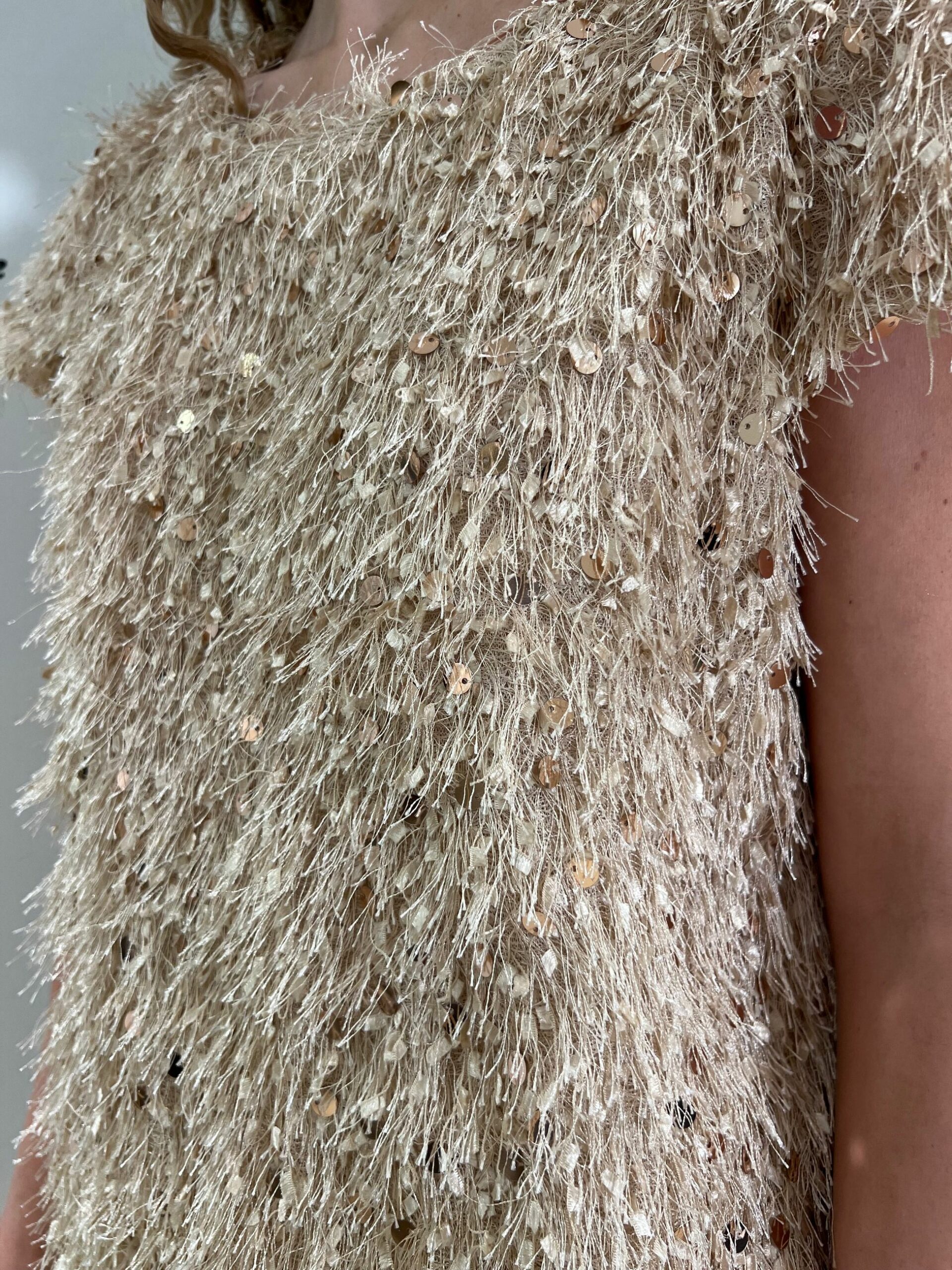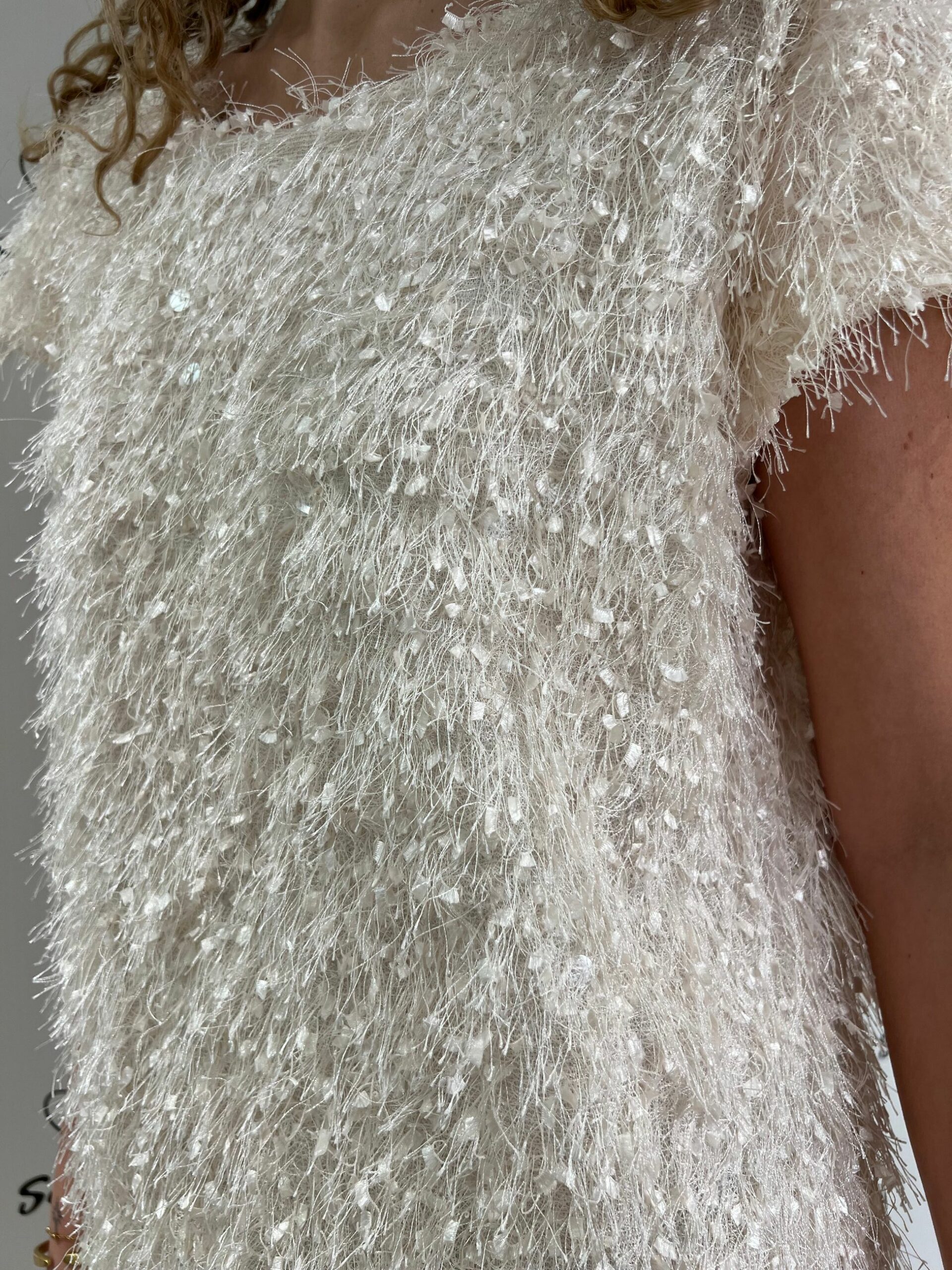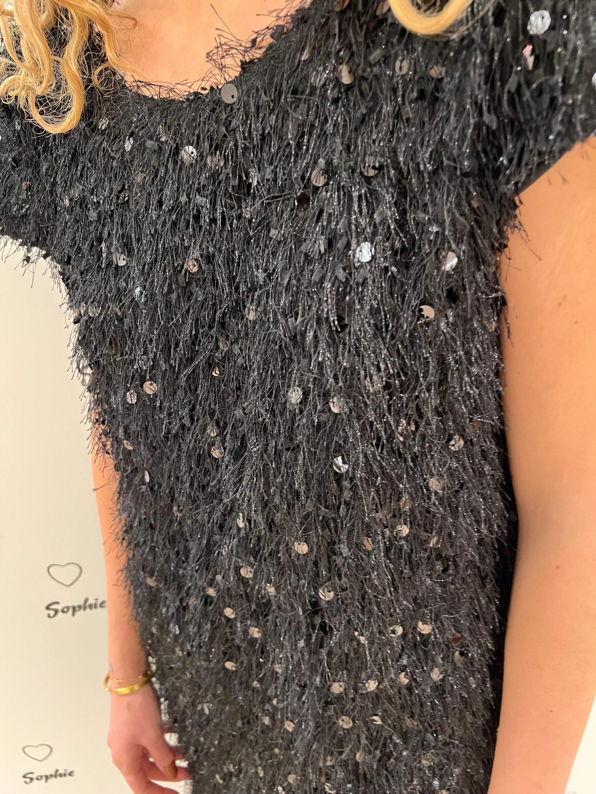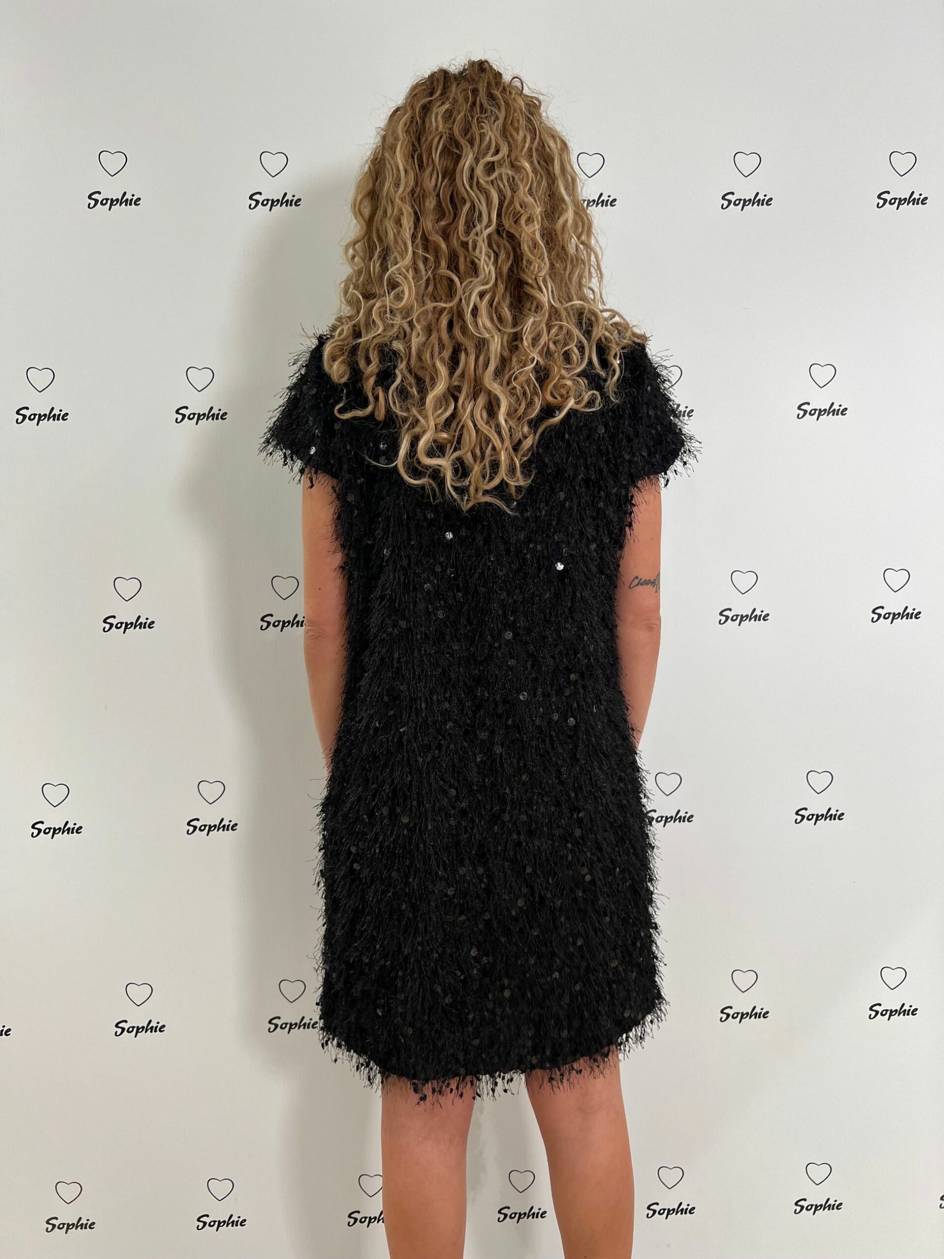 ABITO A MANICA CORTA CON PELO E PAILETTES