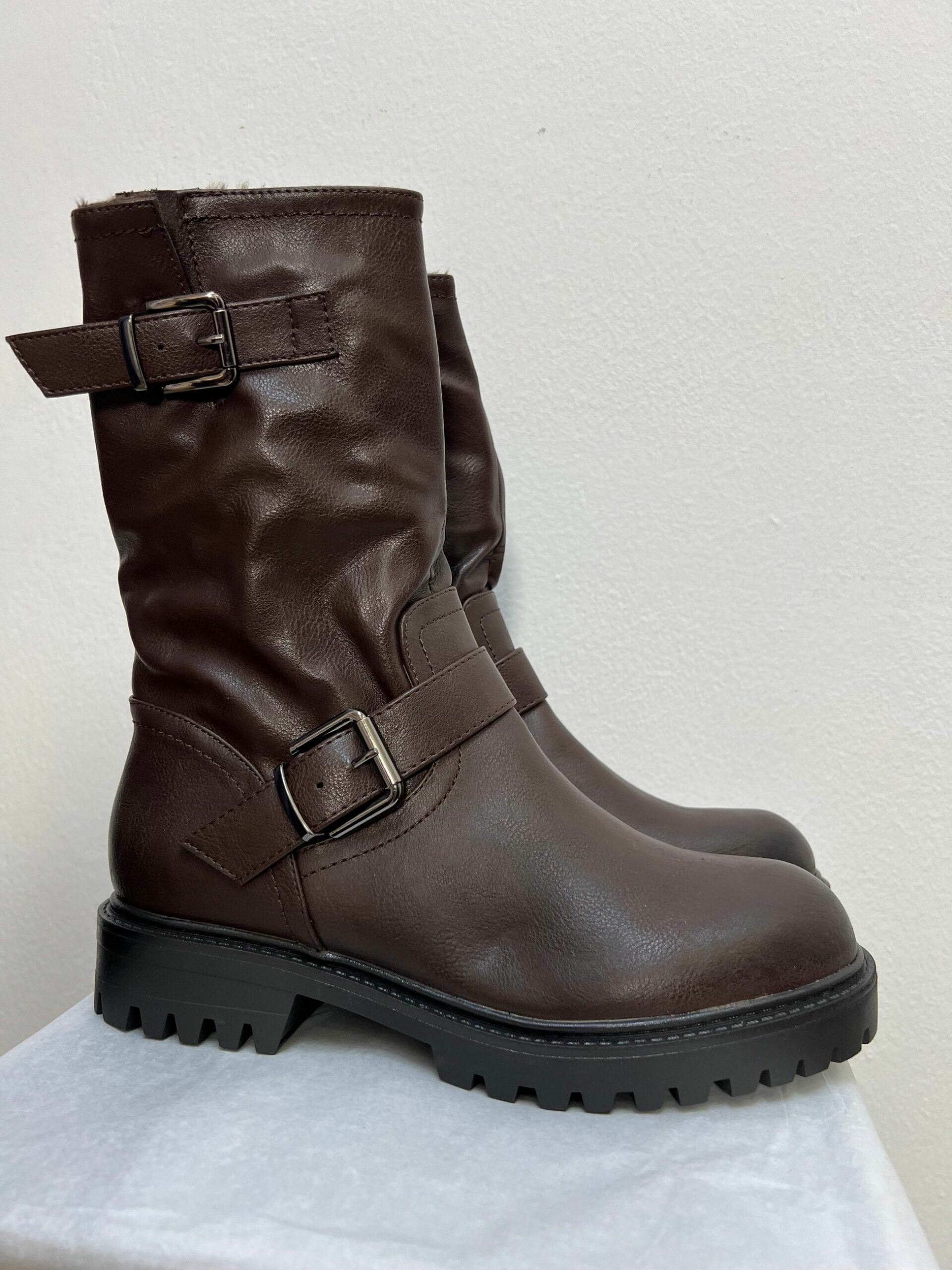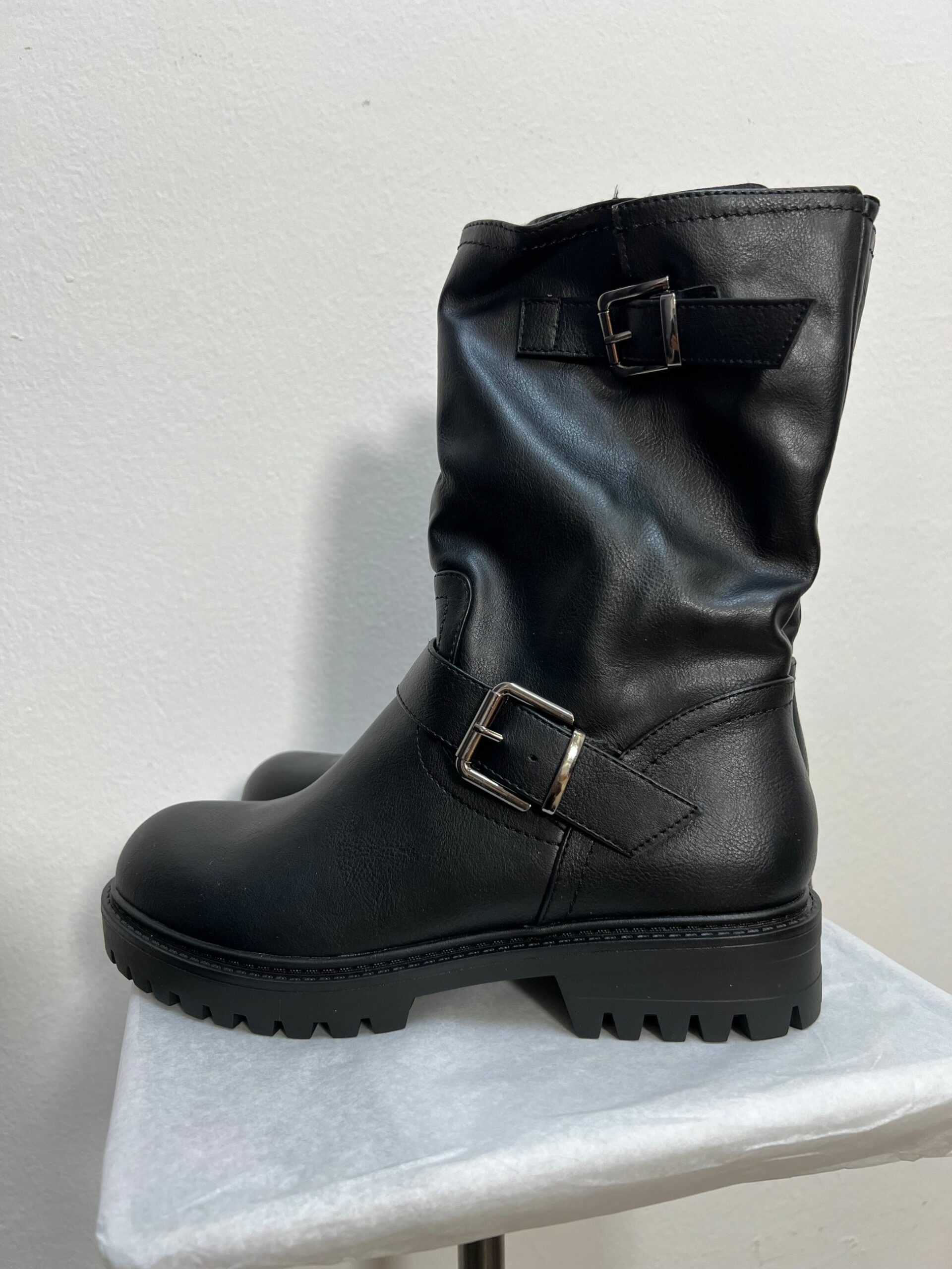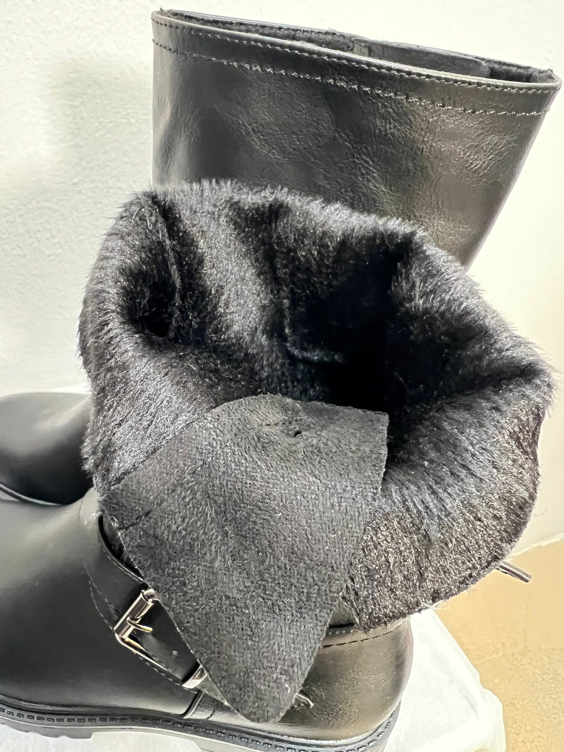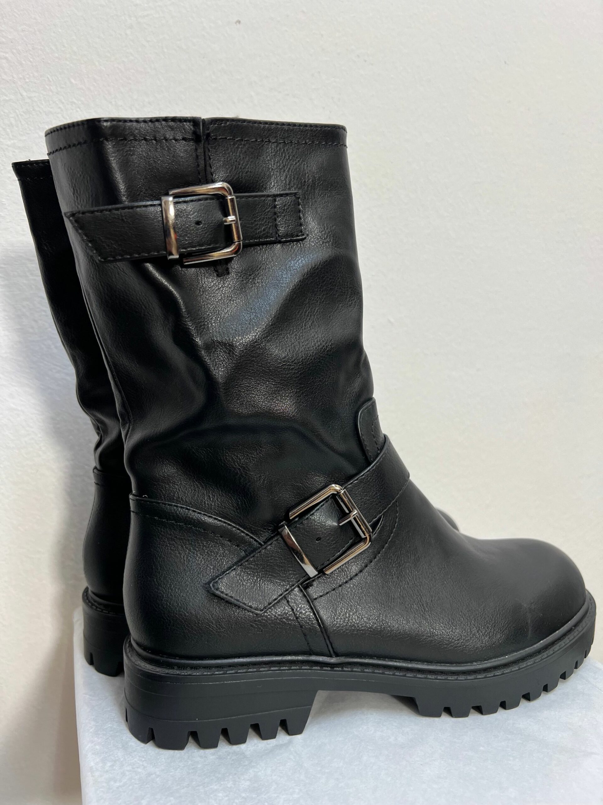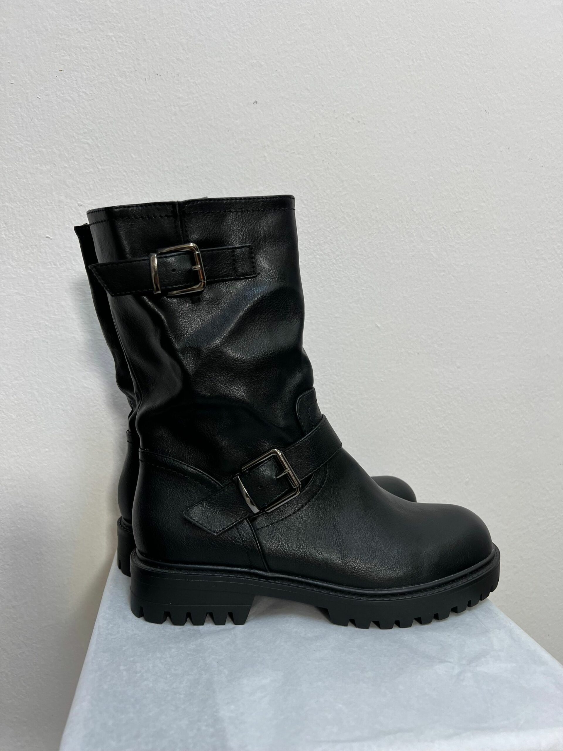 STIVALETTO TIPO ANFIBIO CON FIBBIE E SUOLA IN GOMMA