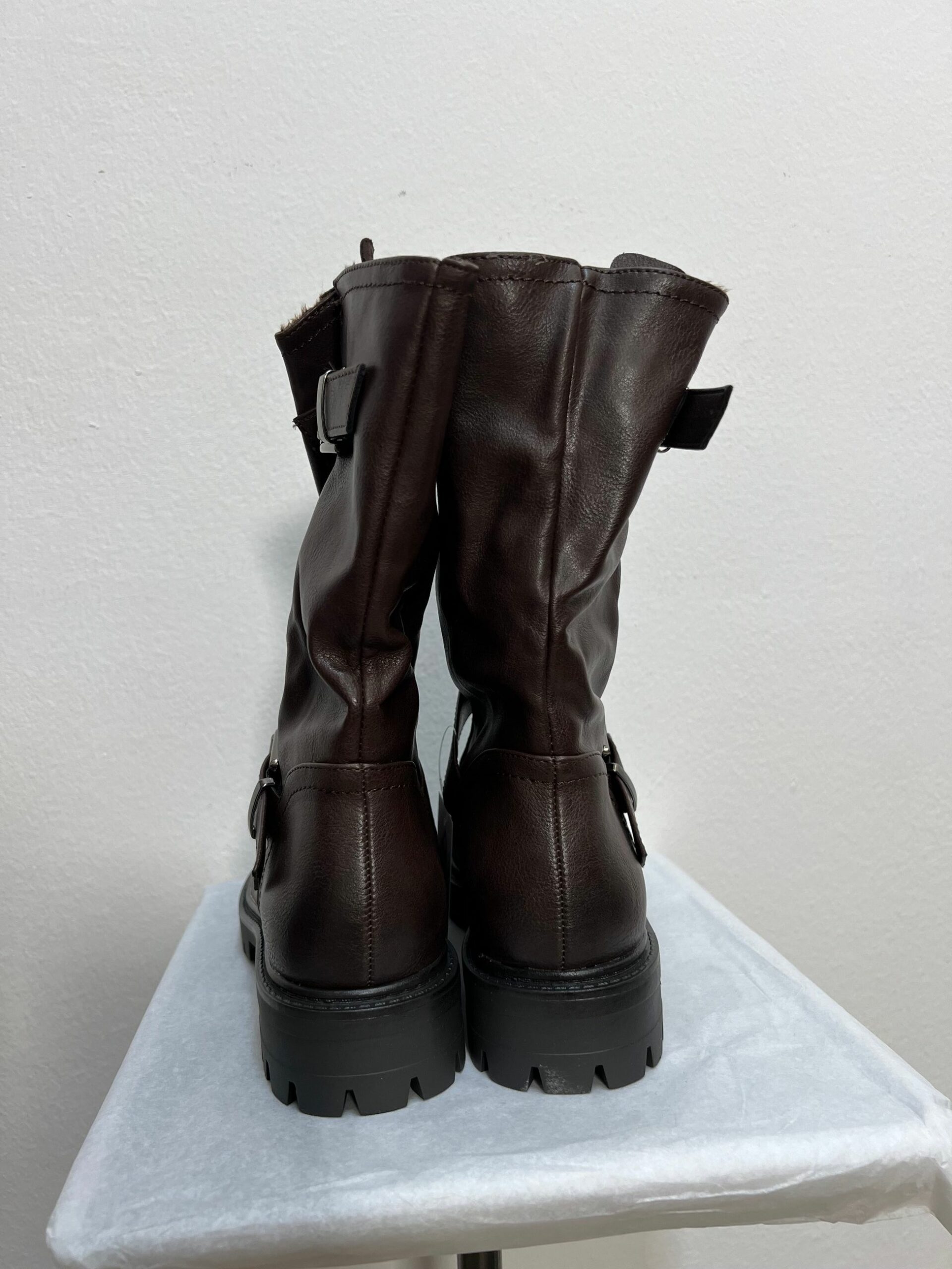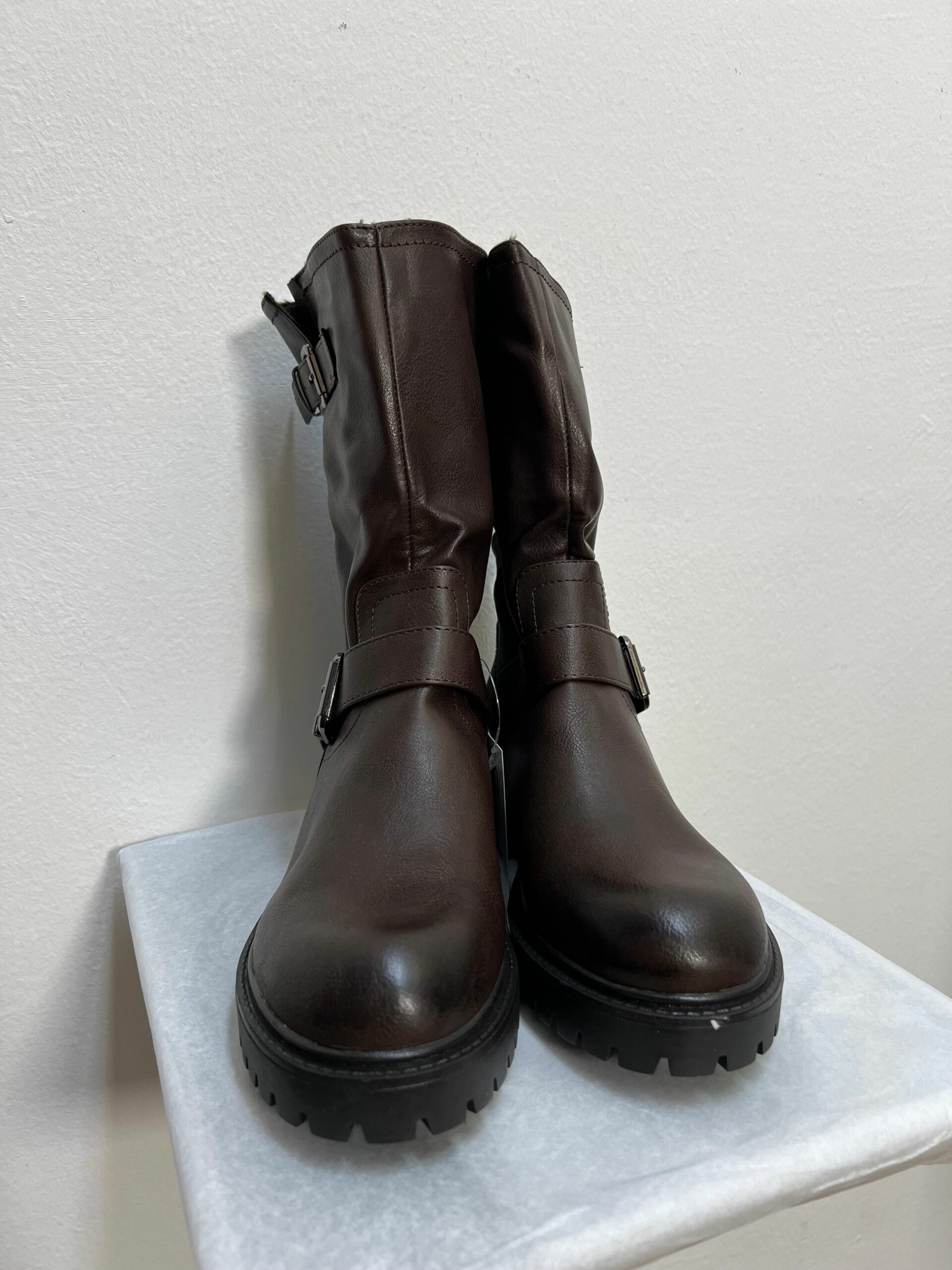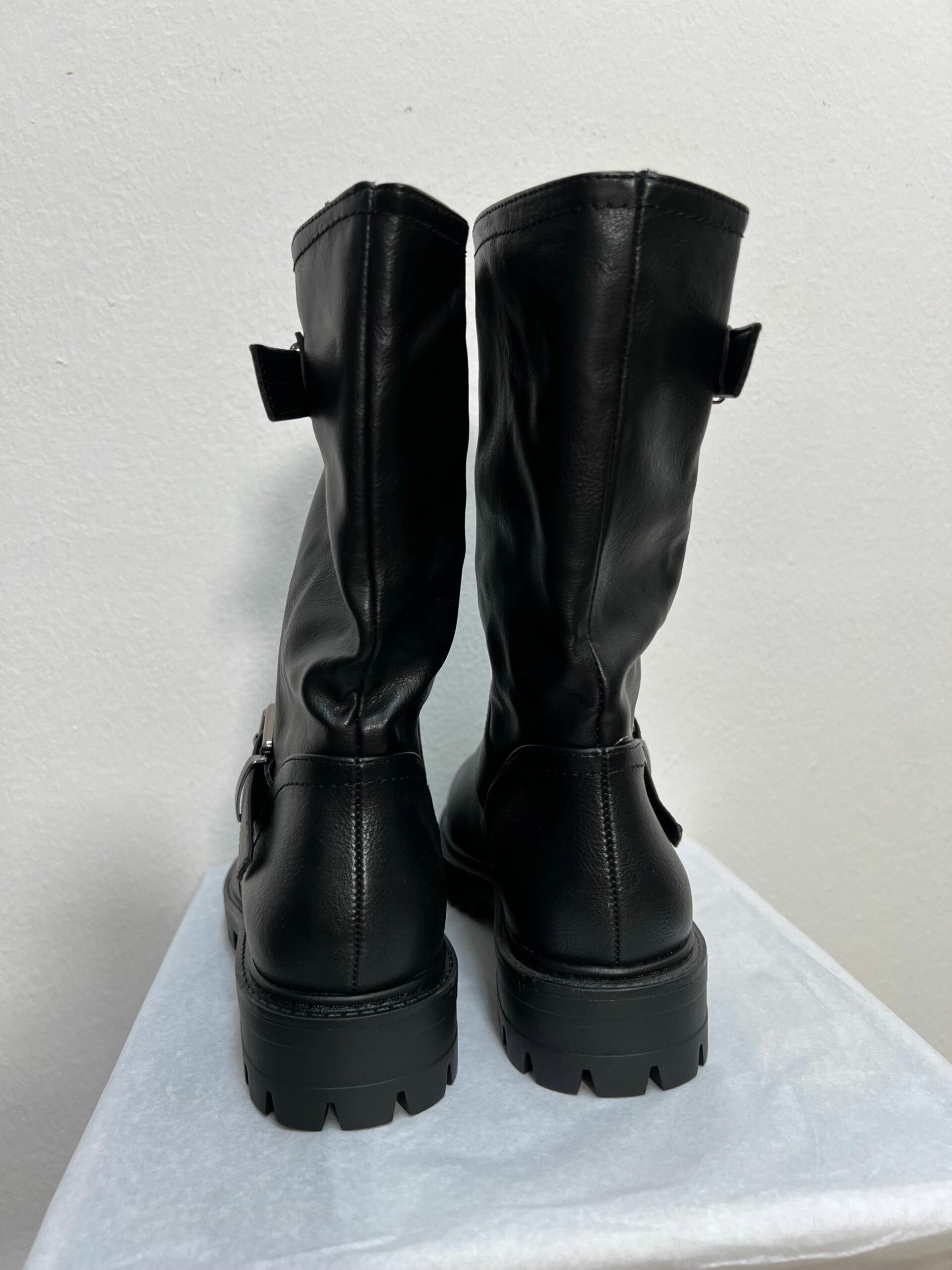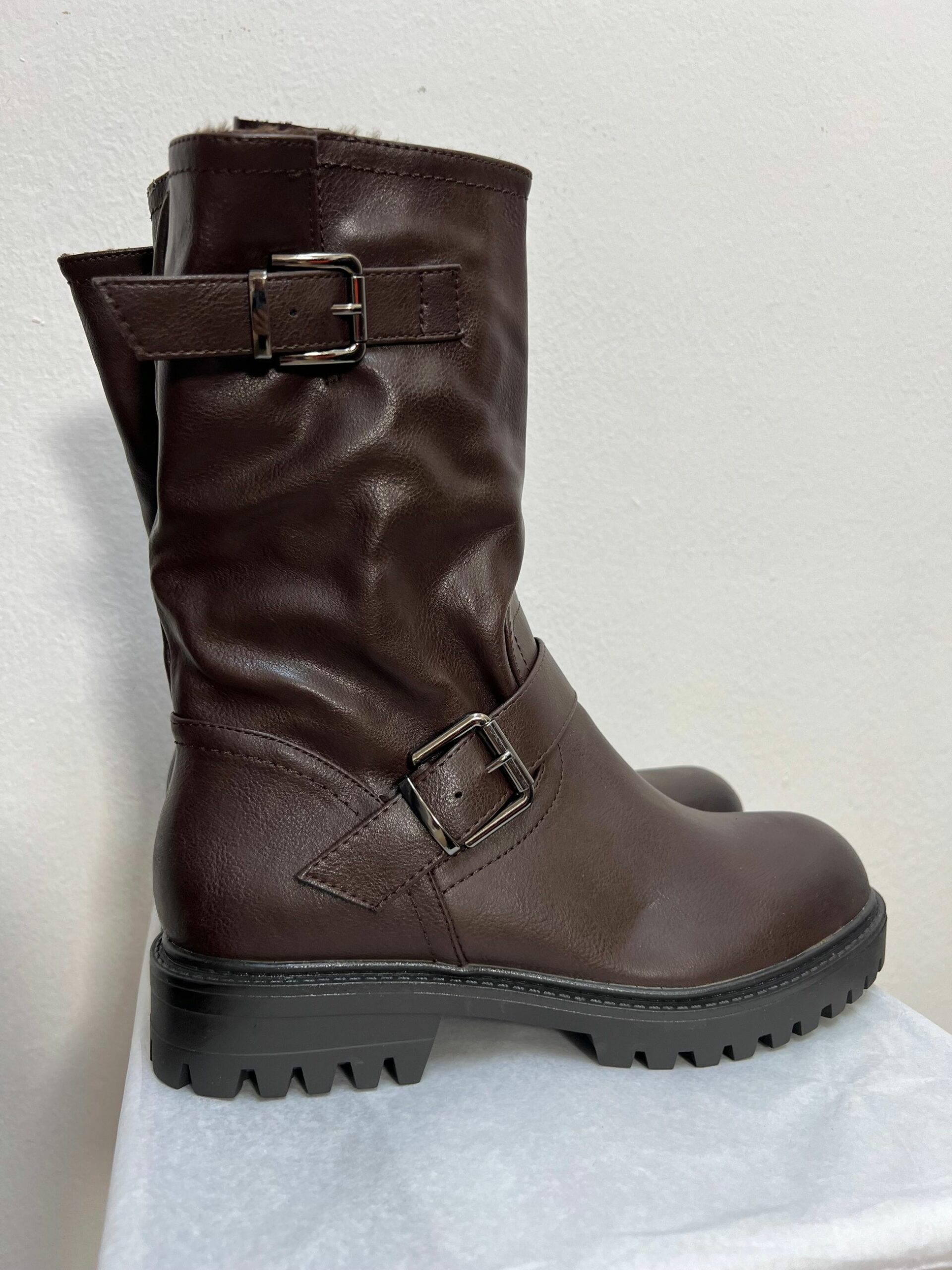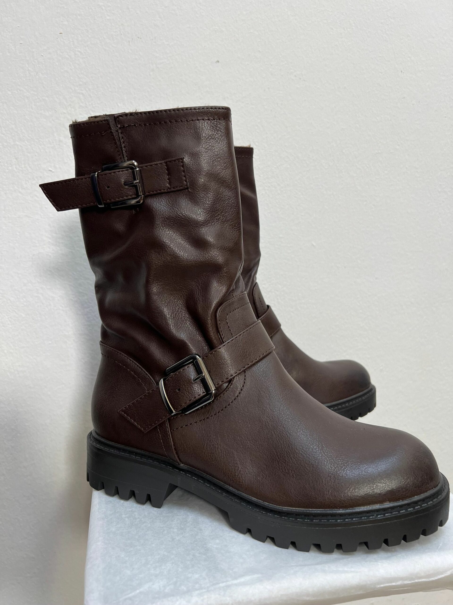 STIVALETTO TIPO ANFIBIO CON FIBBIE E SUOLA IN GOMMA