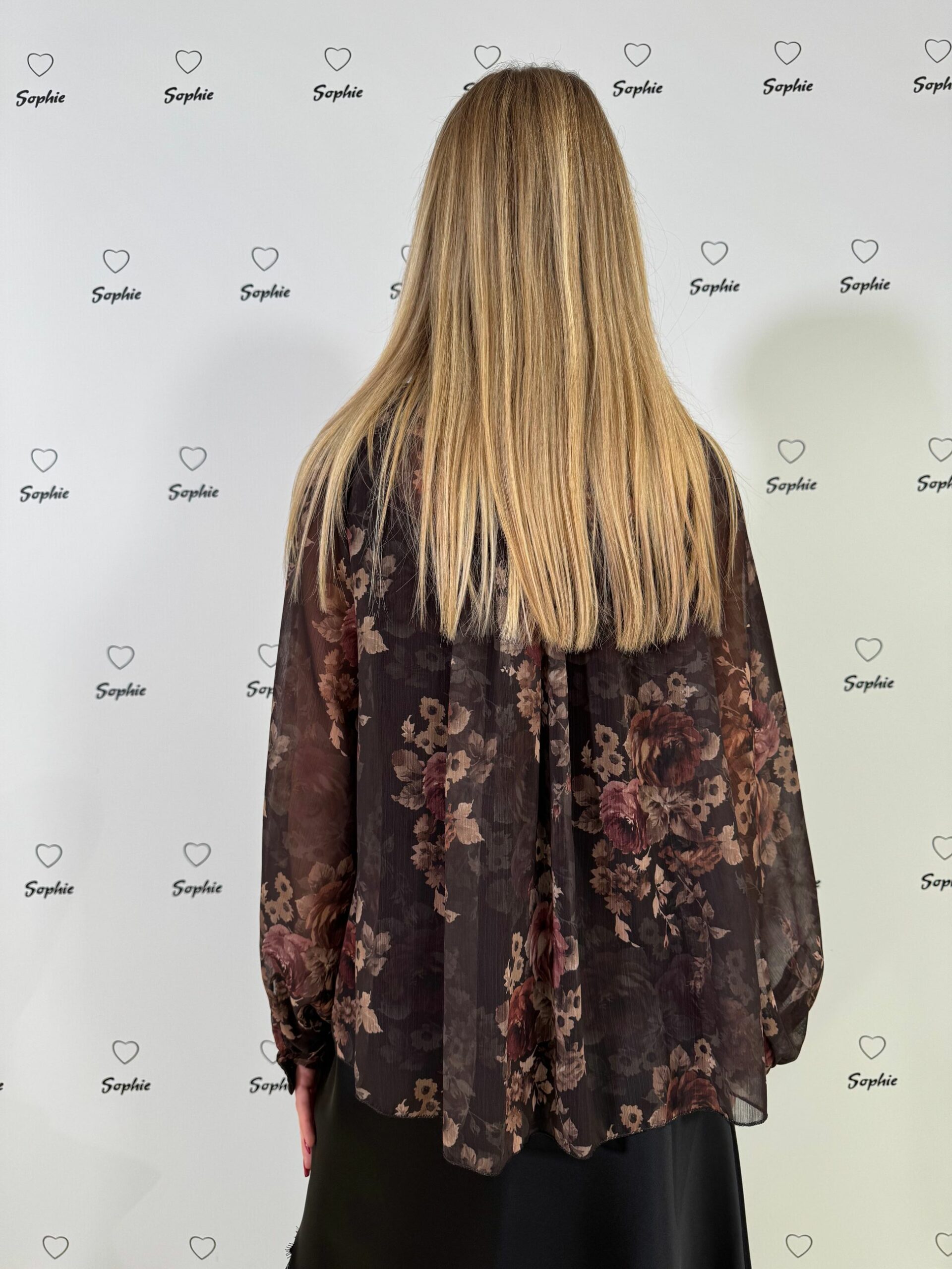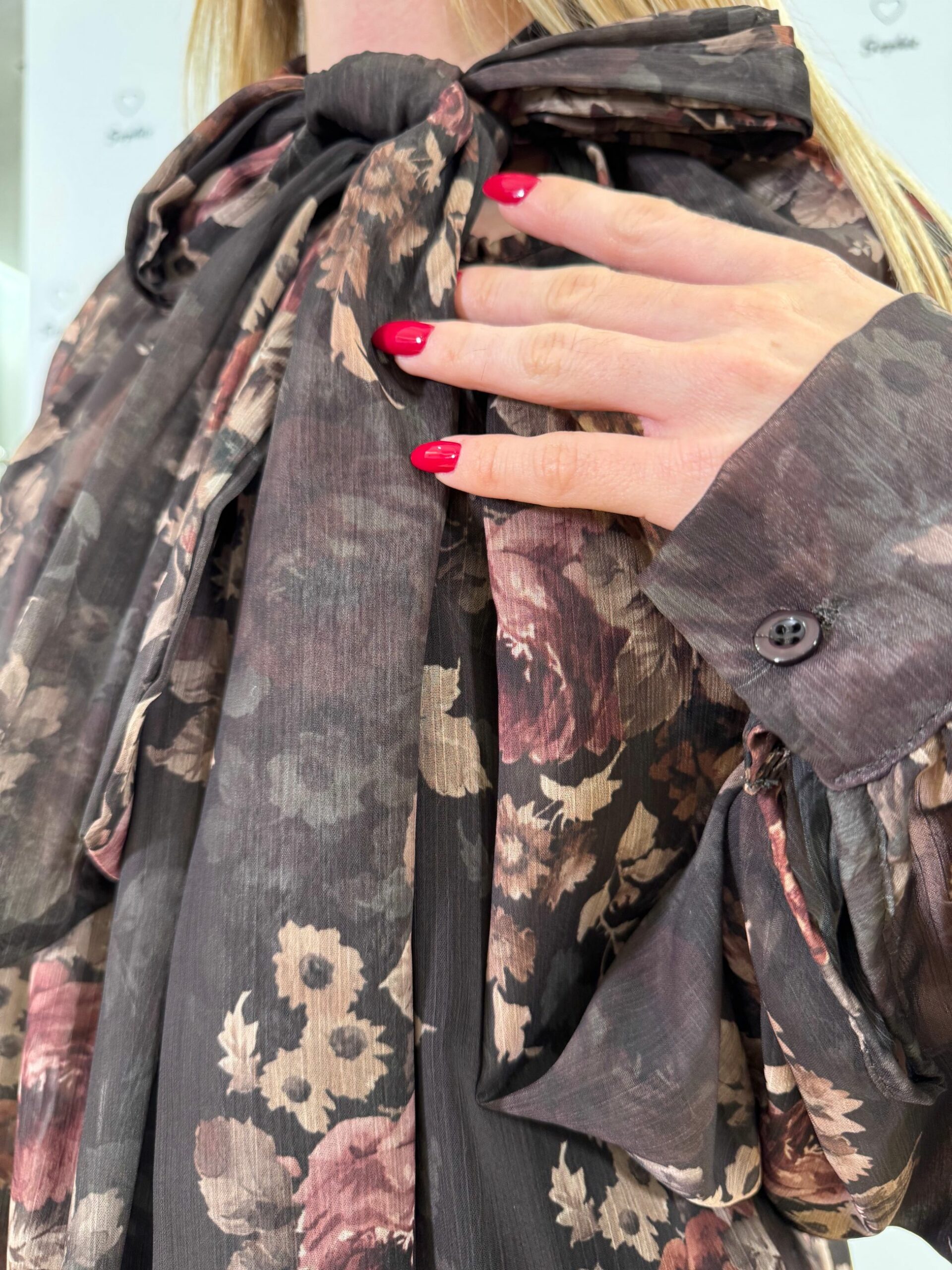 BLUSA IN GEORGETTE IN FANTASIA CON COLLO A SCIARPINA DA ANNODARE