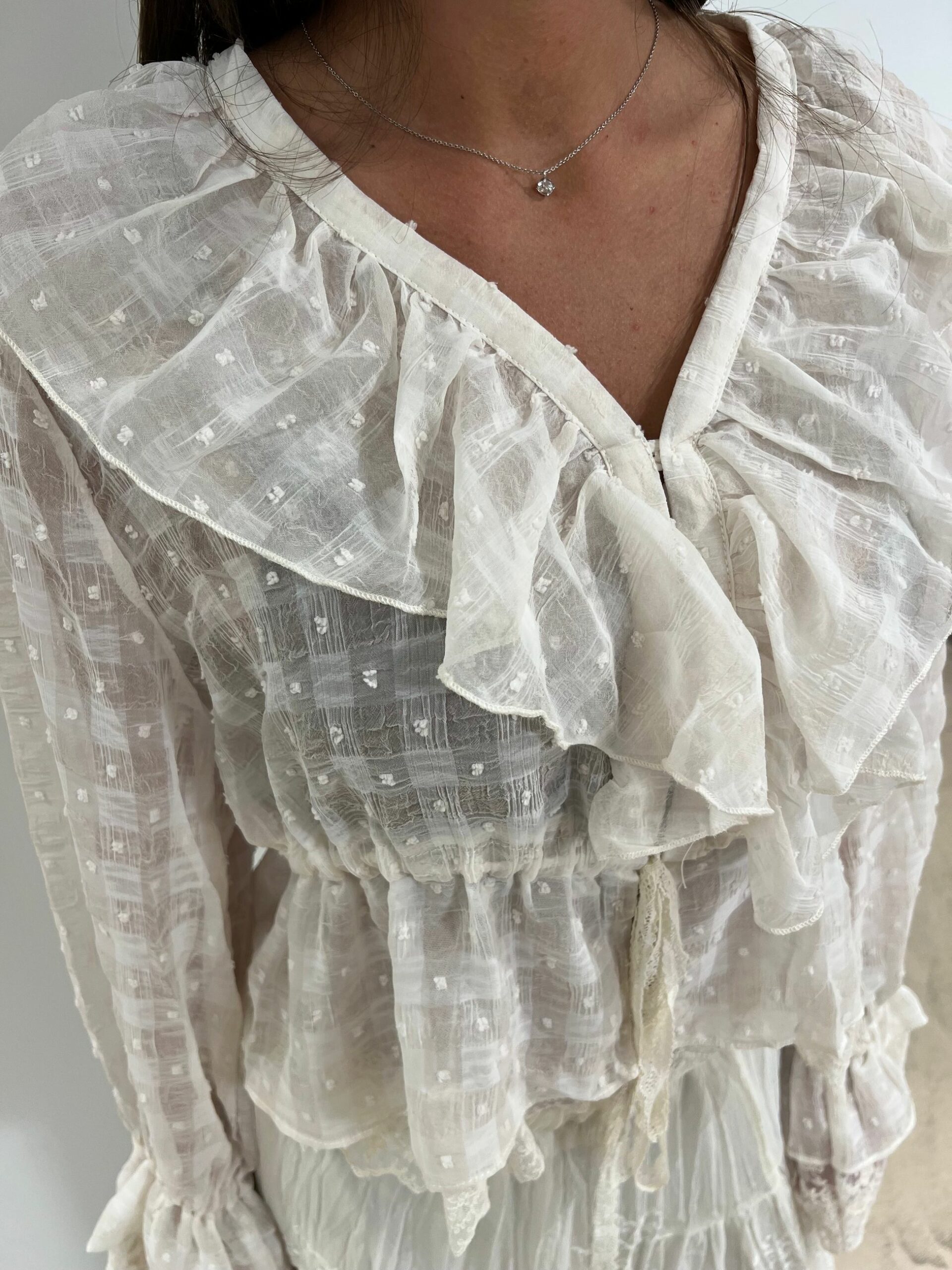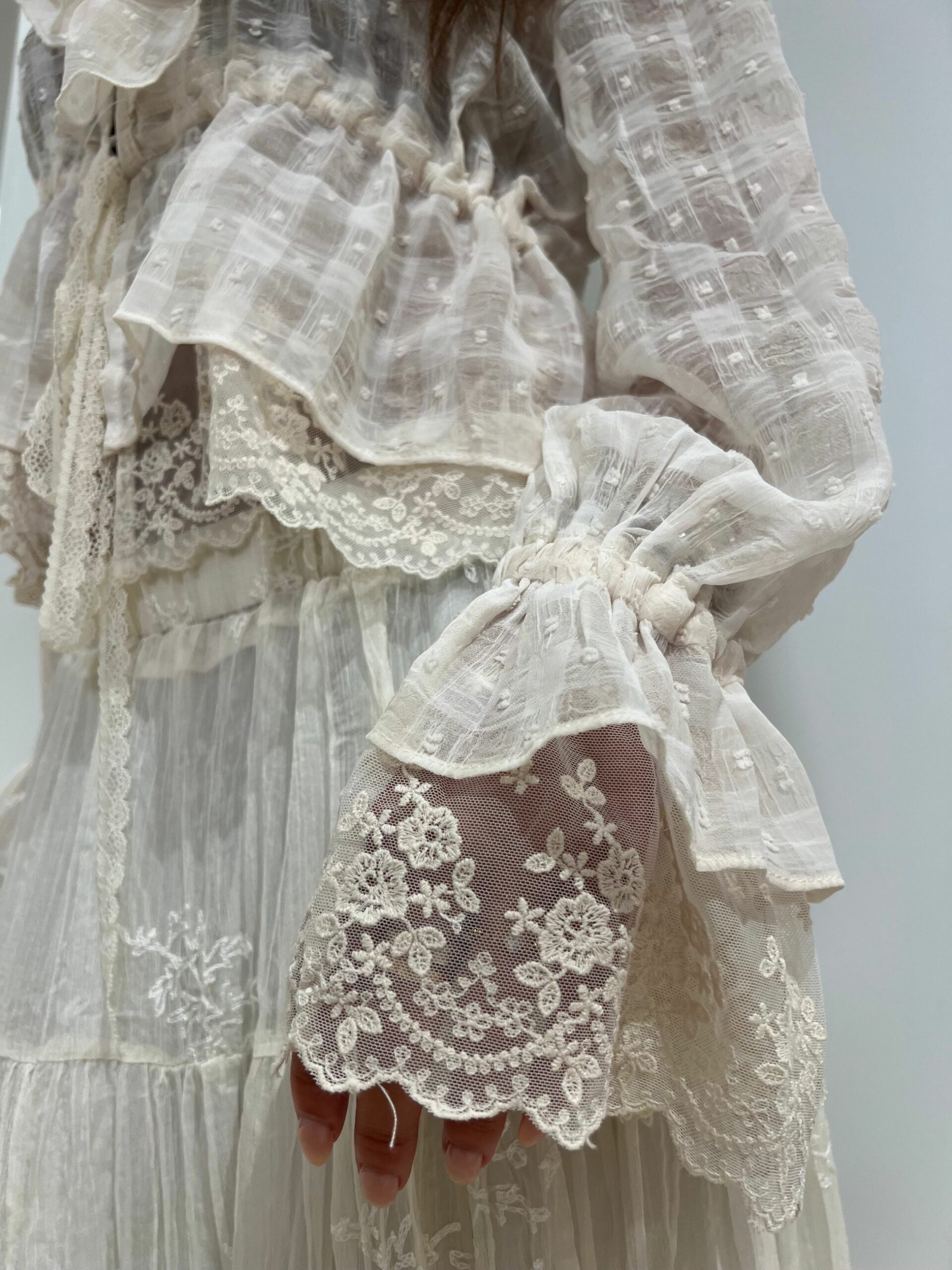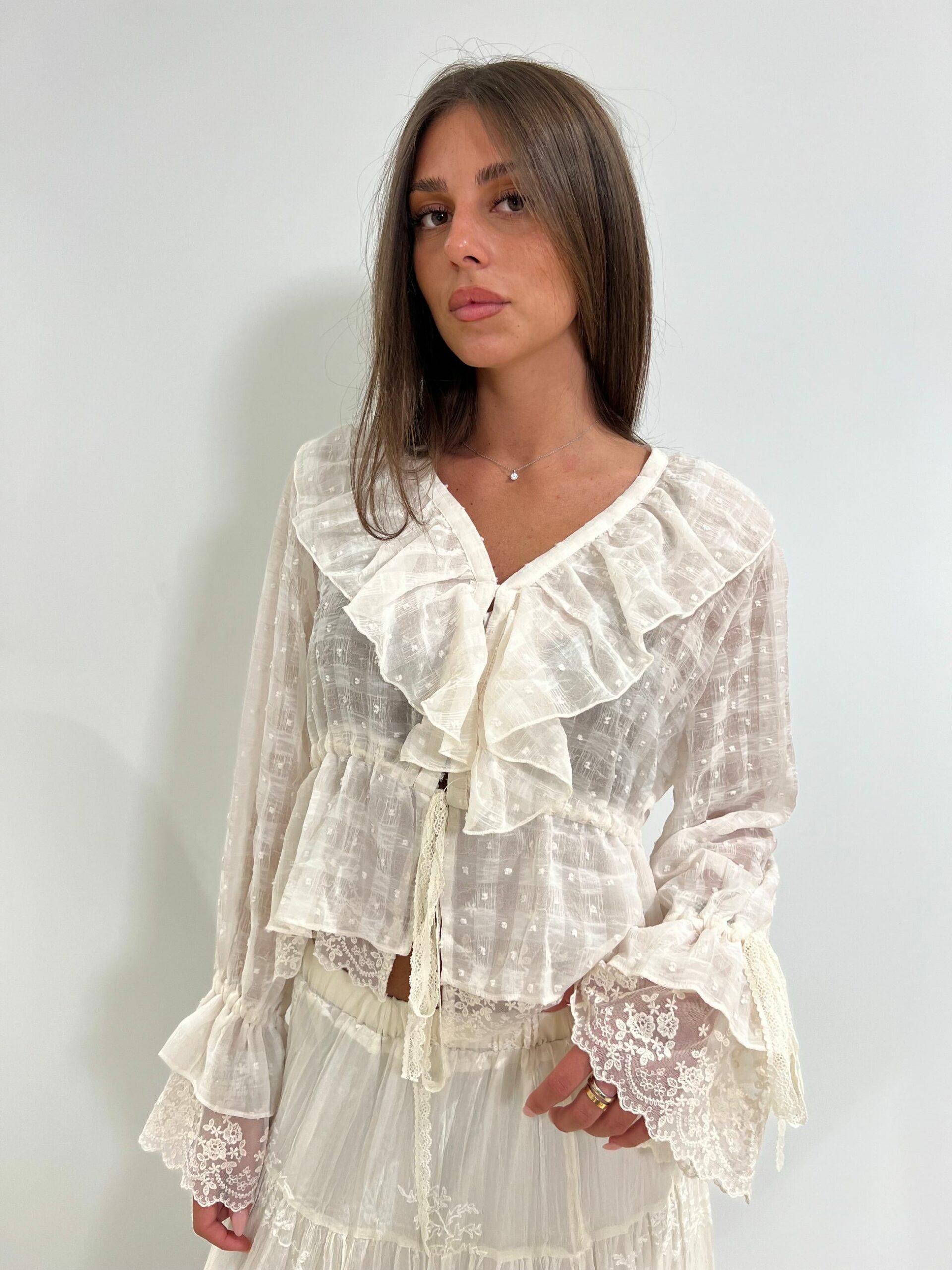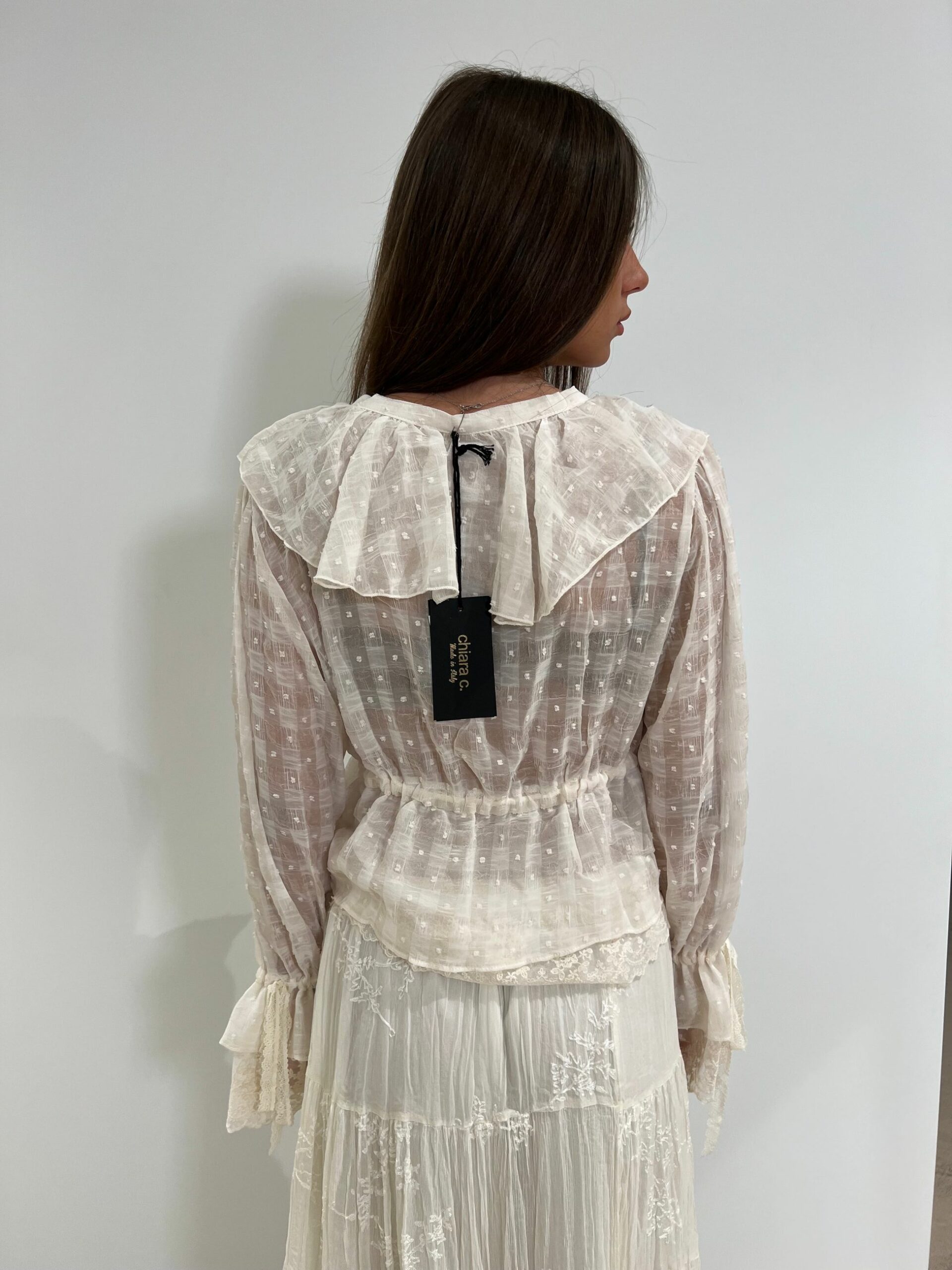 CAMICIA IN TULLE E PIZZO CON ROUGES