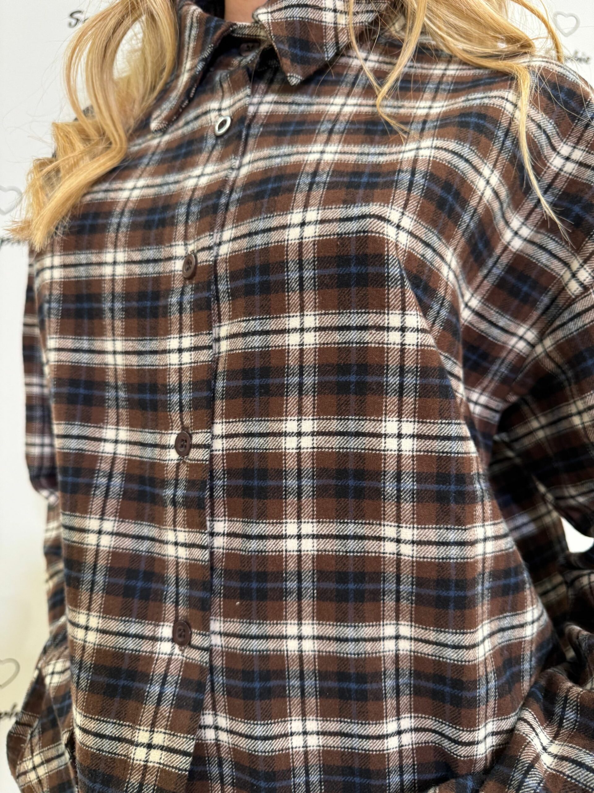 CAMICIA IN COTONE TIPO FLANELLA LARGA E CORTA