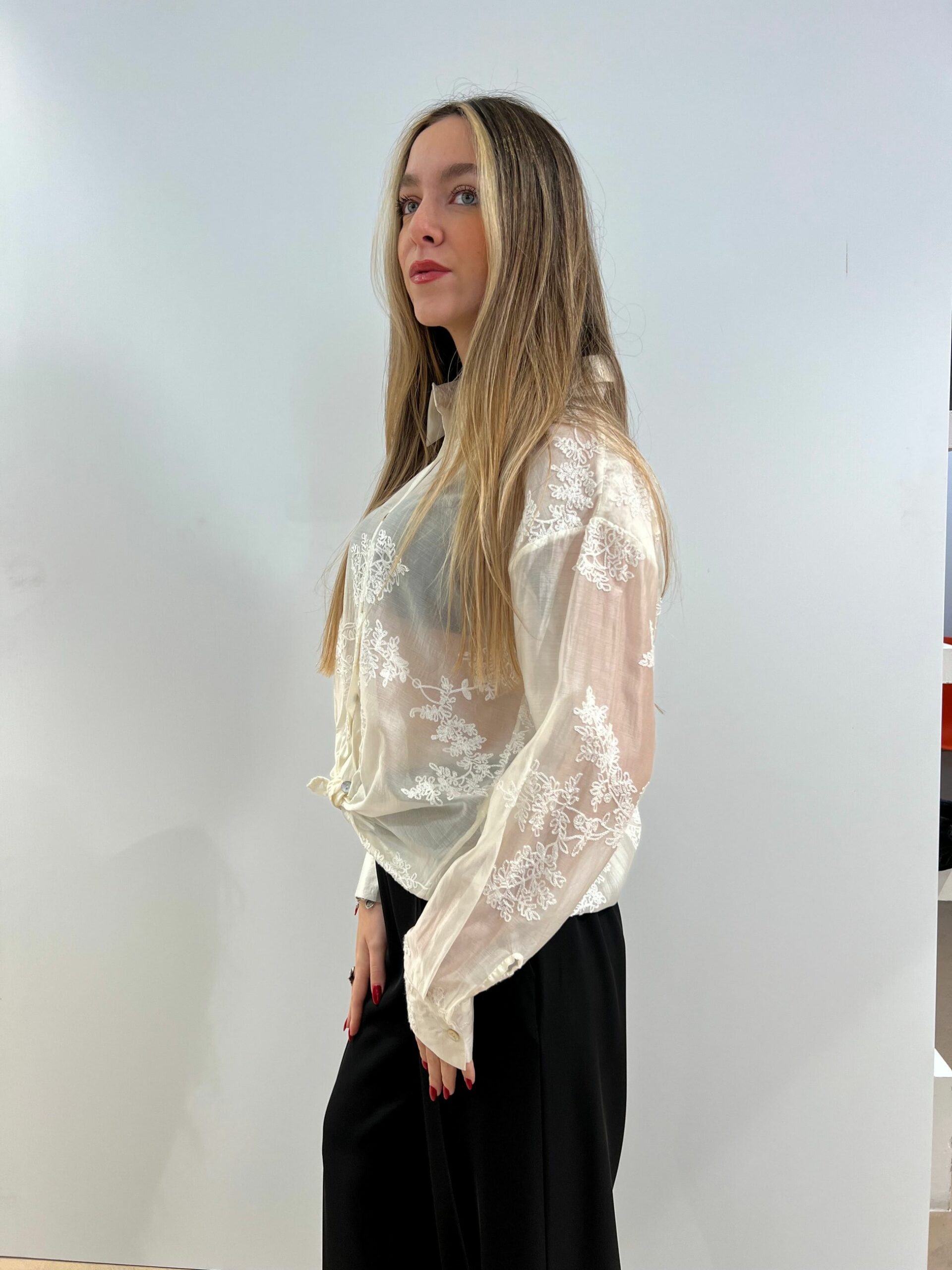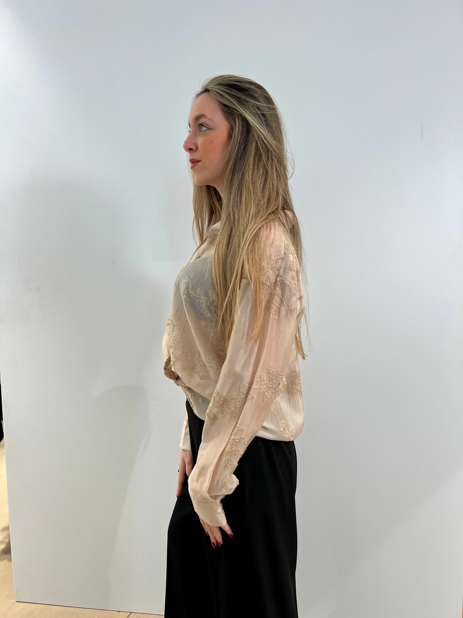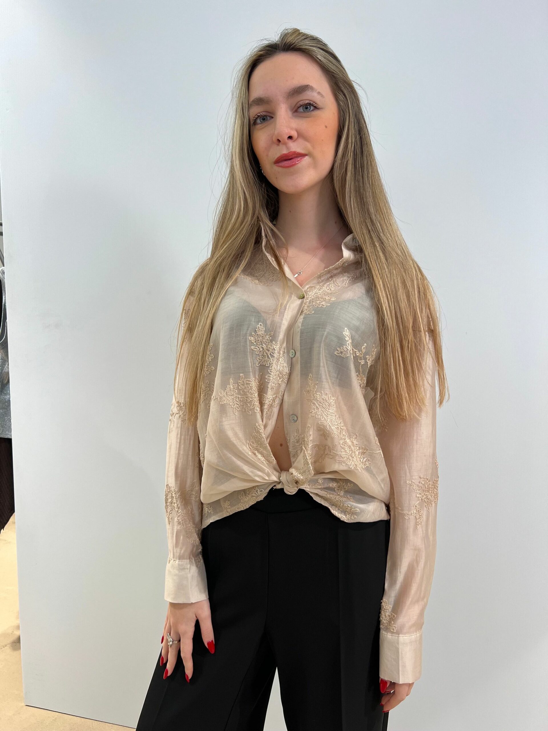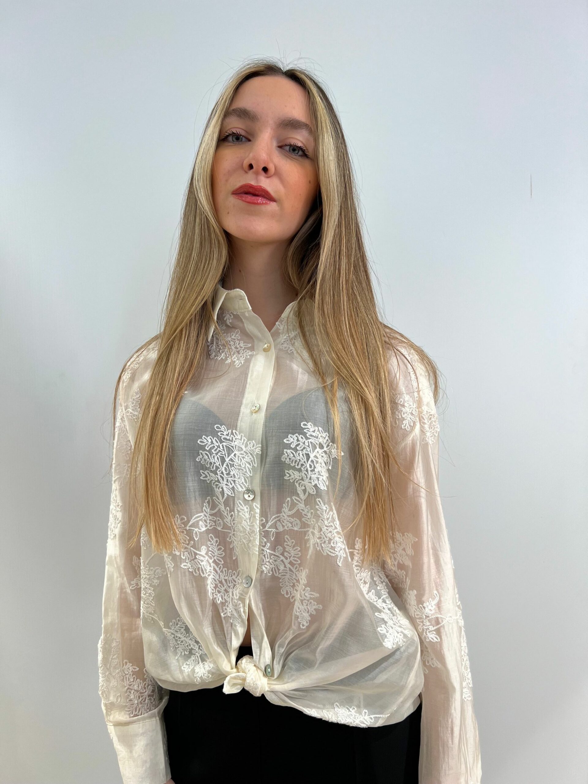 CAMICIA RICAMATA TONO SU TONO IN LYOCELL SEMITRASPARENTE