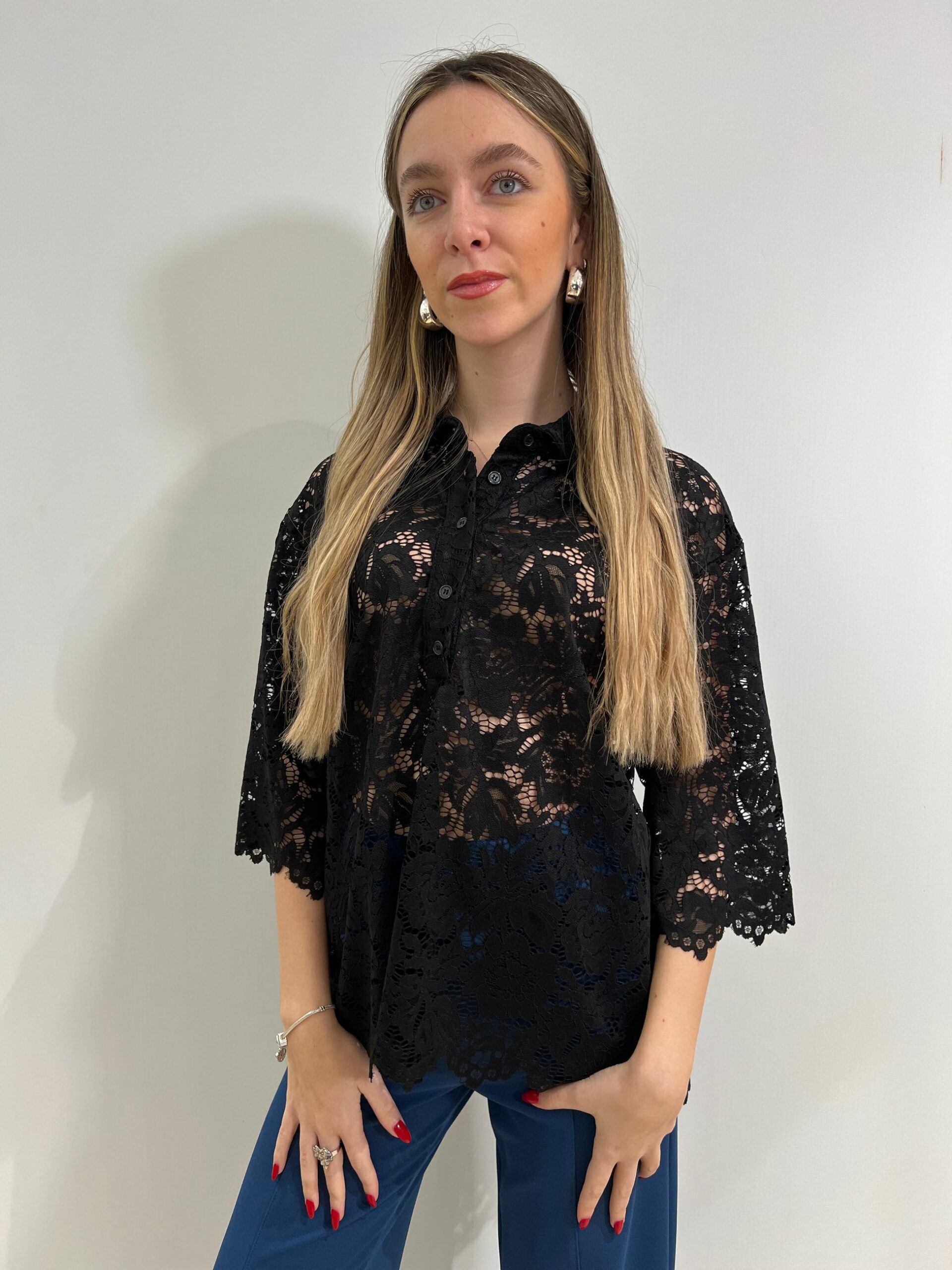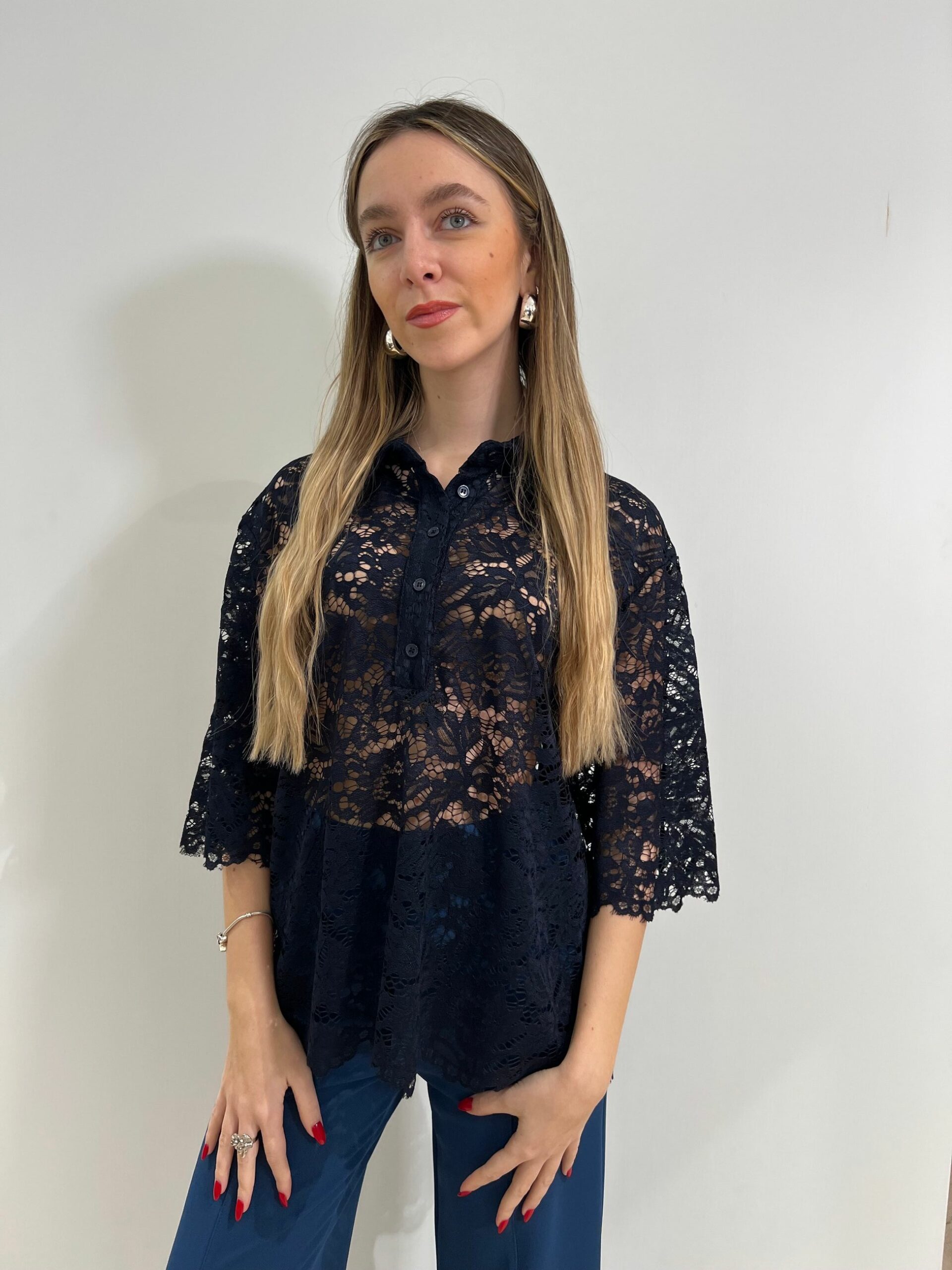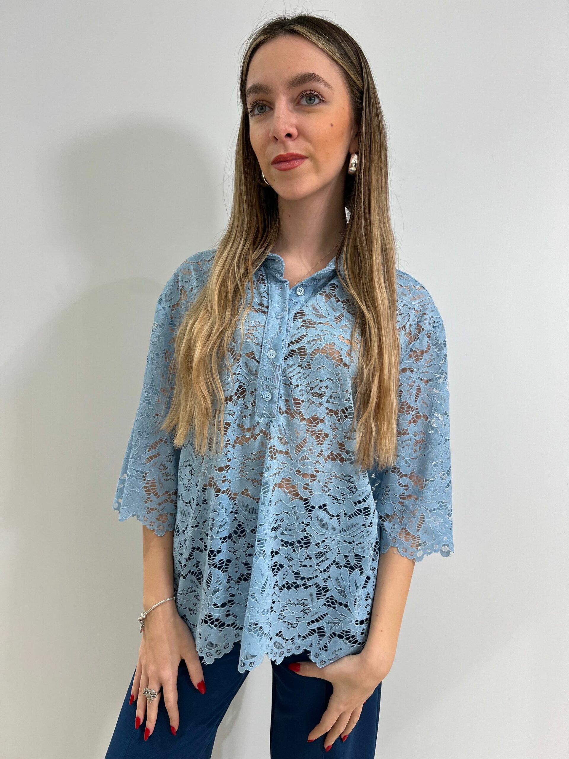 CAMICIA-POLO IN PIZZO MANICA 3/4