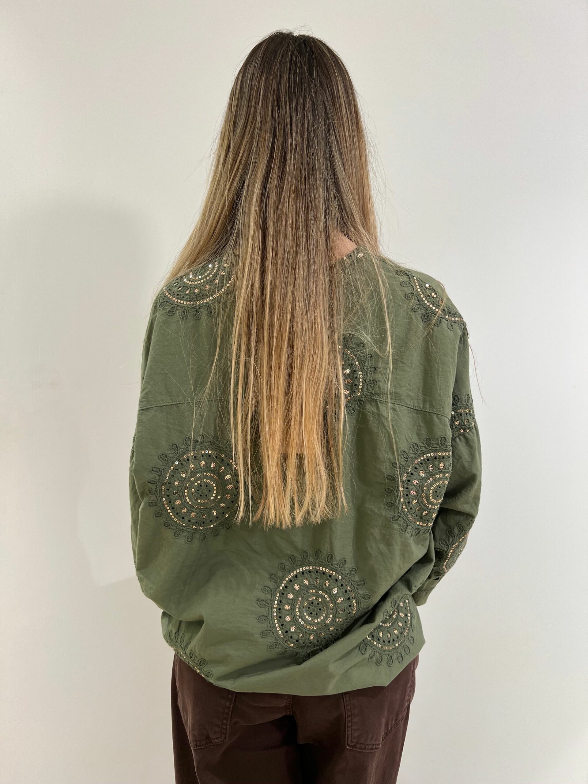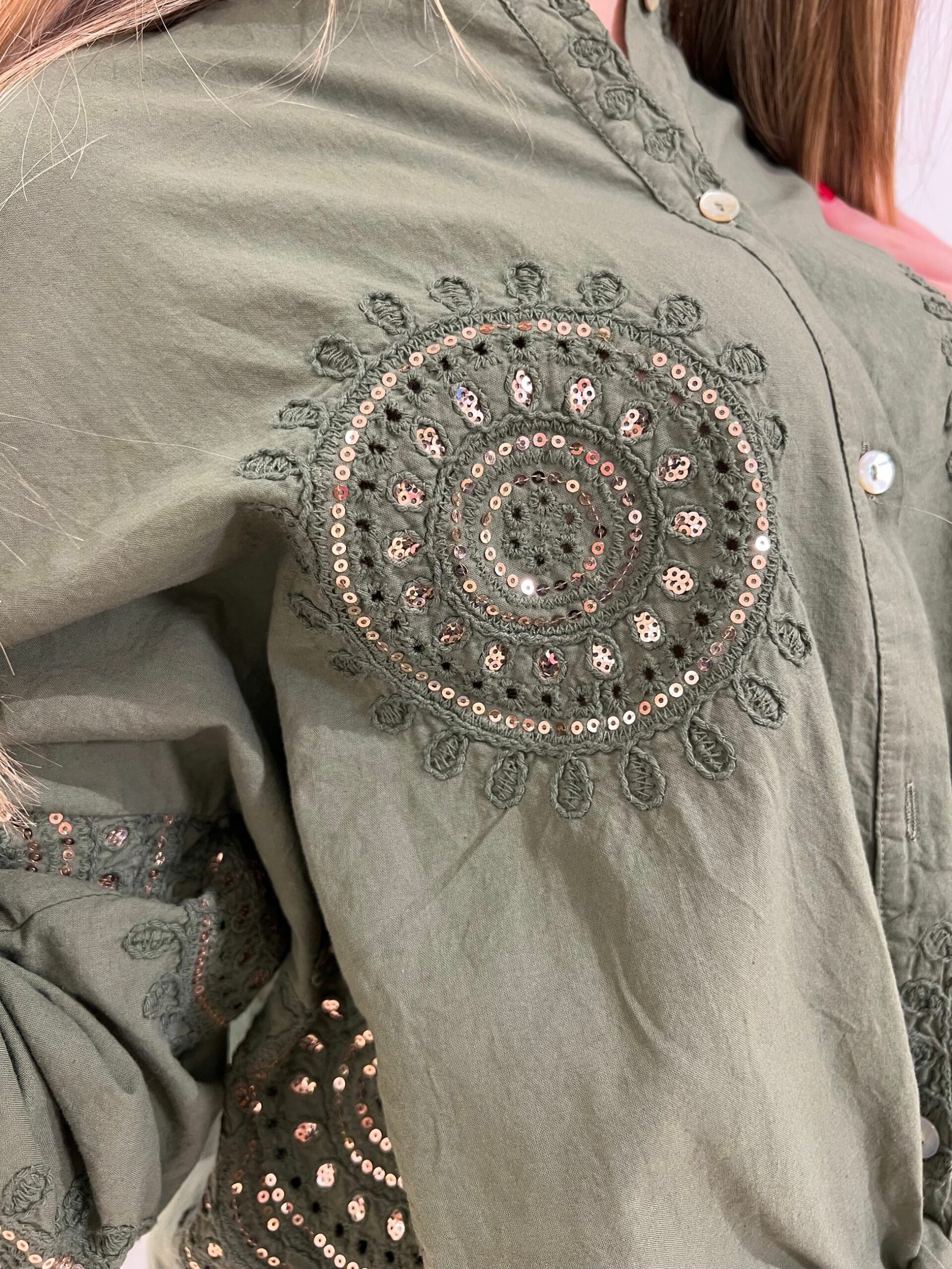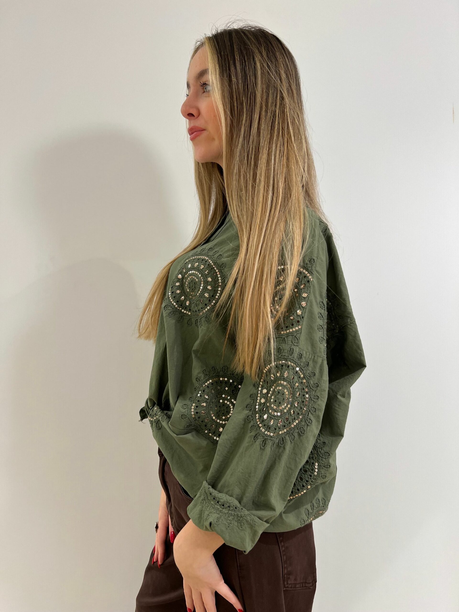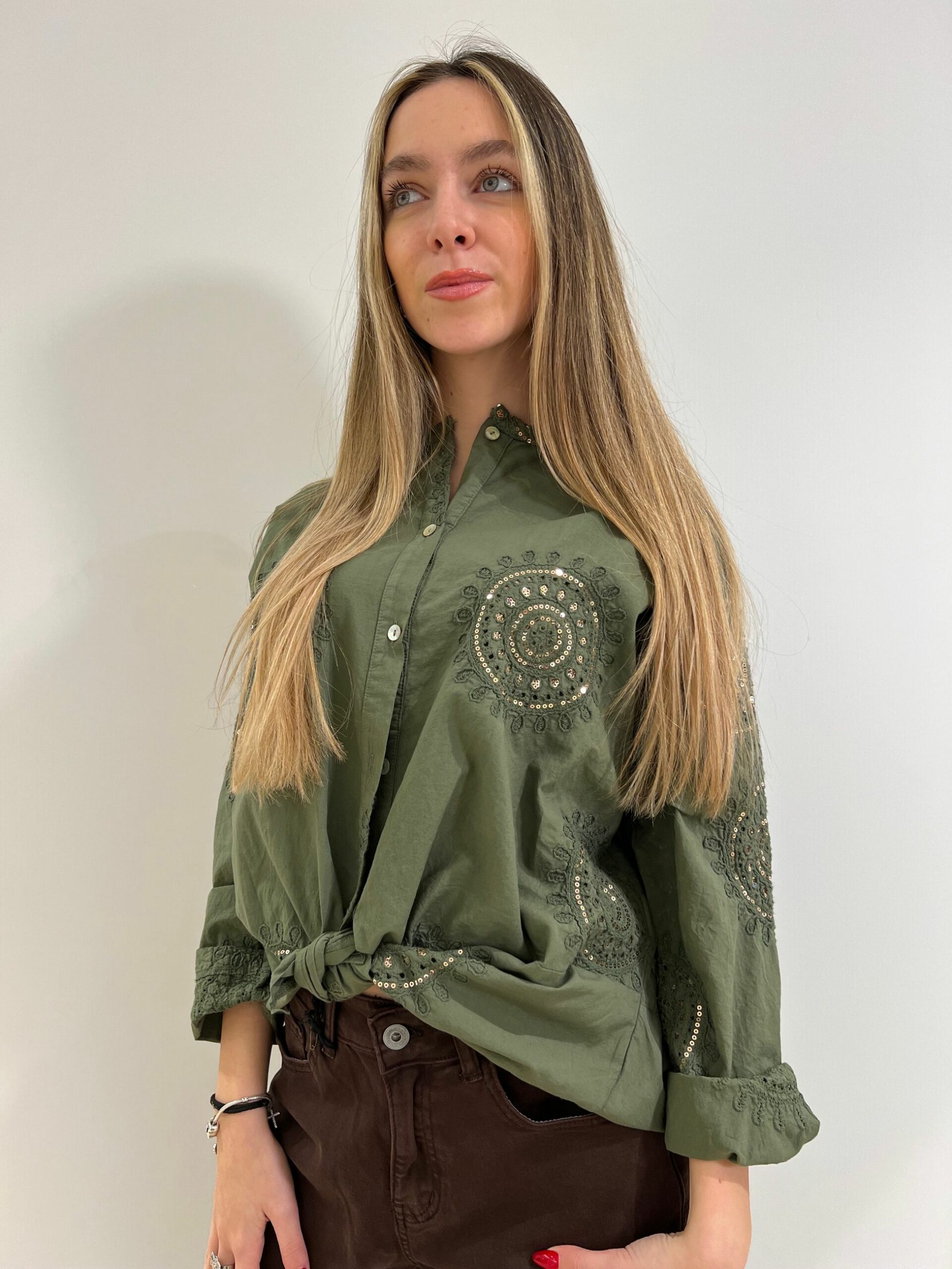 CAMICIA IN COTONE CON TICAMI E PAILETTES