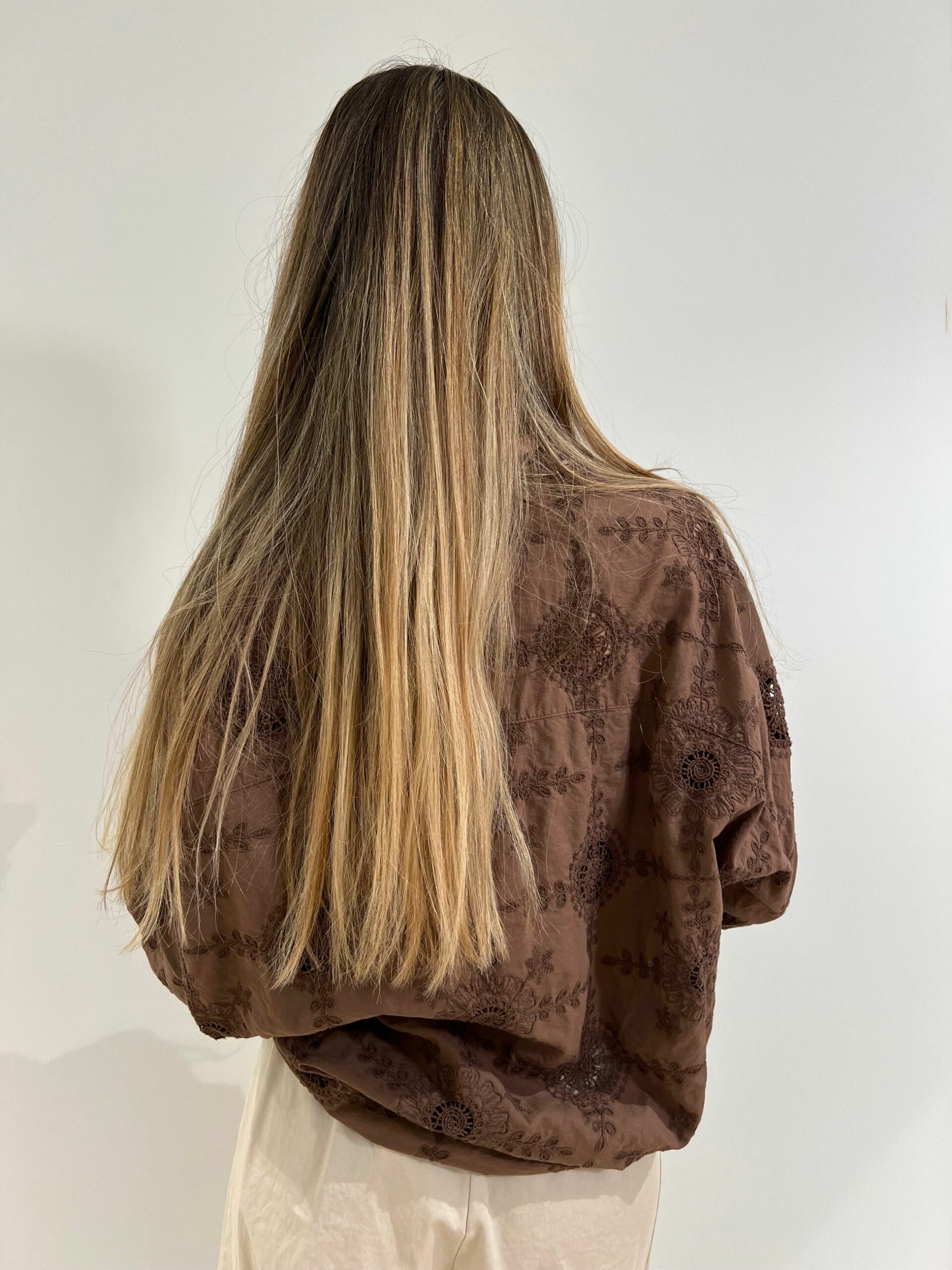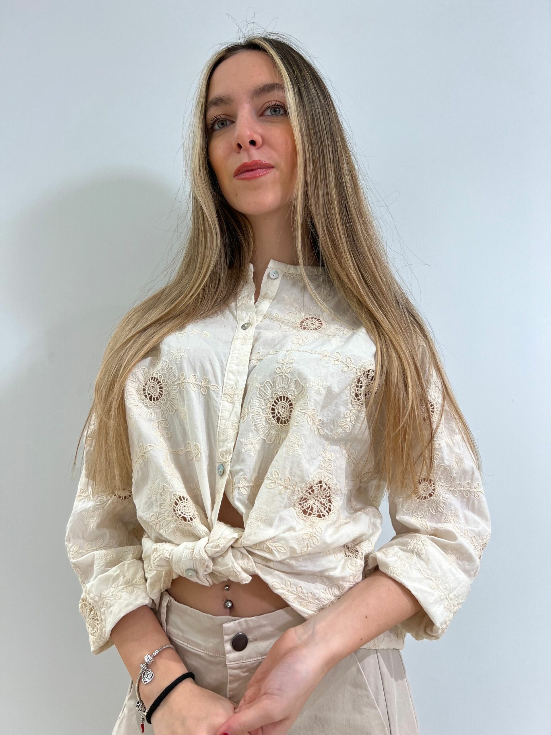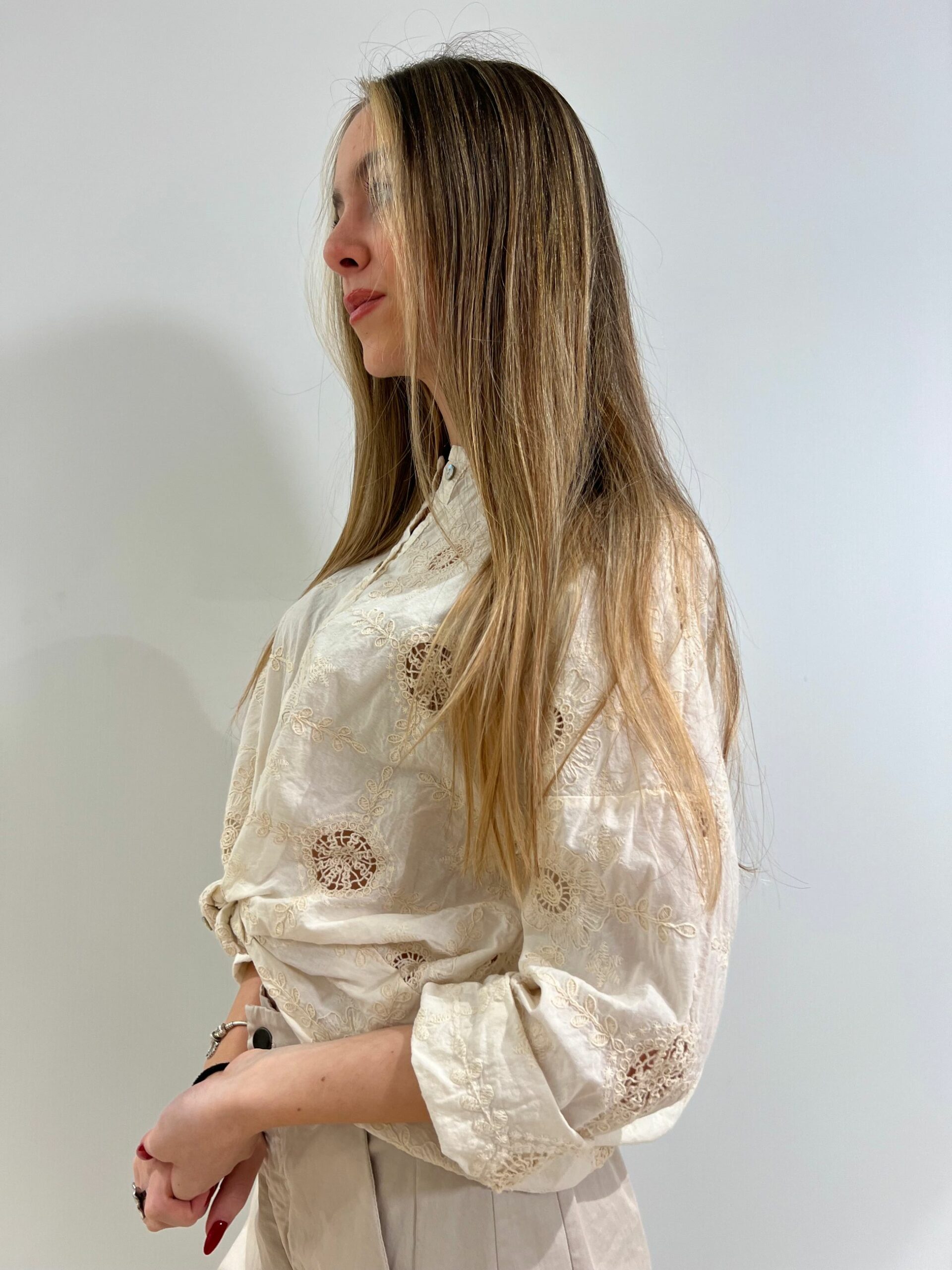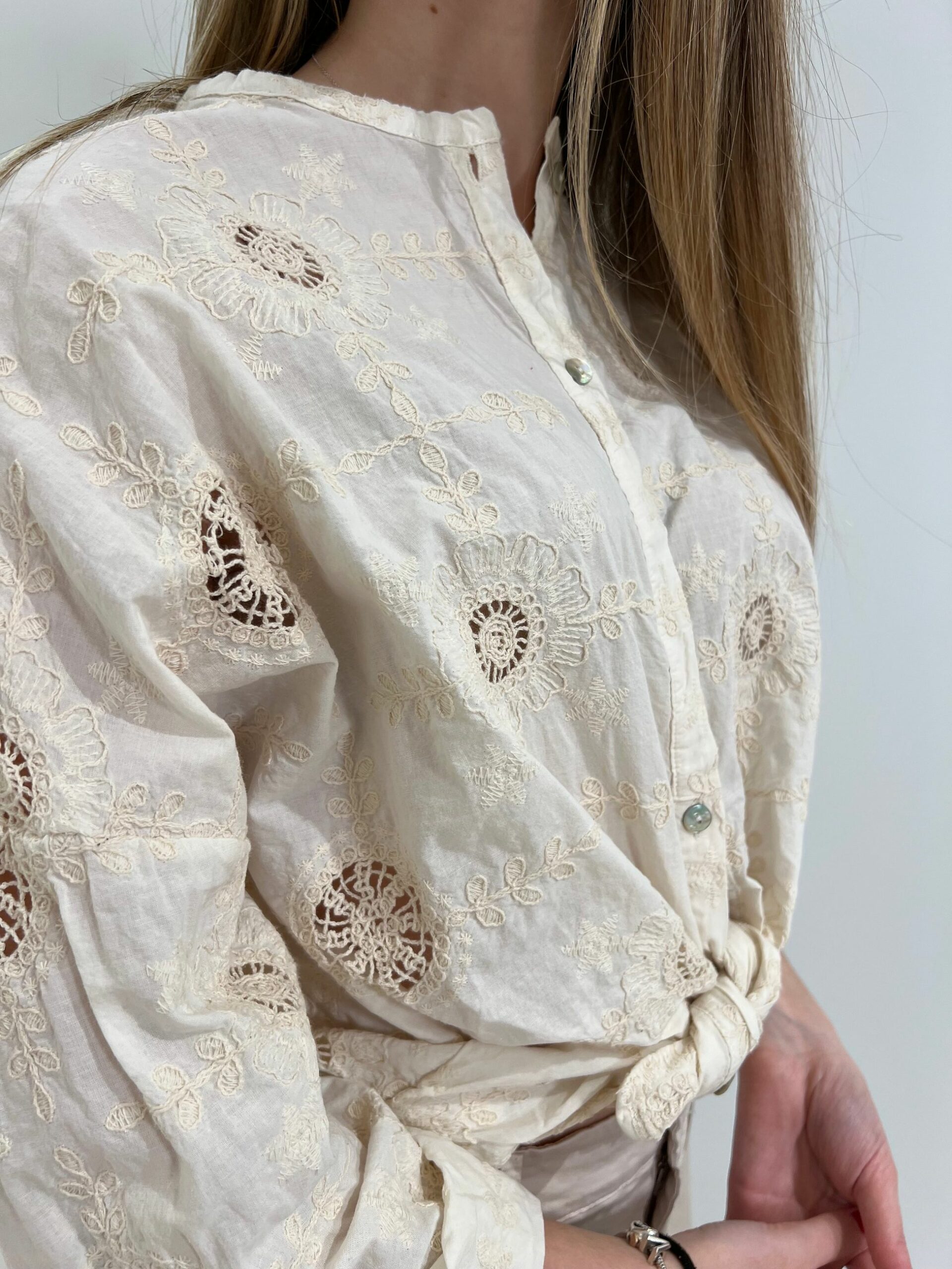 CAMICIA IN COTONE LEGGERO CON RICAMI TRAFORATI TONO SU TONO
