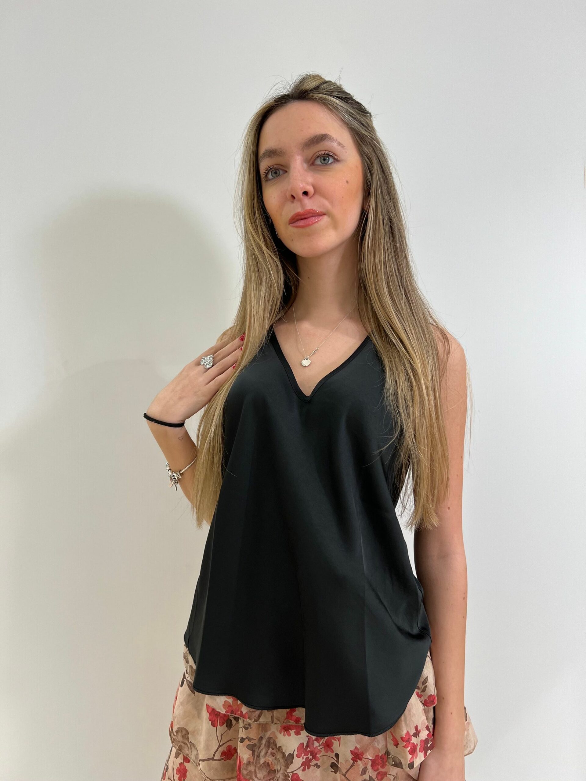 CANOTTA IN RASO DI VISCOSA A SPALLA LARGA