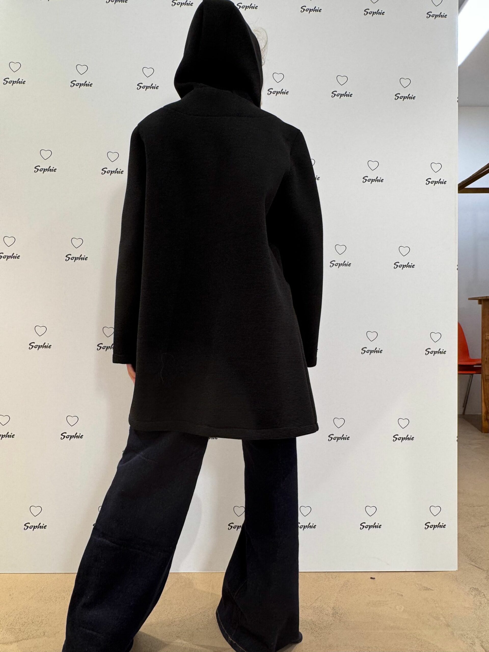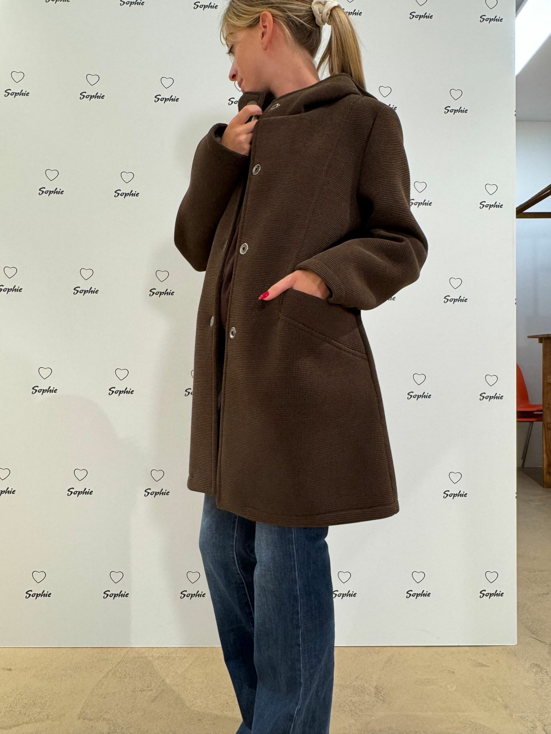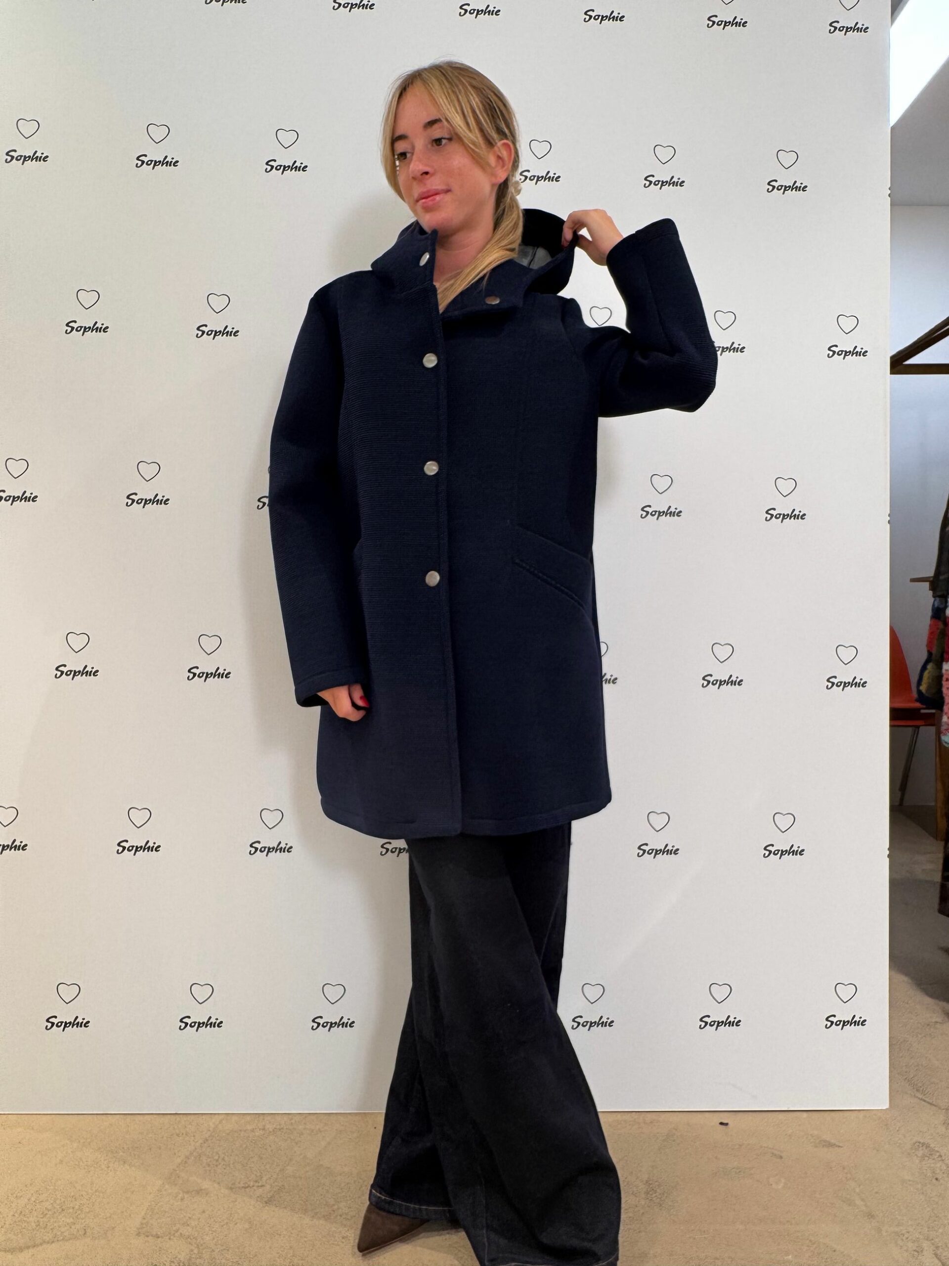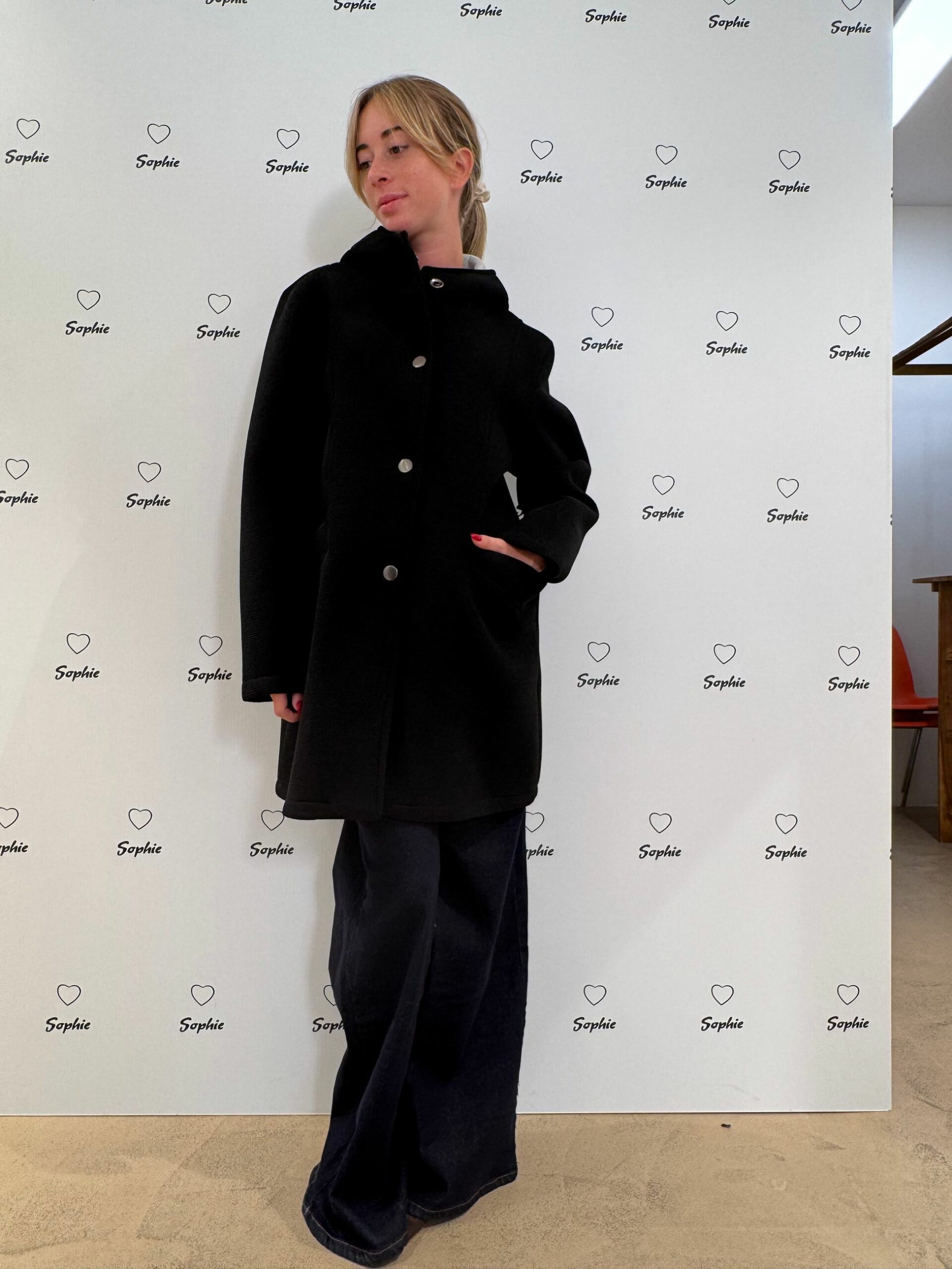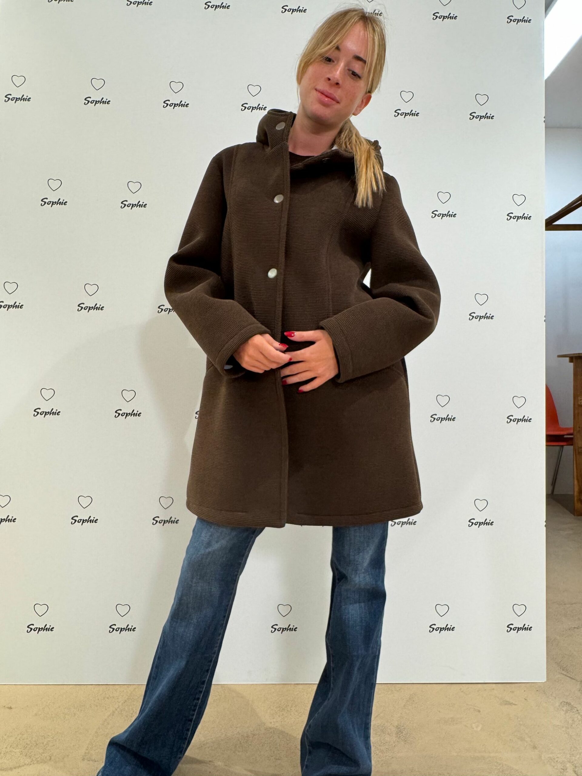 CAPPOTTINO IN NEOPRENE CON CAPPUCCIO E BOTTONI AUTOMATICI
