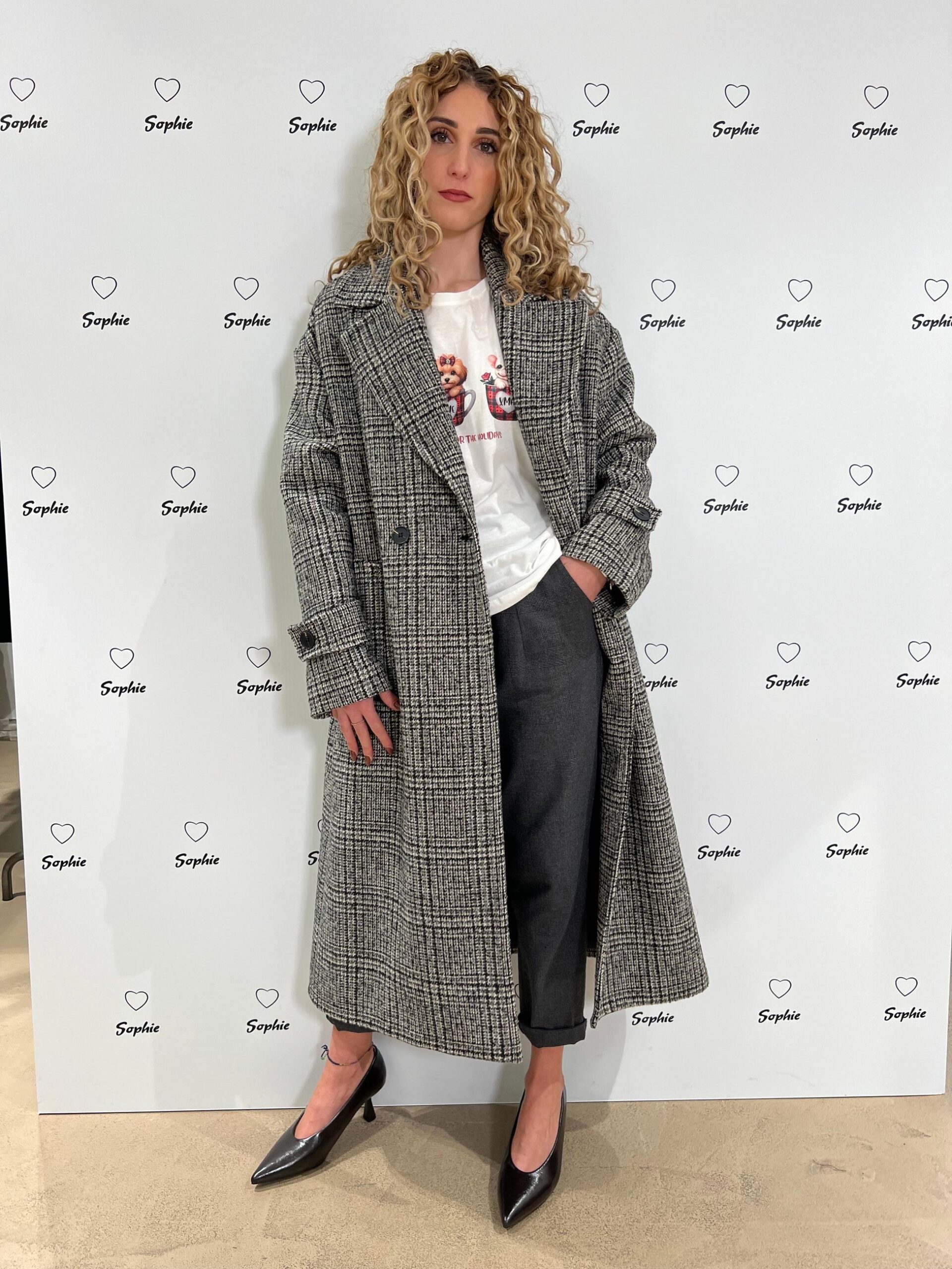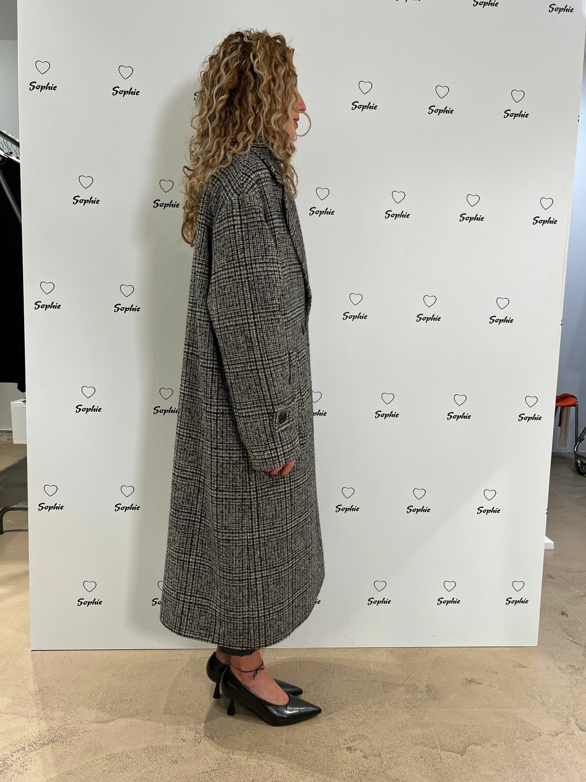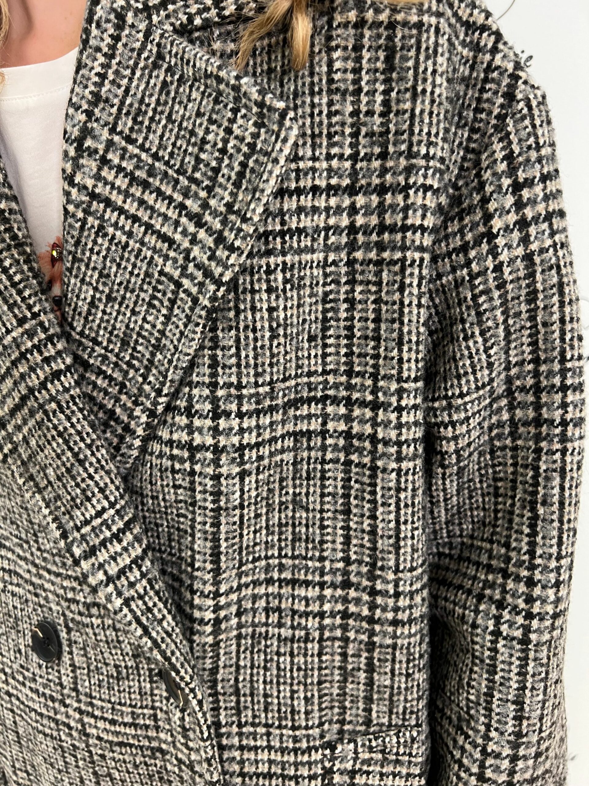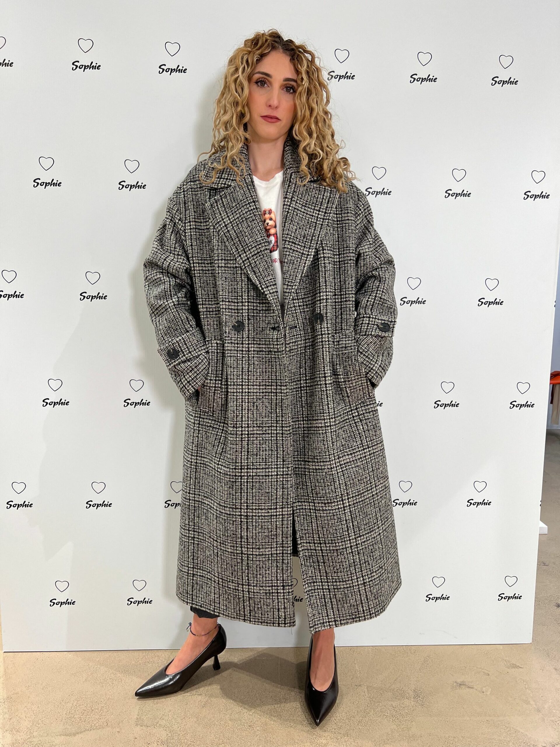 CAPPOTTO LUNGO VESTIBILITA’ MORBIDA IN FANTASIA CHECK, TASCHE FRONTALI.
