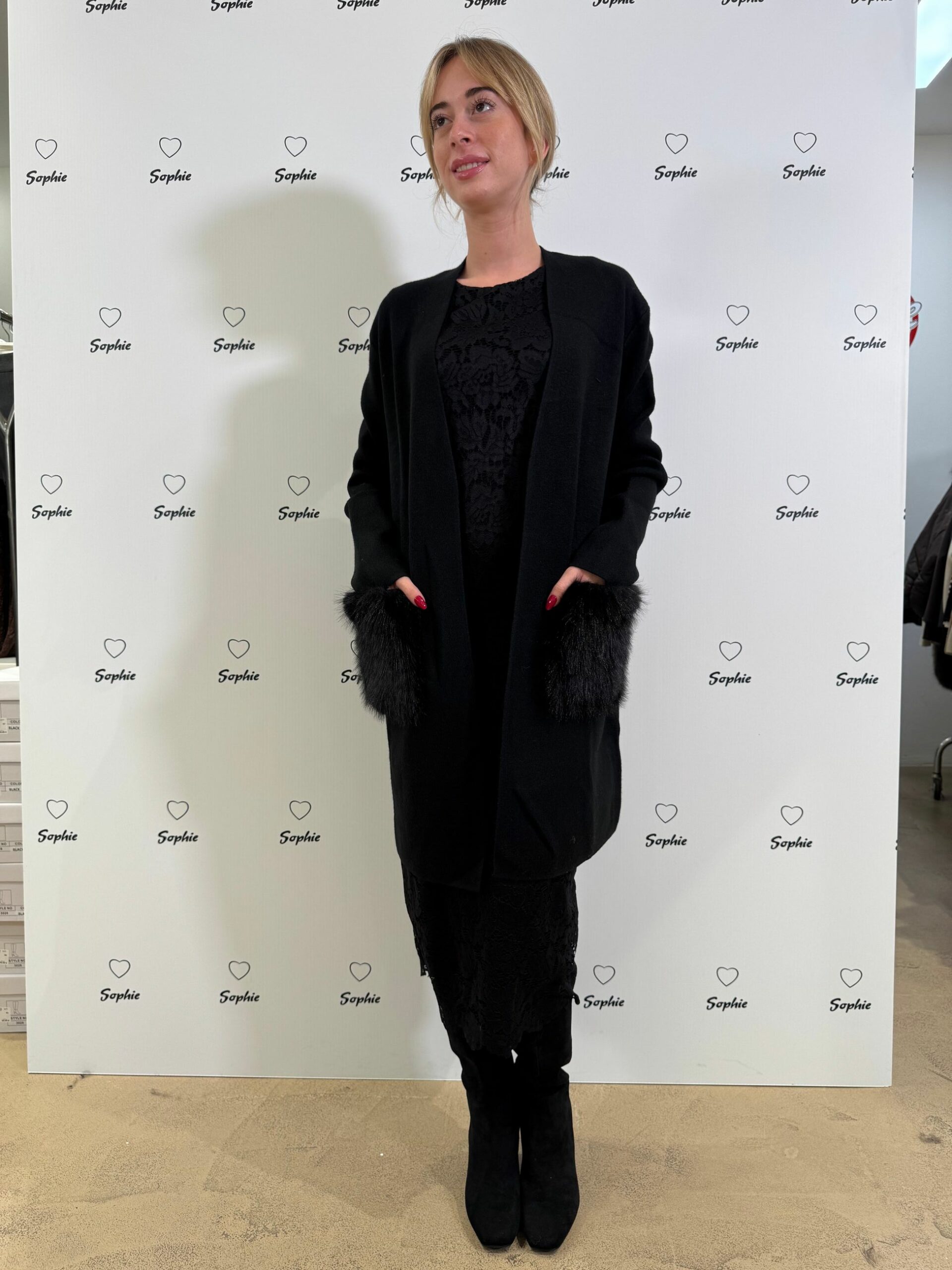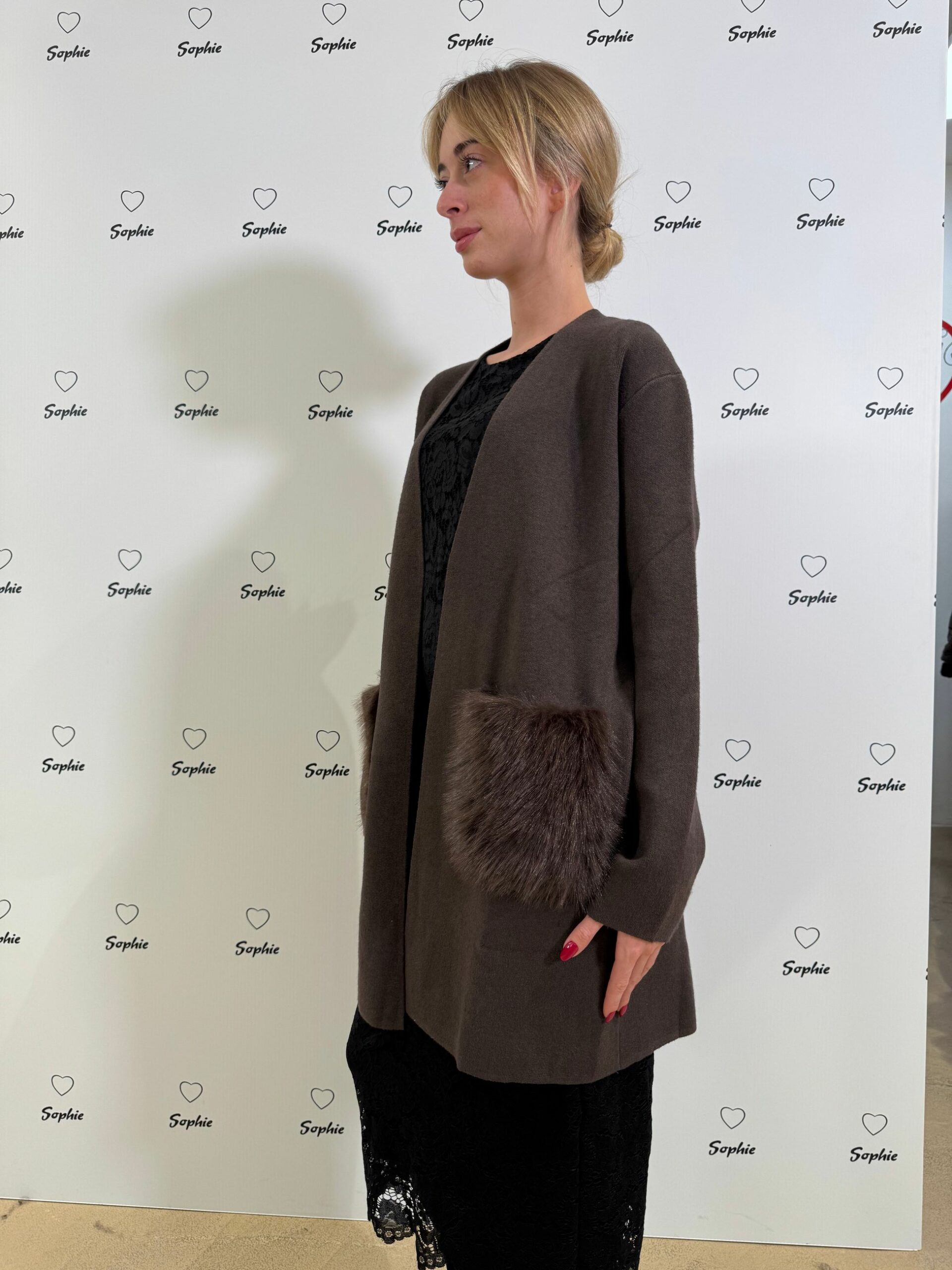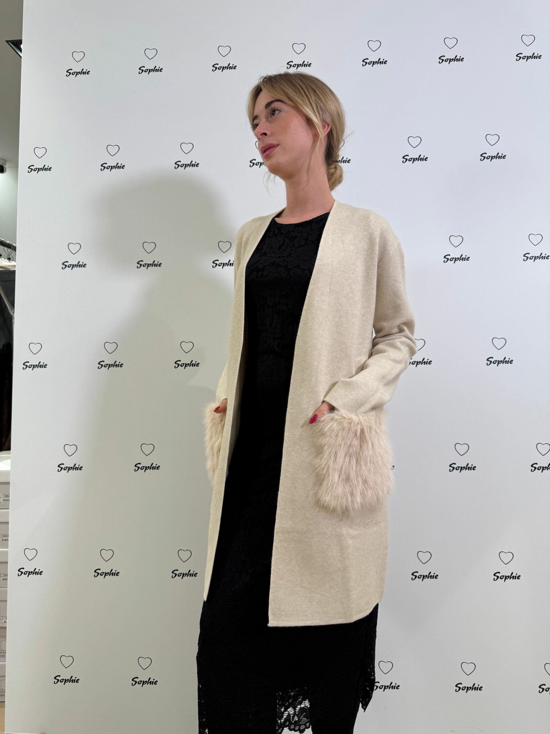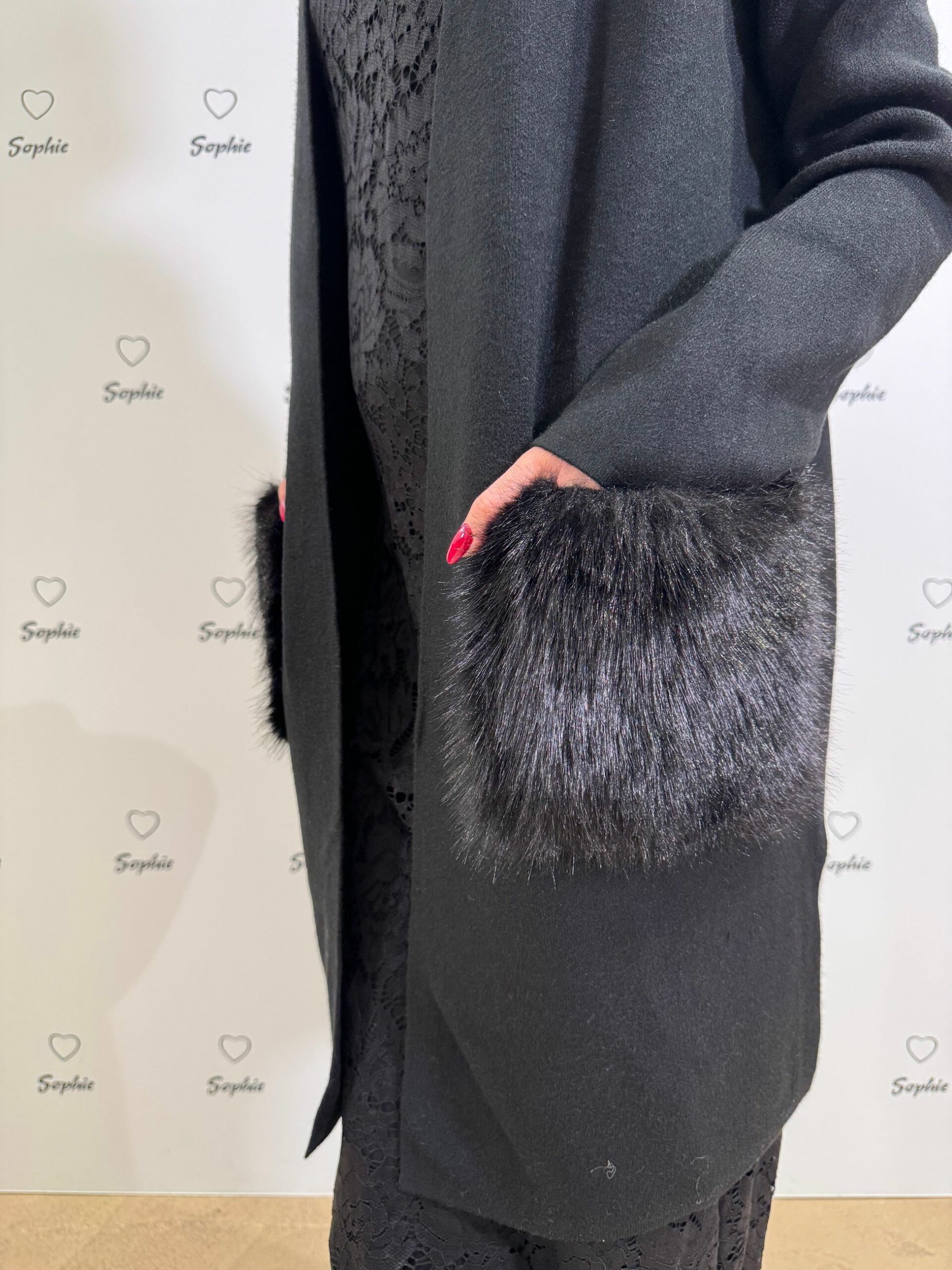 CARDIGAN LUNGO CON DUE TASCHE FRONTALI IN ECOPELLICCIA