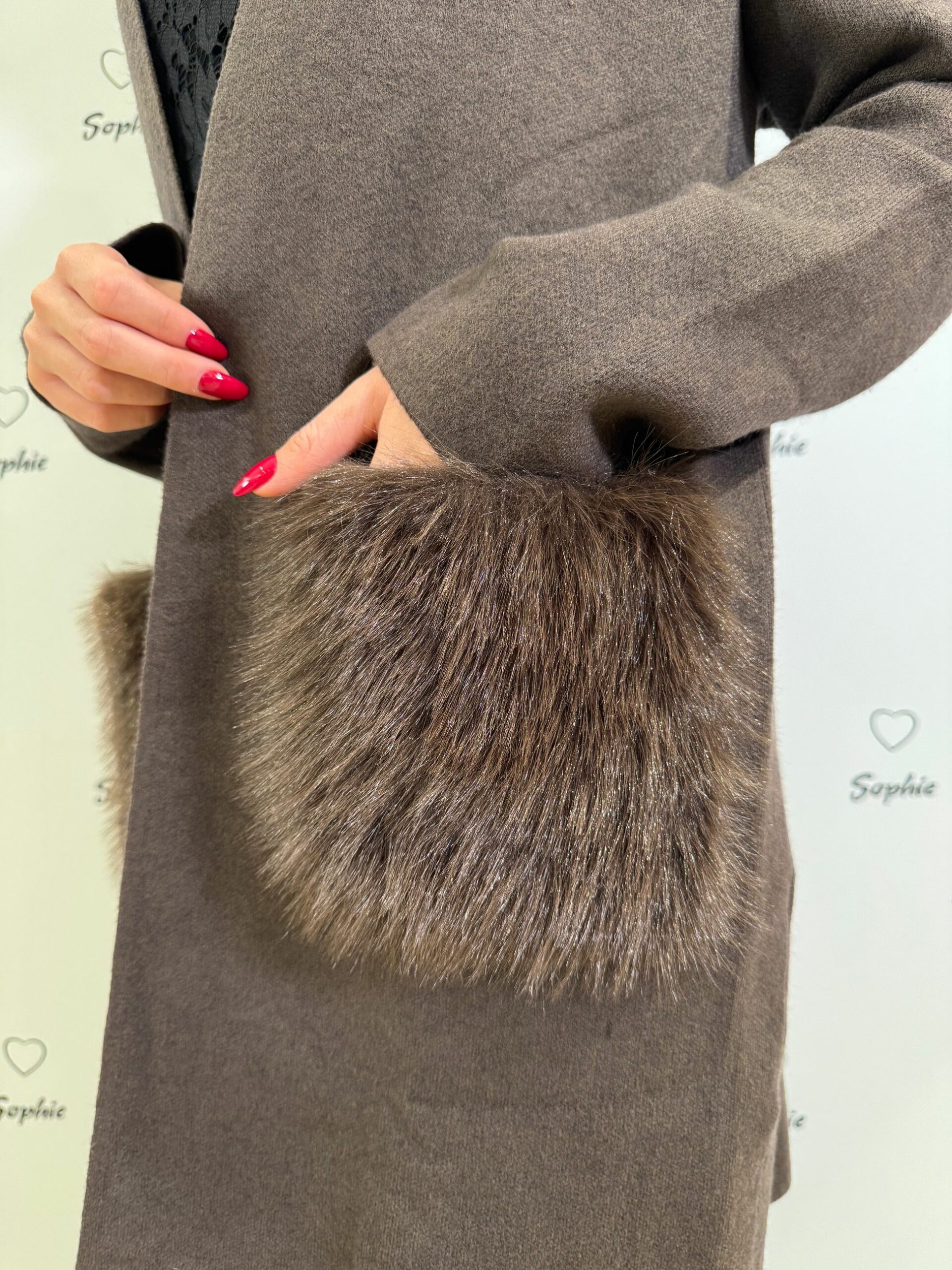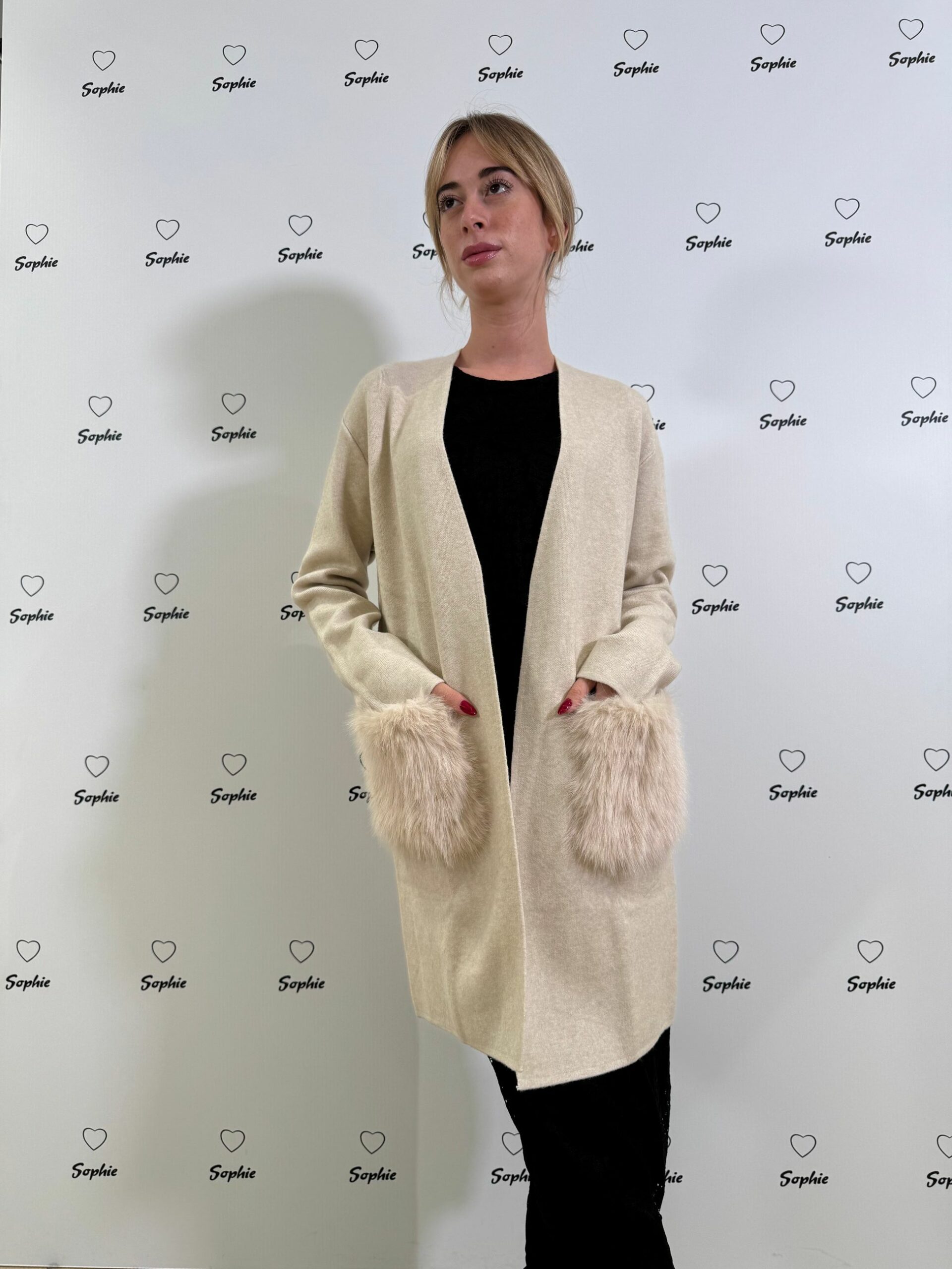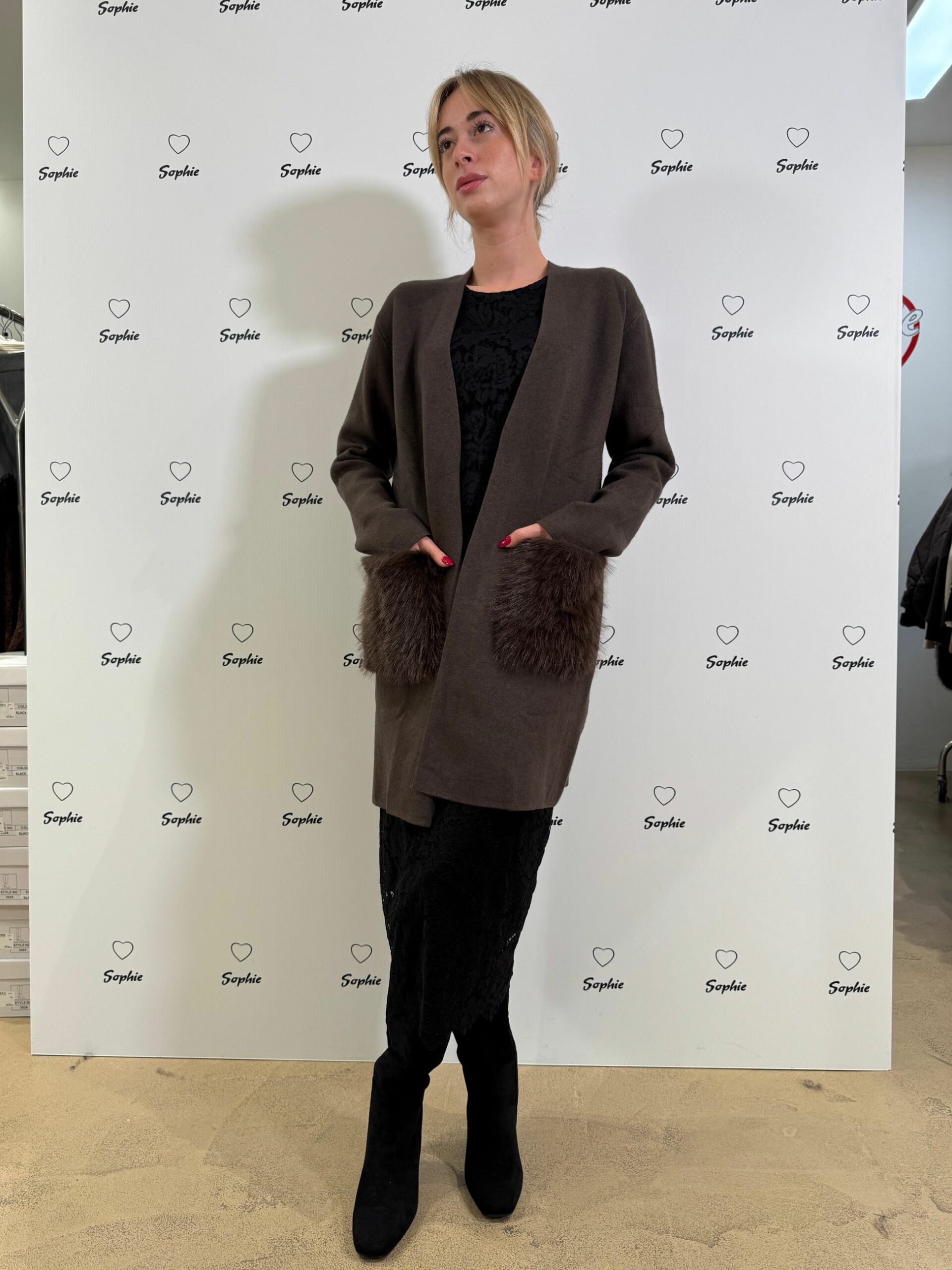 CARDIGAN LUNGO CON DUE TASCHE FRONTALI IN ECOPELLICCIA