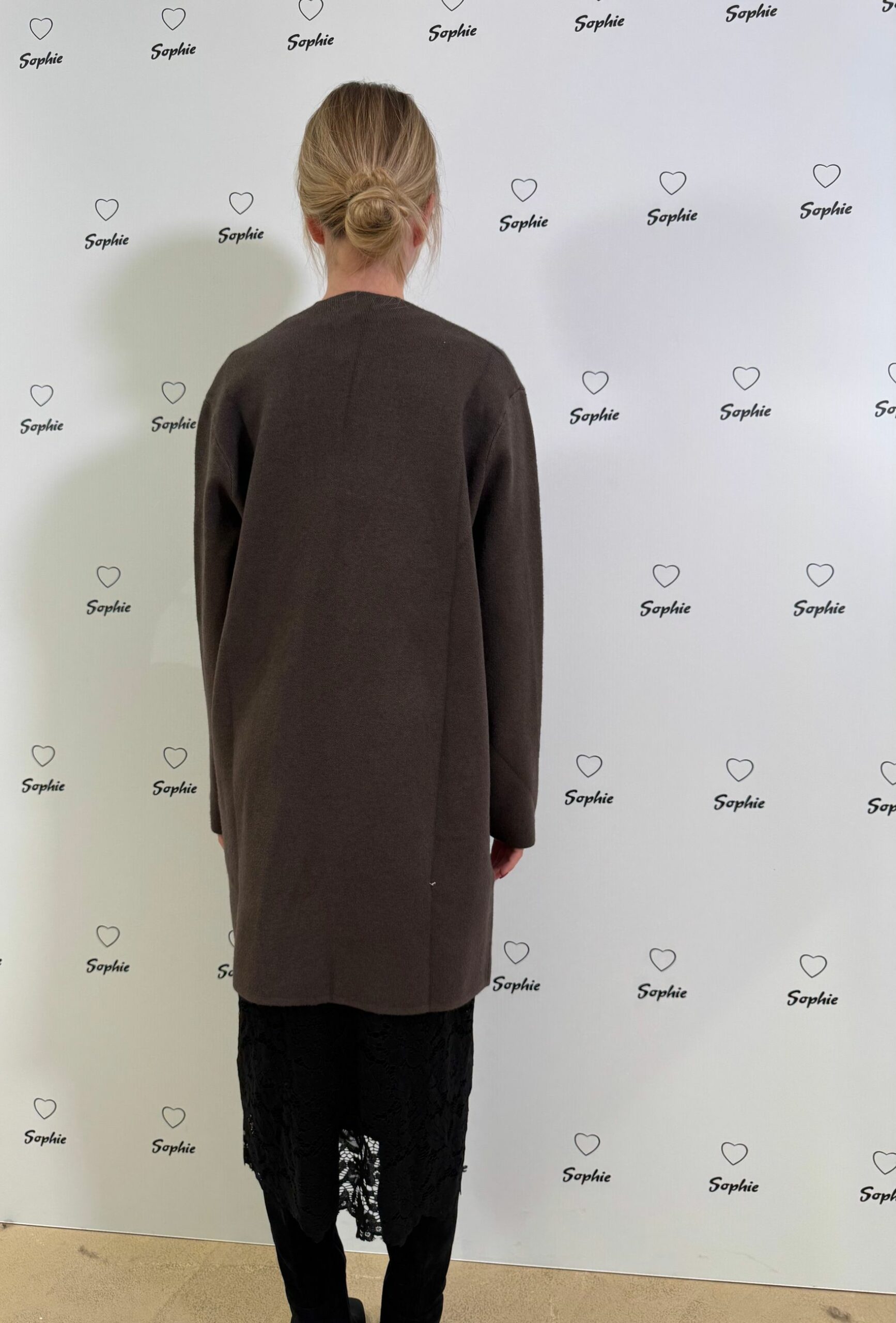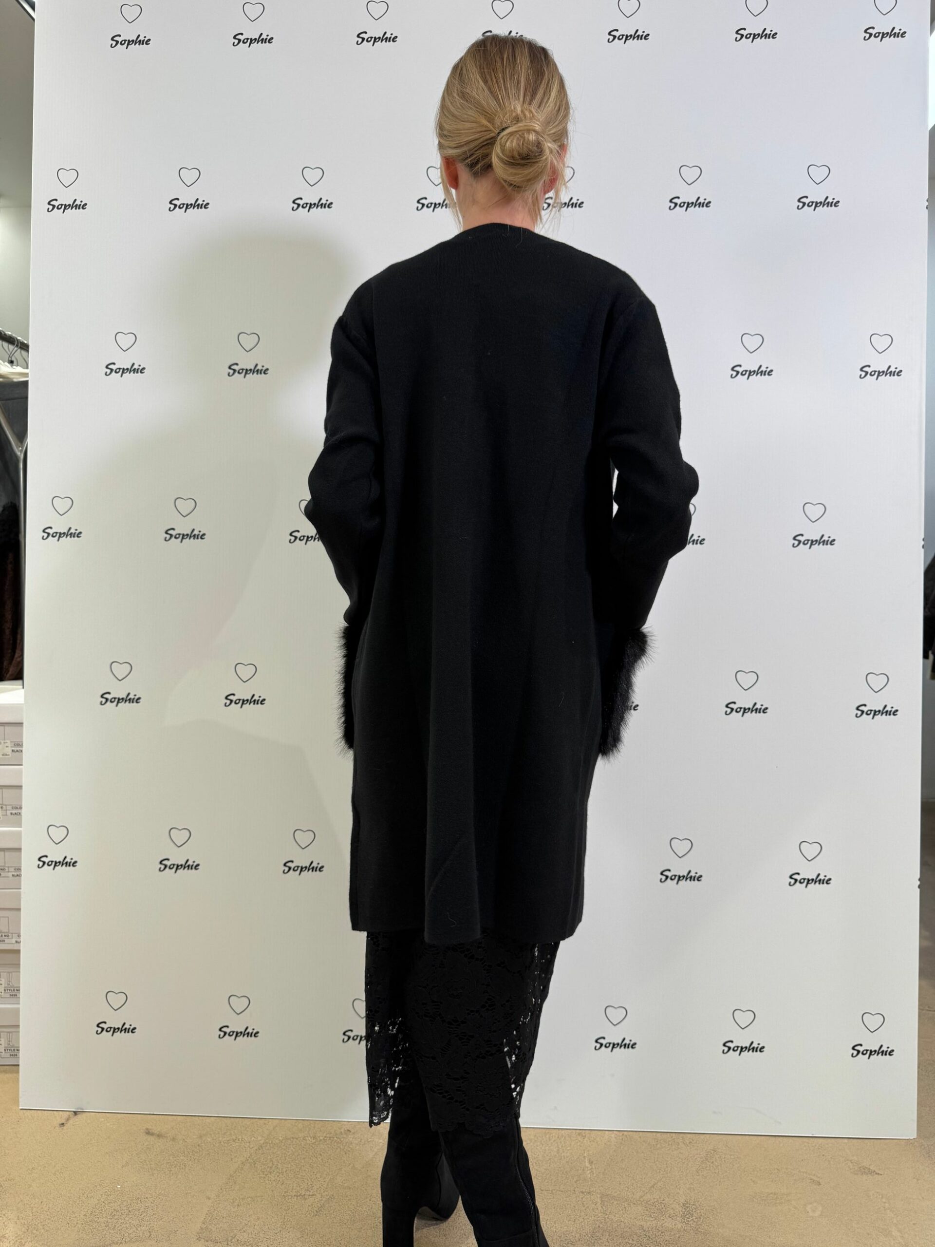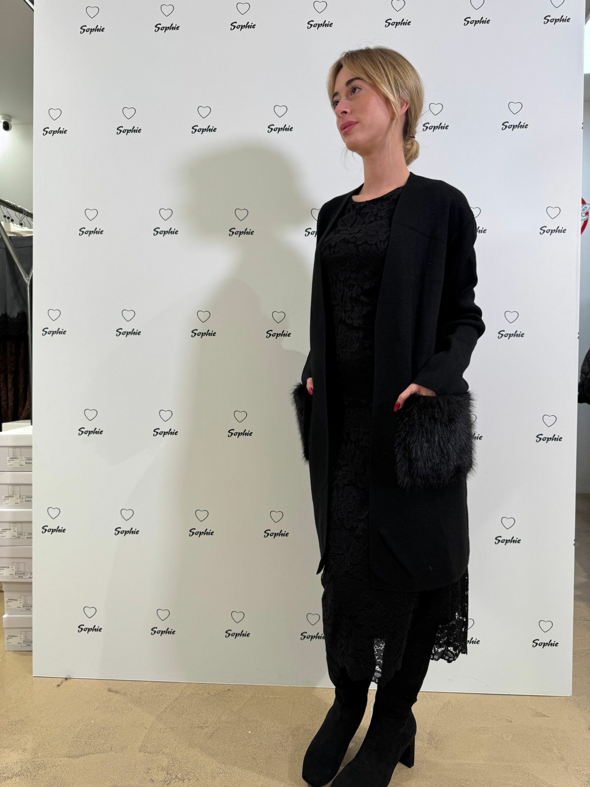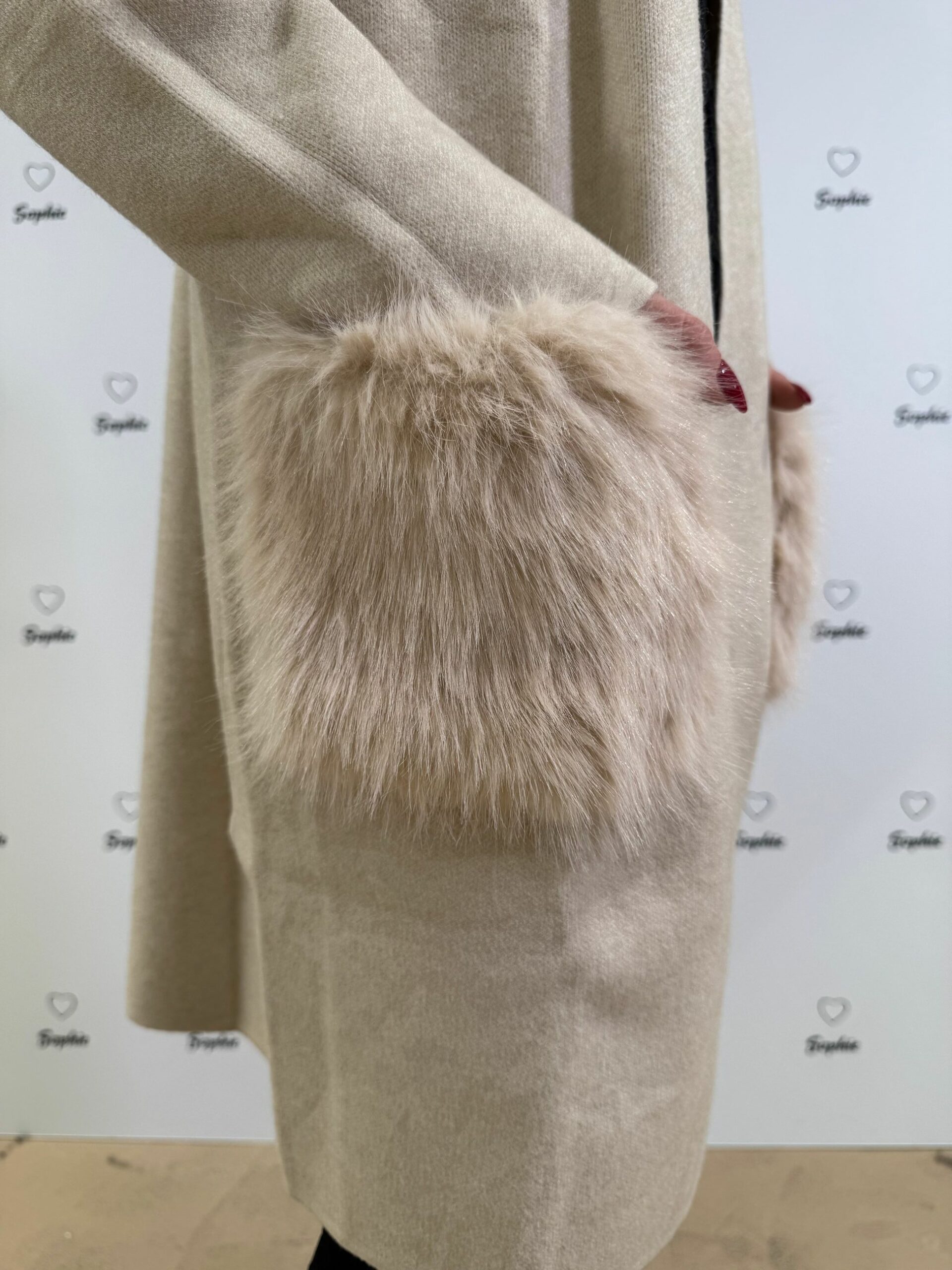CARDIGAN LUNGO CON DUE TASCHE FRONTALI IN ECOPELLICCIA