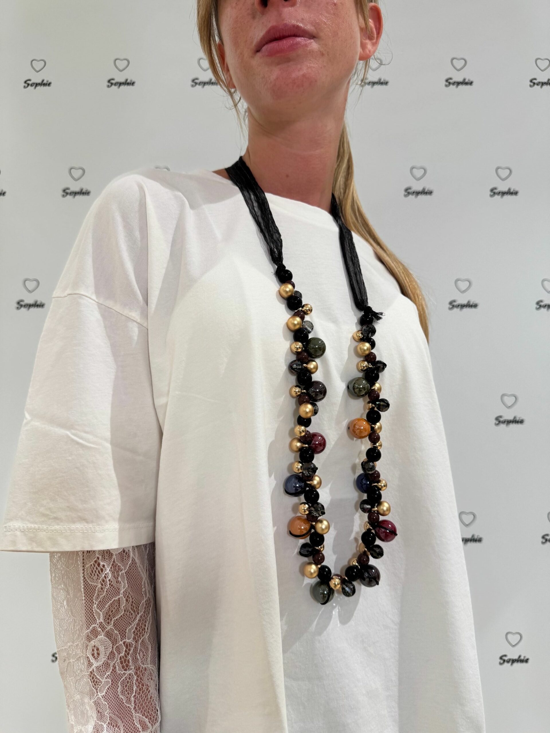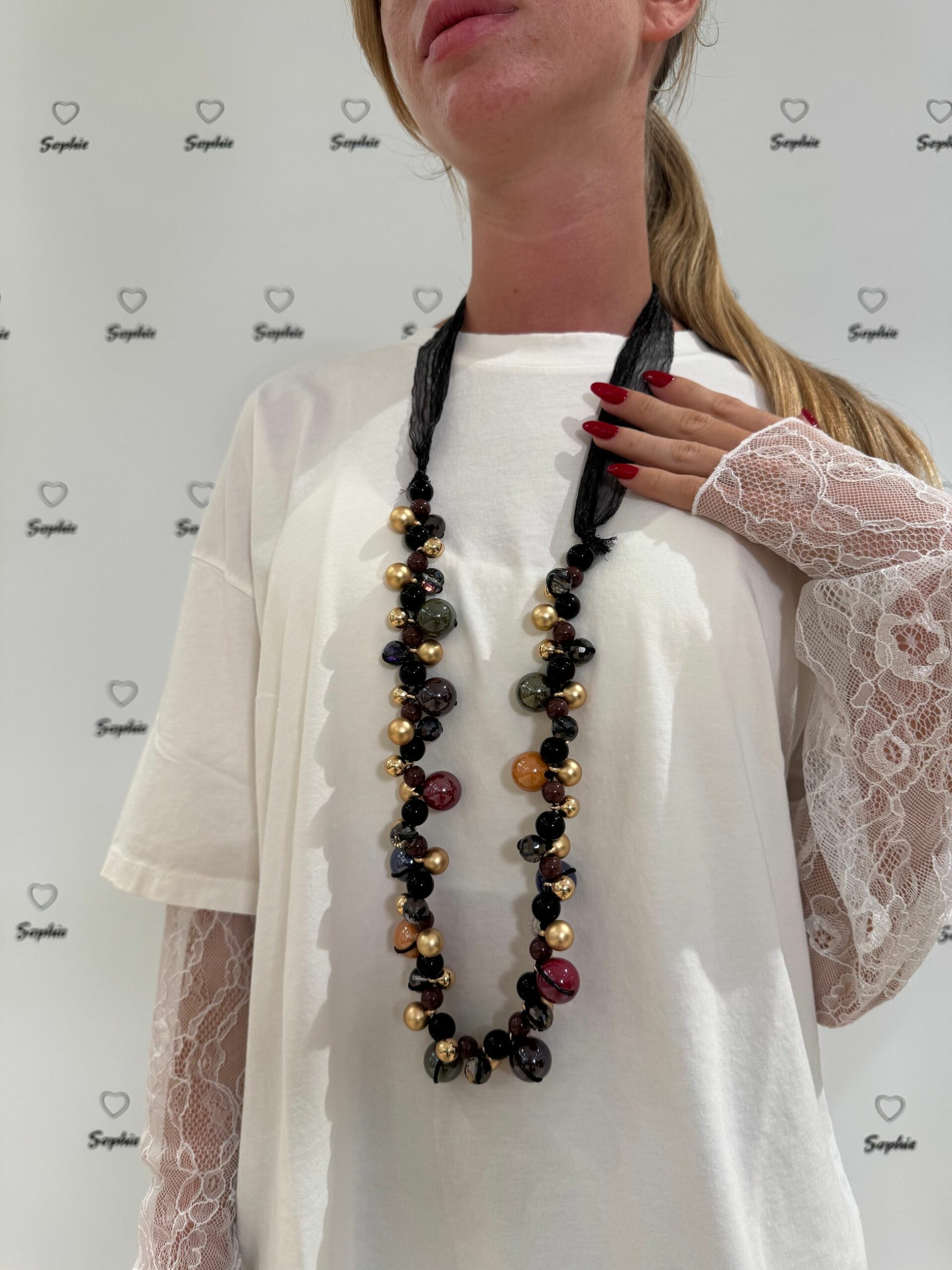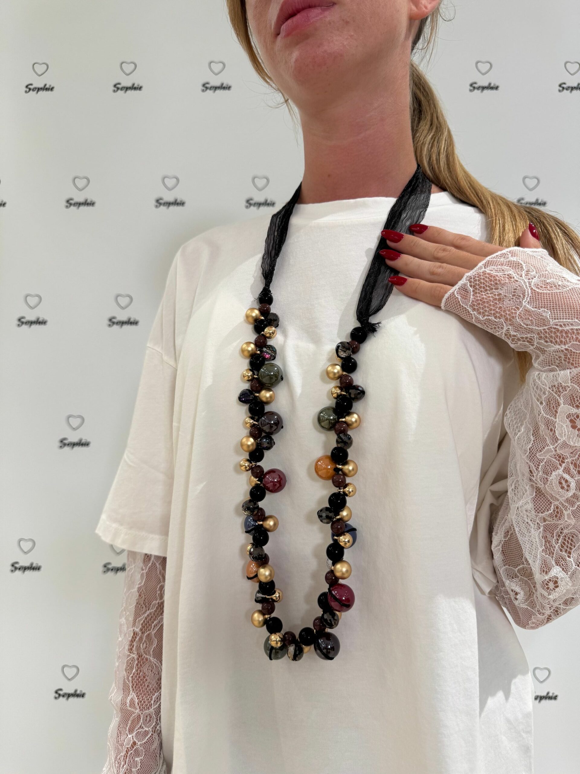 COLLANA CON LACCIO IN MICRORETE, ELEMENTI IN VARI COLORI