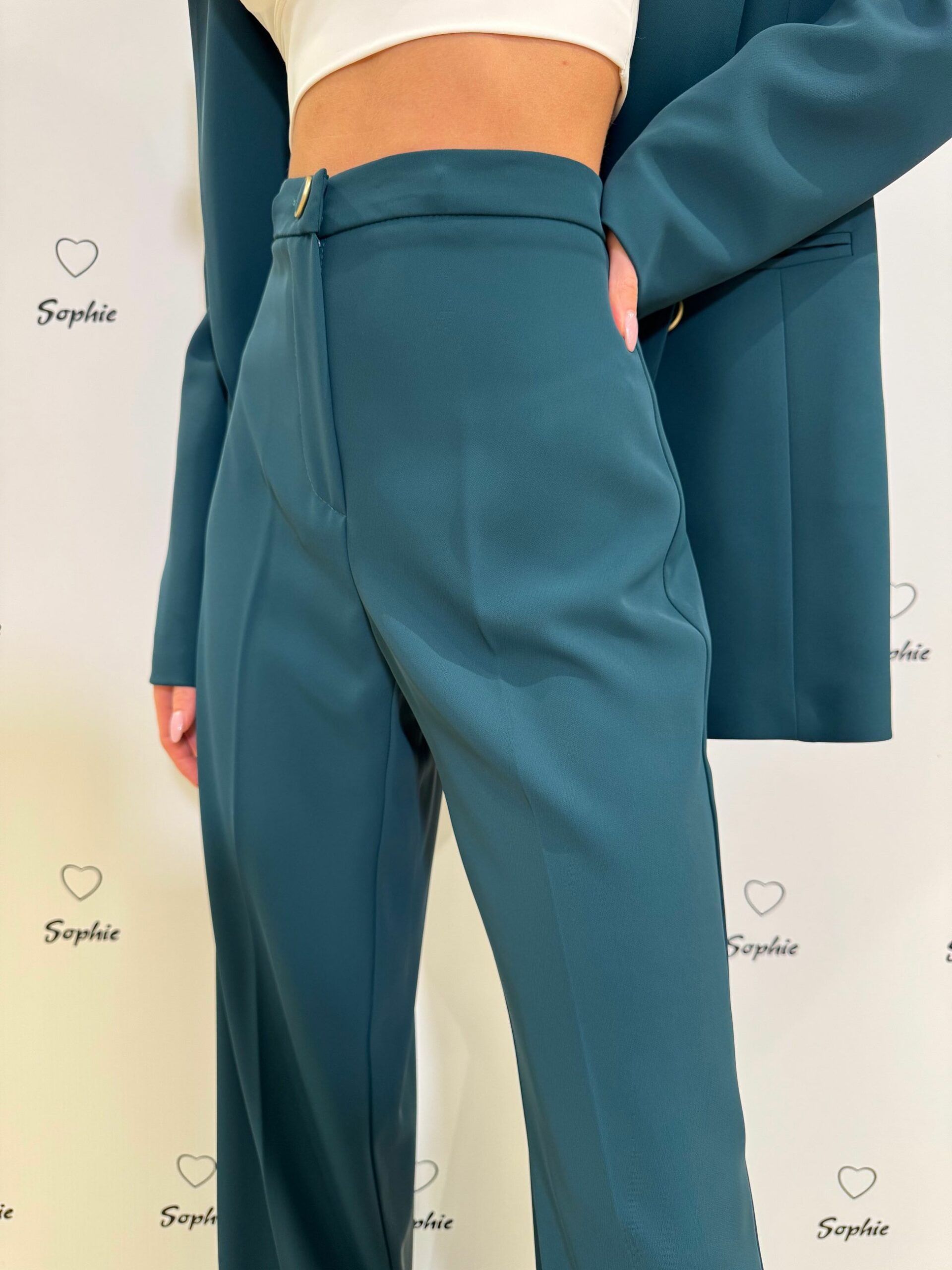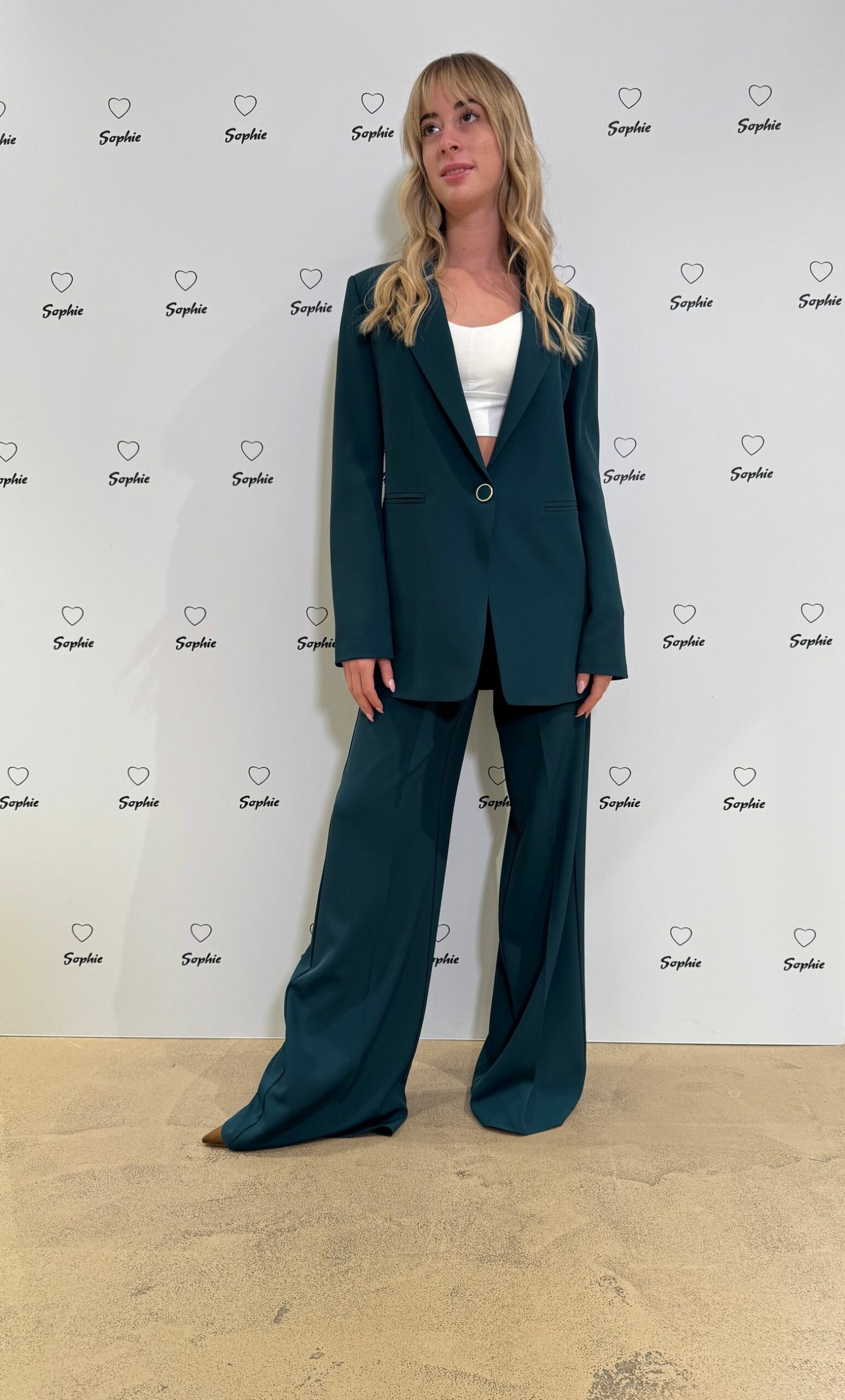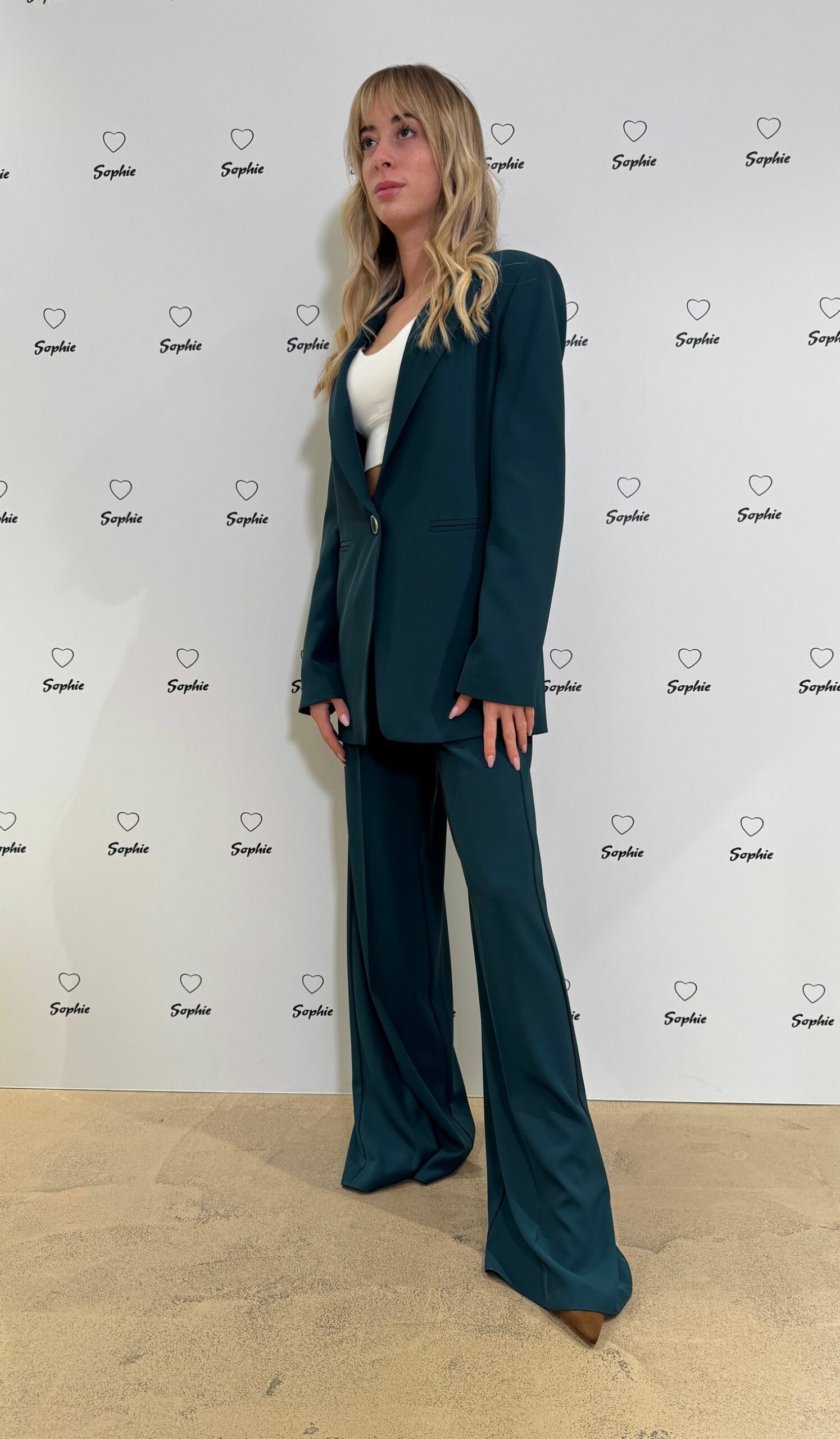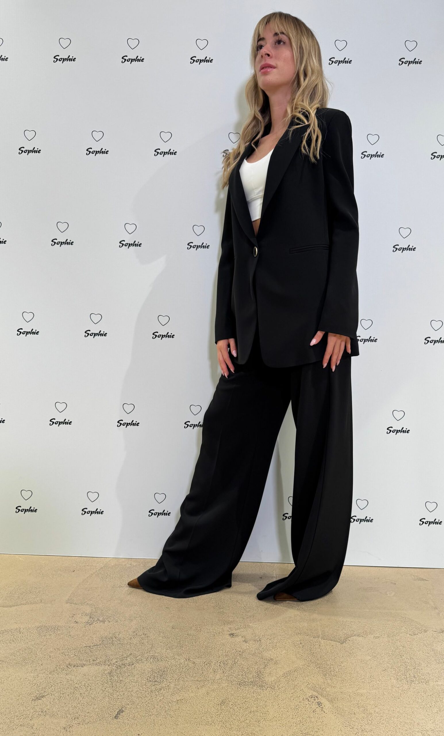 COMPLETO CON GIACCA FODERATA AD UN BOTTONE E PANTALONE A GAMBA LARGA DRITTA IN TESSUTO EFFETTO FLUIDO