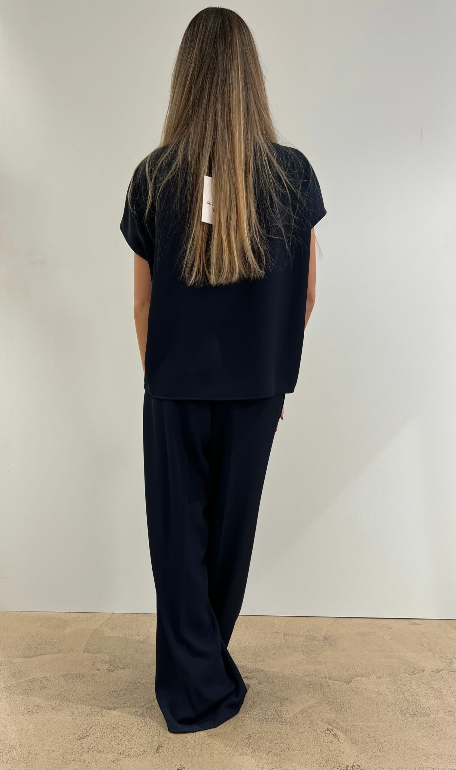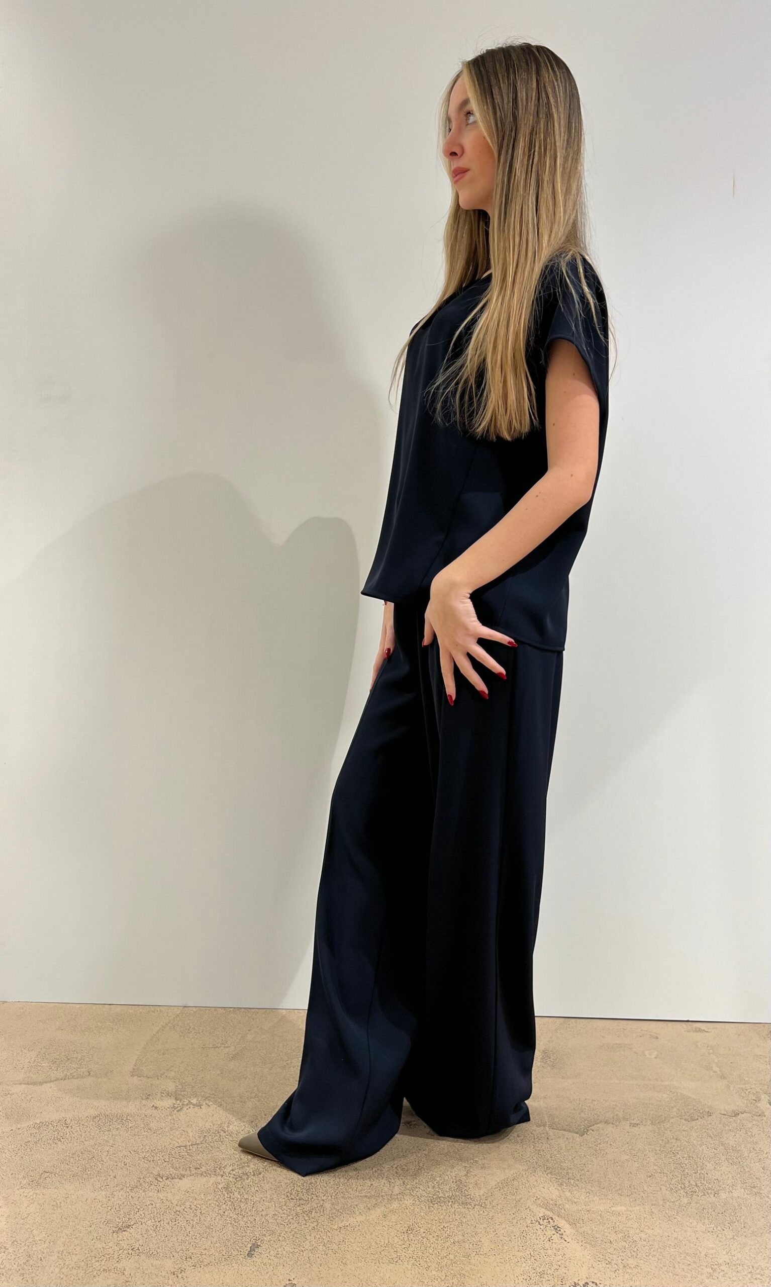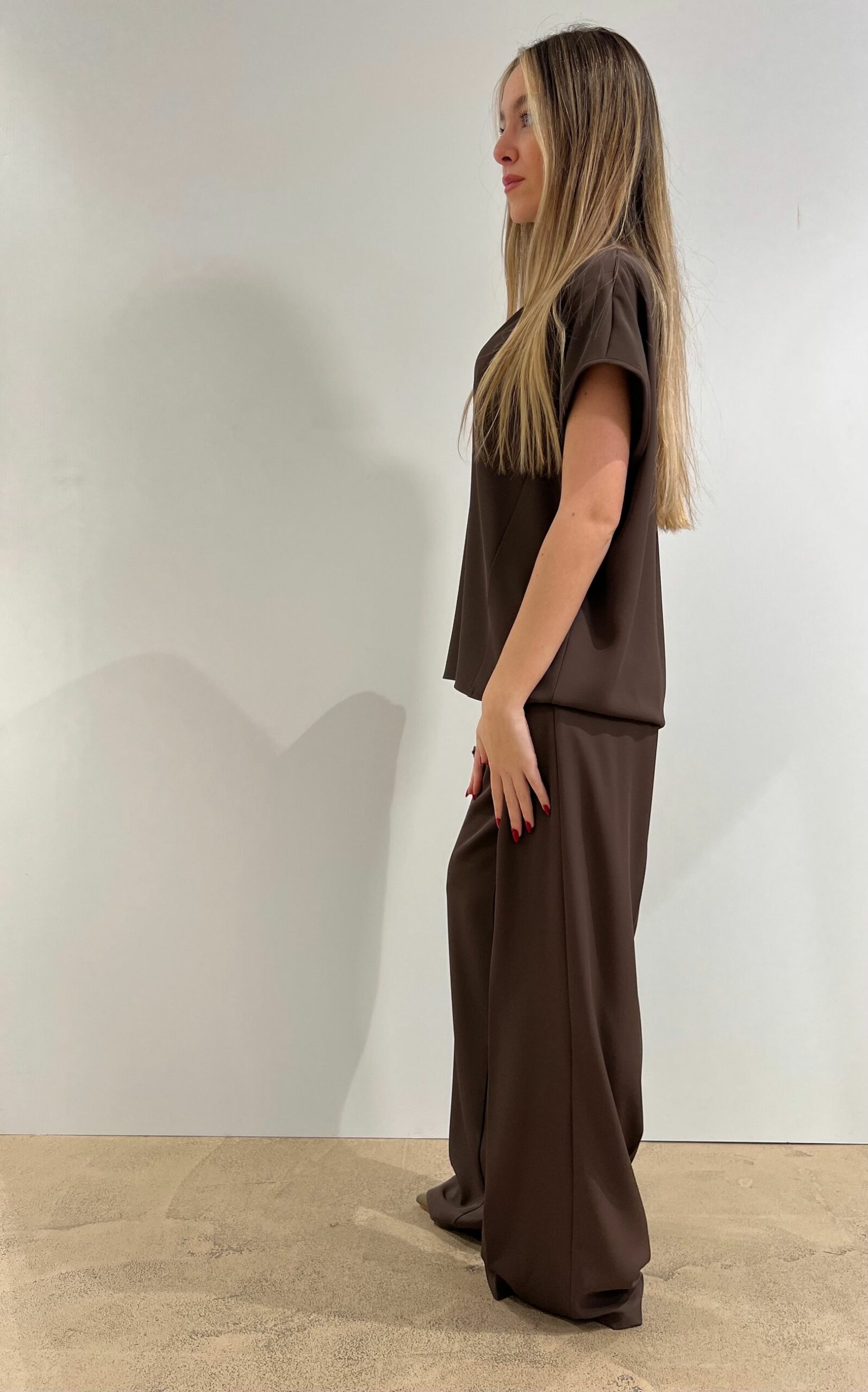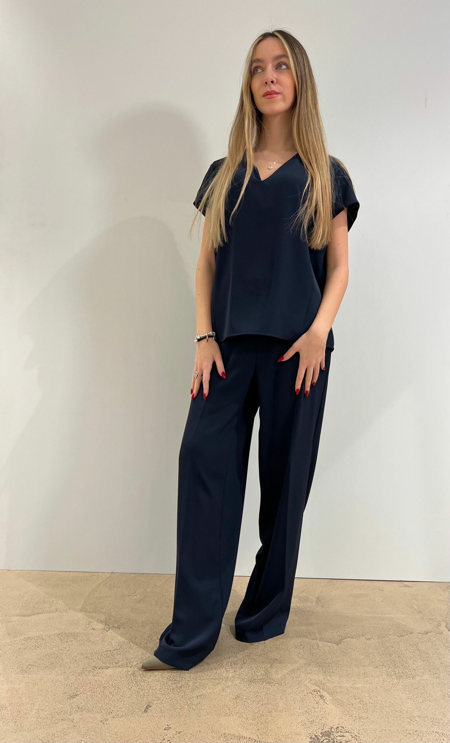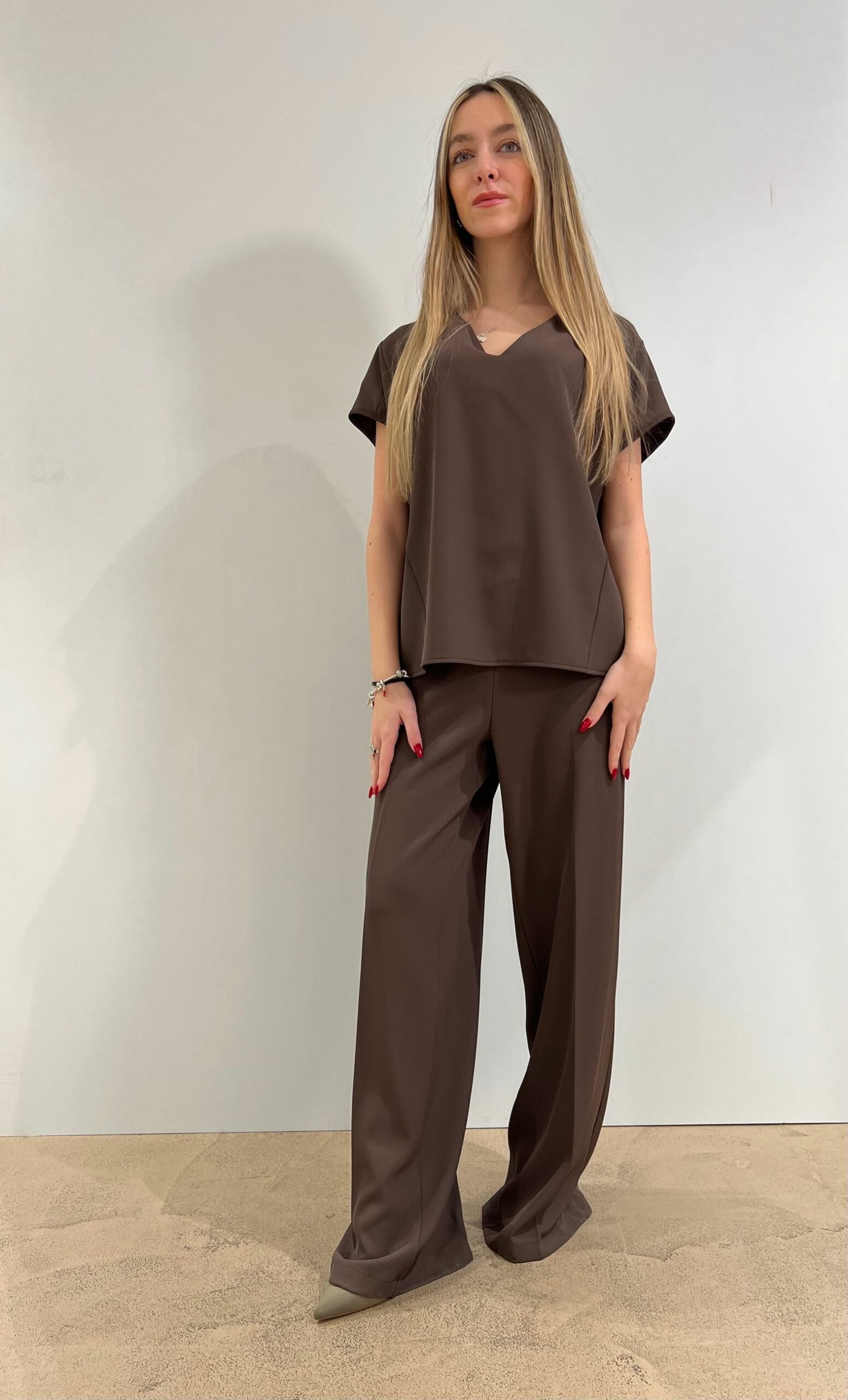 COMPLETO: CASACCA SCOLLO A V LUNGHEZZA MEDIA E PANTALONE A GAMBA LARGA