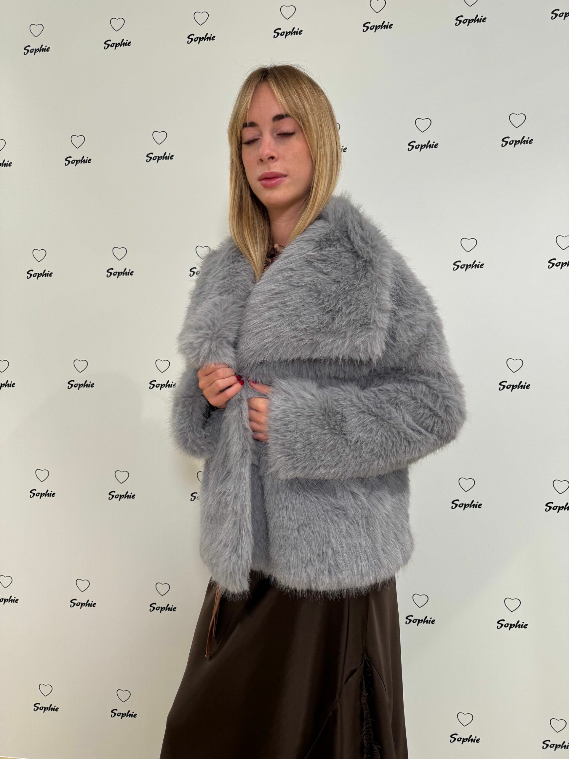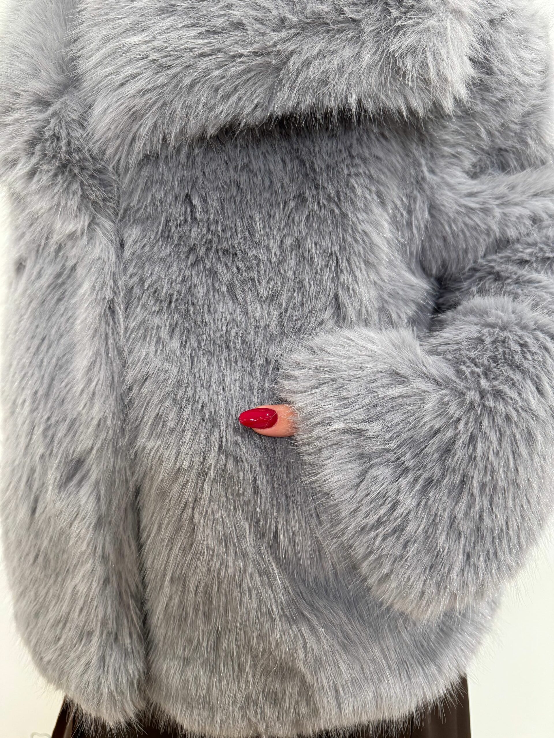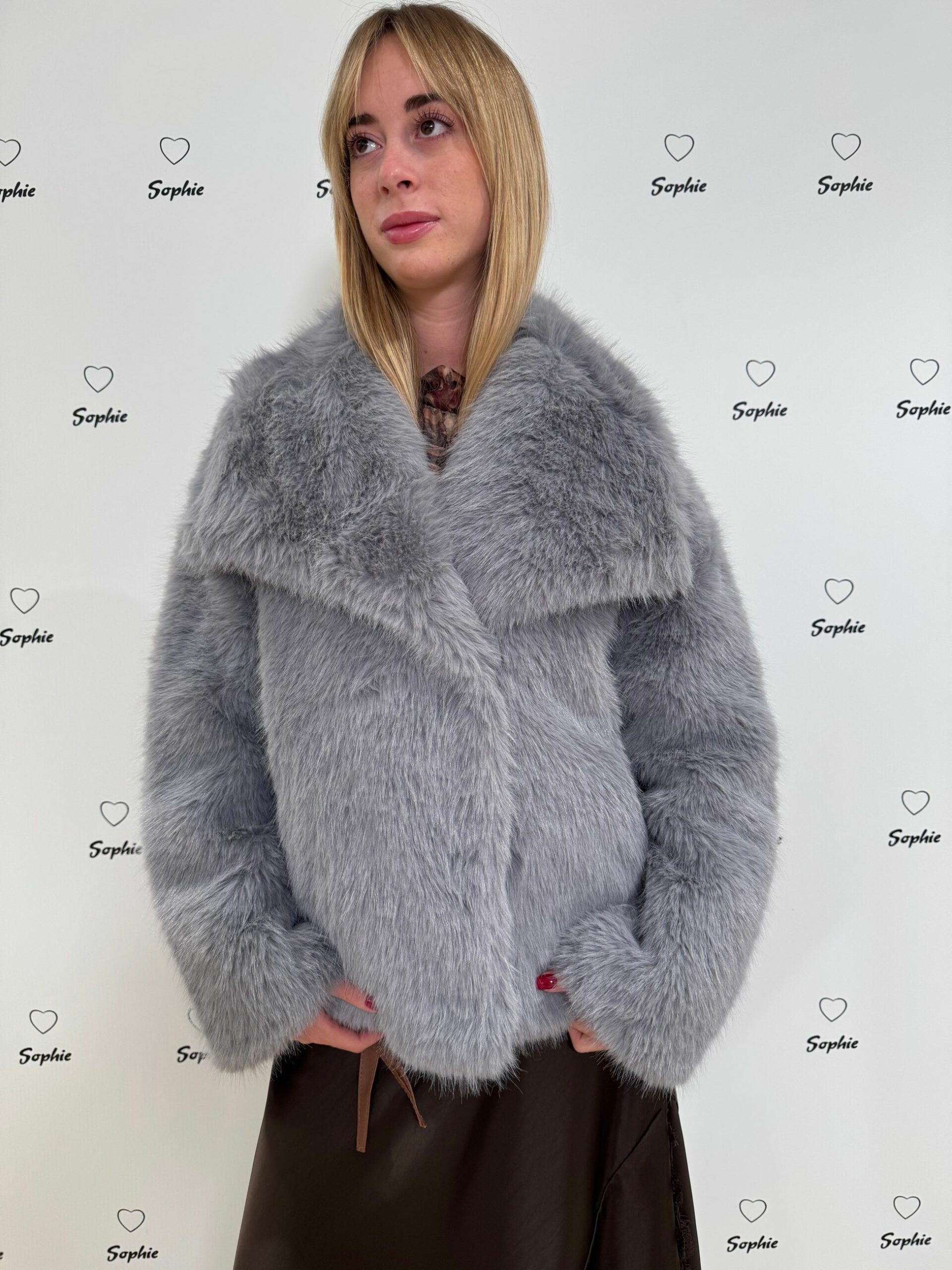 ECOPELLICCIA CORTA CON TASCHE ED ALLACCIATURA CON AUTOMATICI A SCOMPARSA