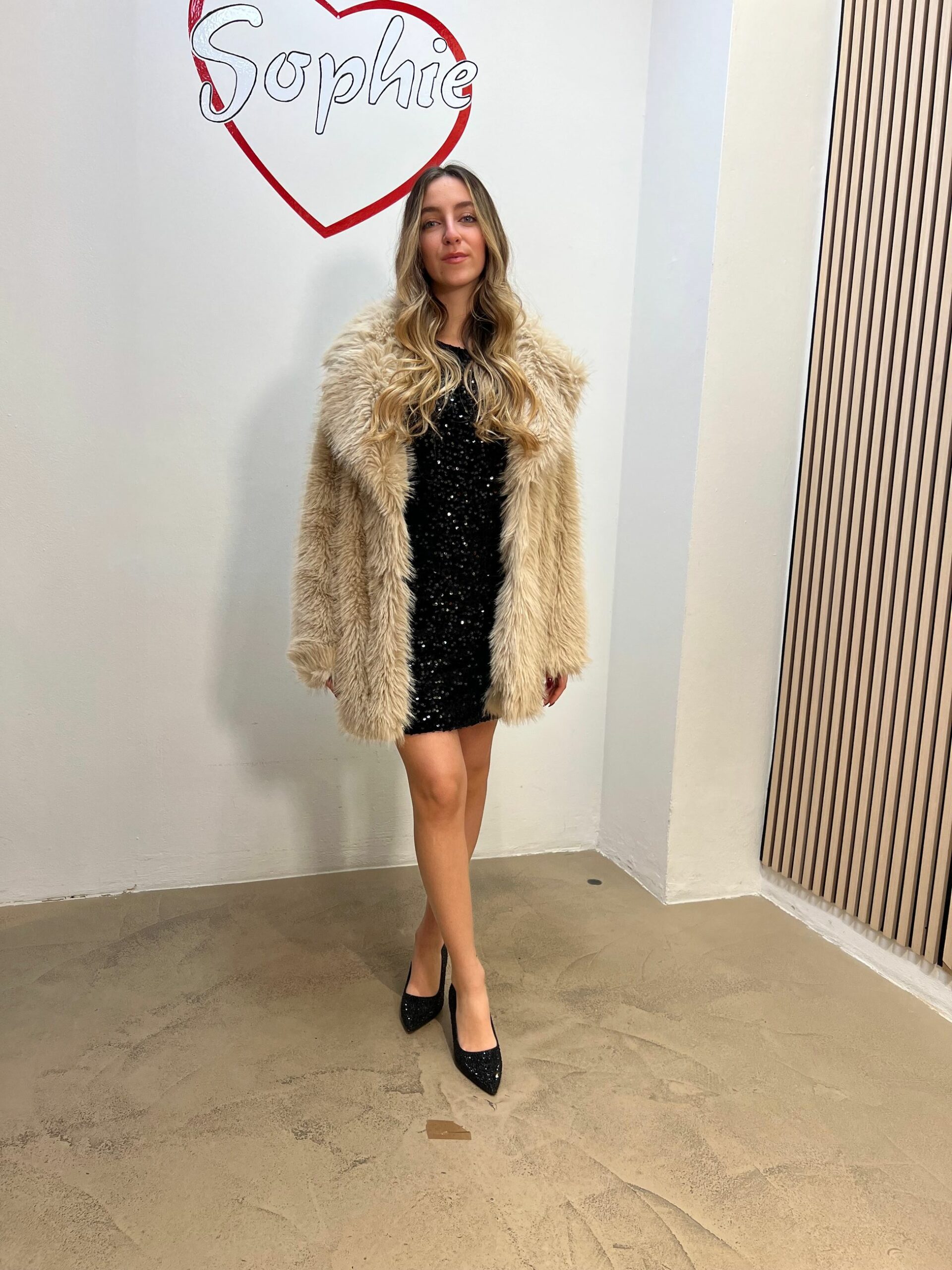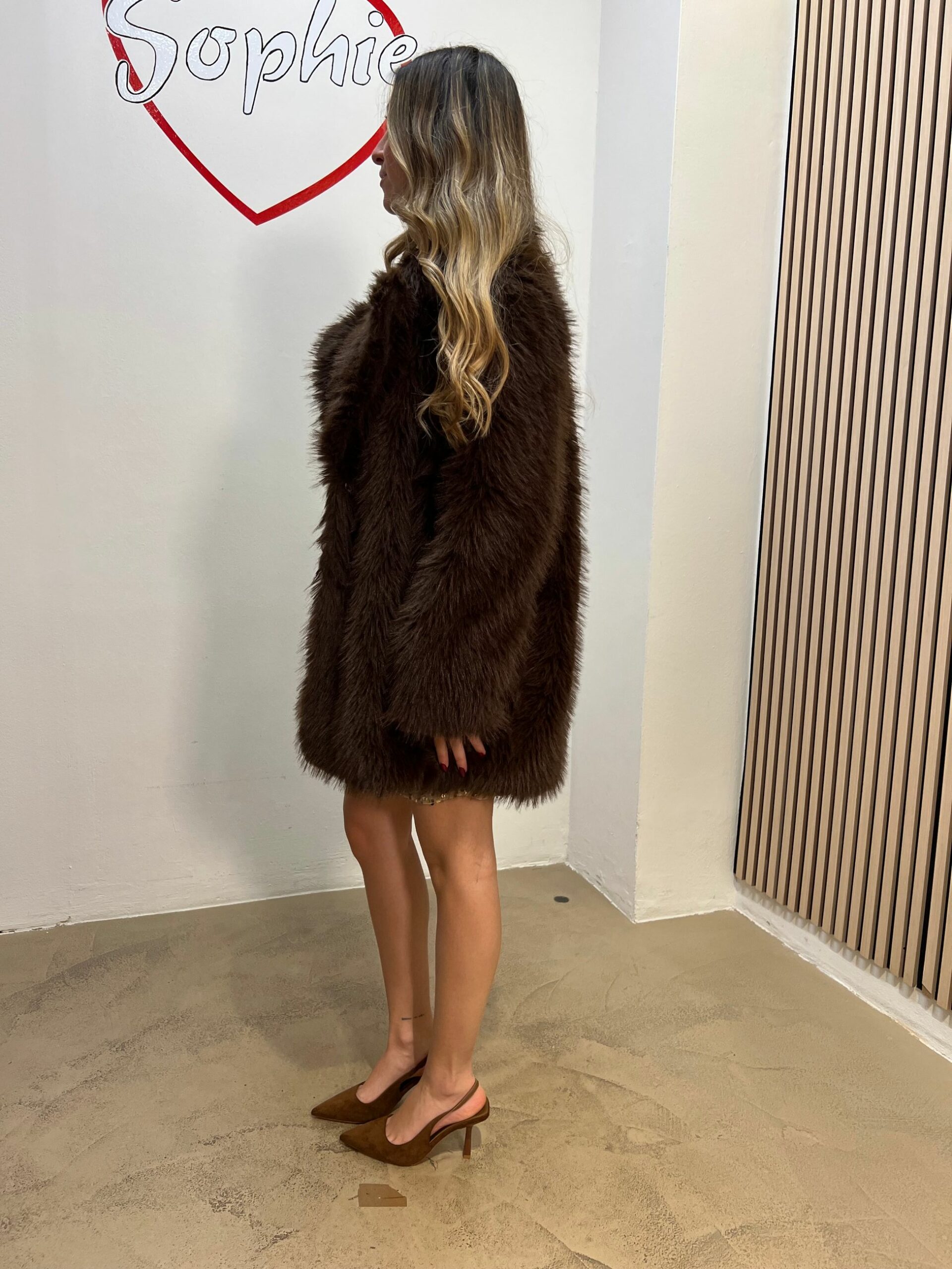 ECOPELLICCIA LUNGHEZZA MEDIA CON BOTTONI A SCOMPARSA E TASCHE LATERALI