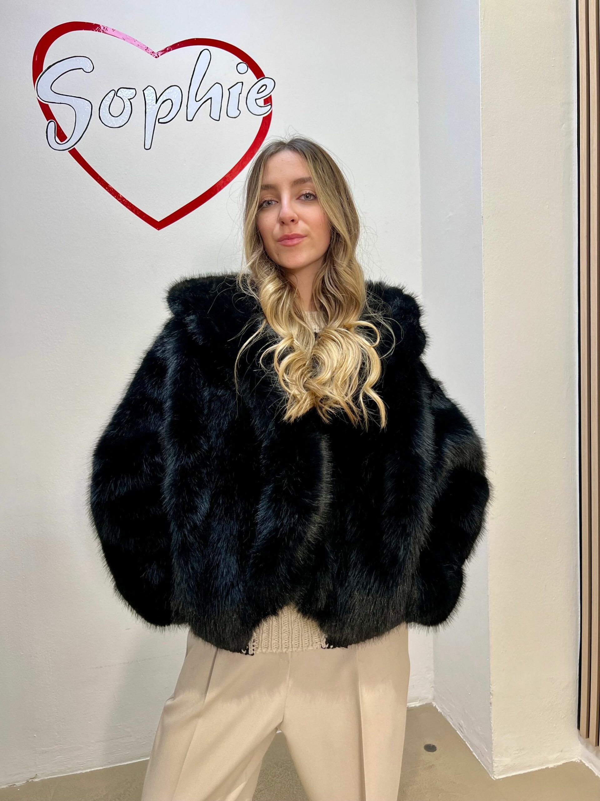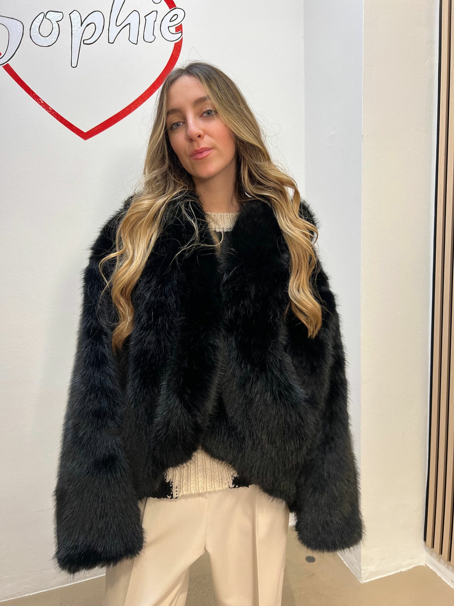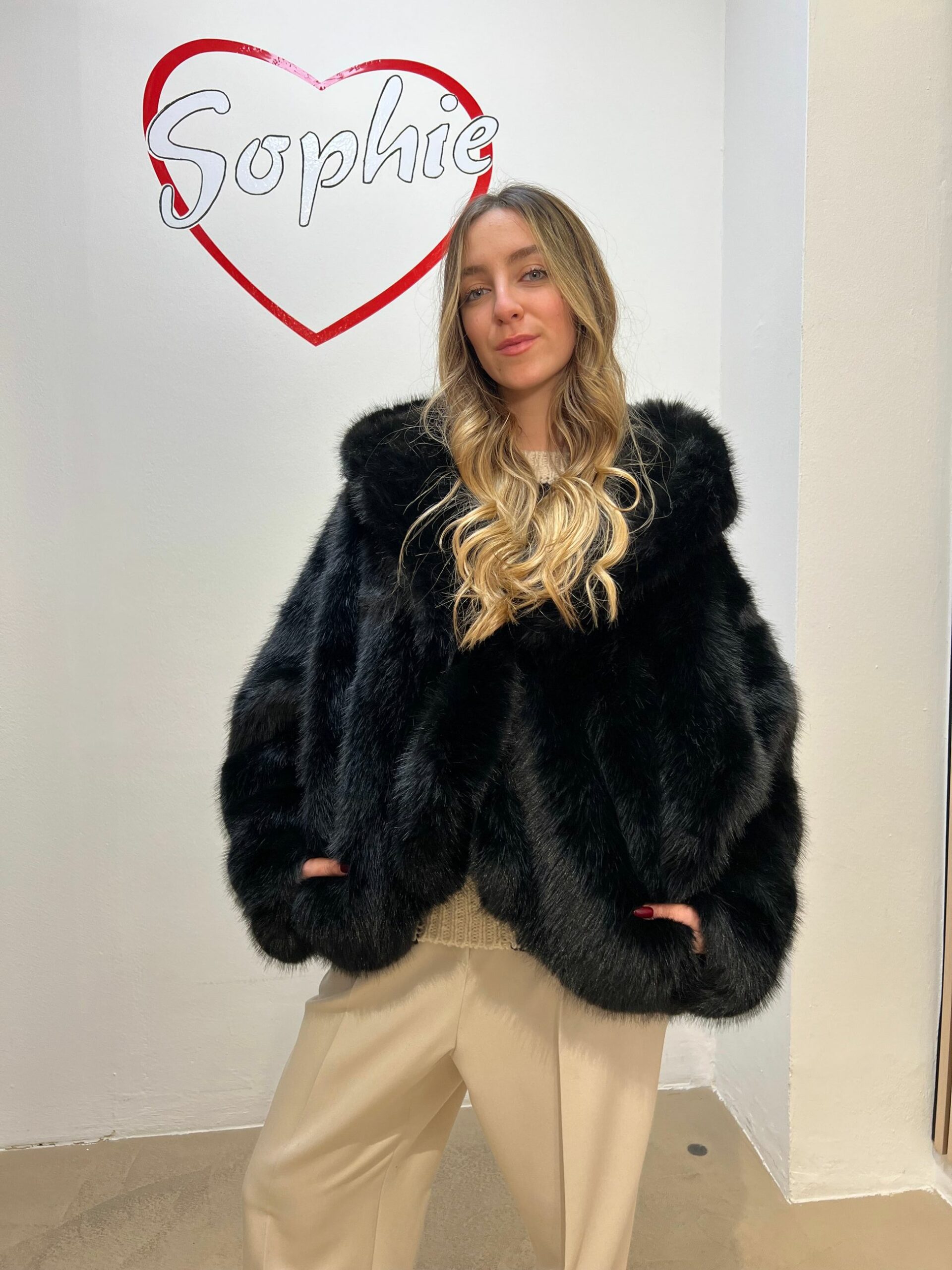 ECOPELLICCIA CON CAPPUCCIO STONDATA E CORTA SUL DAVANTI PIù LUNGA DIETRO