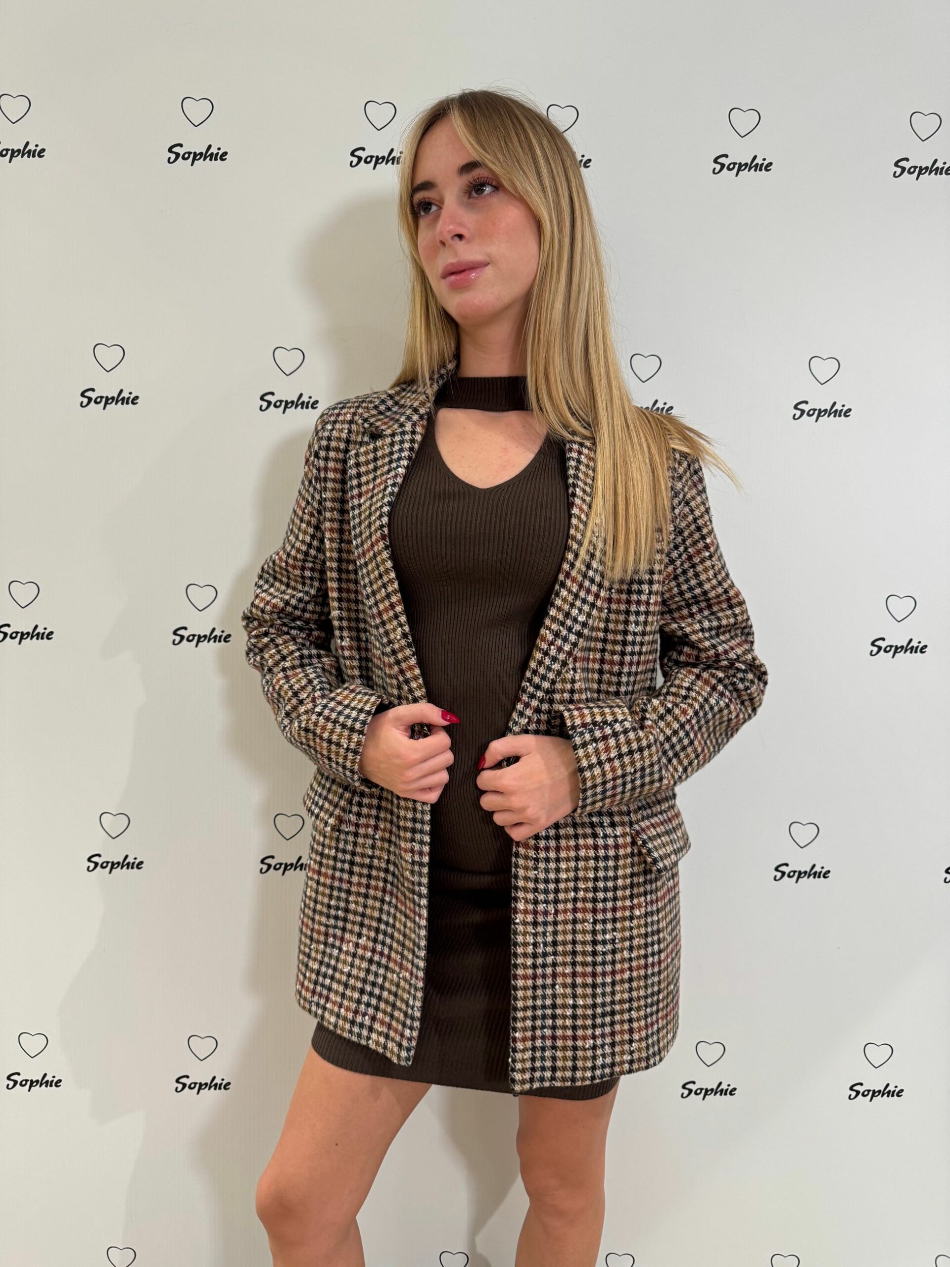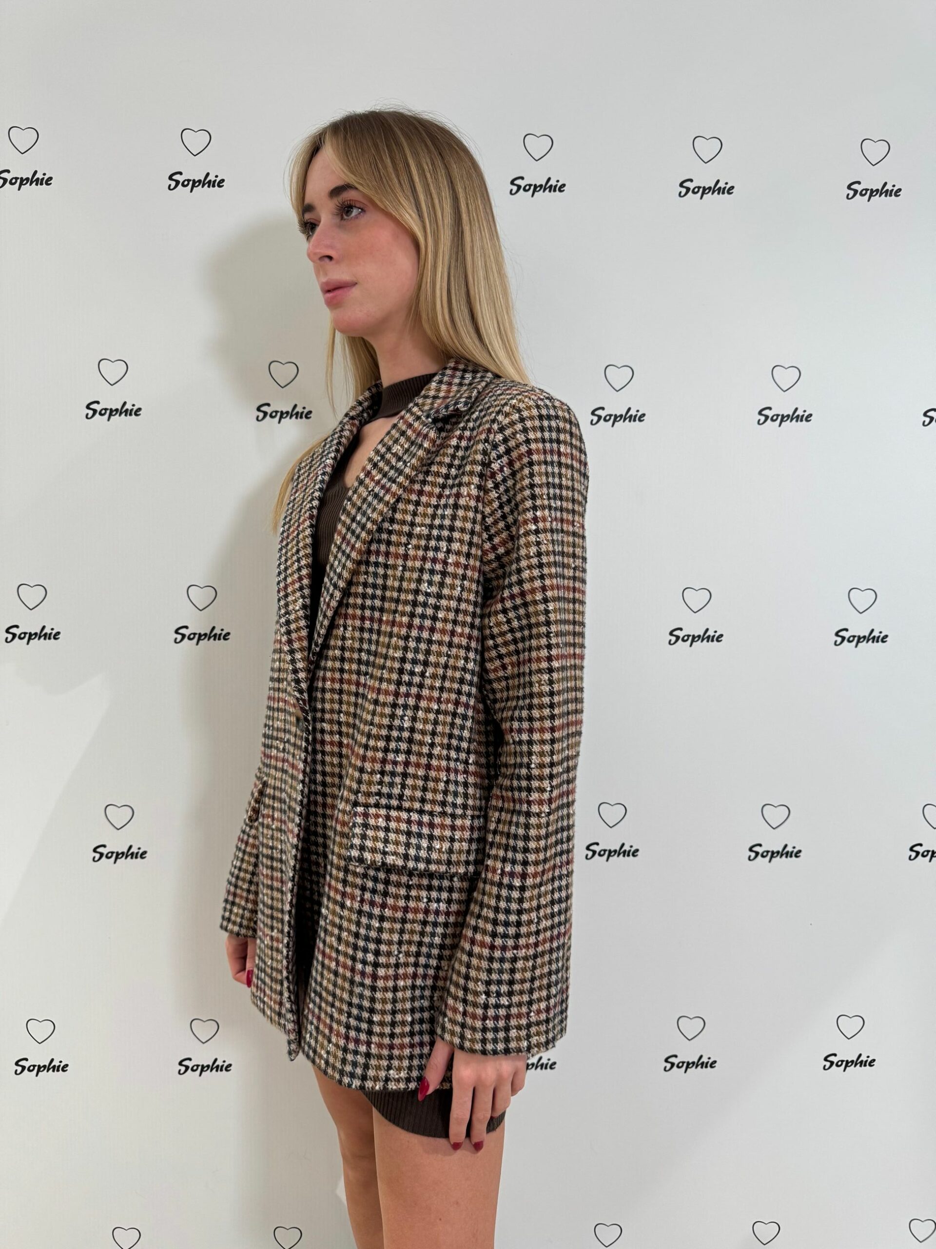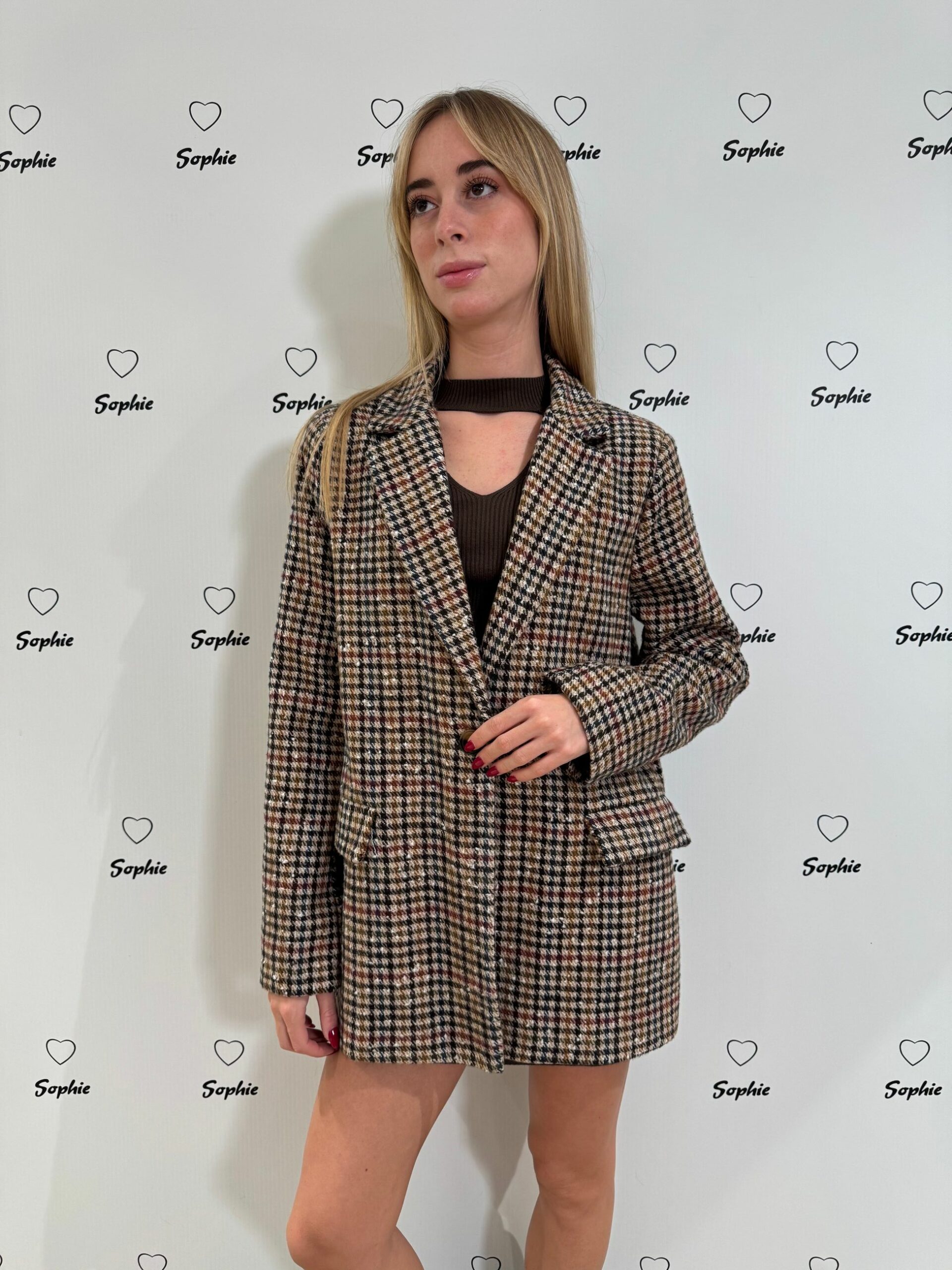 GIACCA IN PIED DE POULE MULTICOLOR CON TASCHE A PATTA SUL DAVANTI