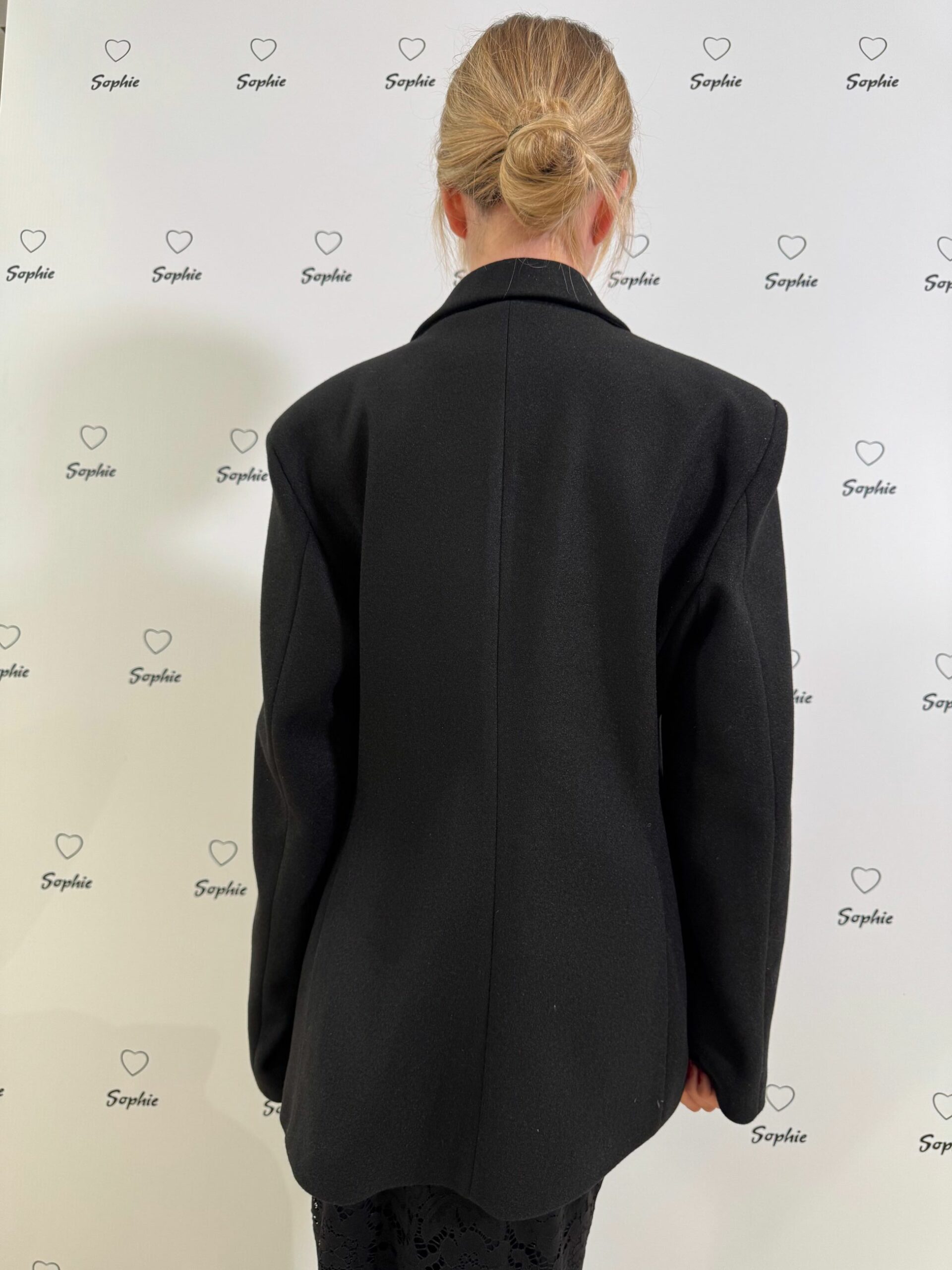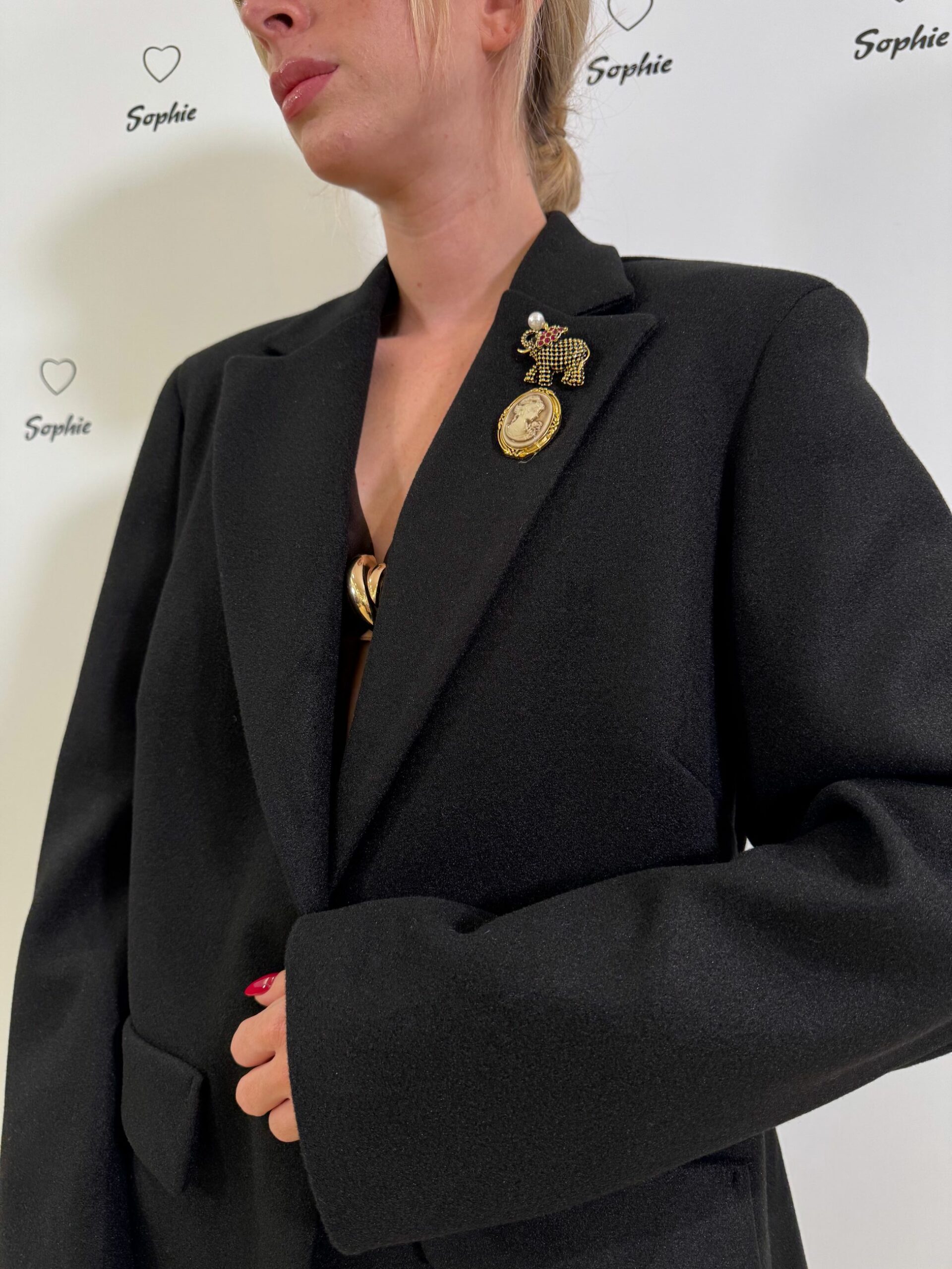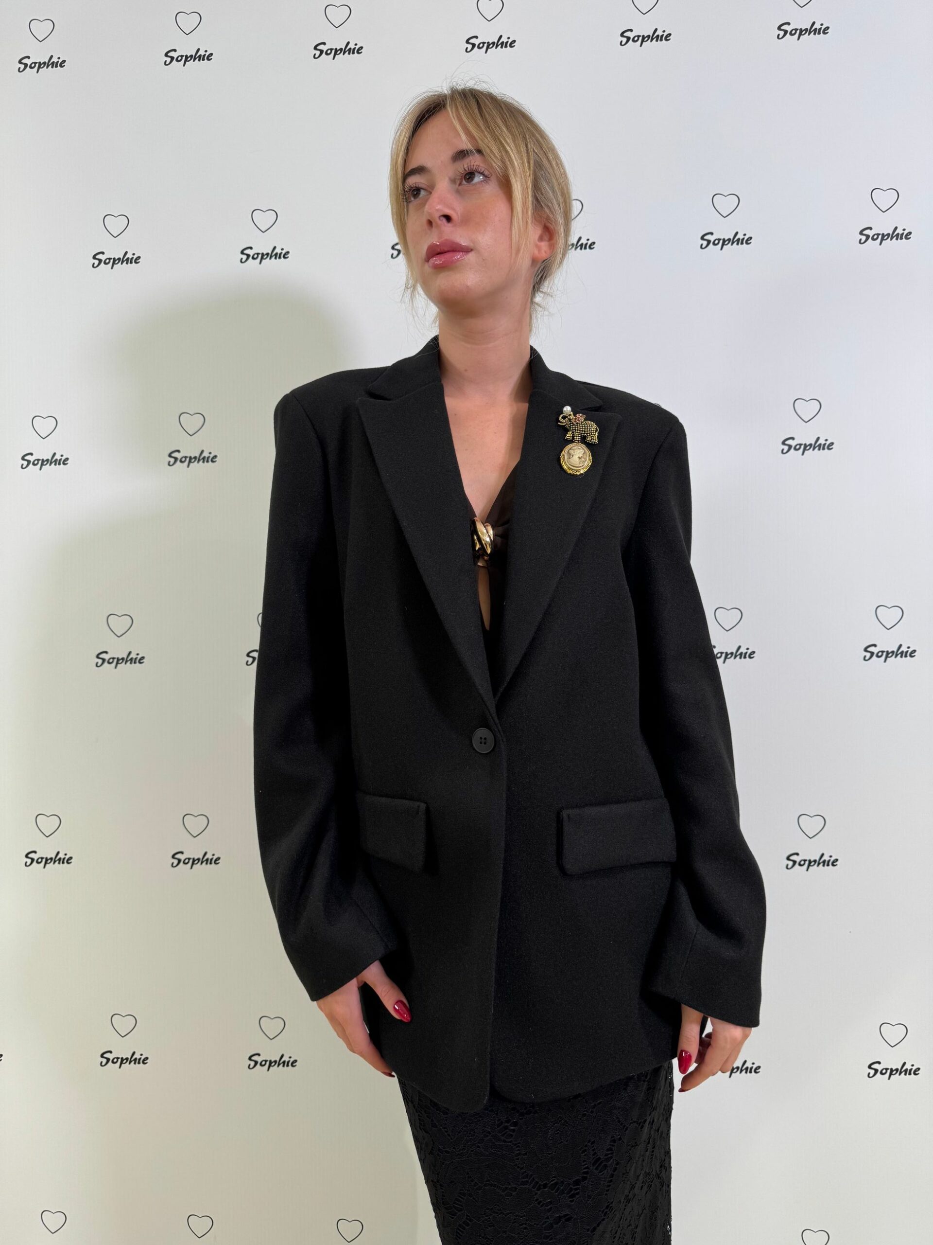 GIACCA NERA IN PANNETTO SFIANCATA AD UN BOTTONE, DUE SPILLE SUL REVER