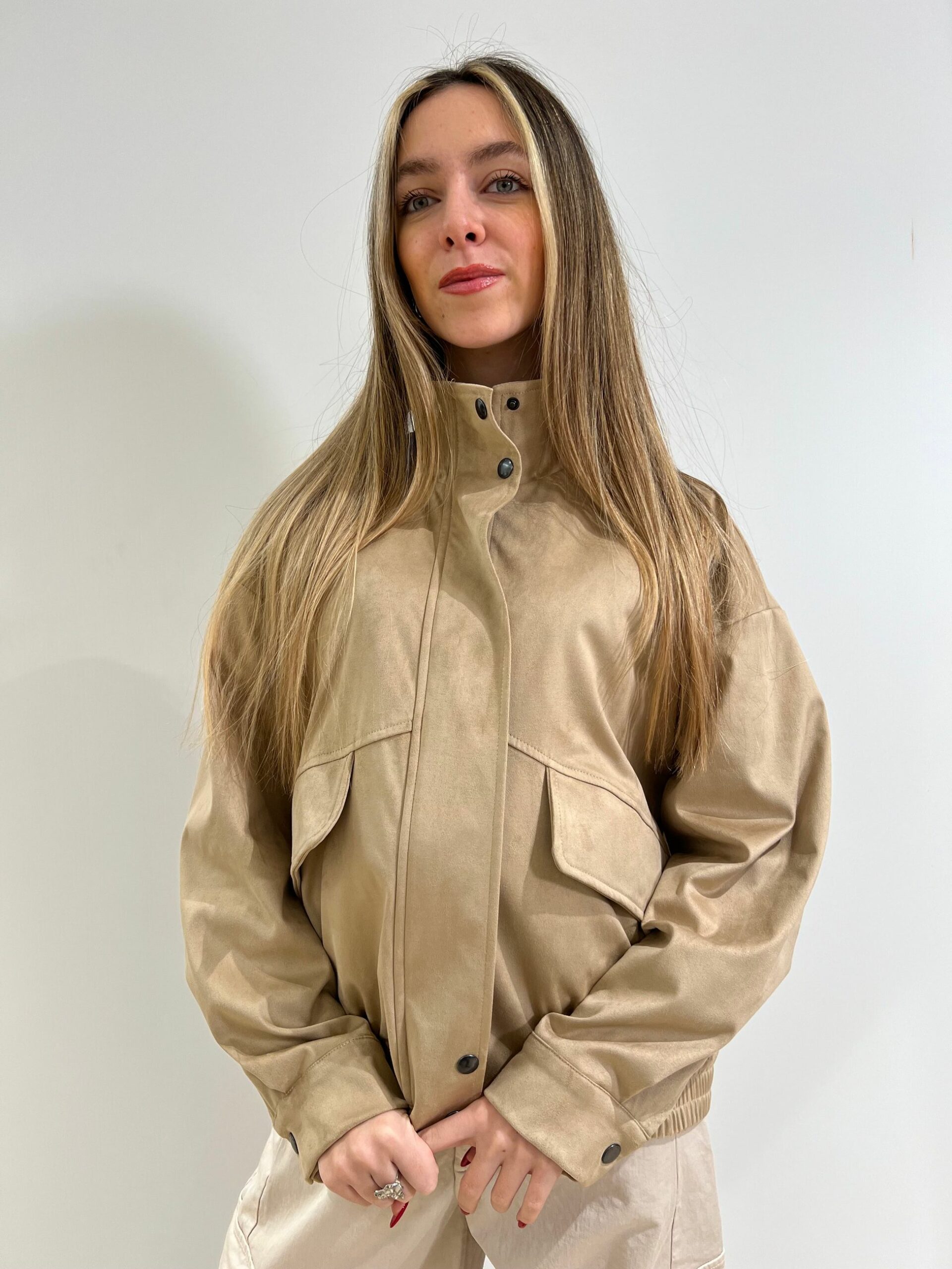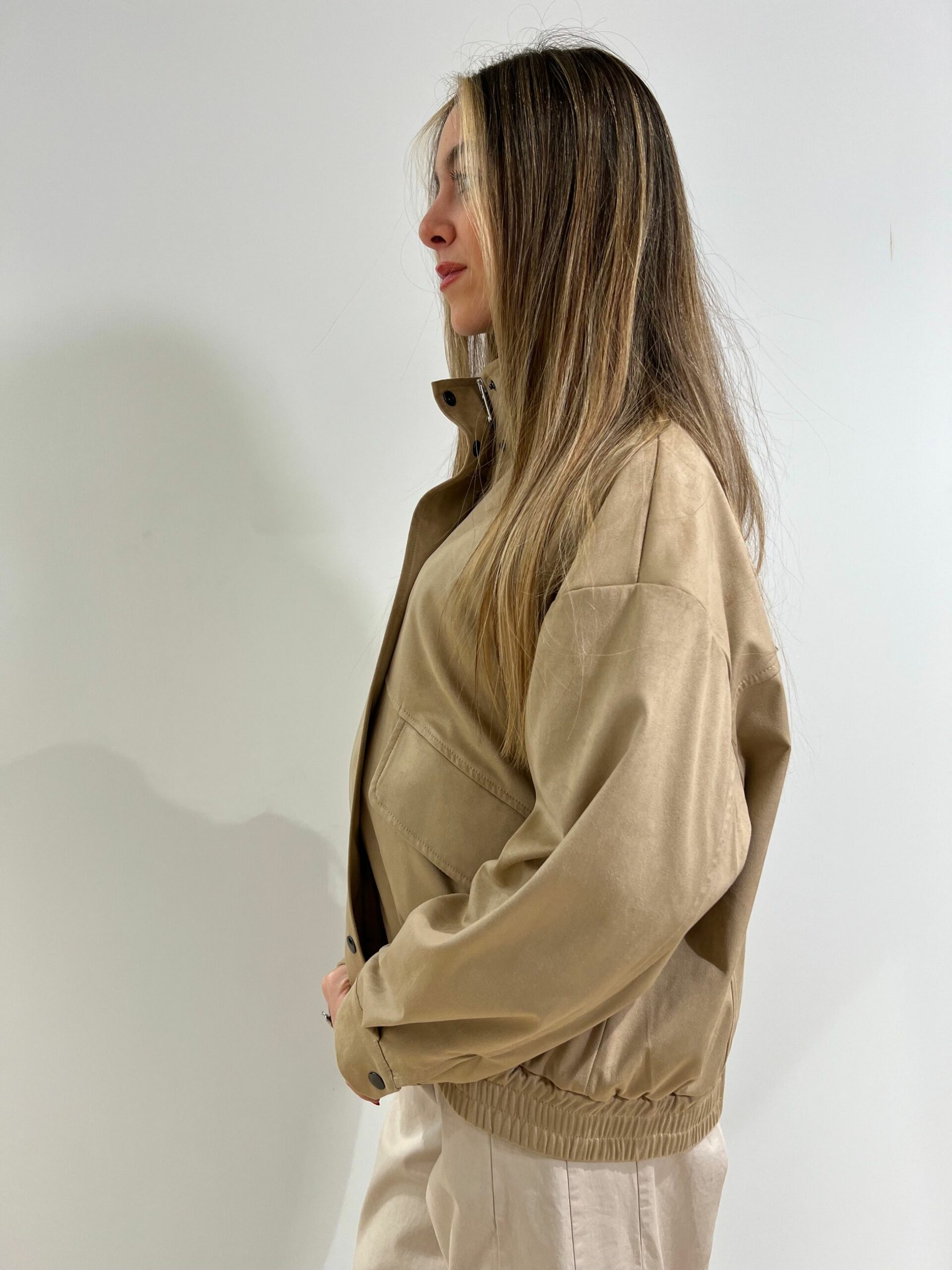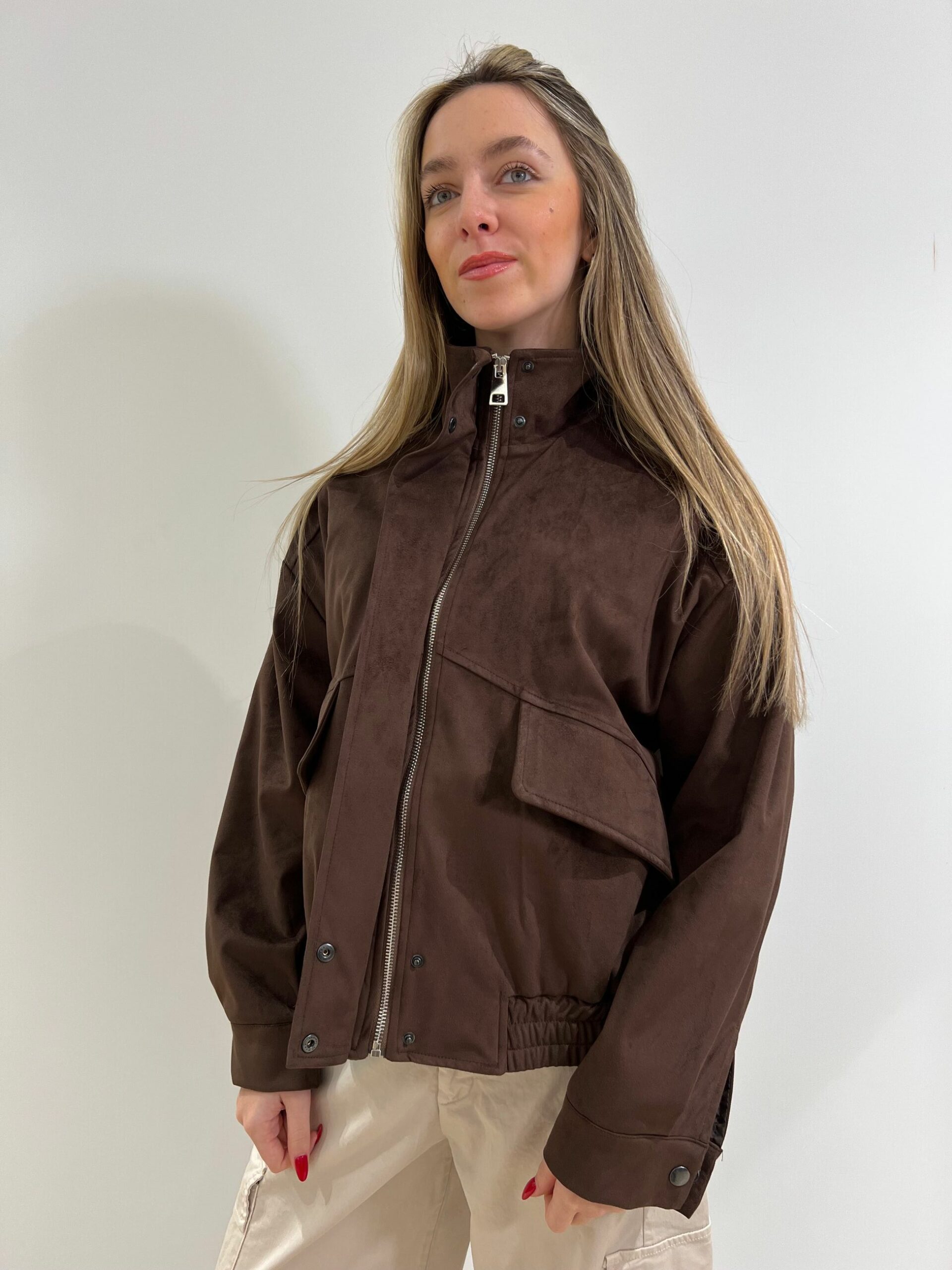 GIUBBINO IN ECODAINETTO FODERATO, CHIUSURA CON ZIP E PATTA ANTIVENTO