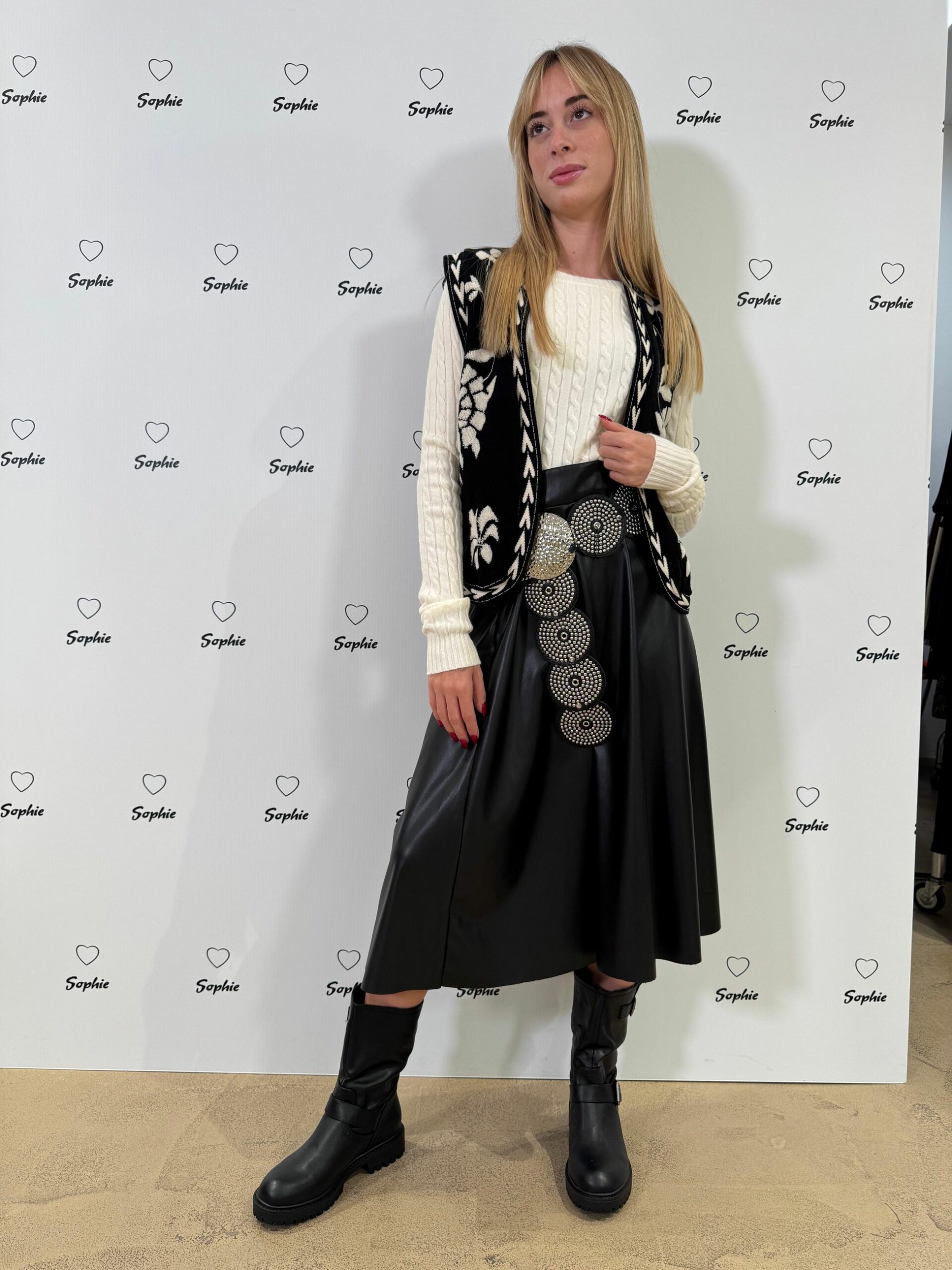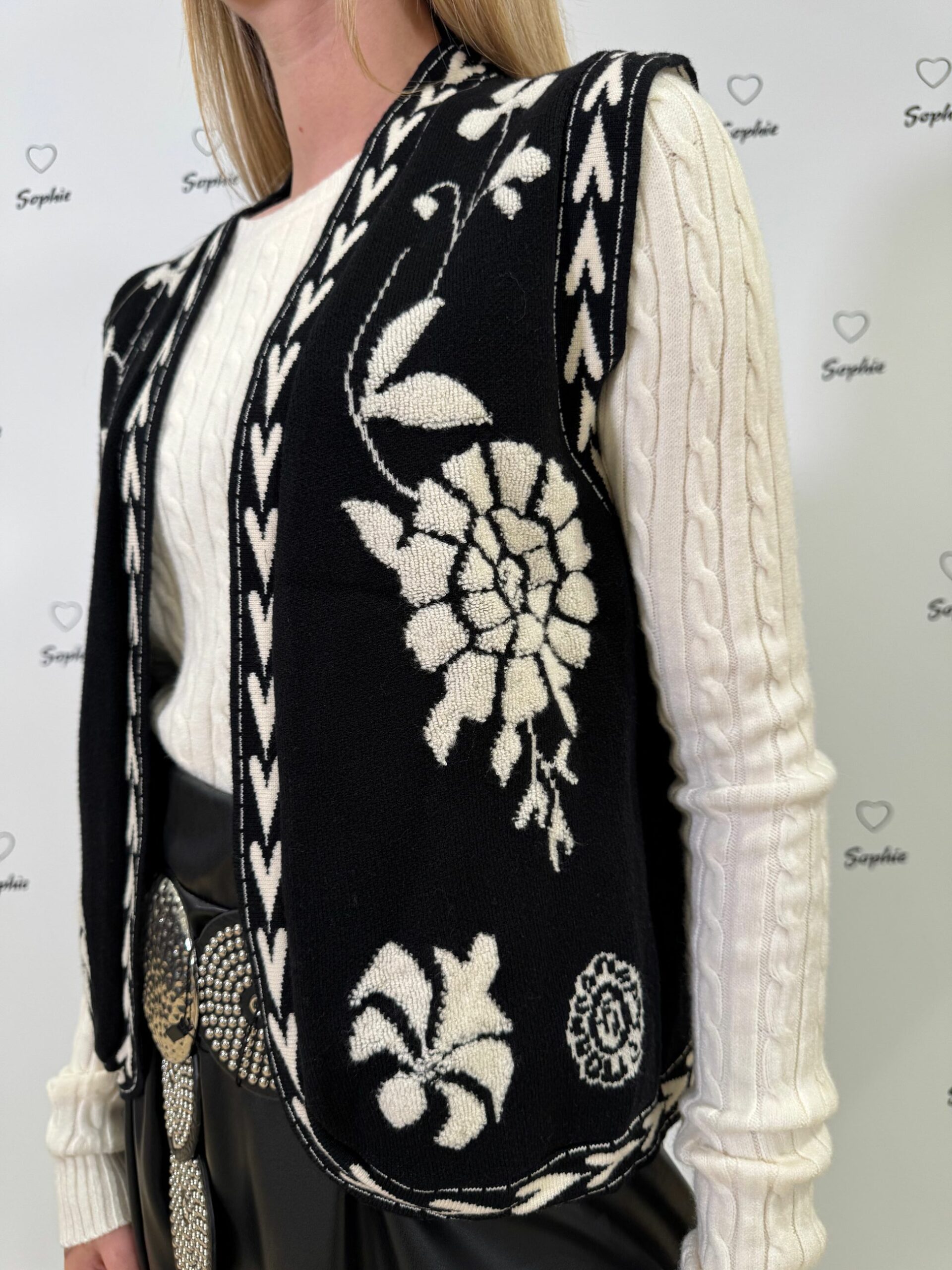 GILET TAGLIA UNICA FONDO NERO RICAMATO