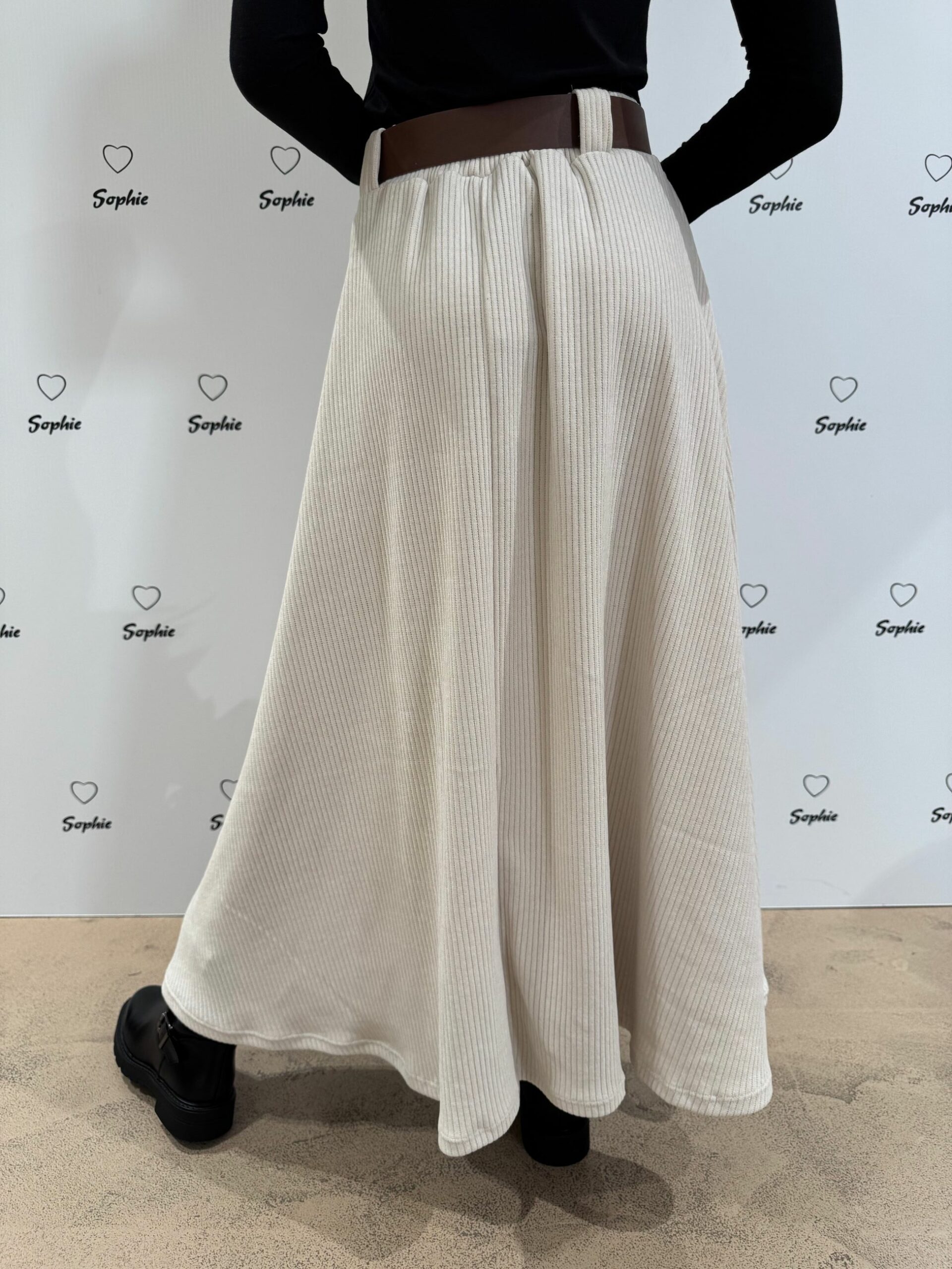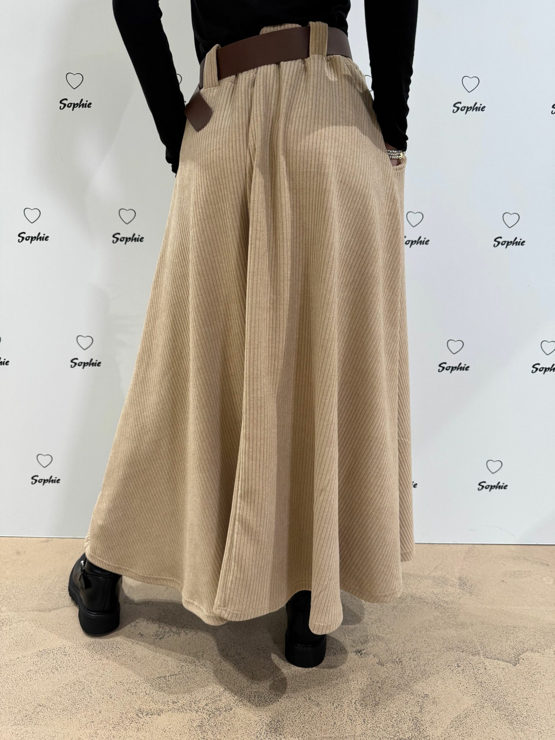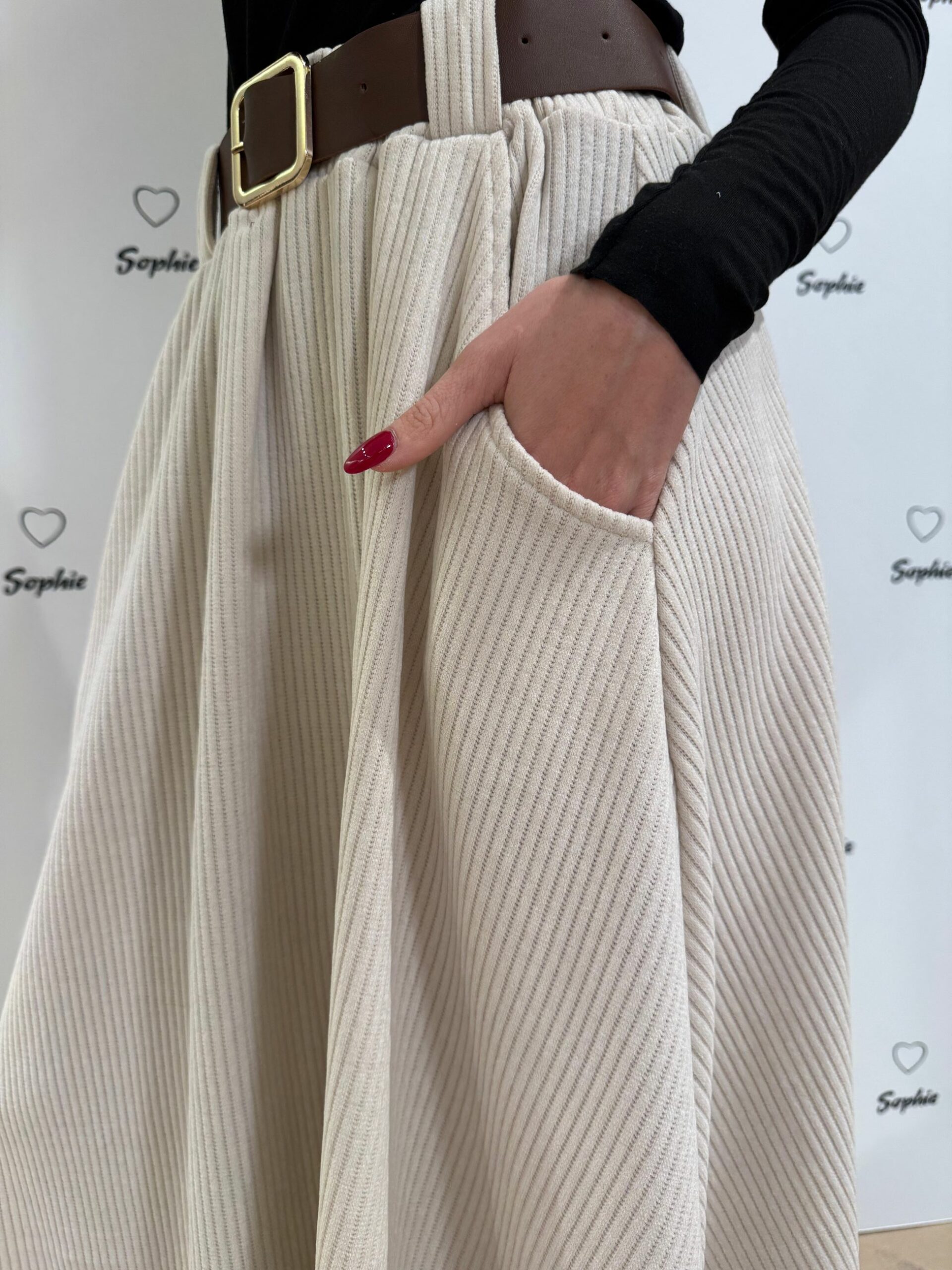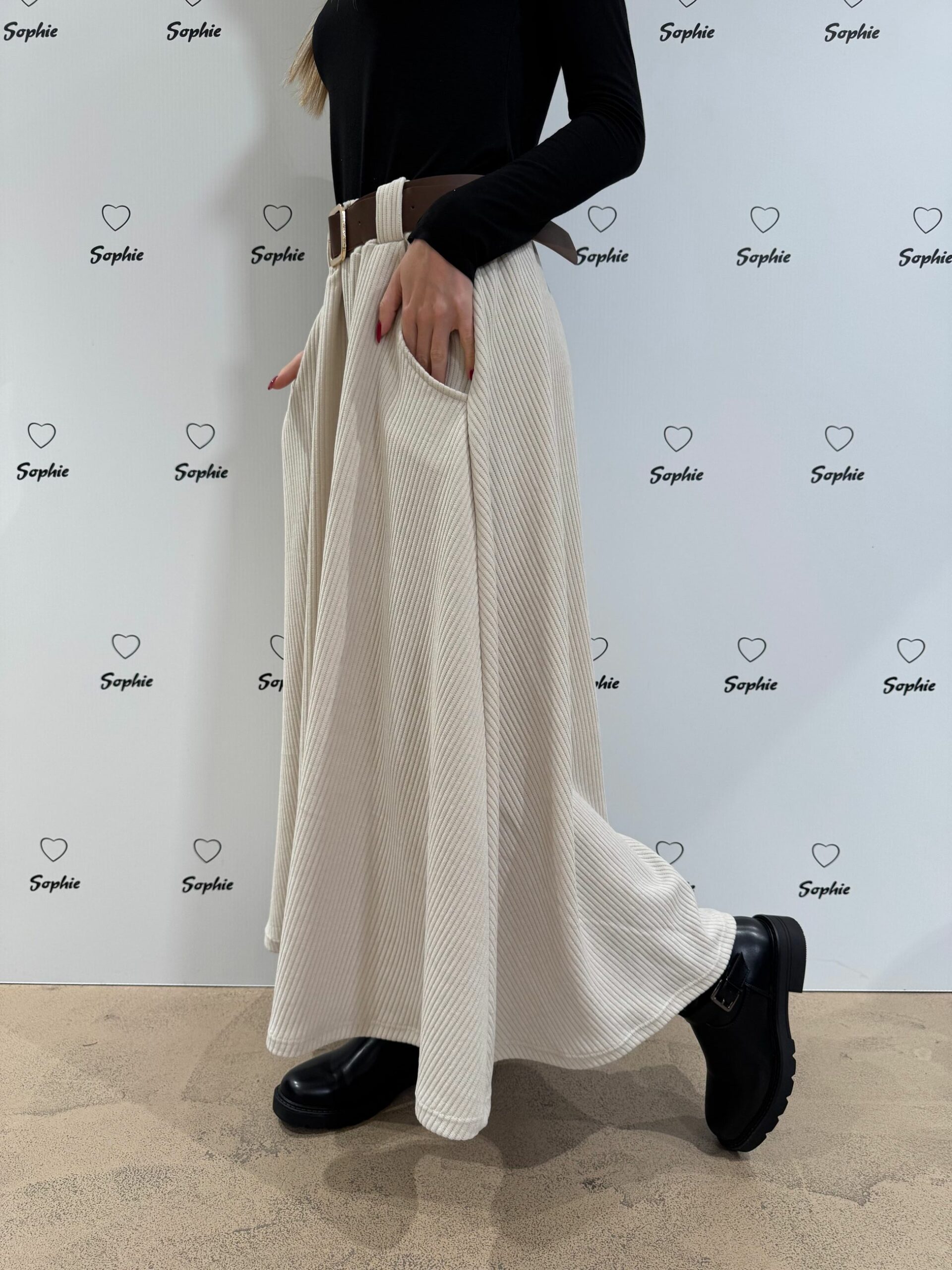 GONNA LUNGA SVASATA CON ELASTICO IN VITA IN TESSUTO EFFETTO VELLUTO A COSTE SOTTILI