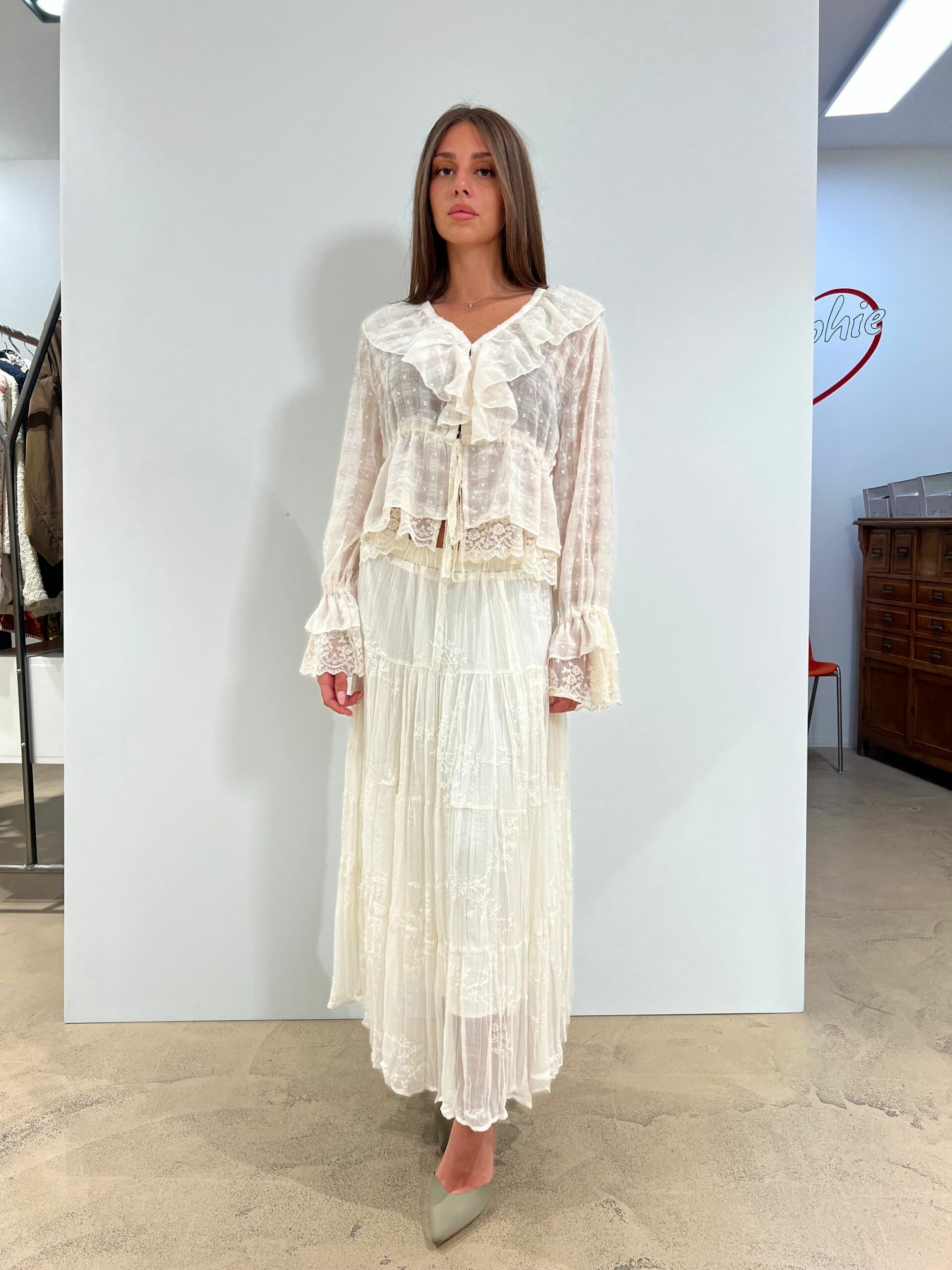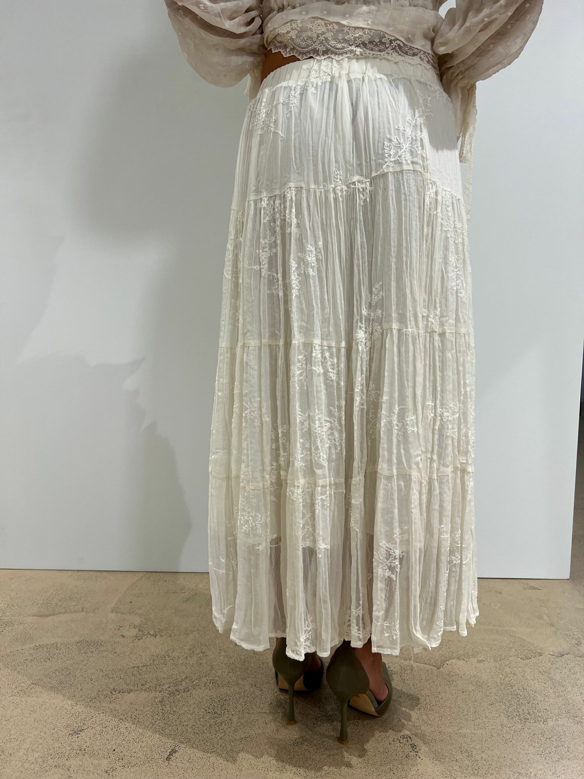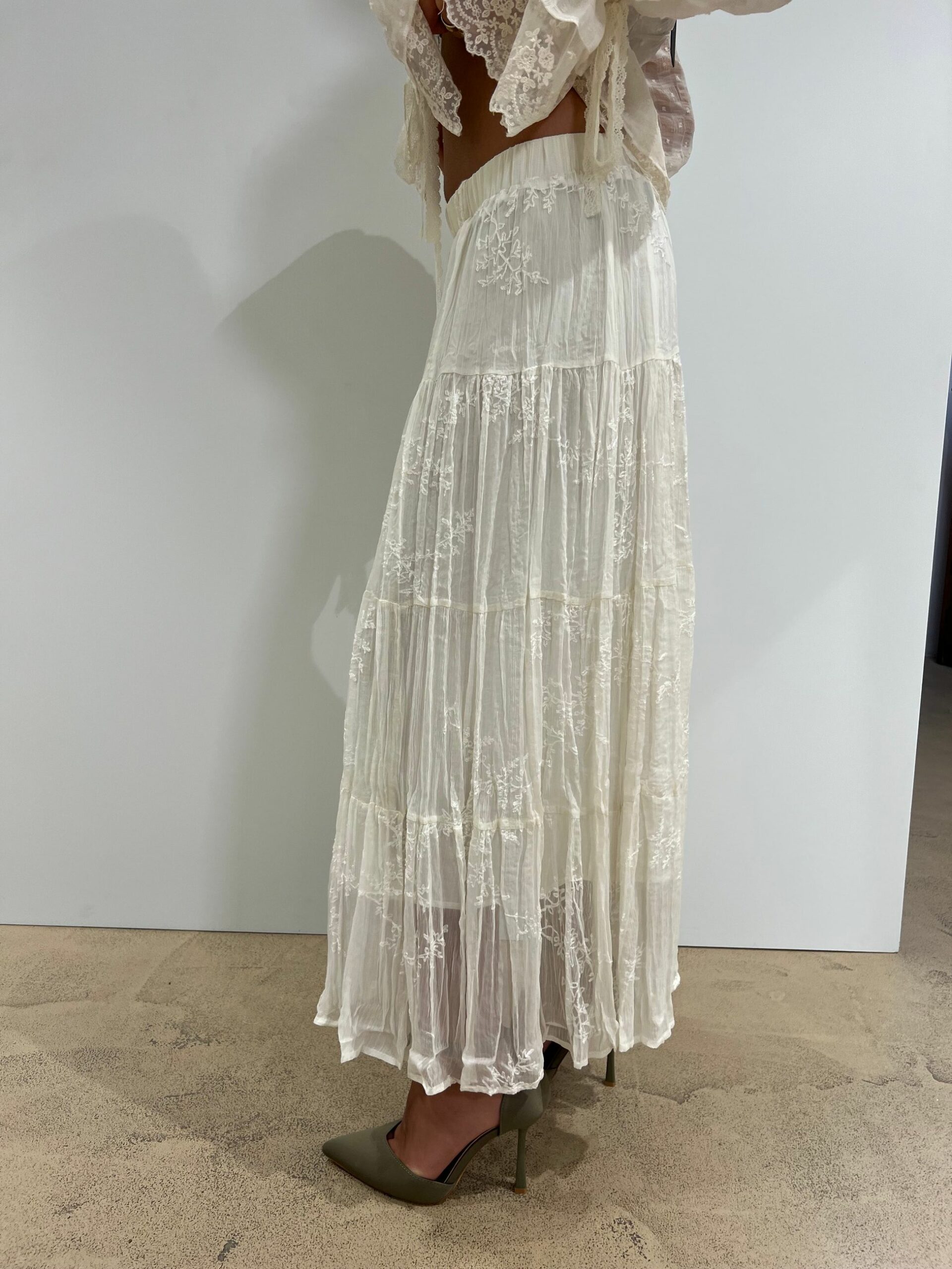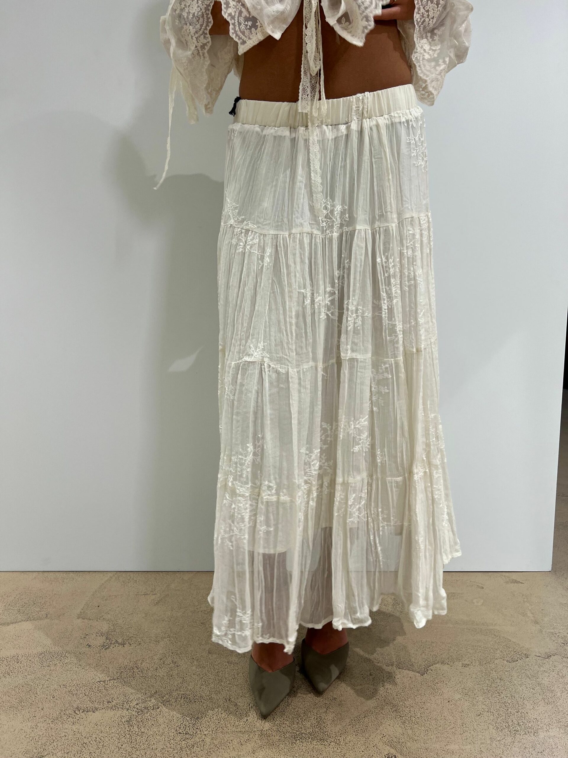 GONNA LUNGA IN TULLE E PIZZO, FODERATA CON ELASTICO IN VITA