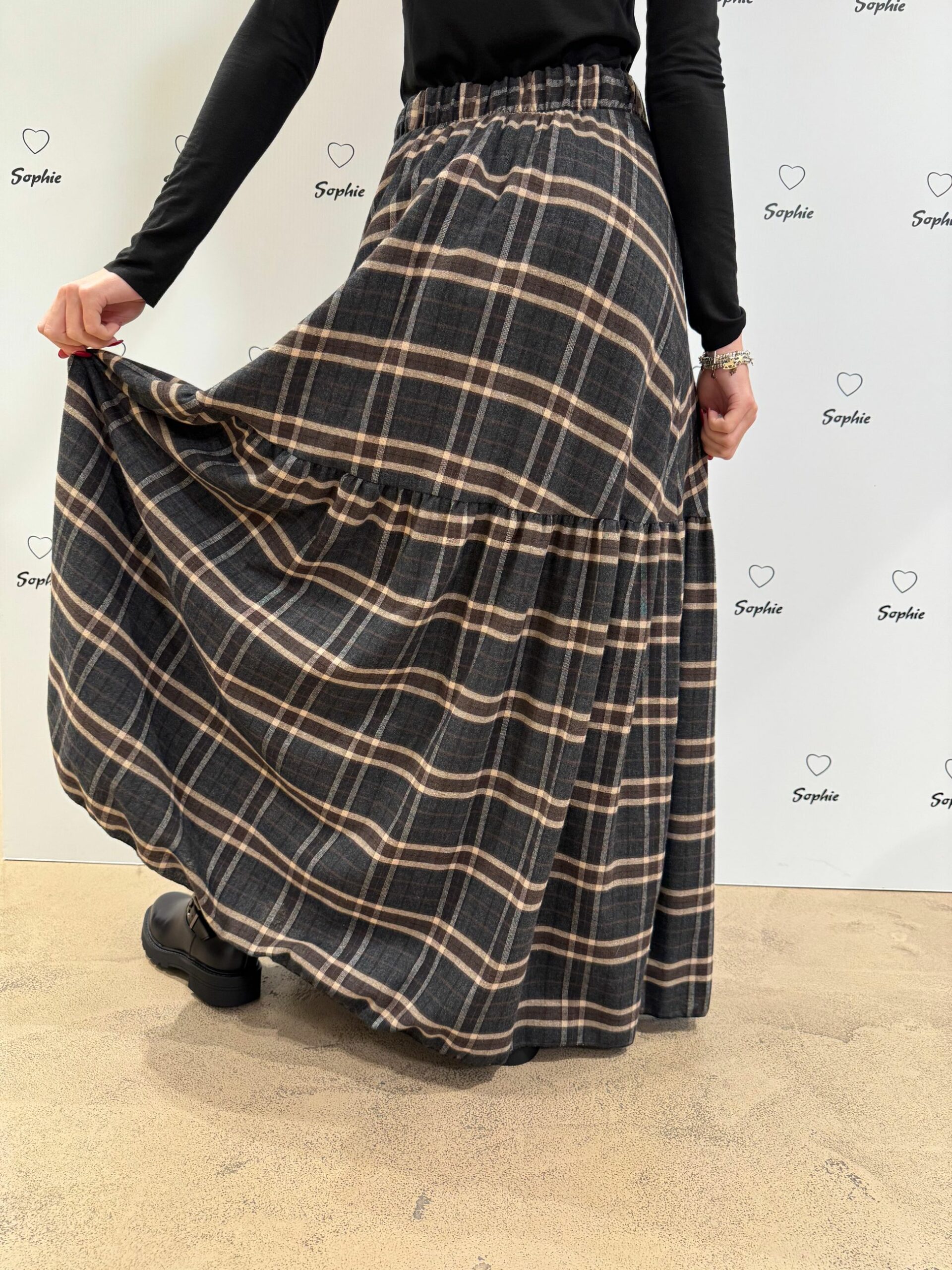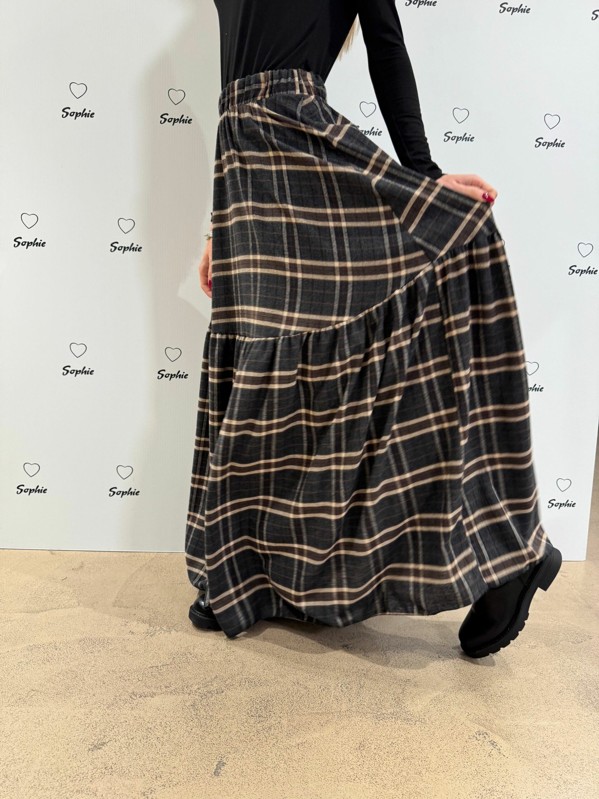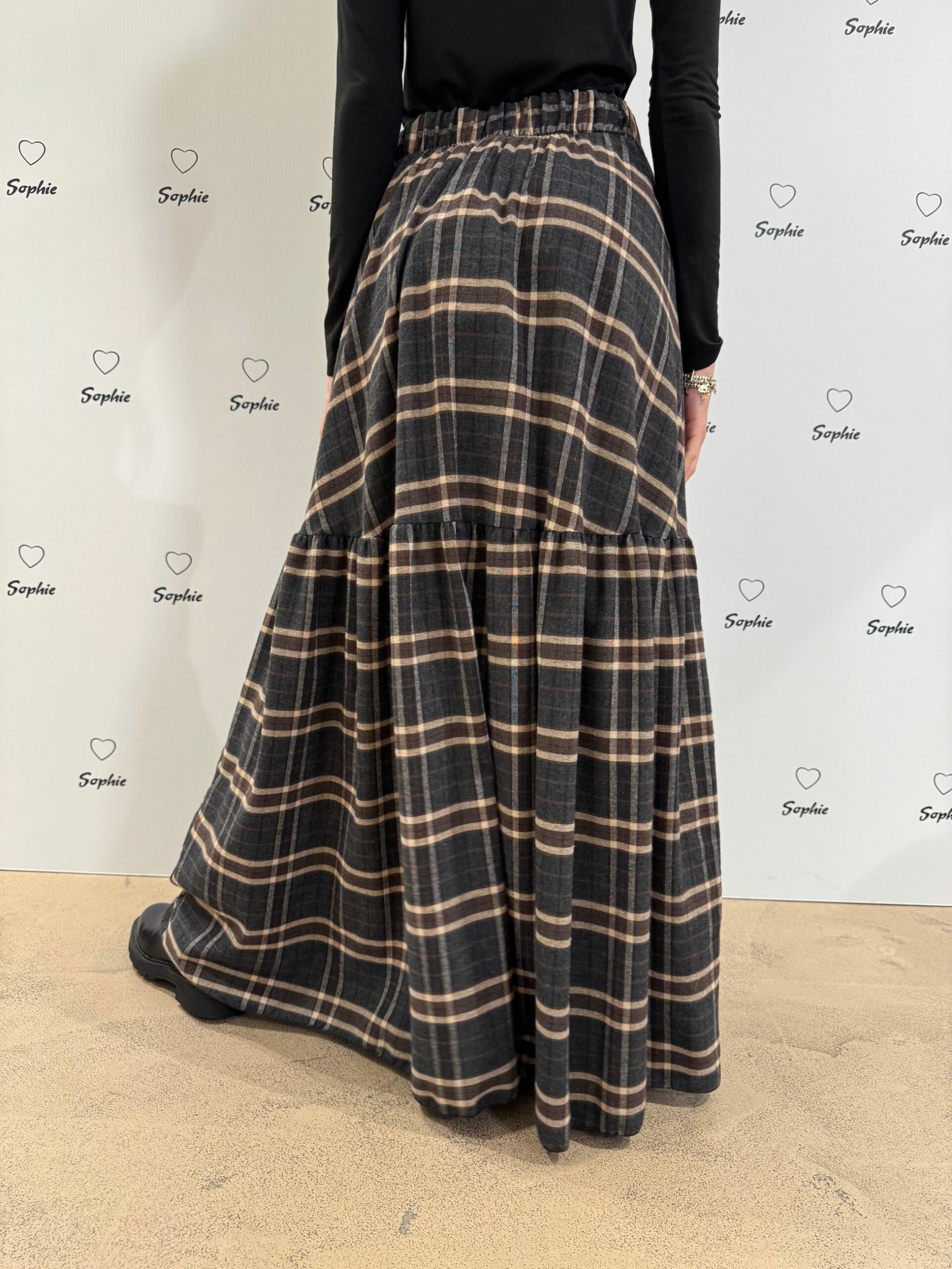 GONNA LUNGA FANTASIA CHECK CON ELASTICO IN VITA E BALZA