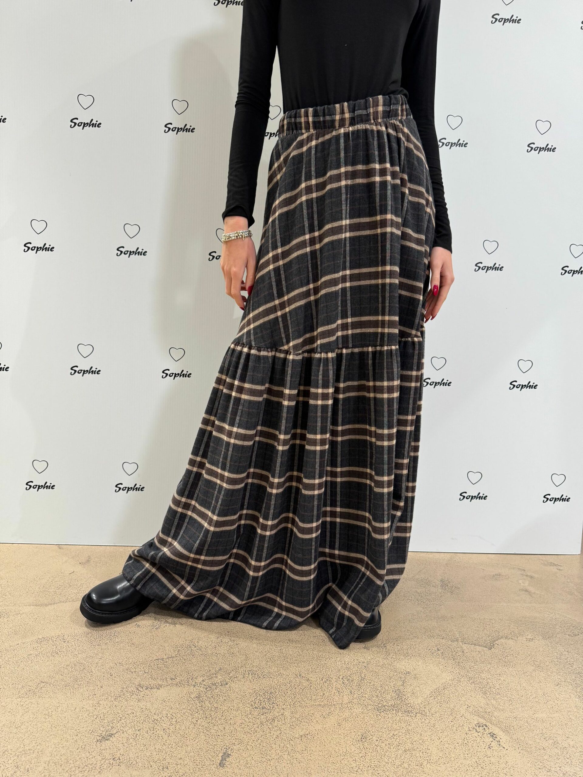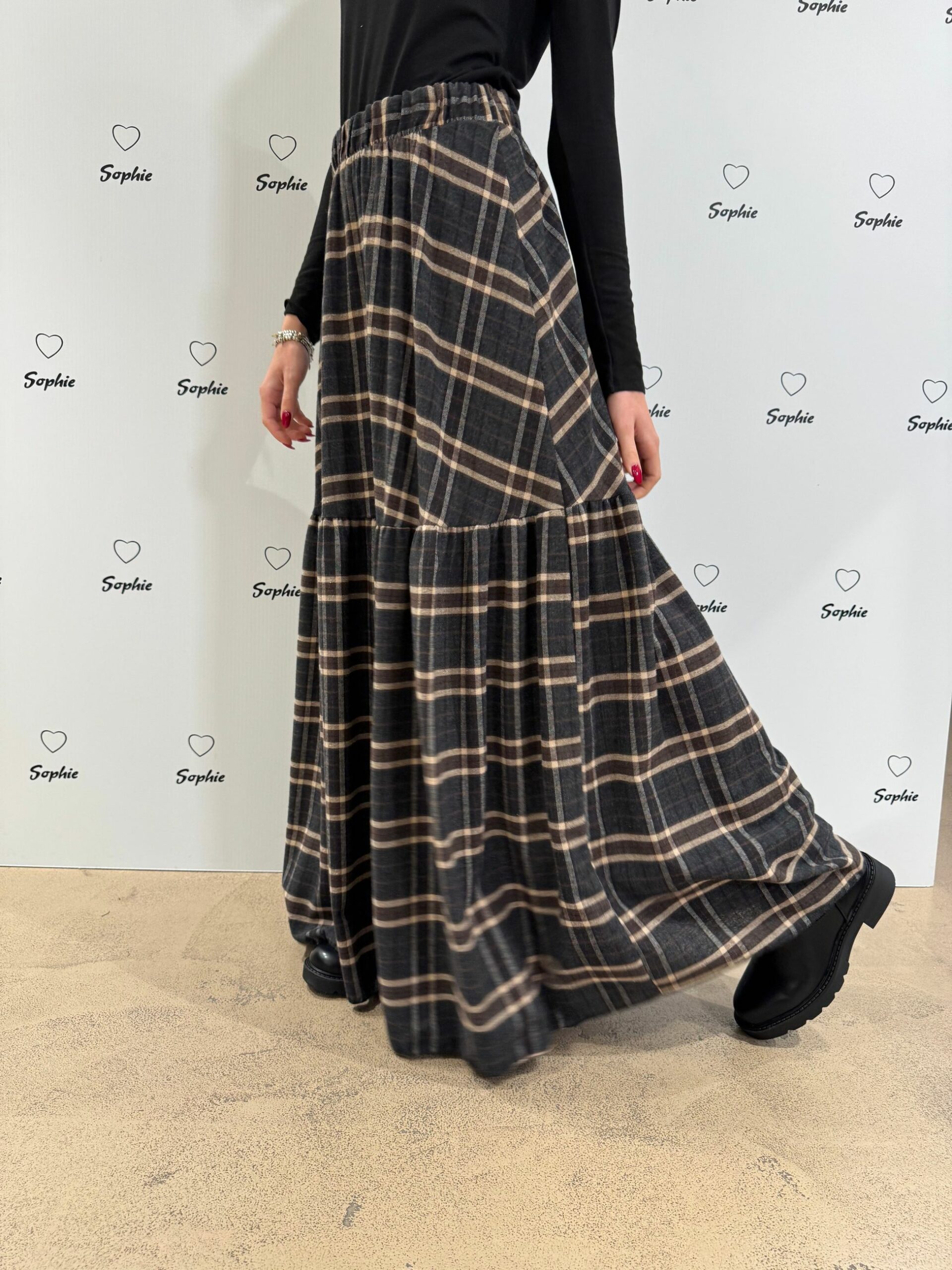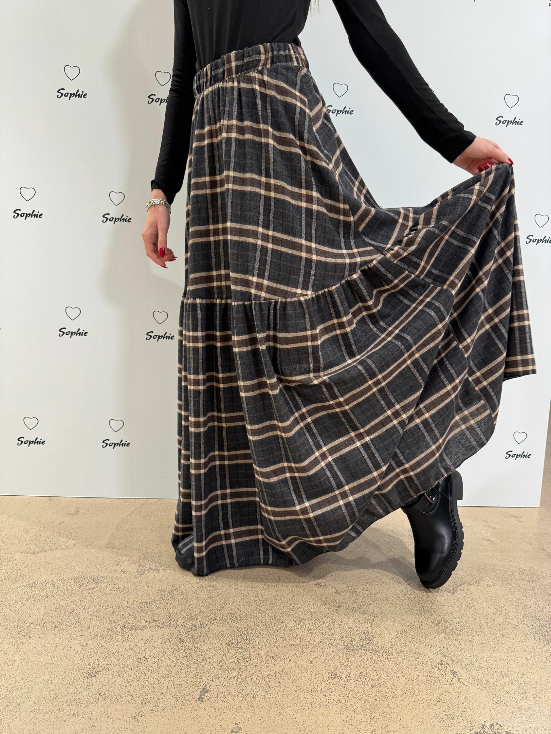 GONNA LUNGA FANTASIA CHECK CON ELASTICO IN VITA E BALZA