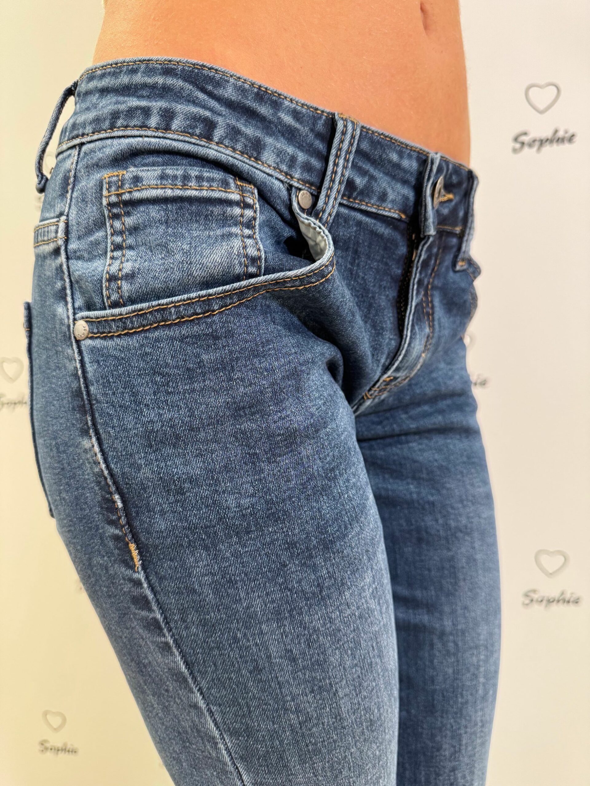 PANTALONE IN JEANS ELASTICIZZATO GAMBA STRETTA VITA BASSA