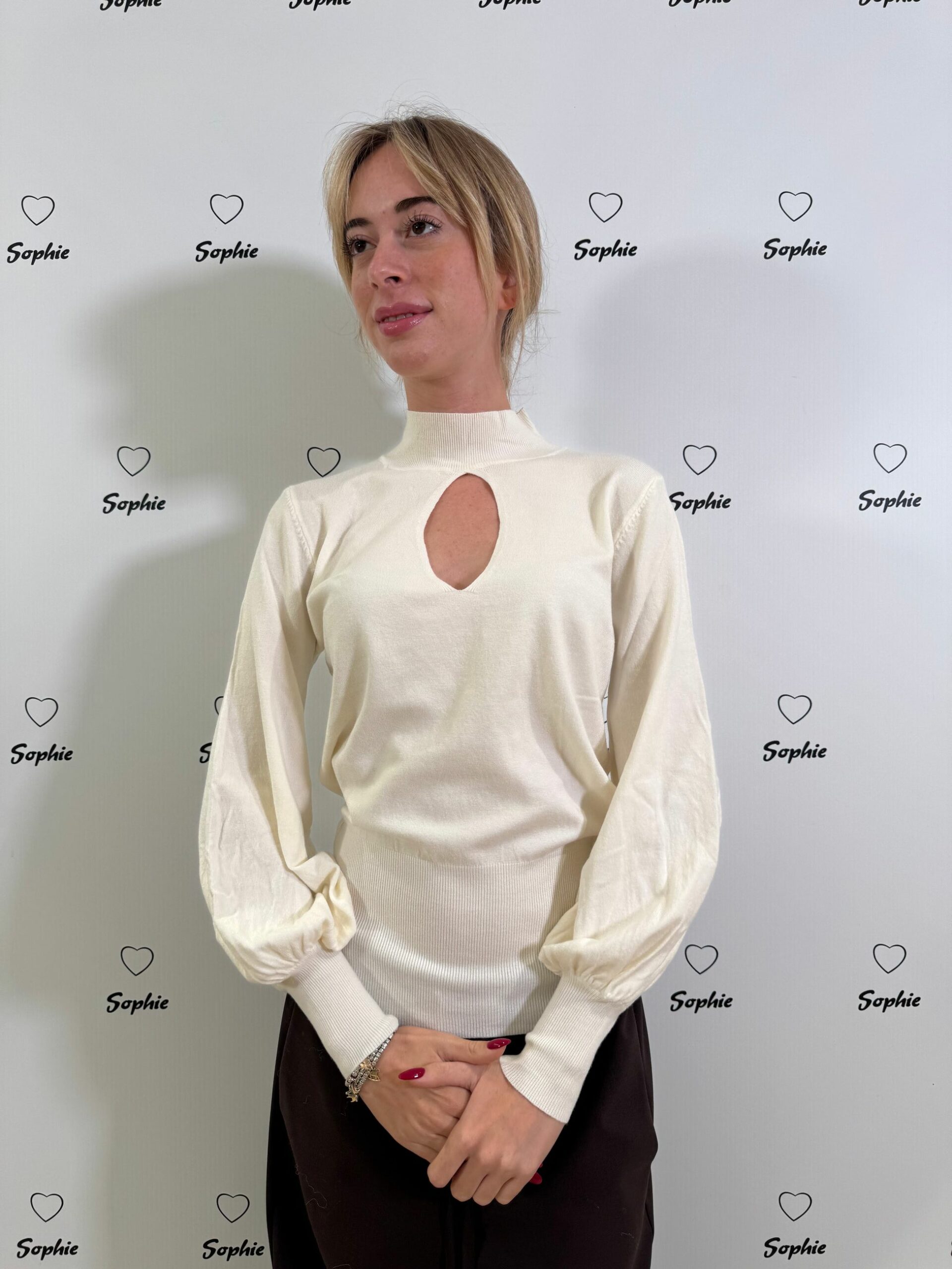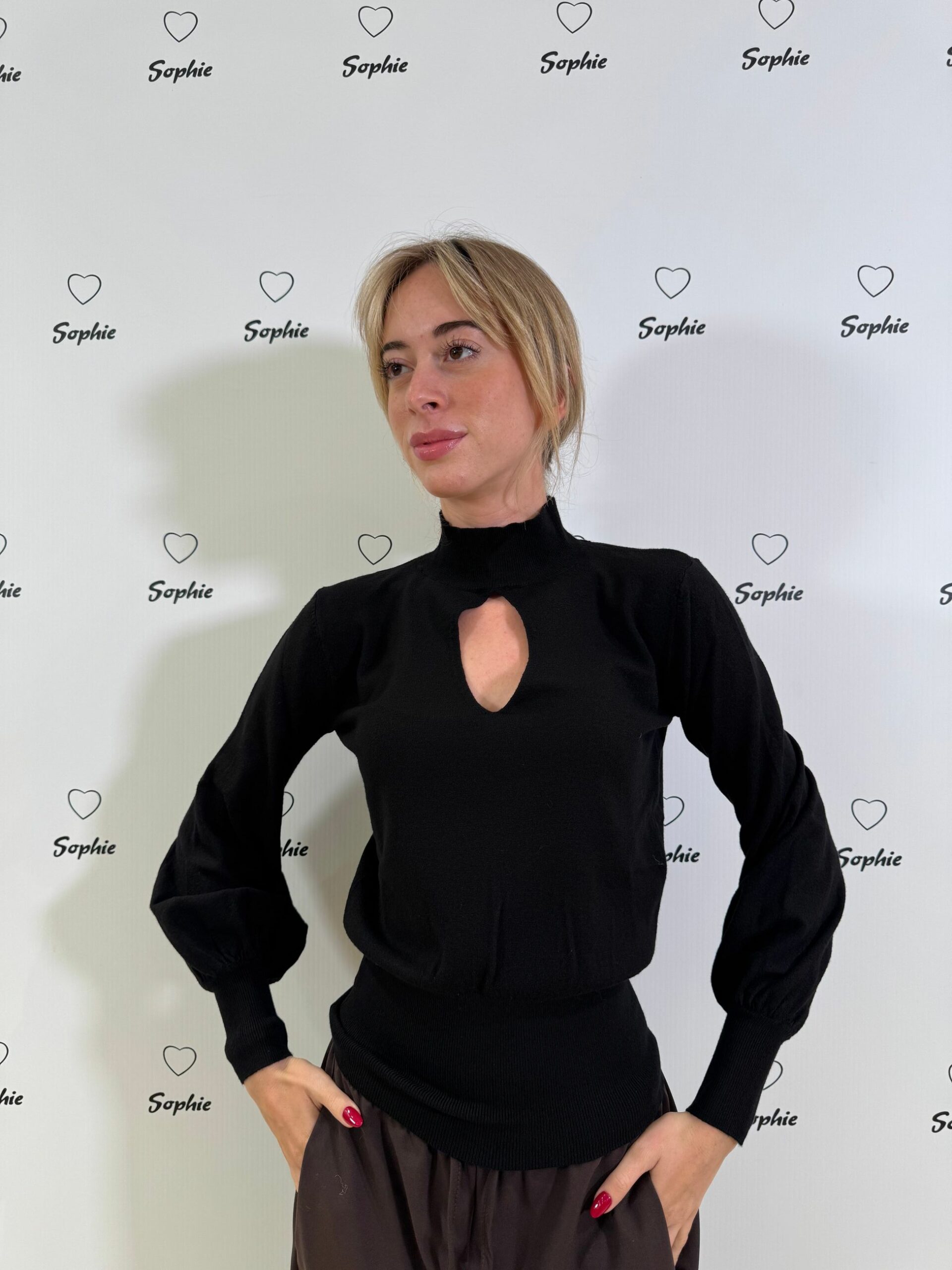 MAGLIA IN VISCOSA CON COLLO A LUPETTO ED APERTURA A GOCCIA