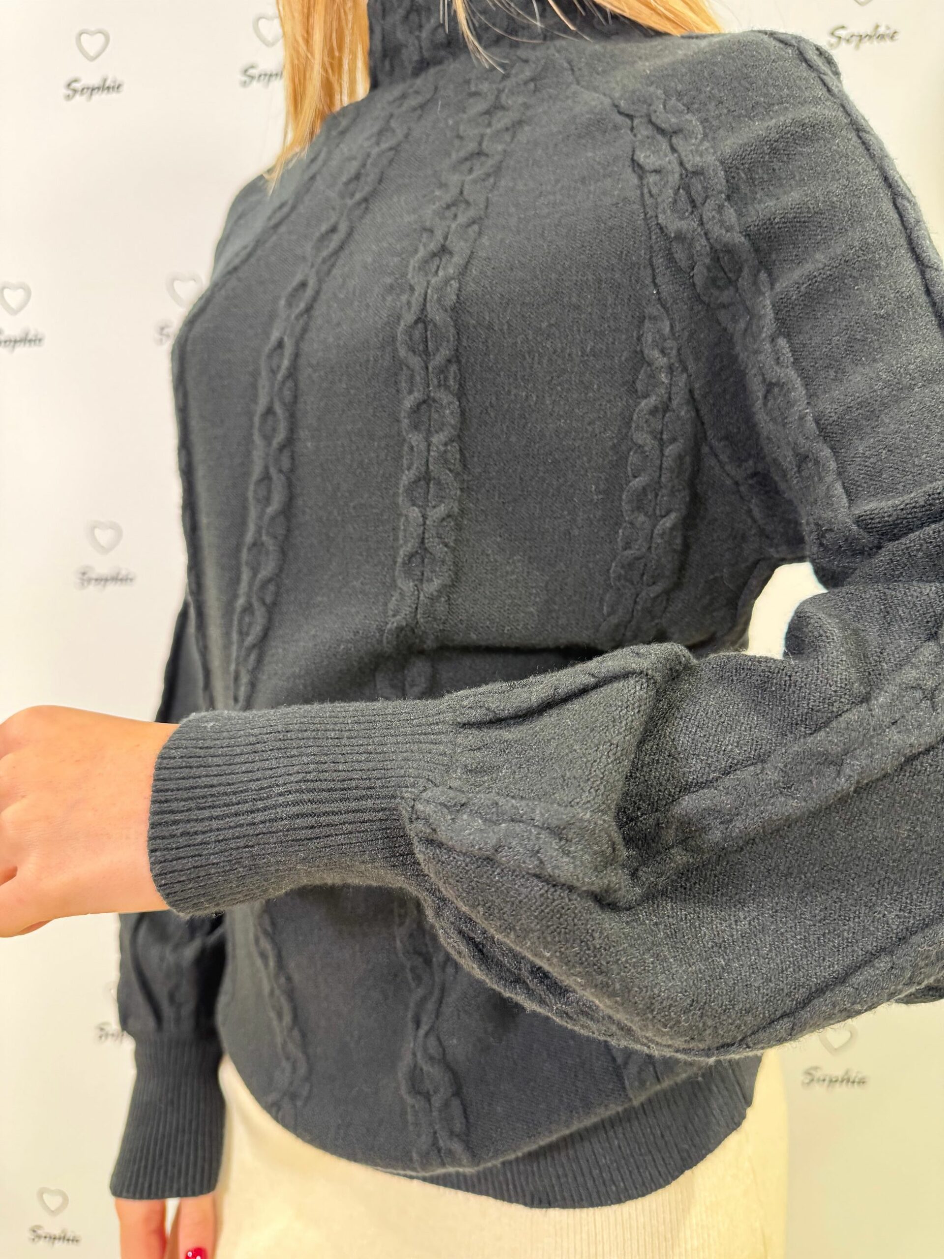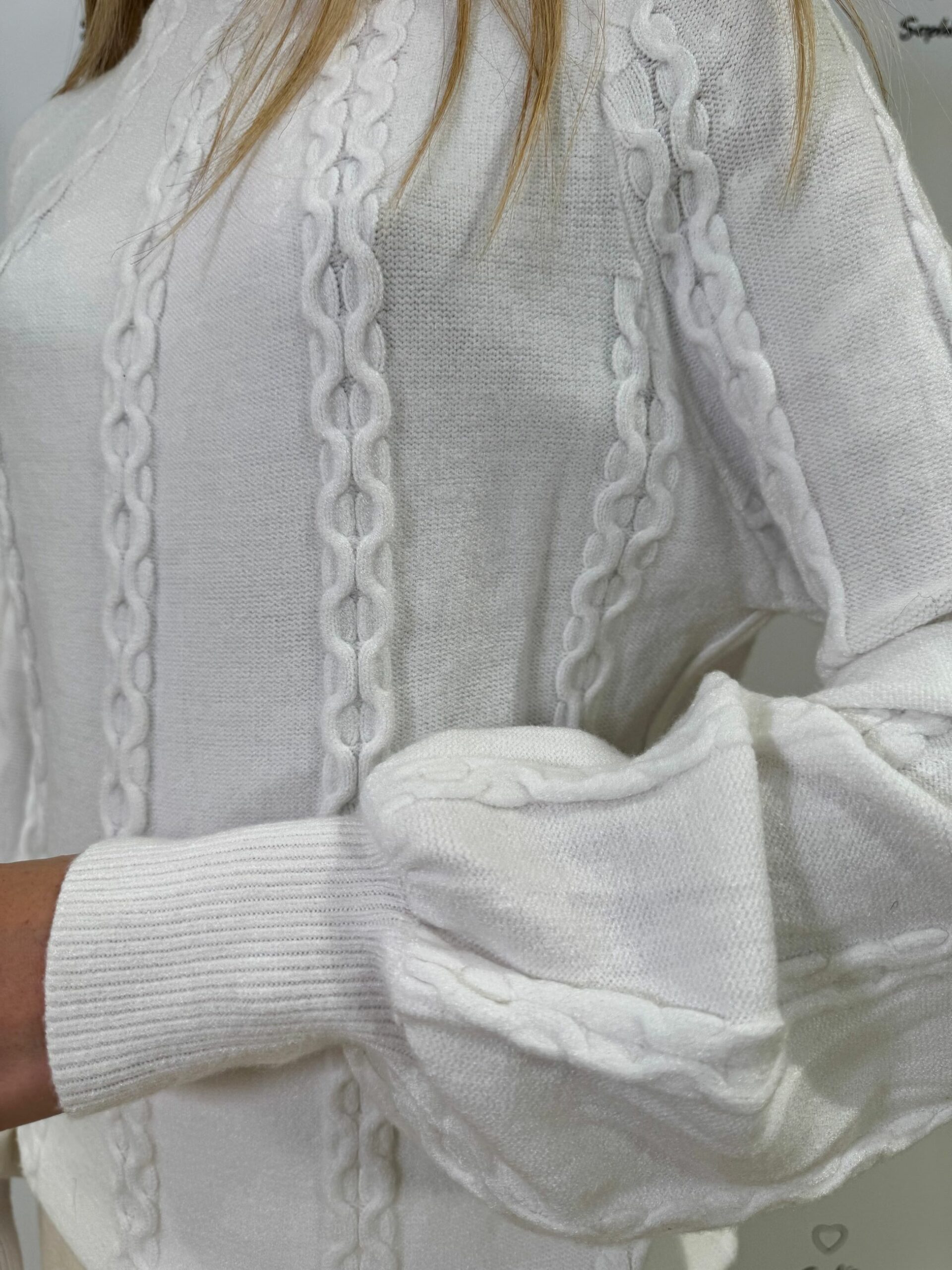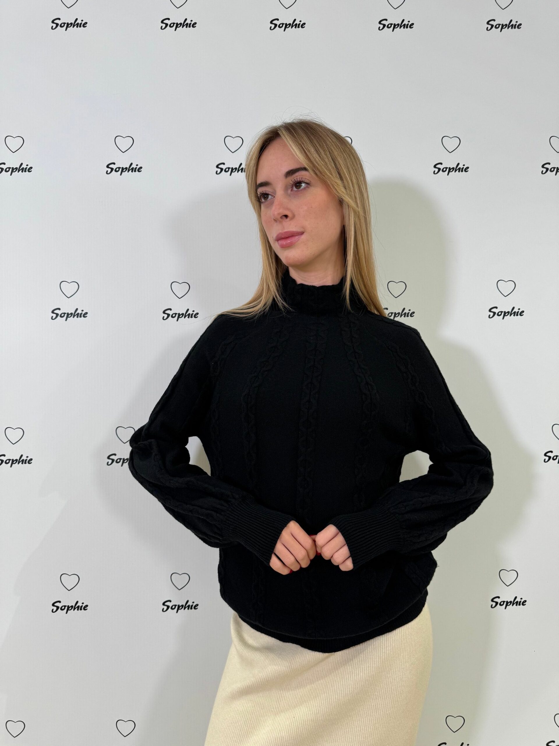 MAGLIA GIROCOLLO STRETTO CON FONDO MANICA LARGO E POLSINO STRETTO. LUNGHEZZA MEDIA