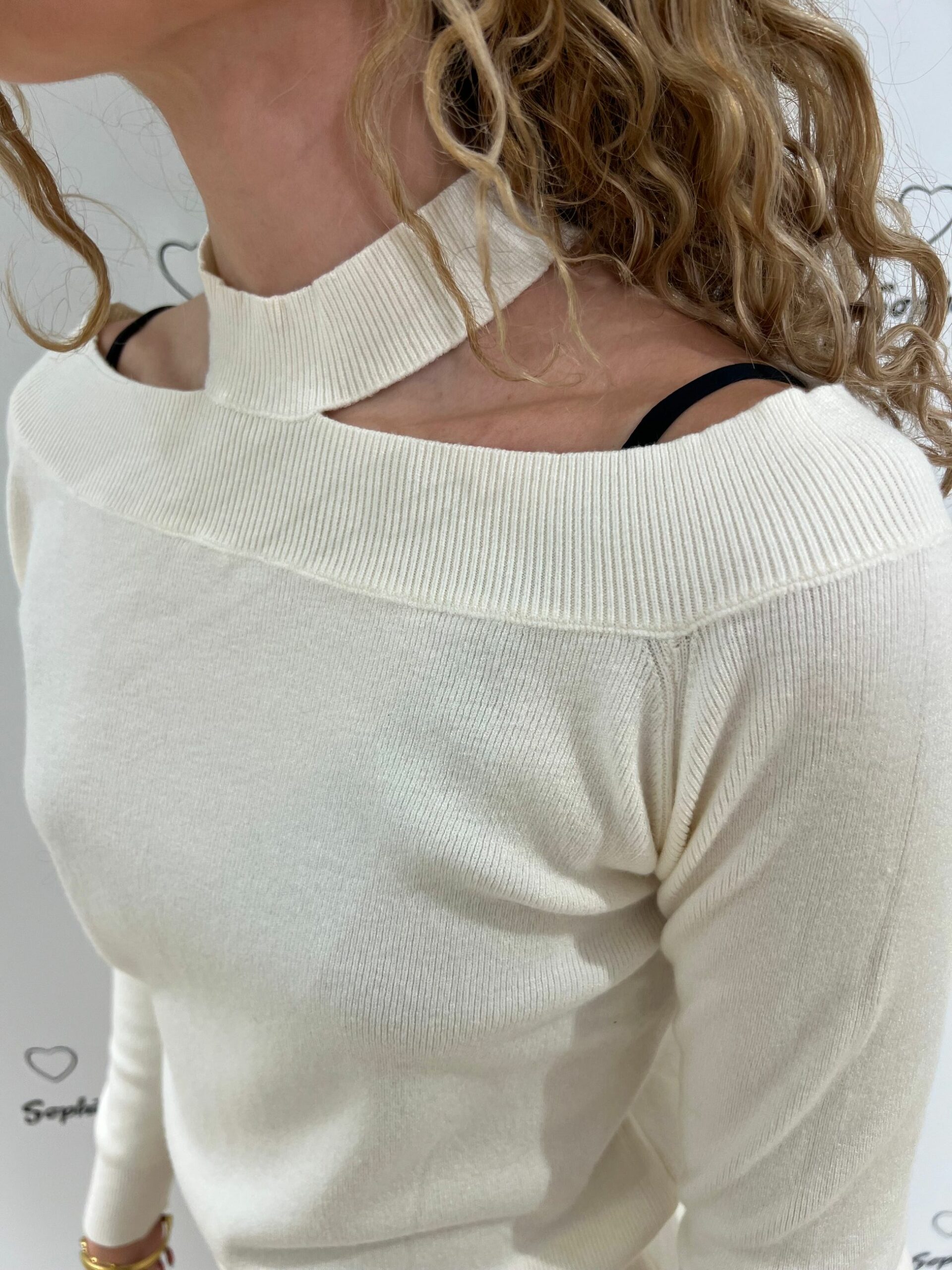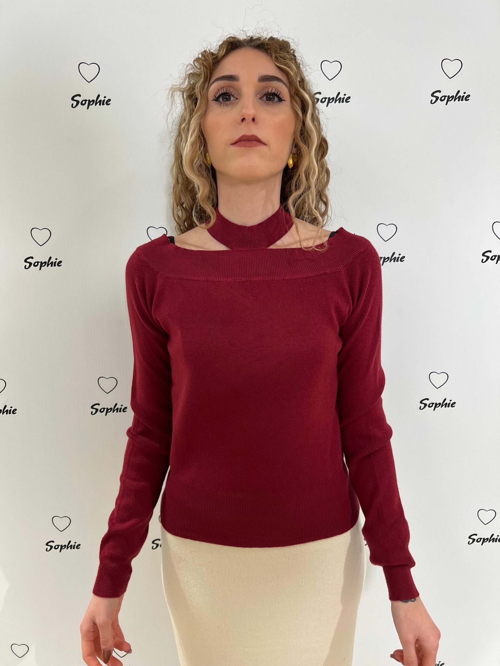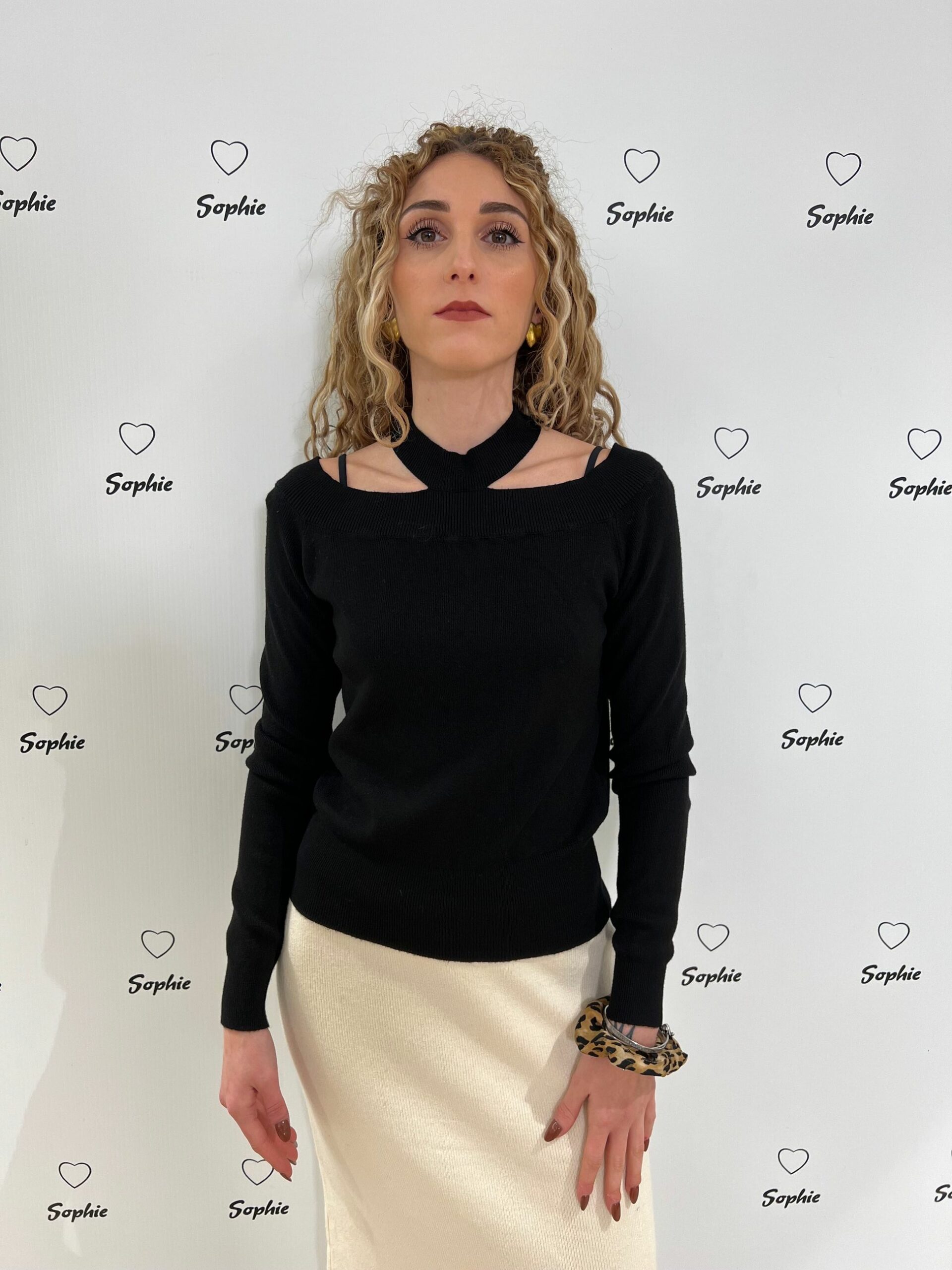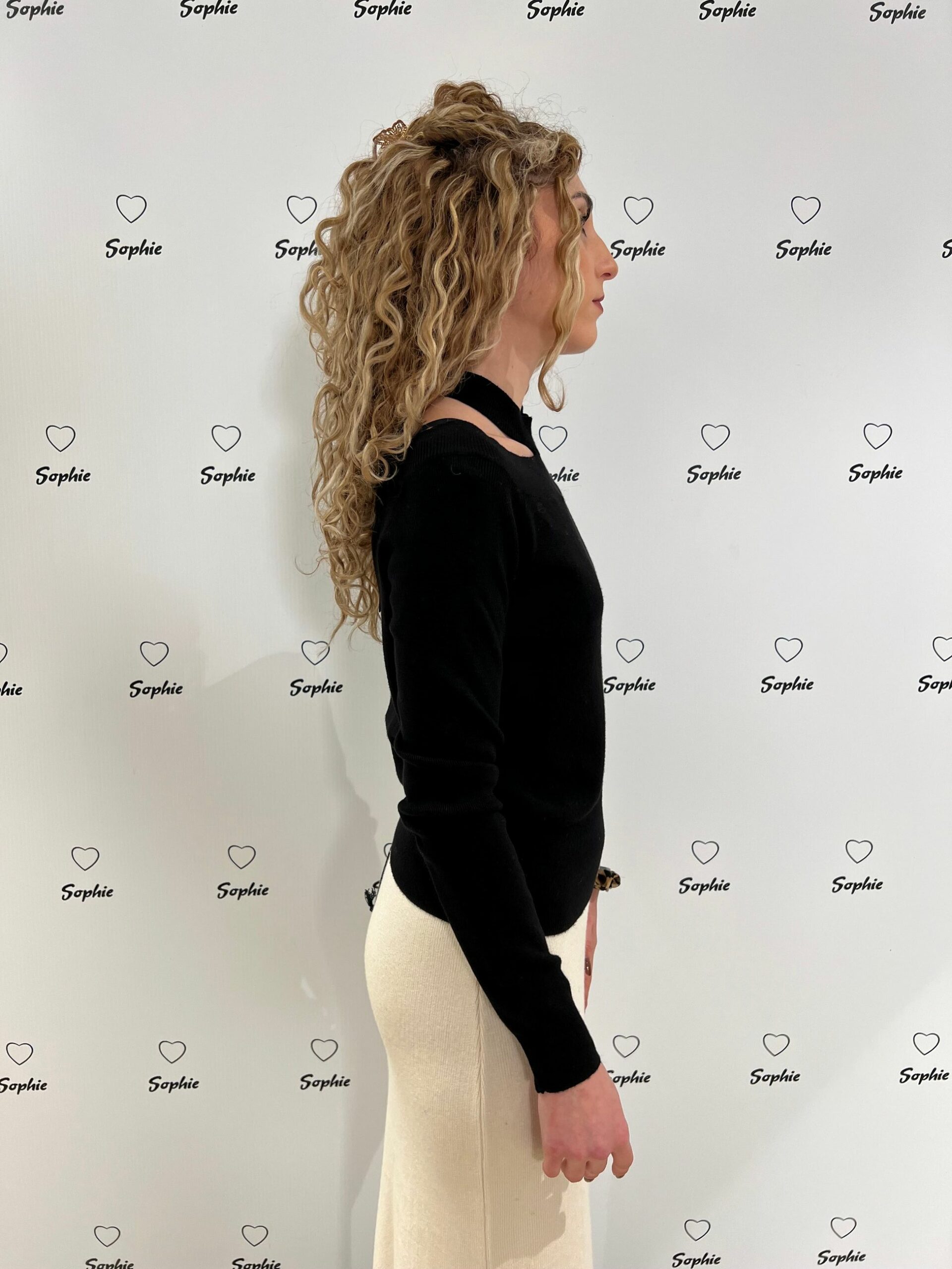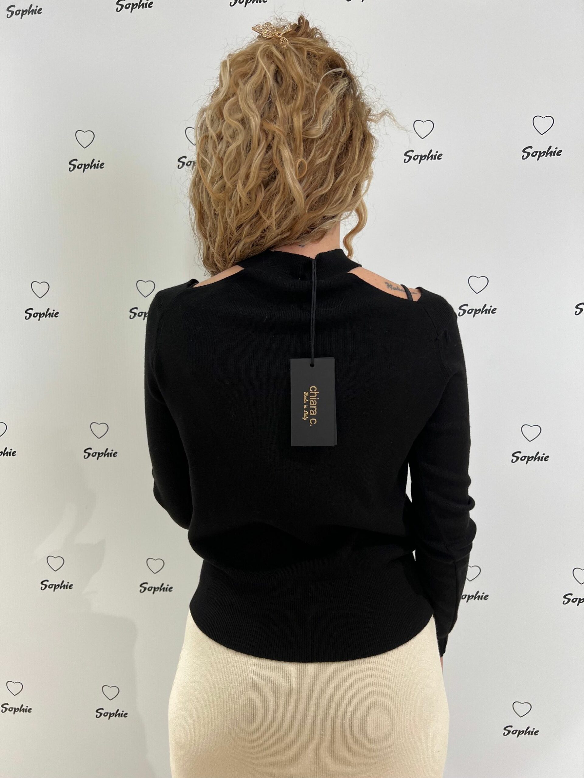 MAGLIA IN VISCOSA CORTA MANICA LUNGA CON APERTURA SULLE SPALLE