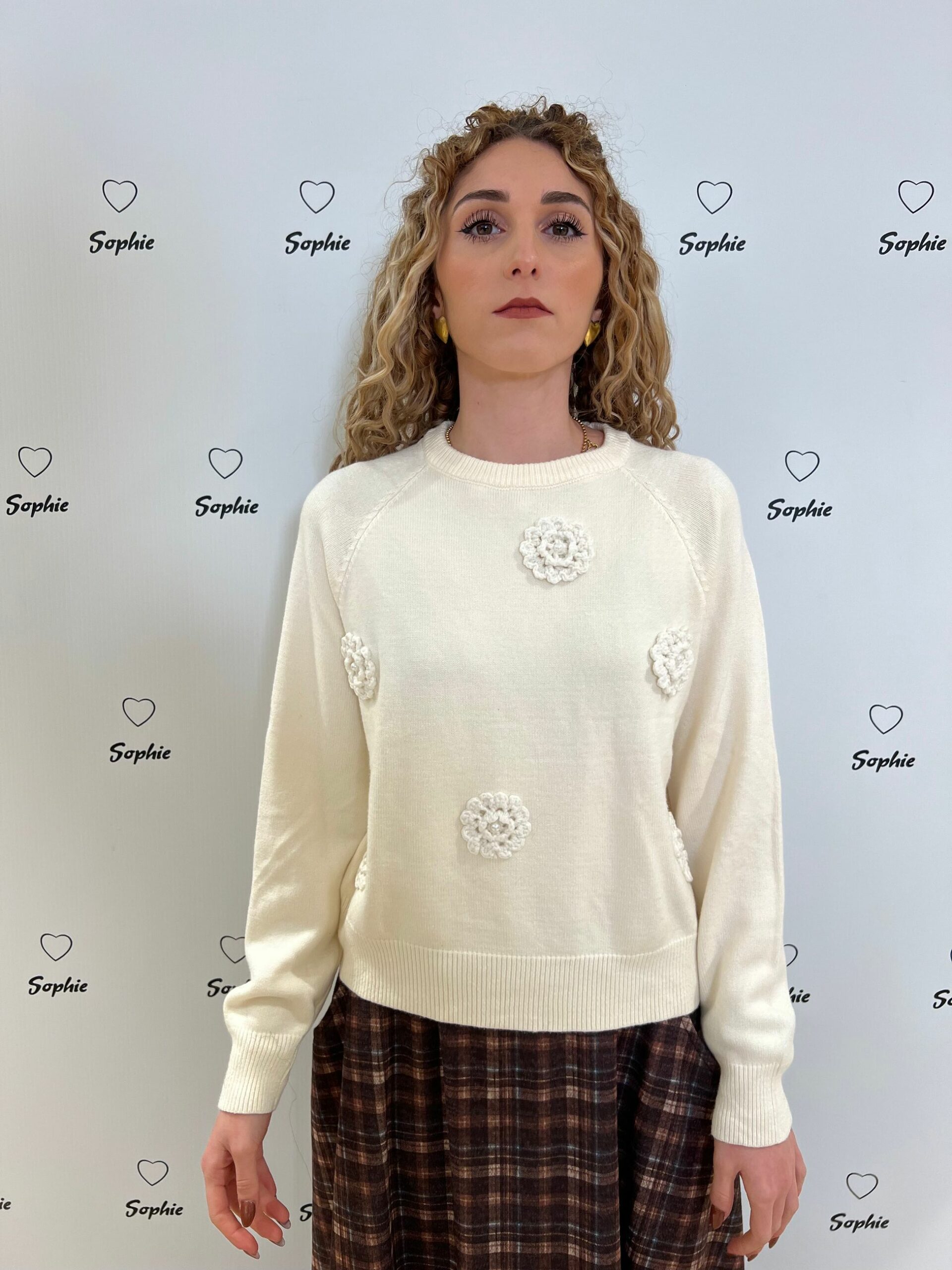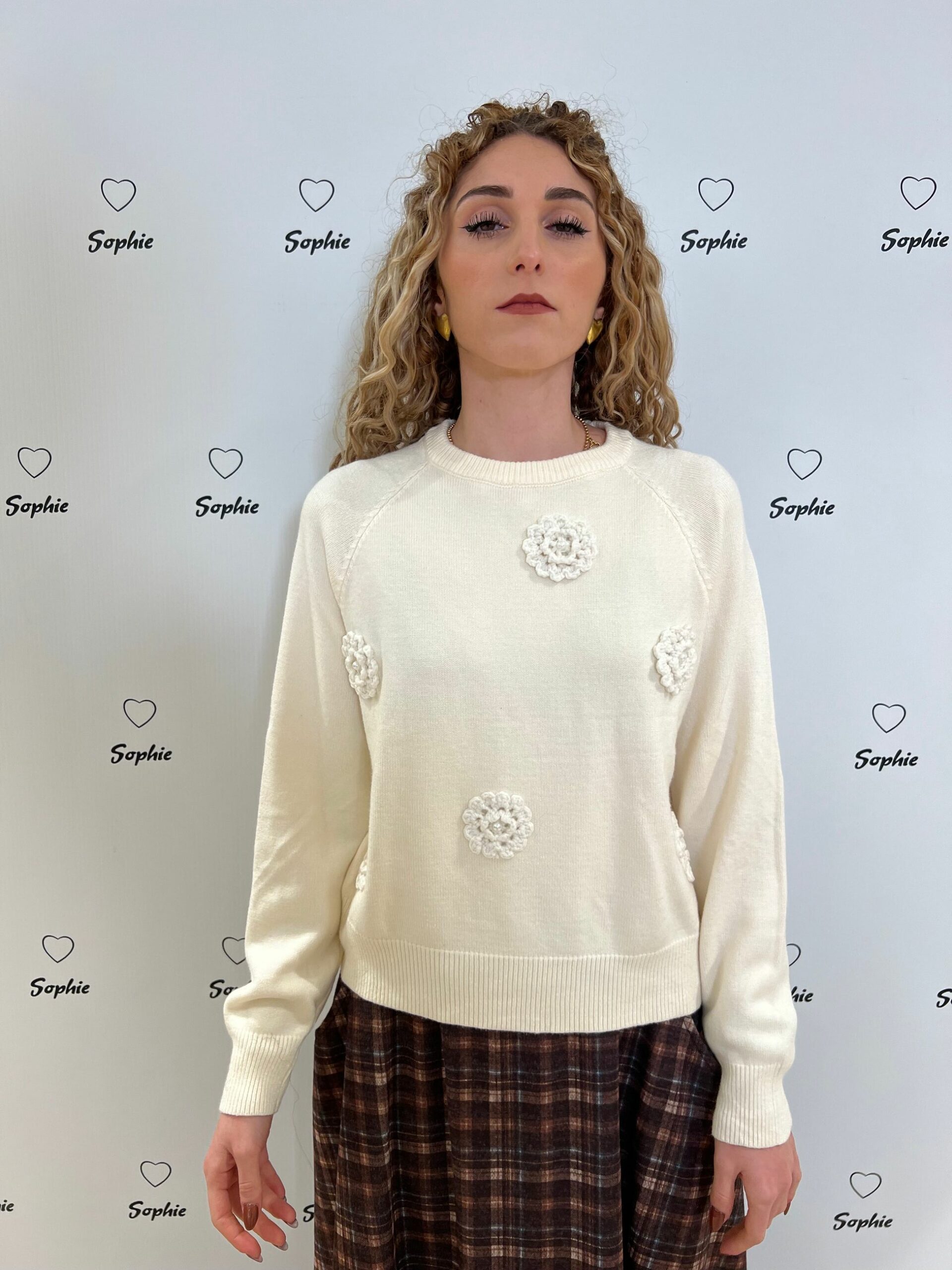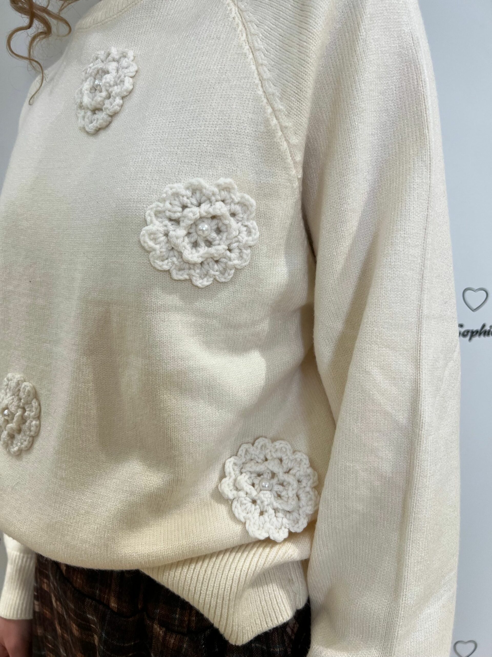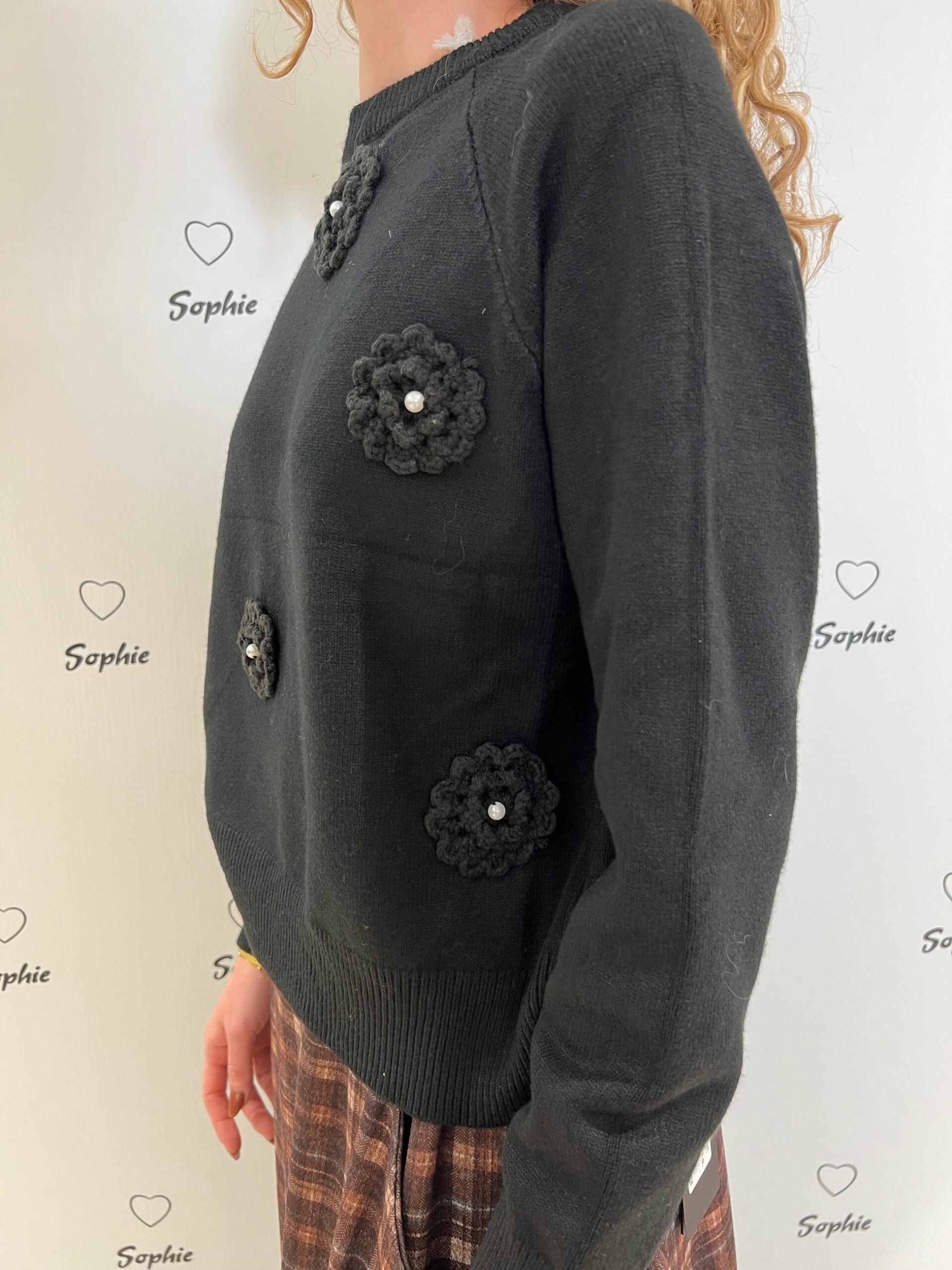 MAGLIA IN VISCOSA CORTA E LARGA CON APPLICAZIONE DI PERLE SU FIORE IN CROCHET