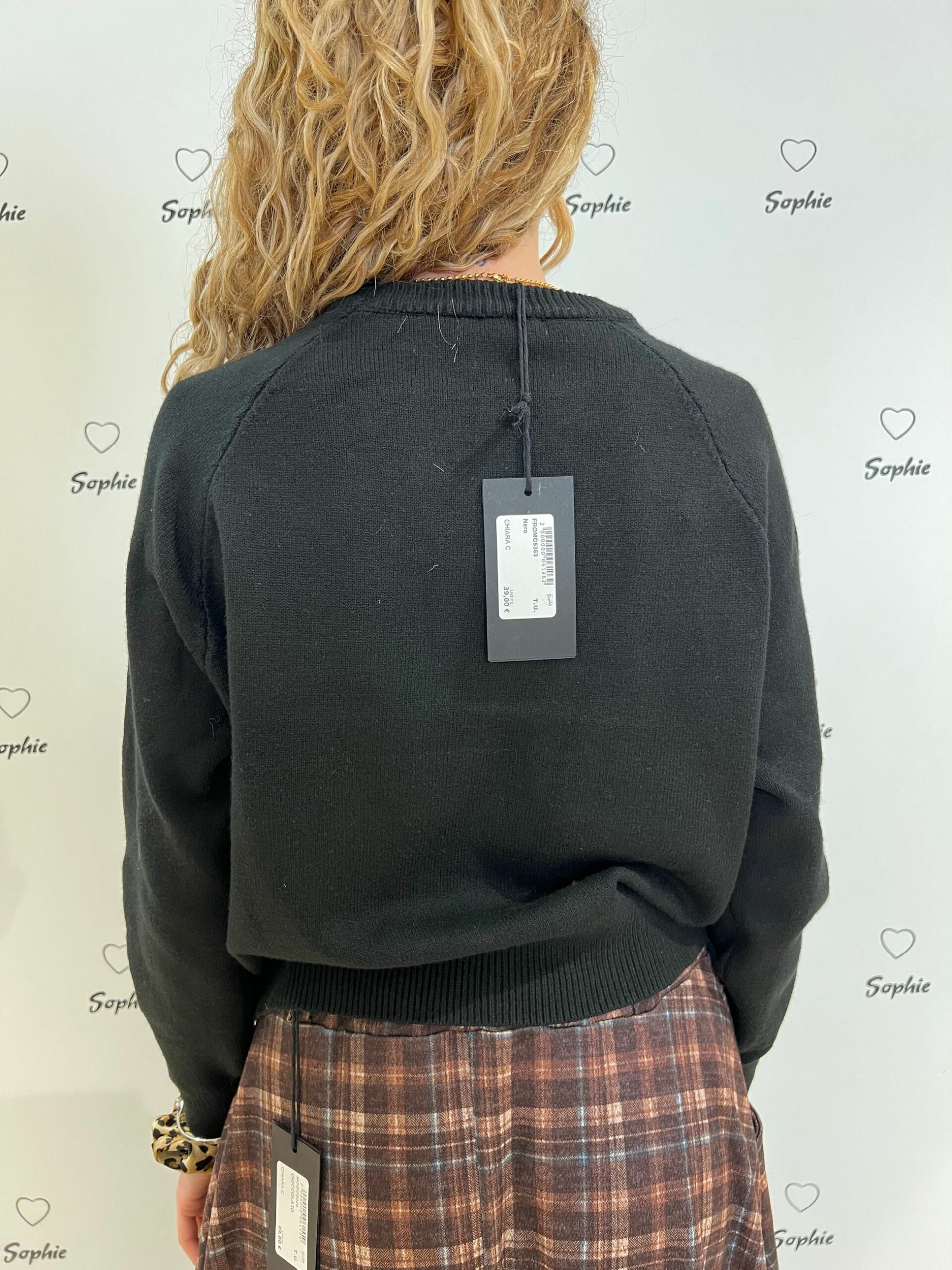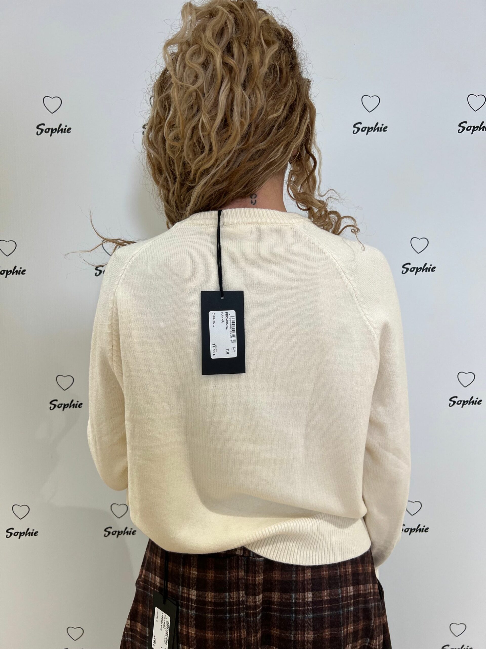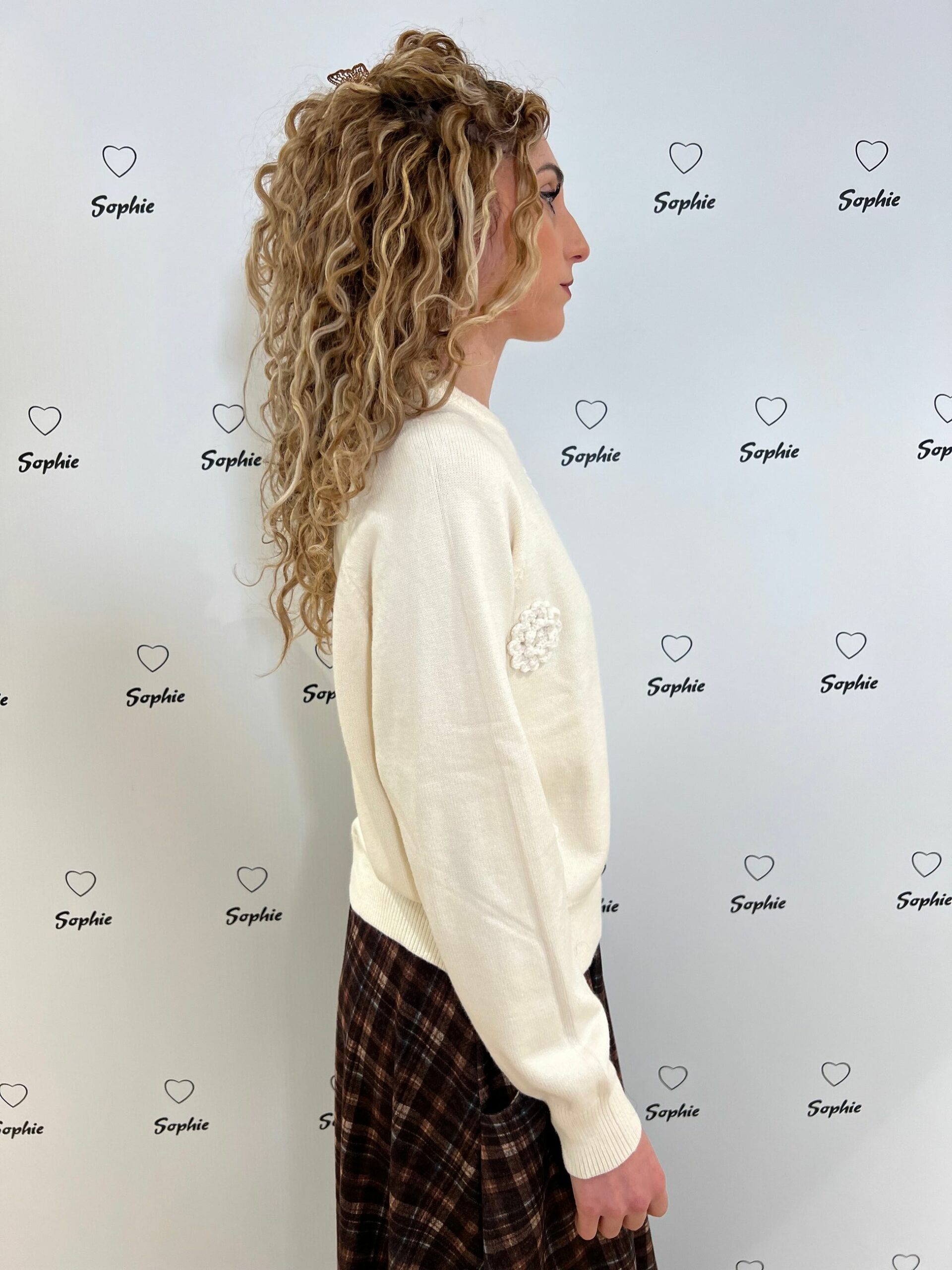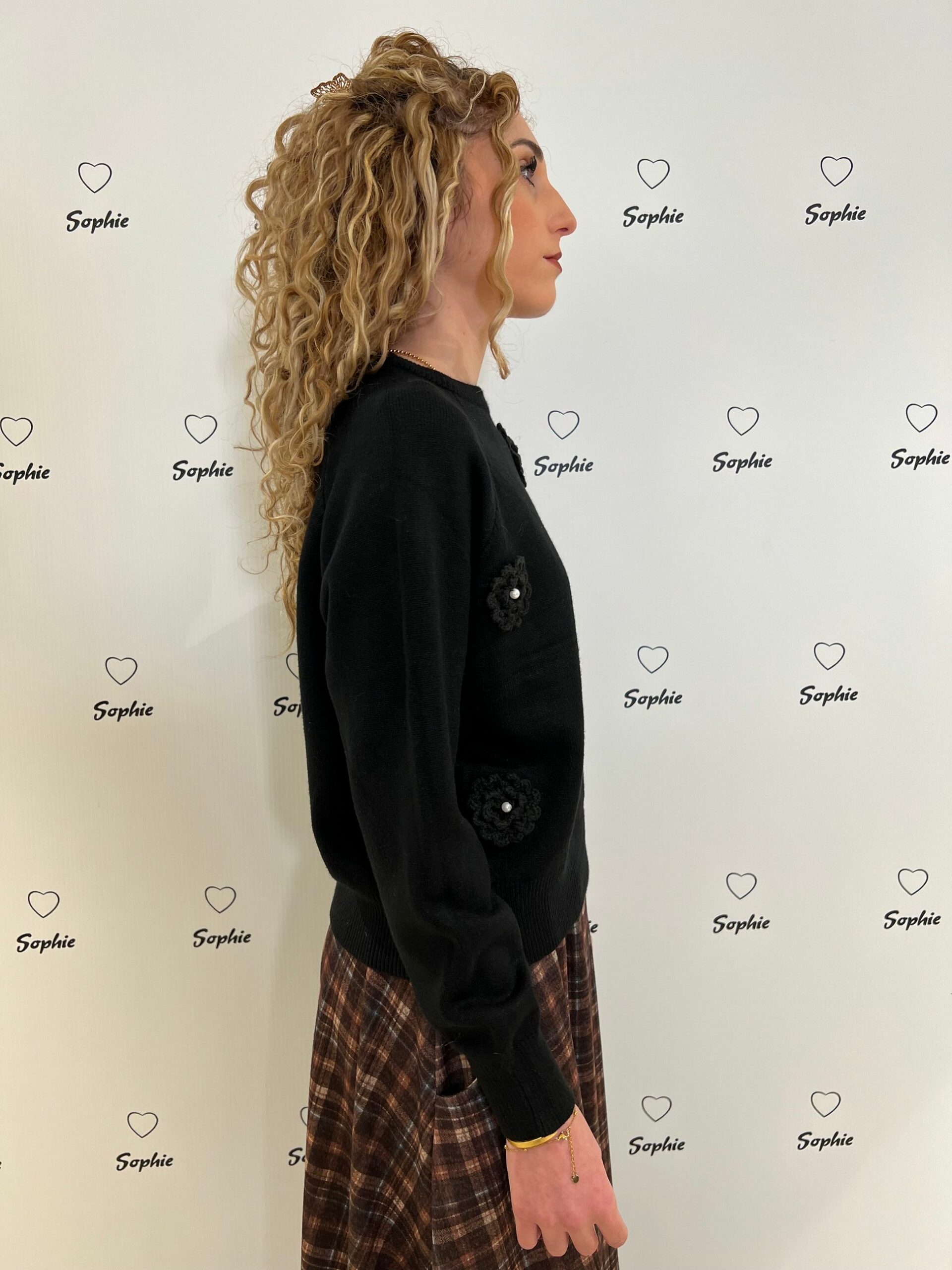 MAGLIA IN VISCOSA CORTA E LARGA CON APPLICAZIONE DI PERLE SU FIORE IN CROCHET