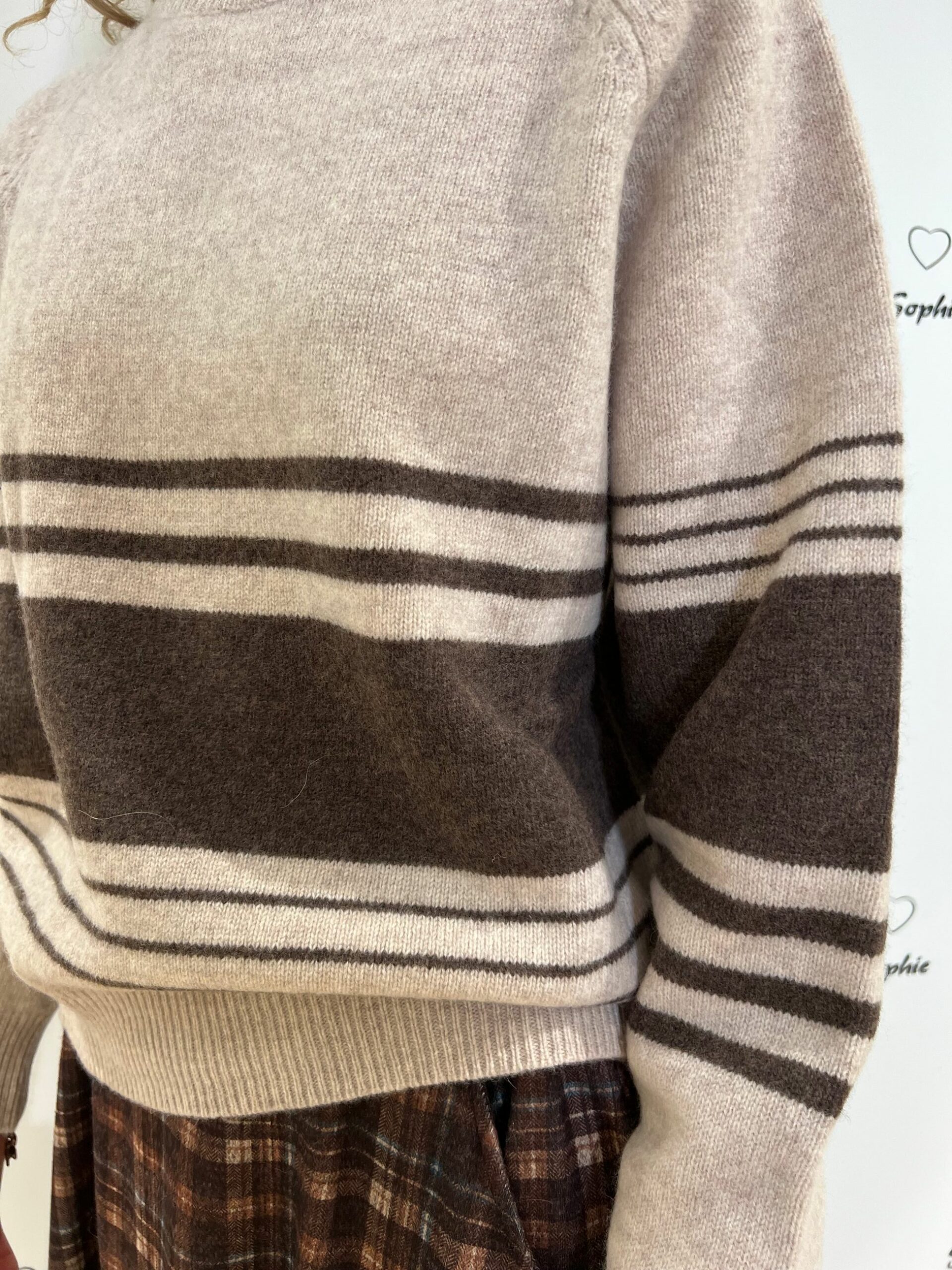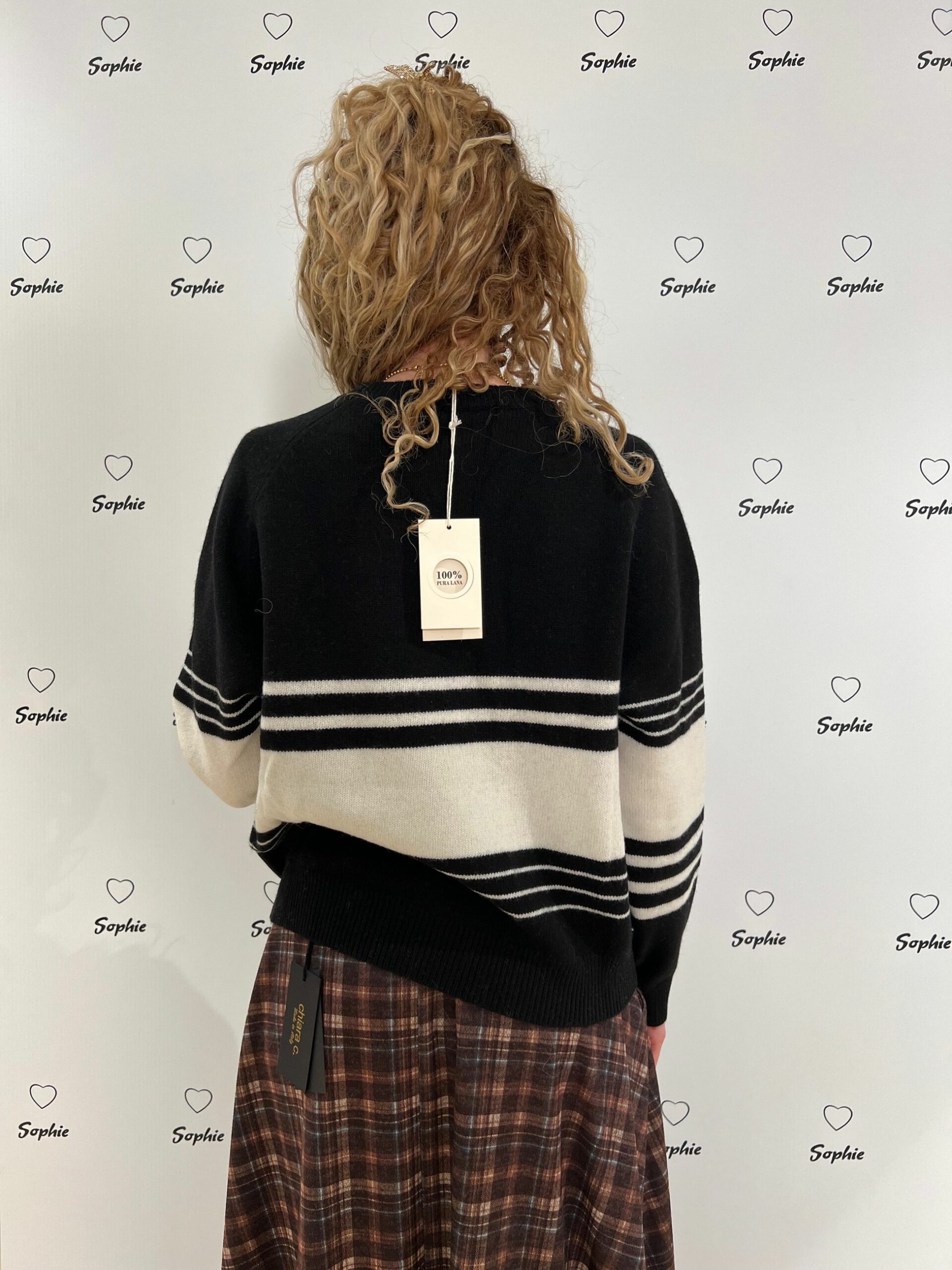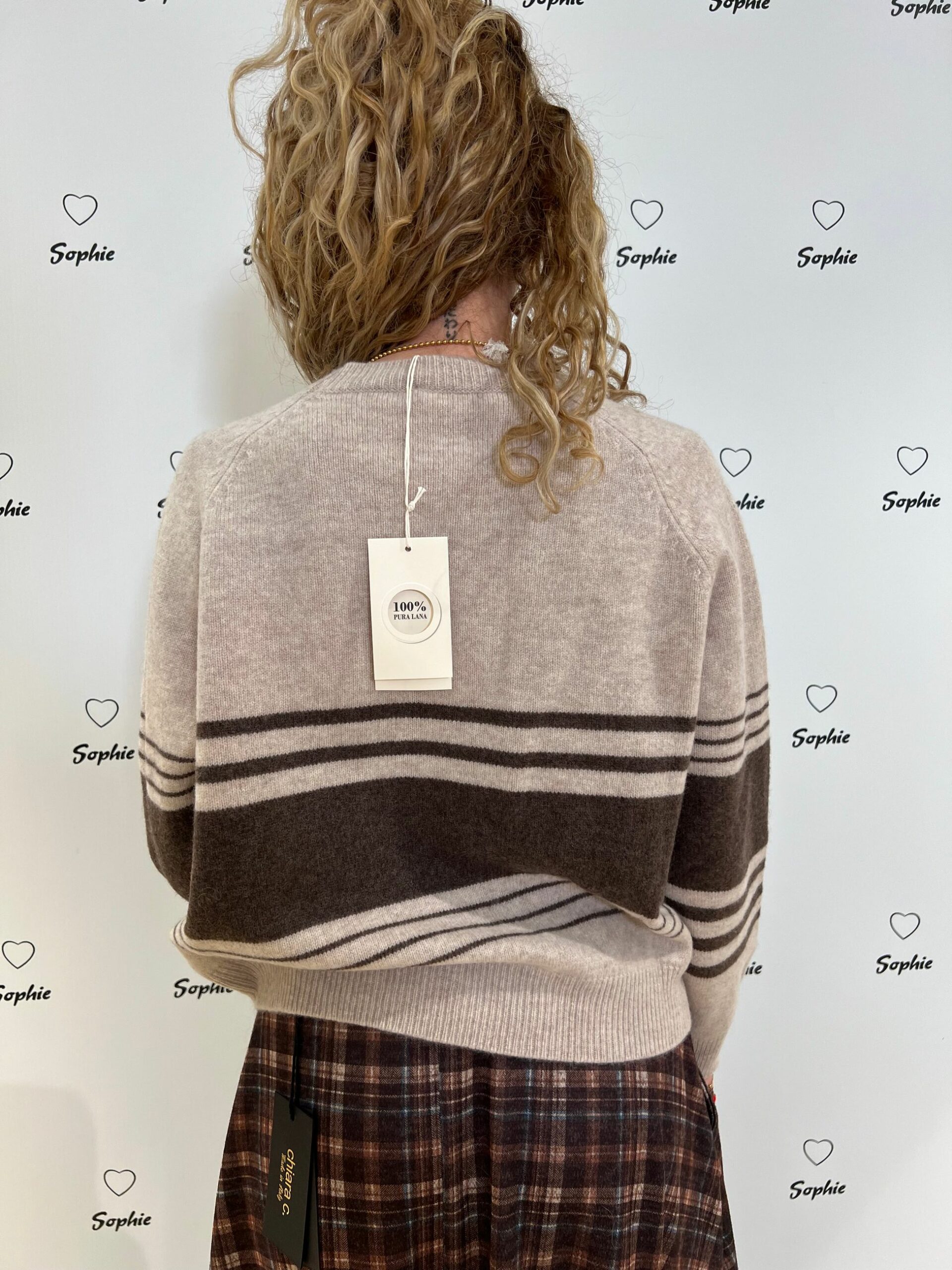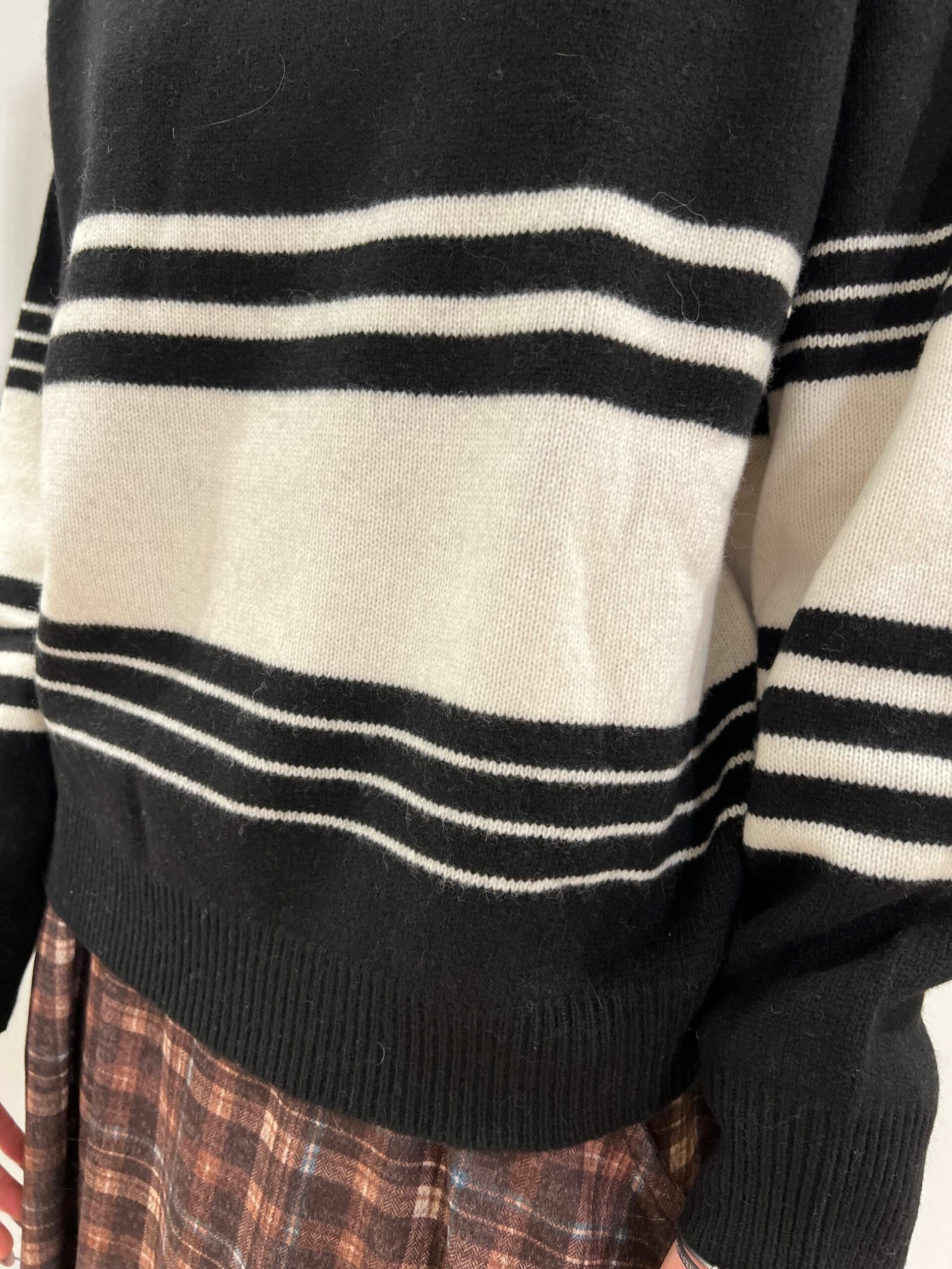 MAGLIA GIROCOLLO LUNGHEZZA MEDIA VESTIBILITA’ MORBIDA CON MOTIVI RIGATI. 100% LANA MADE IN ITALY