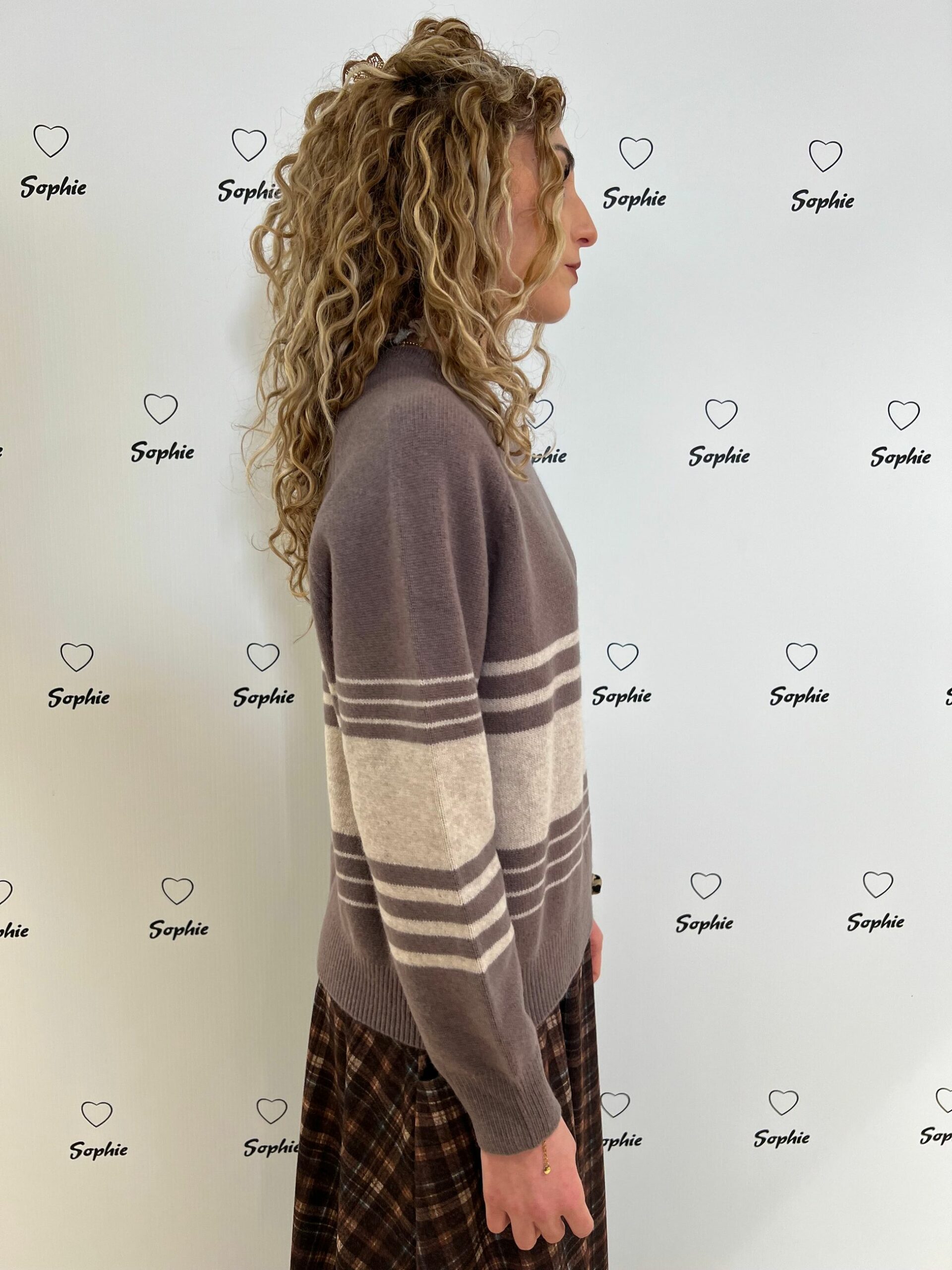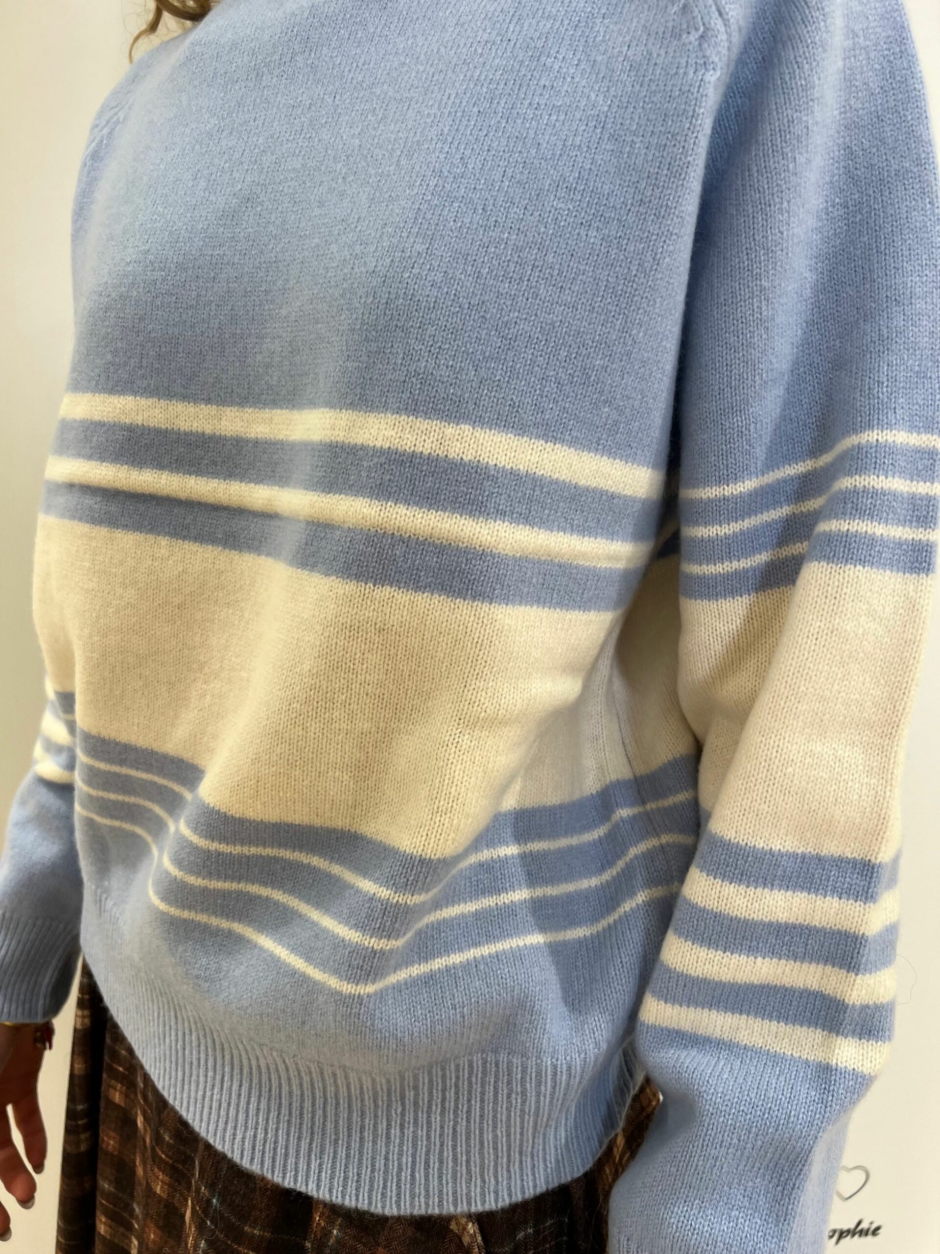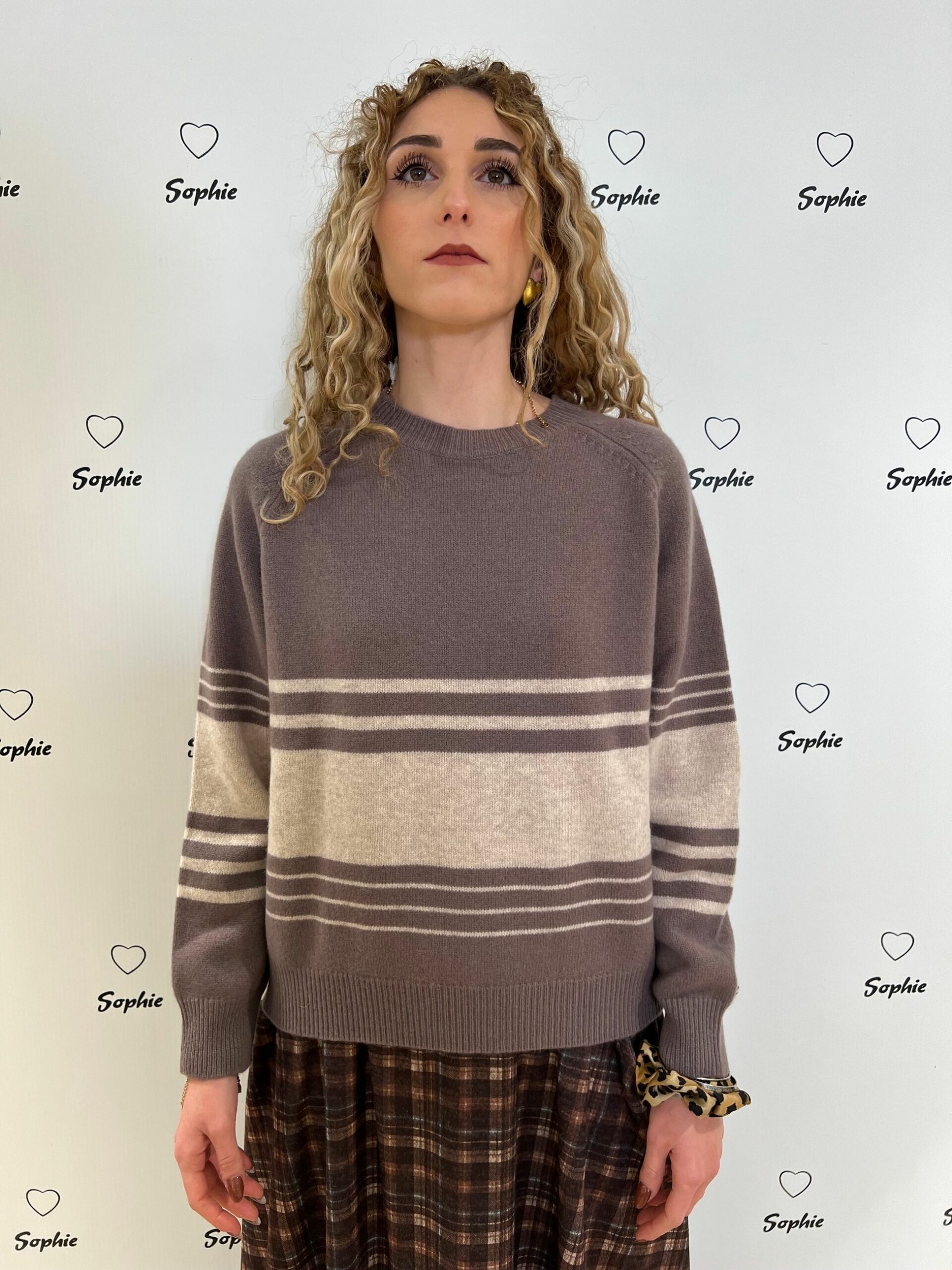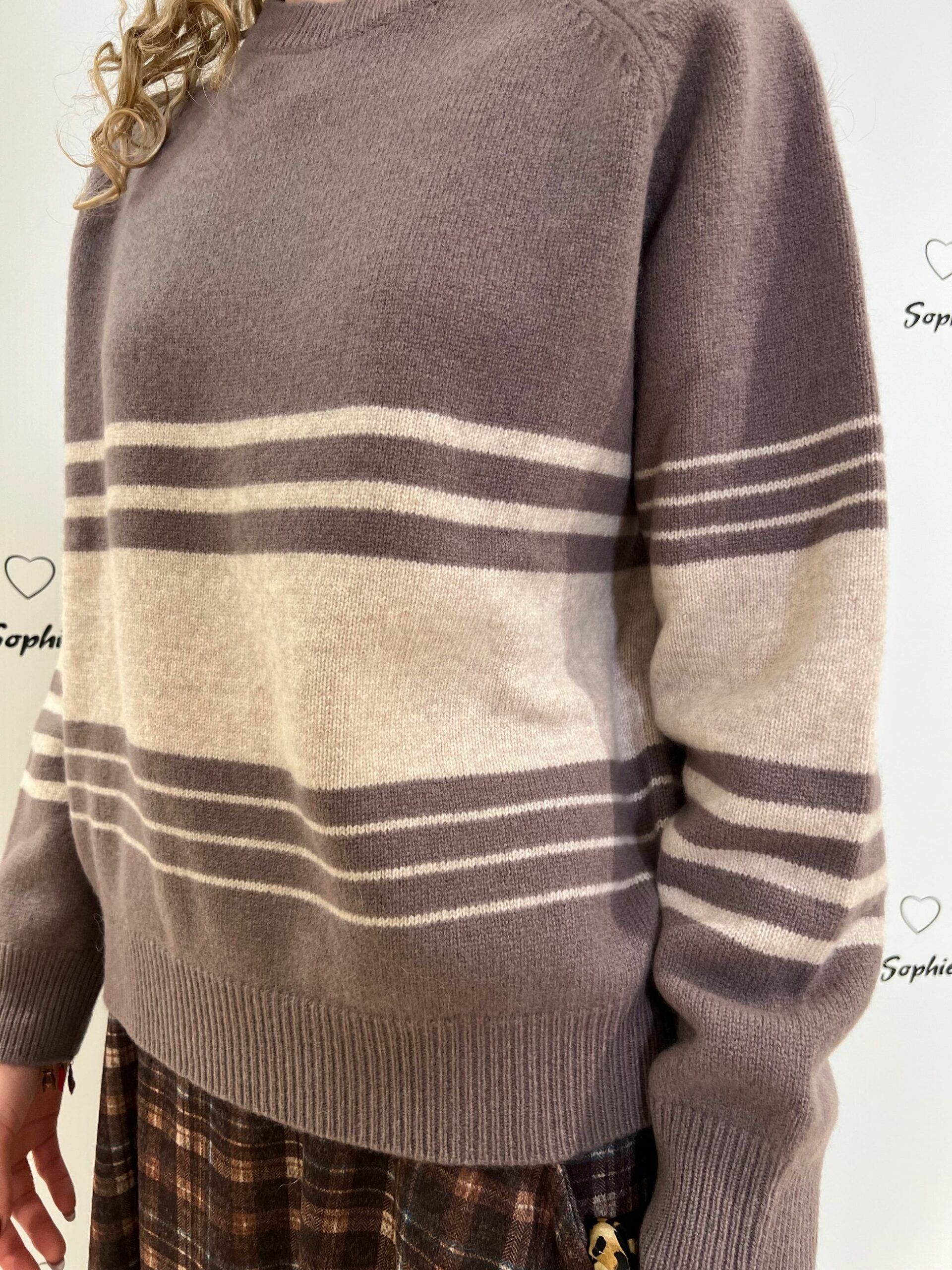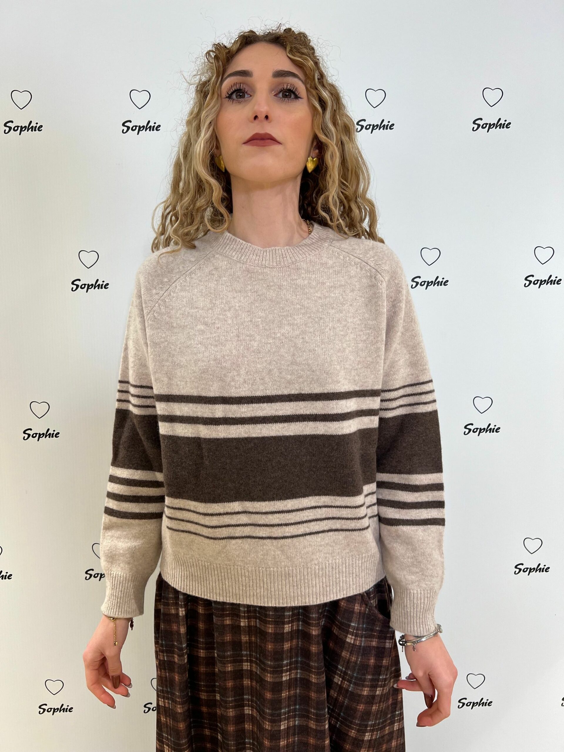 MAGLIA GIROCOLLO LUNGHEZZA MEDIA VESTIBILITA’ MORBIDA CON MOTIVI RIGATI. 100% LANA MADE IN ITALY