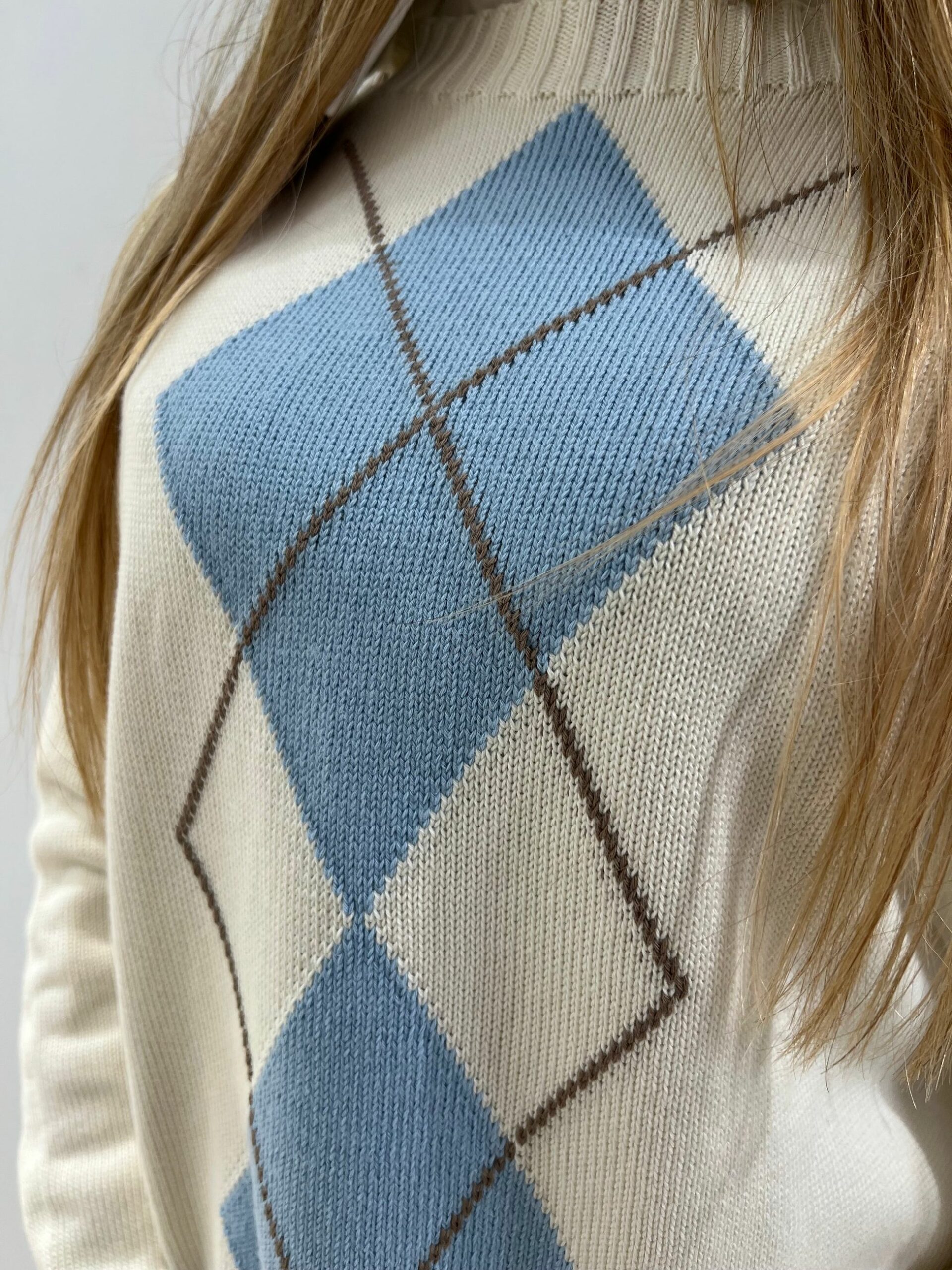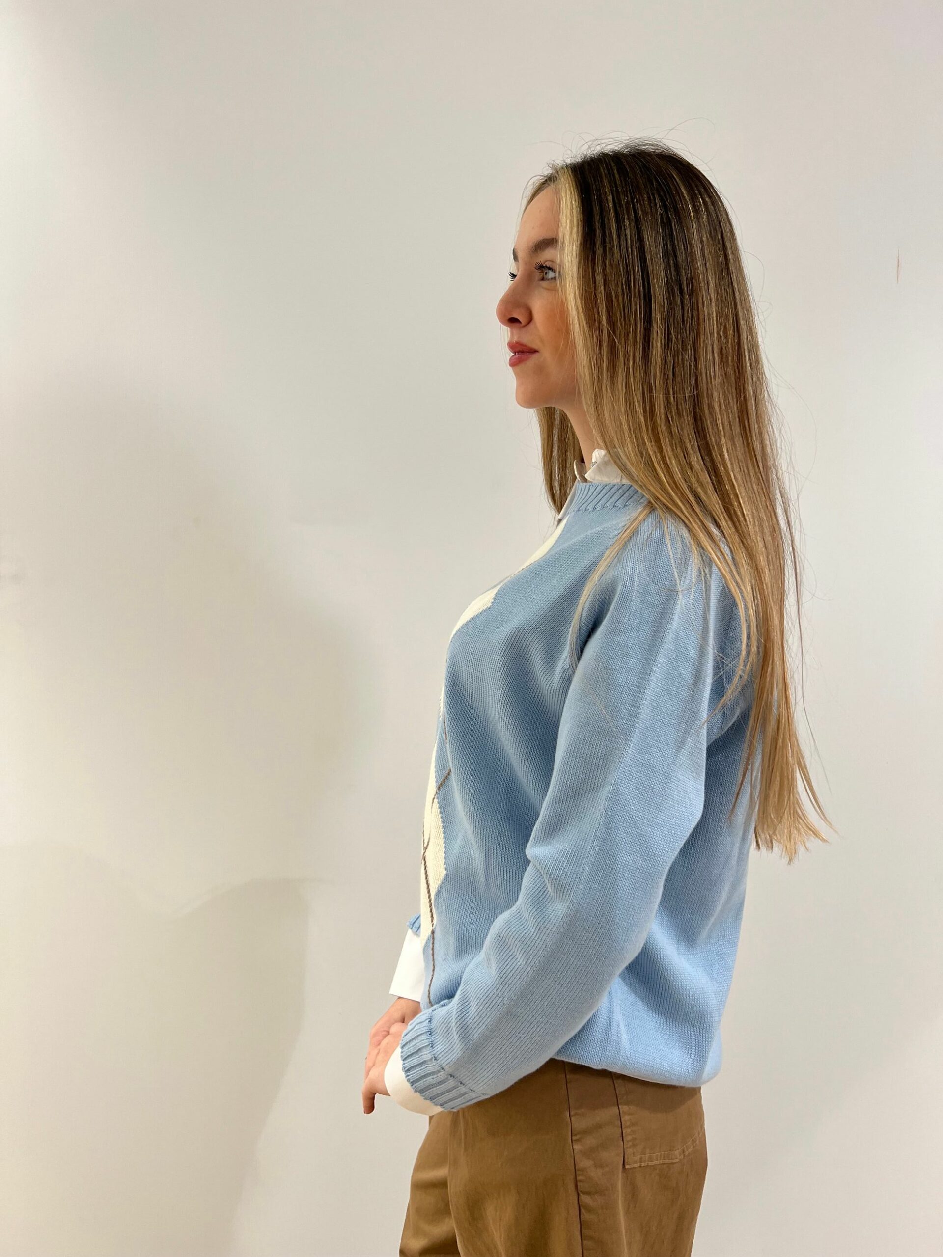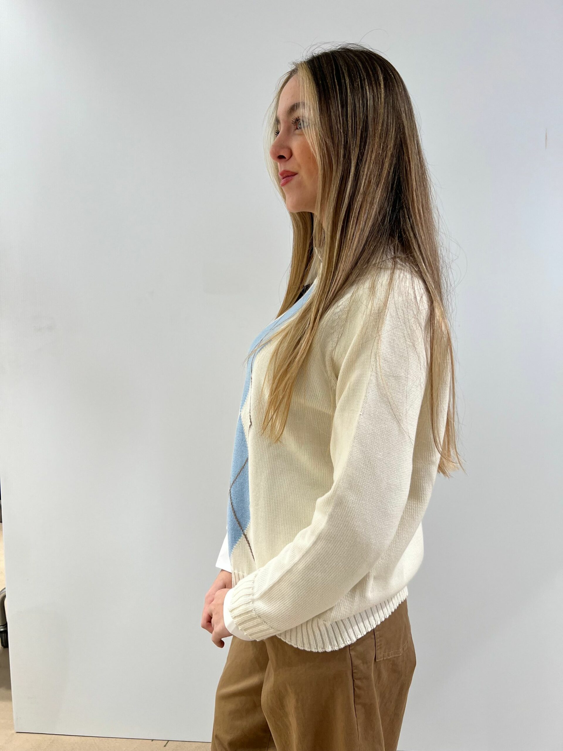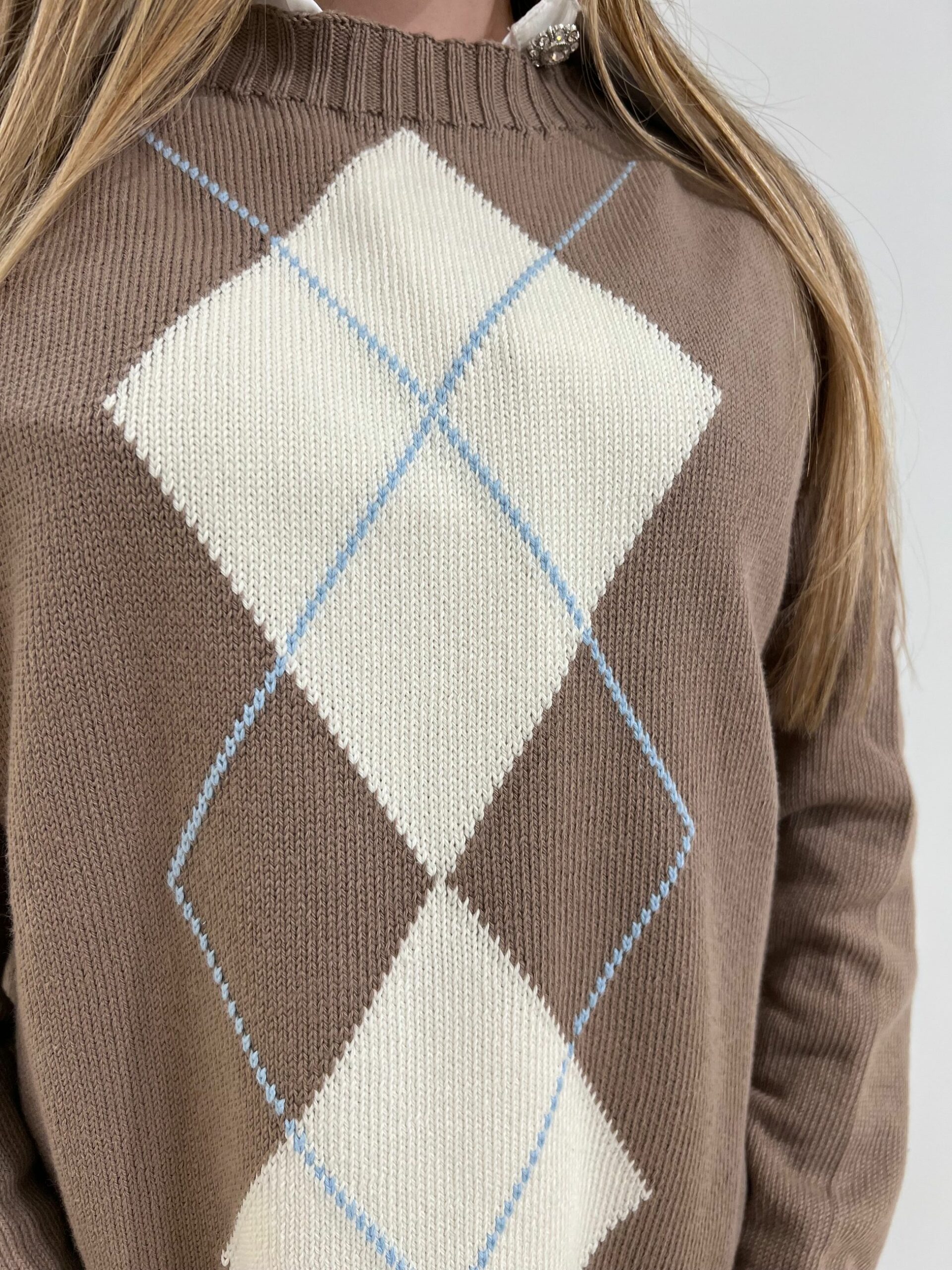 MAGLIA 100% COTONE CON DISEGNO A LOSANGA, LUNGHEZZA MEDIA, MANICA LUNGA