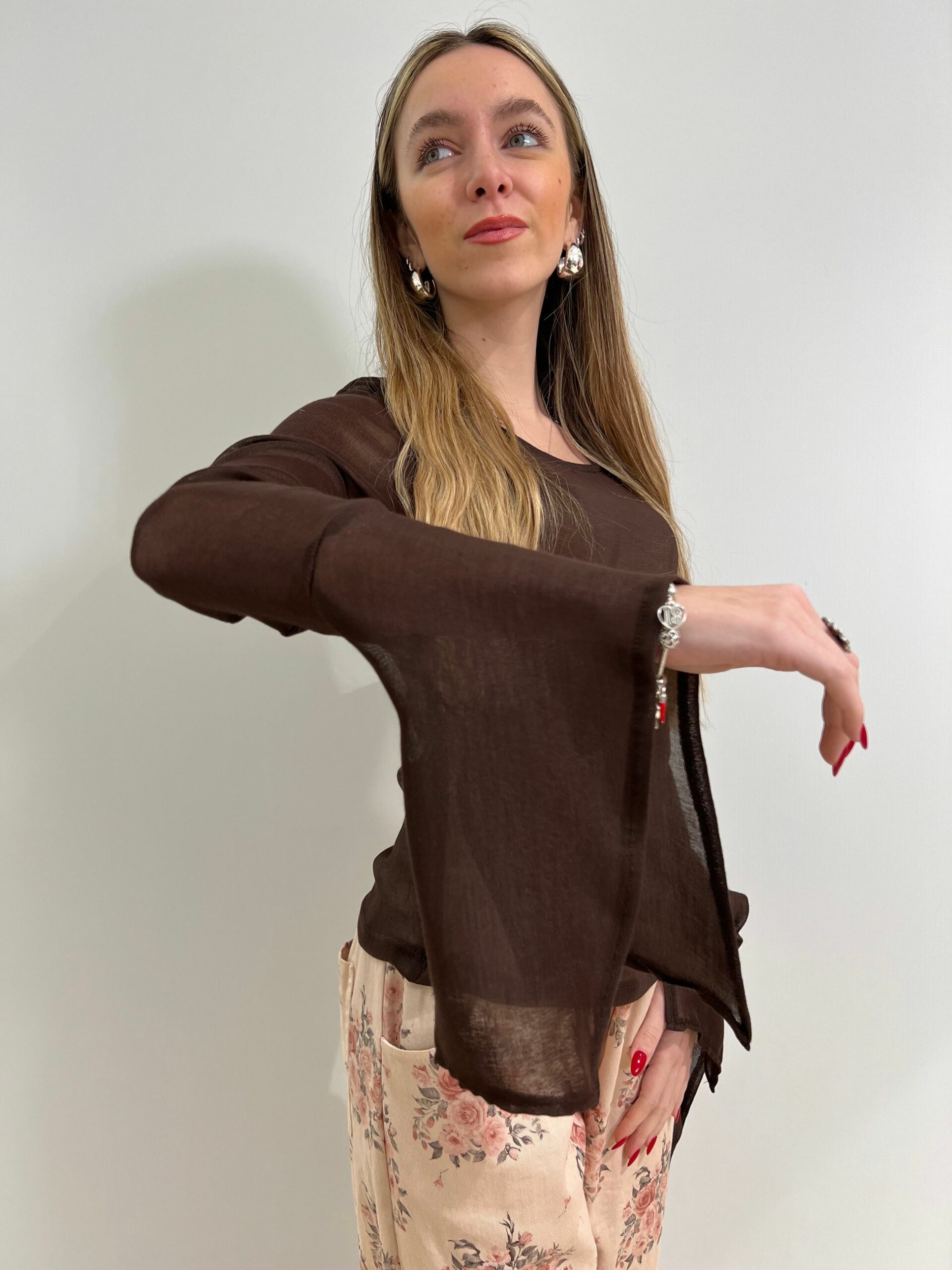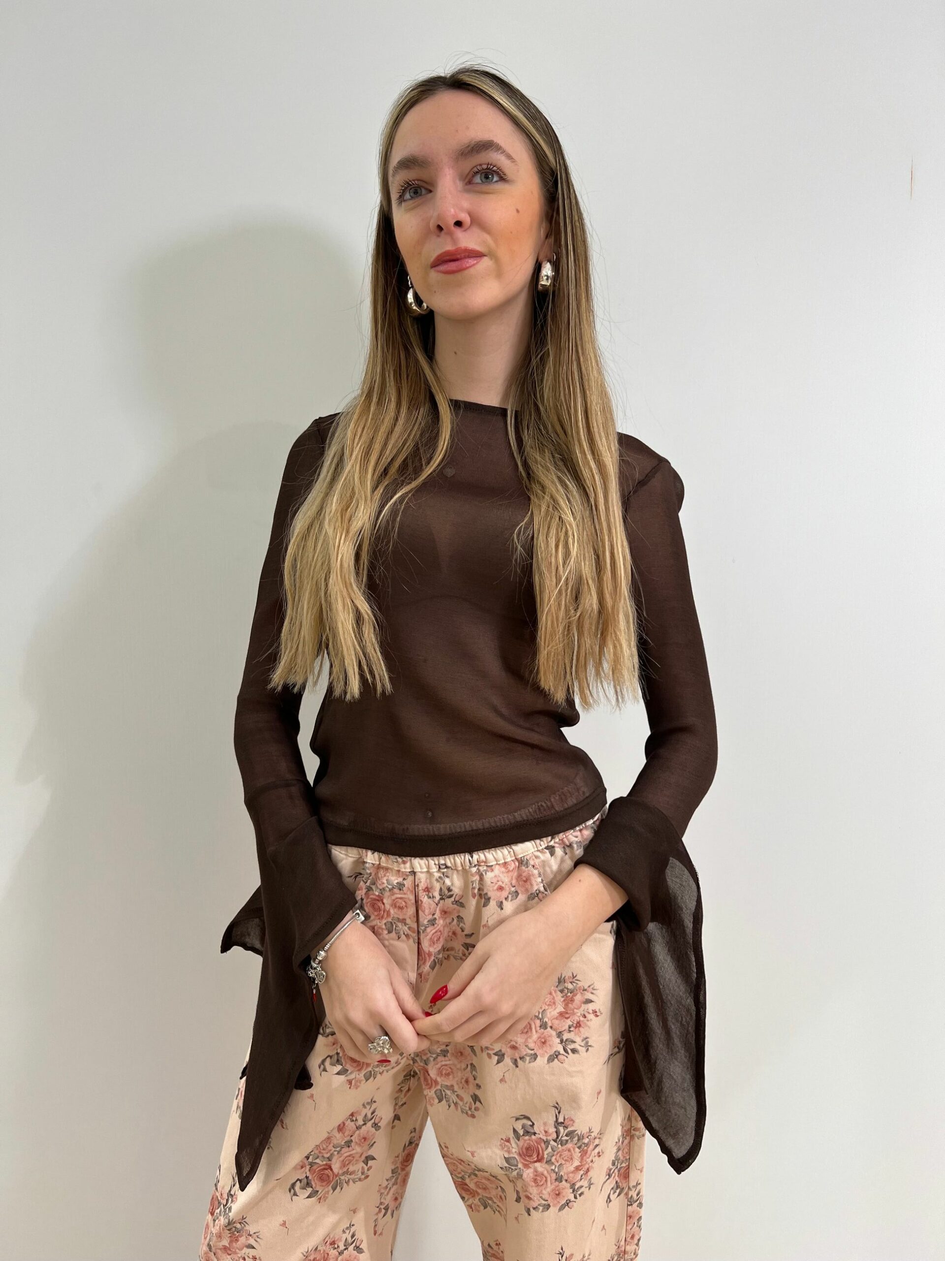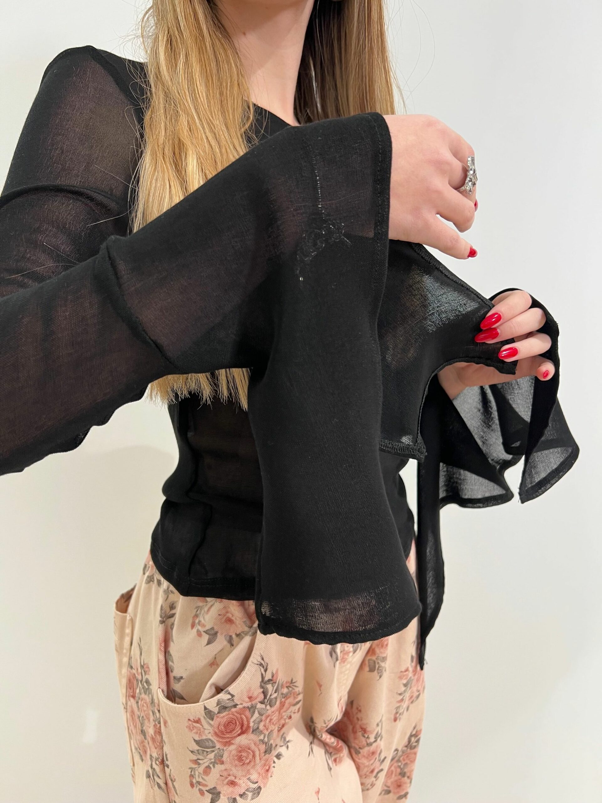MAGLIA SEMI TRASPARENTE CON FONDO MANICA A CALICE CON SPACCO