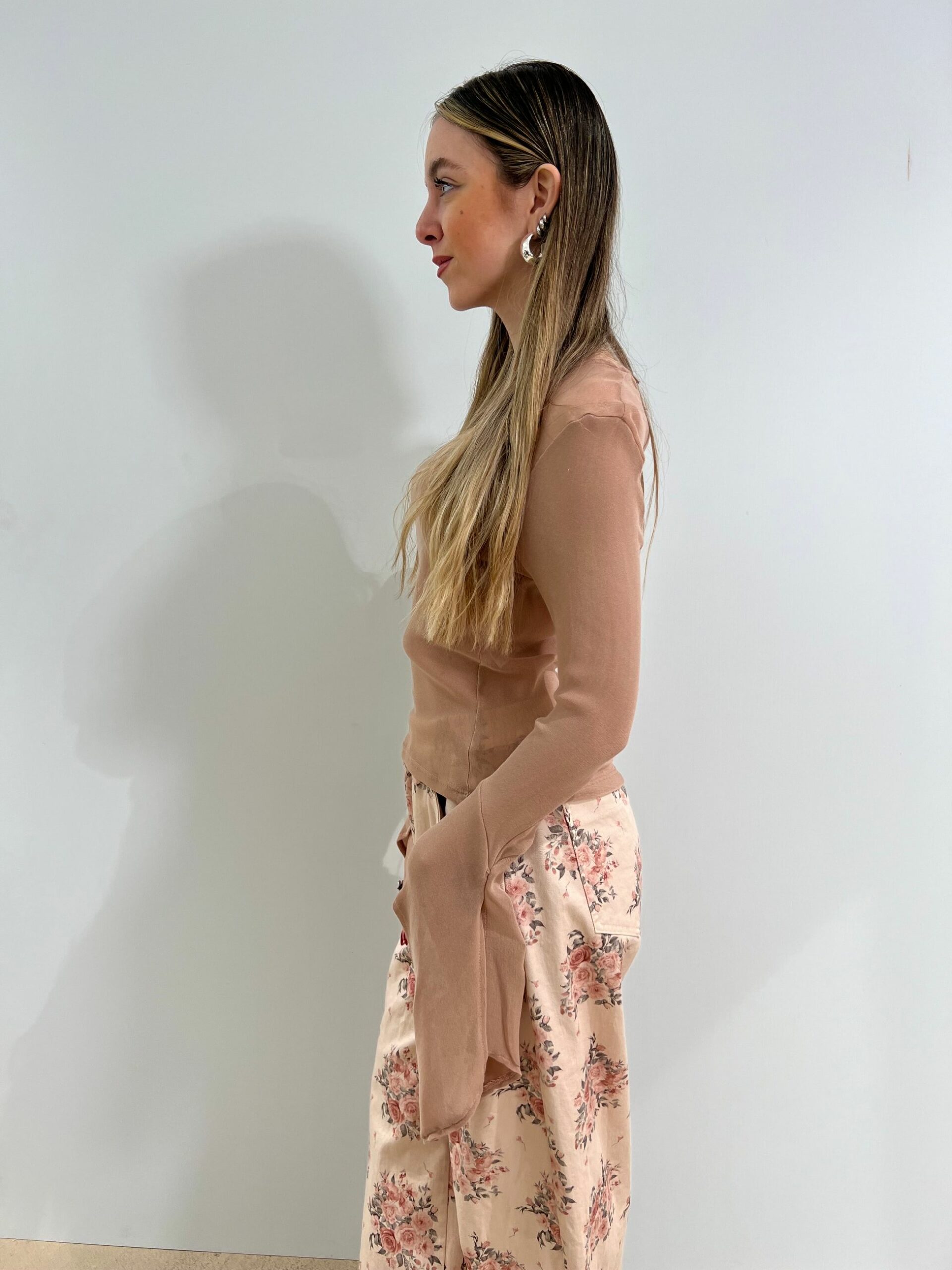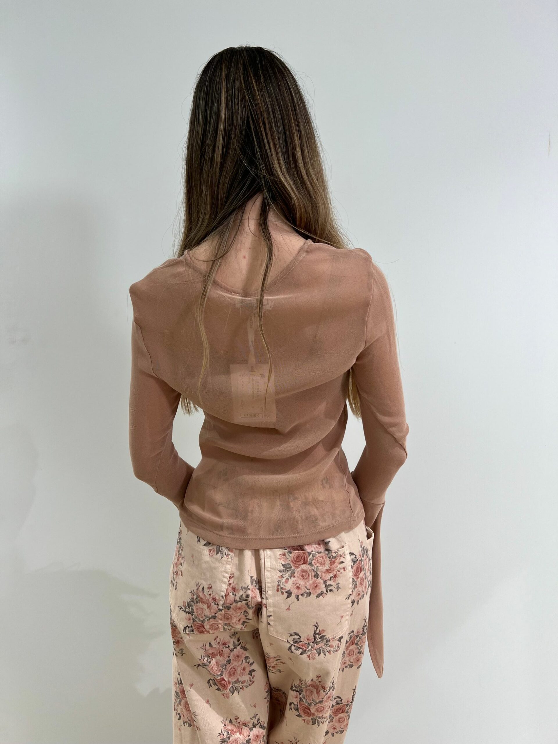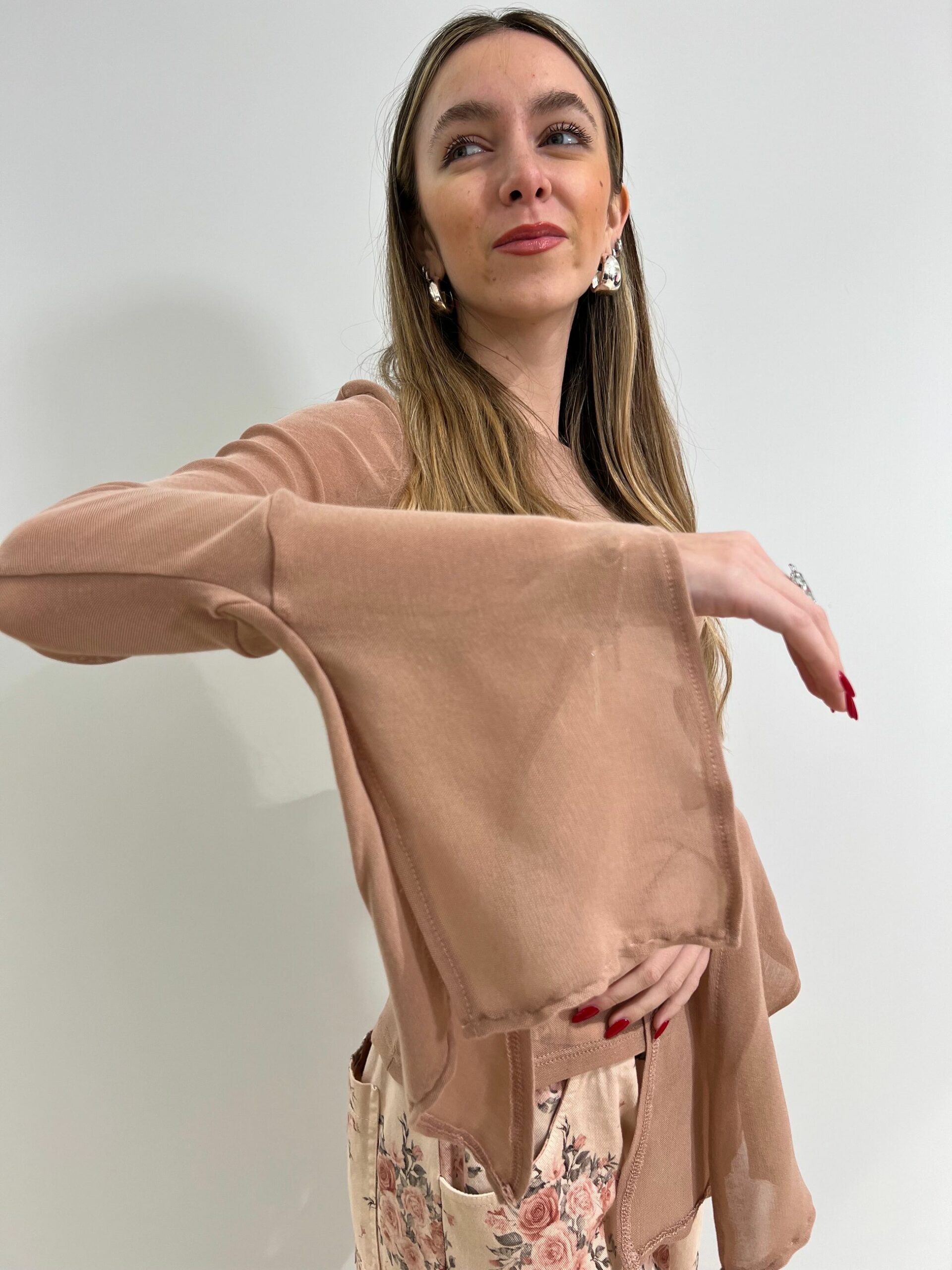 MAGLIA SEMI TRASPARENTE CON FONDO MANICA A CALICE CON SPACCO