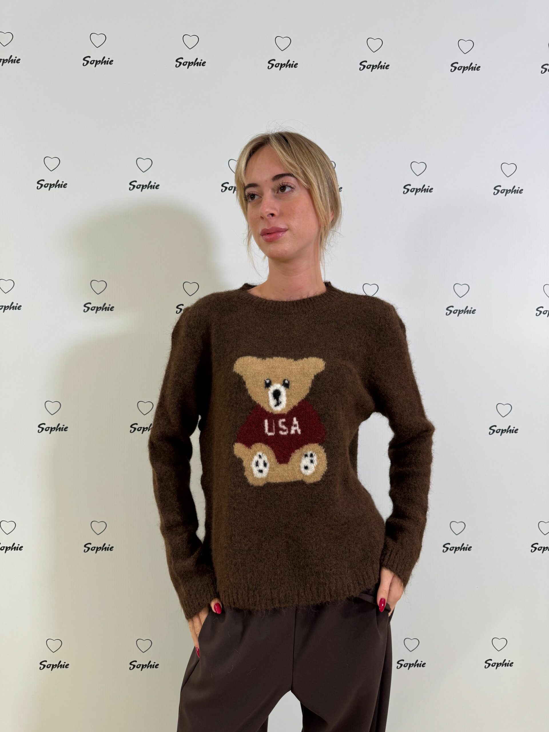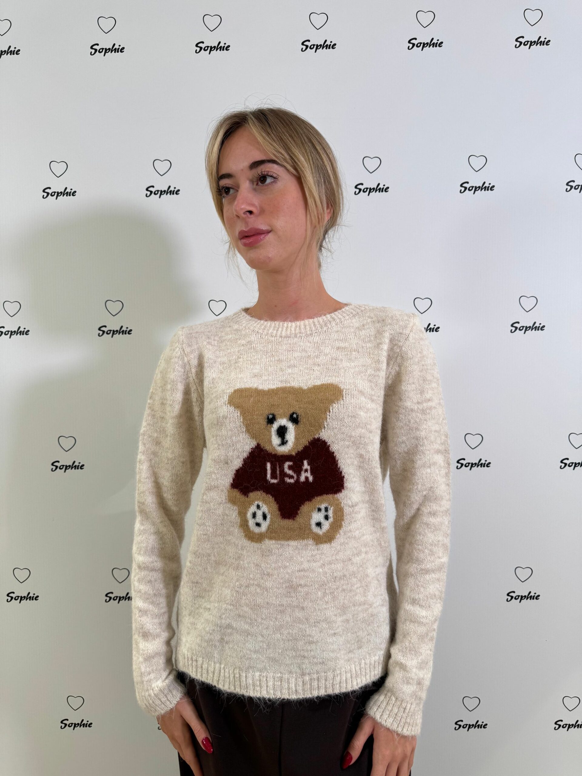 MAGLIA GIROCOLLO CON ORSETTO IN MISTO LANA