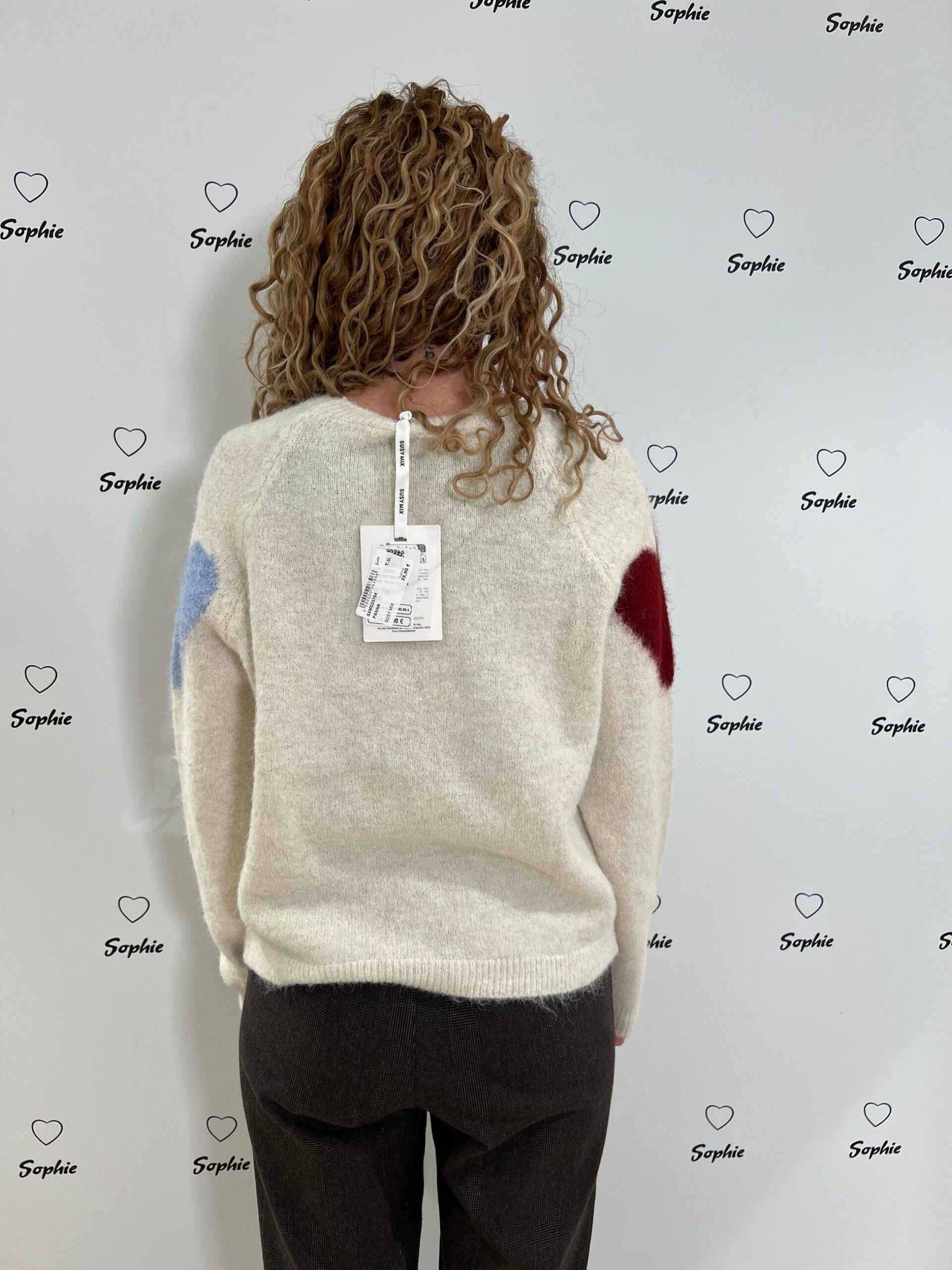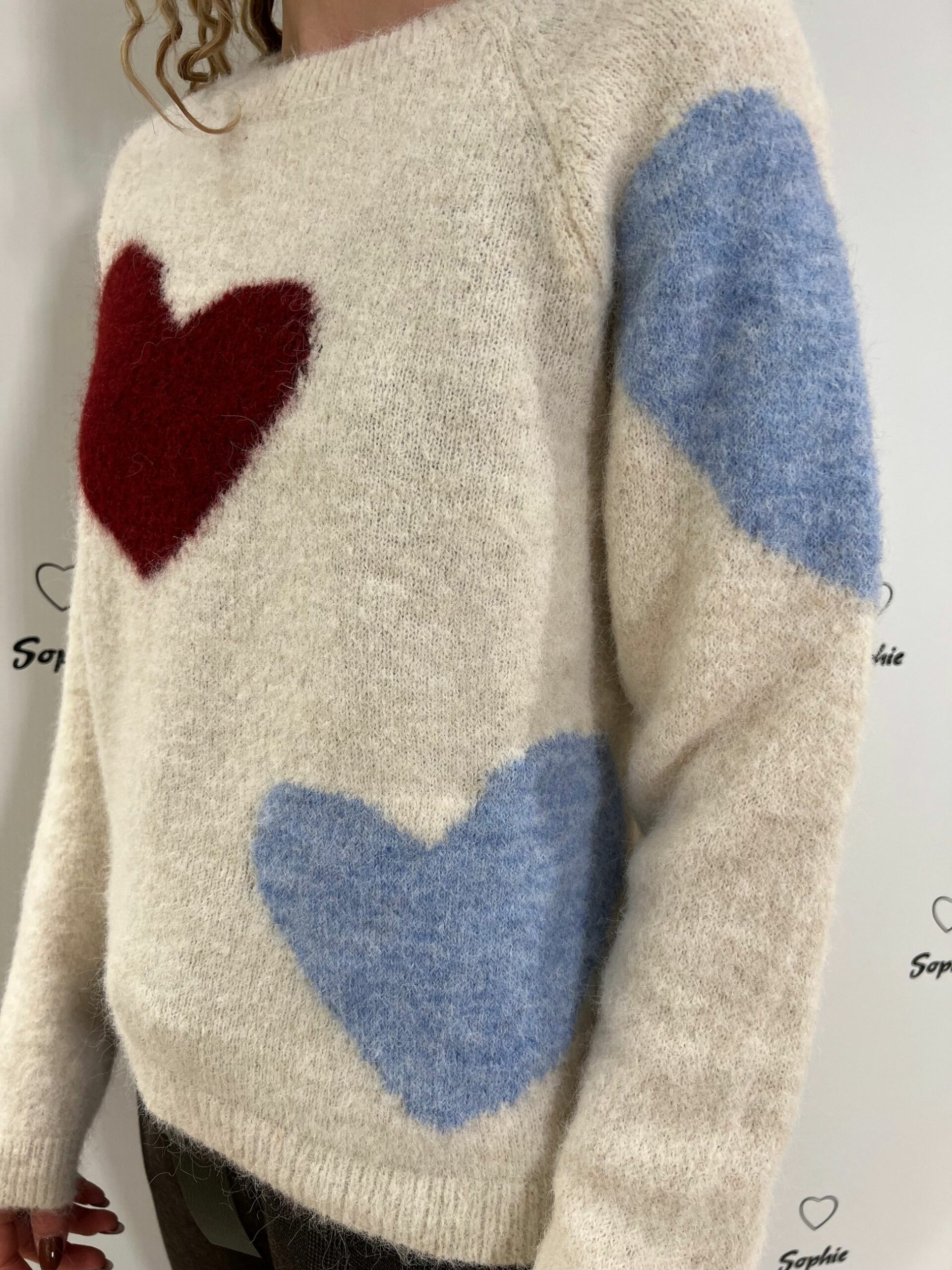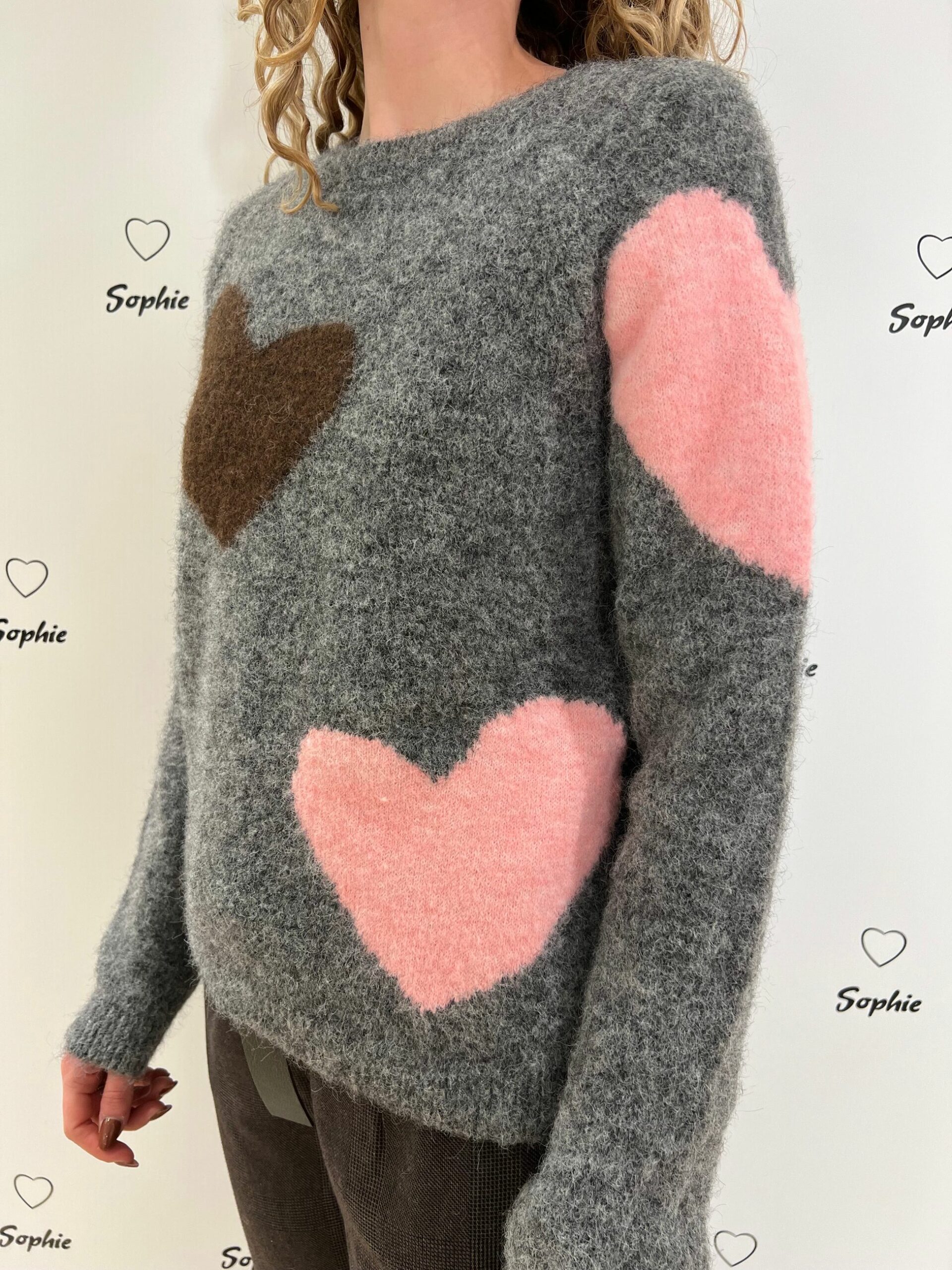 MAGLIA MISTO LANA GIROCOLLO CORTA E LARGA CON LAVORAZIONI A FORMA DI CUORE