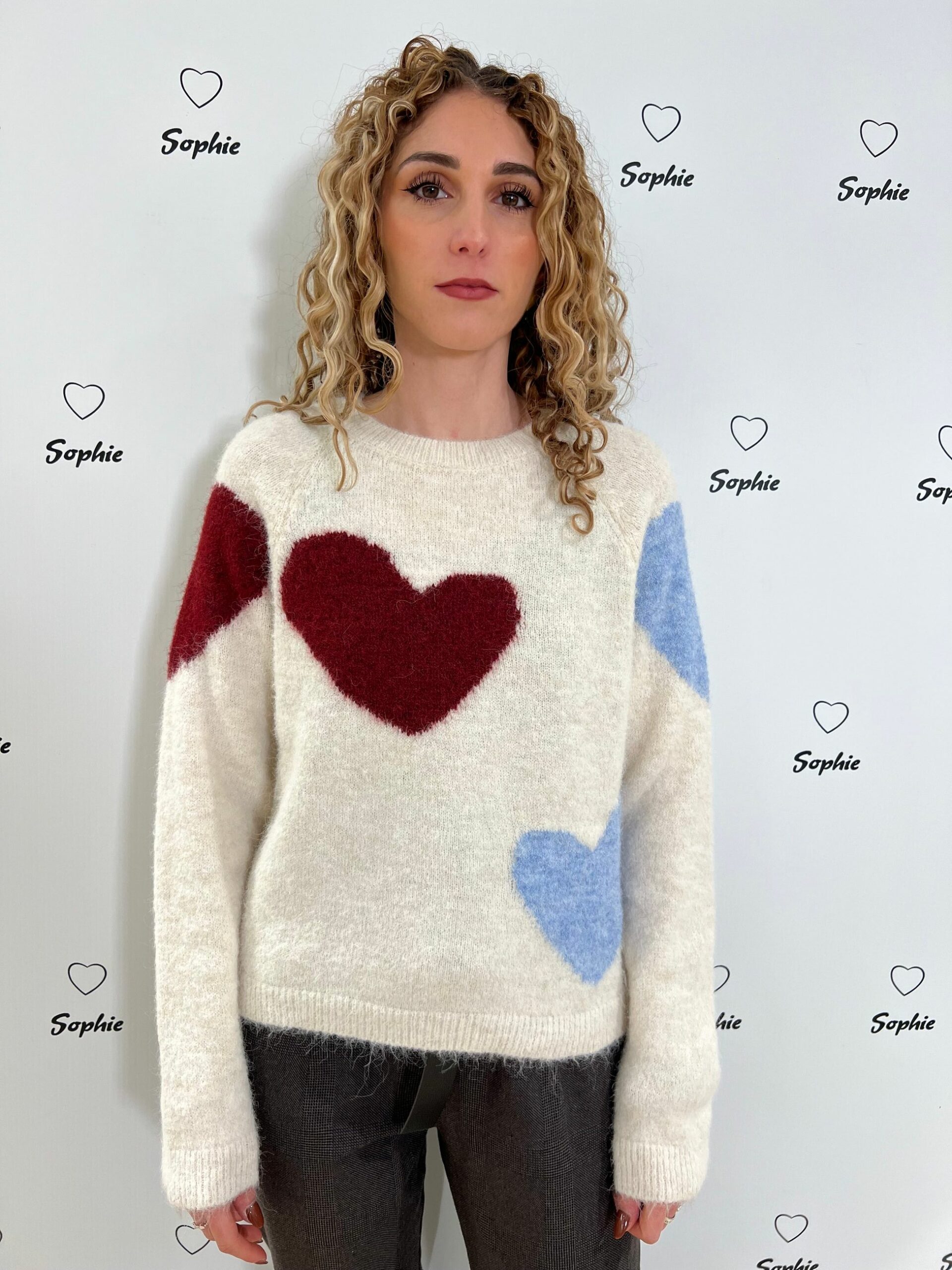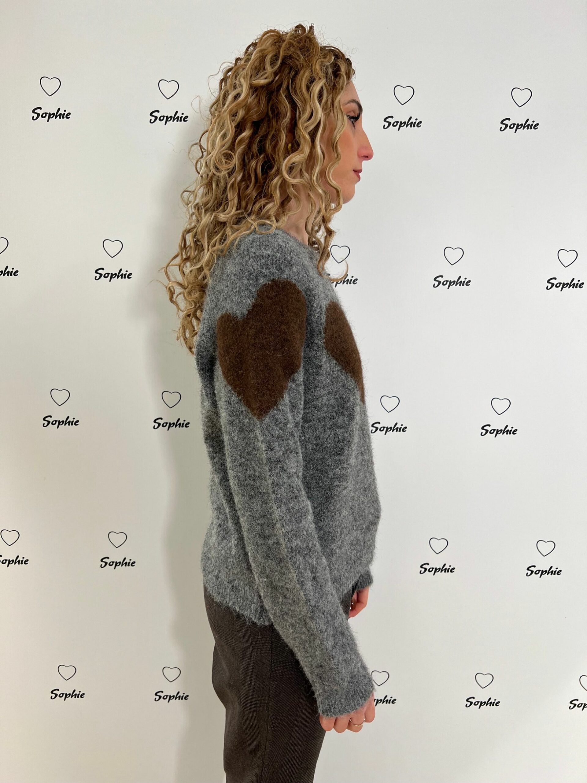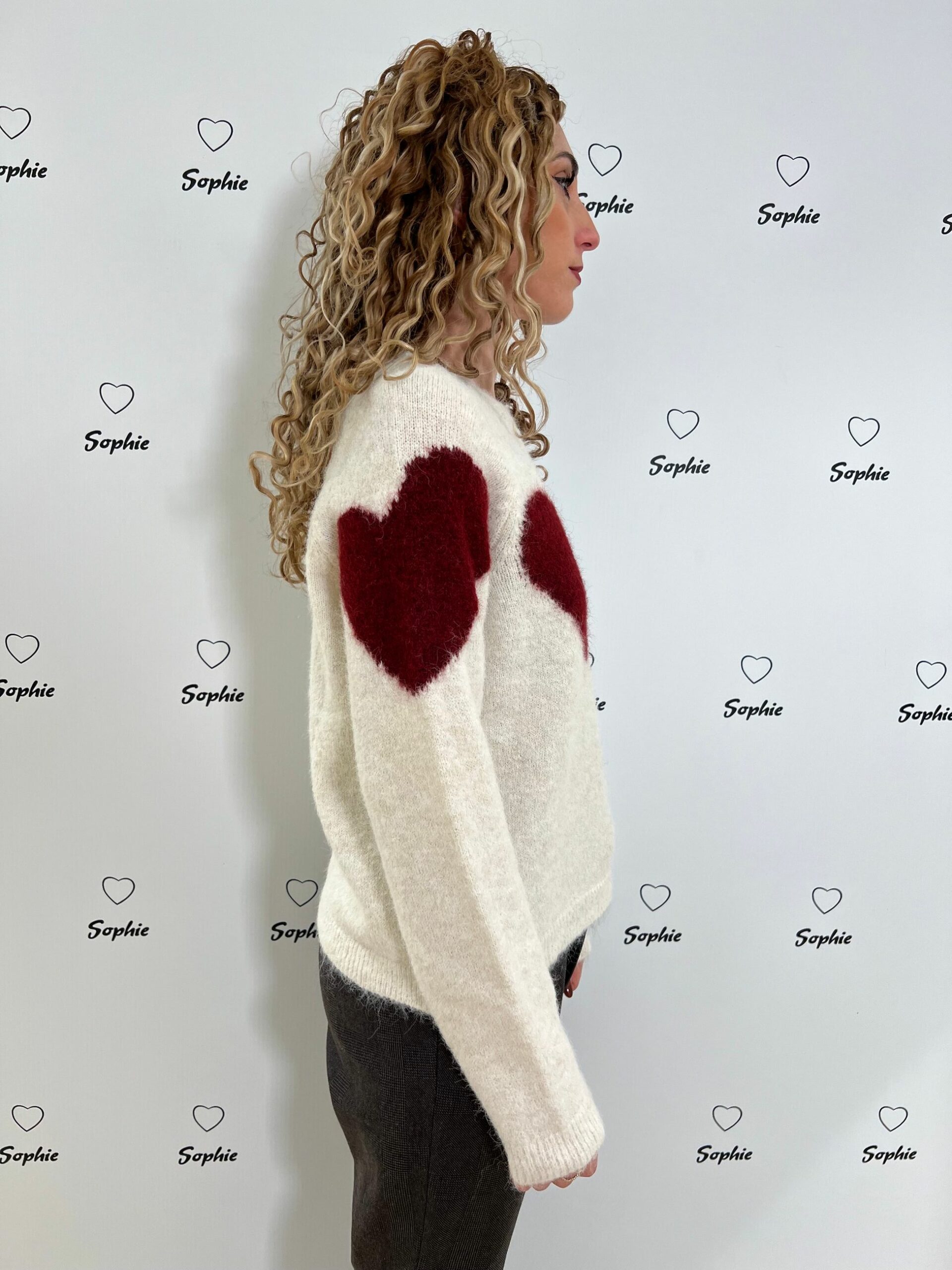 MAGLIA MISTO LANA GIROCOLLO CORTA E LARGA CON LAVORAZIONI A FORMA DI CUORE
